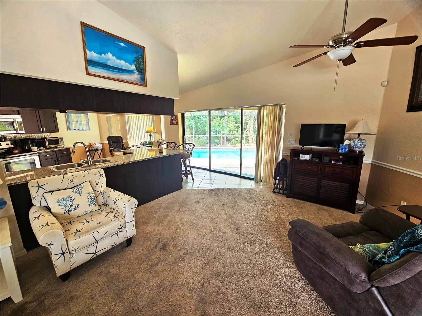 Welcome to your dream home from Port Charlotte Homebuilders most popular model, the Canadian Club. This charming residence is nestled in a tranquil neighborhood, offering the perfect blend of relaxation and convenience. Step inside to discover a beautifully updated kitchen with elegant cabinets, granite countertops, perfect for both cooking and entertaining. The bathrooms have been tastefully renovated with stylish vanities and stone countertops, creating a spa-like atmosphere for your daily routines. The home also comes furnished making your move easy and seamless. Outside, you'll find your own private oasis, complete with a screened-in lanai and luxurious pool, perfect for unwinding after a long day. The lush landscaping surrounding the property adds to the serenity of your outdoor space, making it a true retreat. With spacious rooms throughout, including a walk-in closet for ample storage, this home exudes comfort and functionality. Plus, there's plenty of garage space for your vehicles and storage needs. The roof will be replaced before closing or a credit issued. Located just moments away from shopping, schools, and more, this property offers both style and convenience. Don't miss your chance to experience the joy of living in your own private haven in Port Charlotte!
