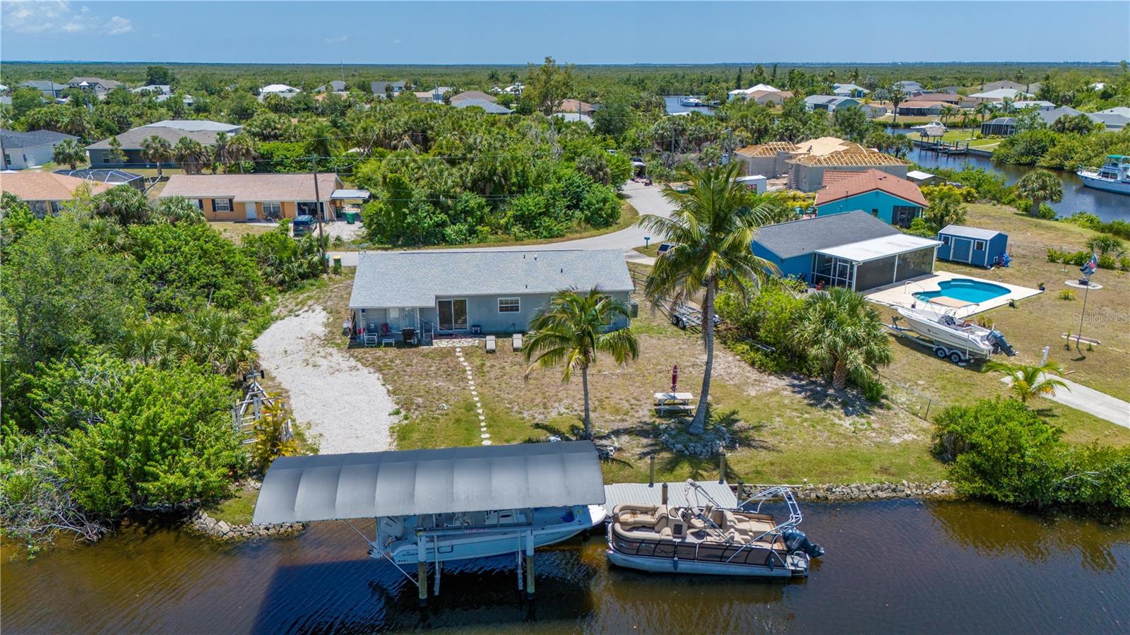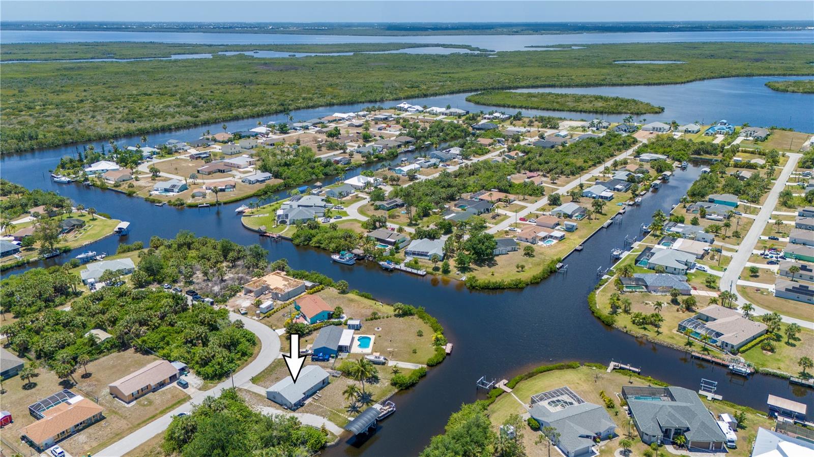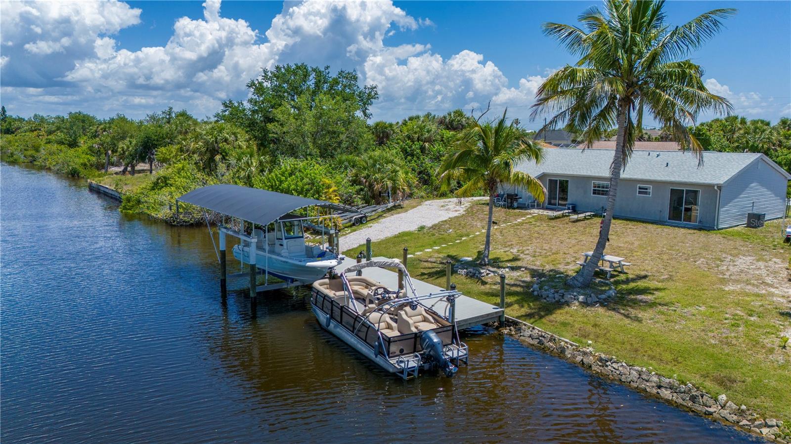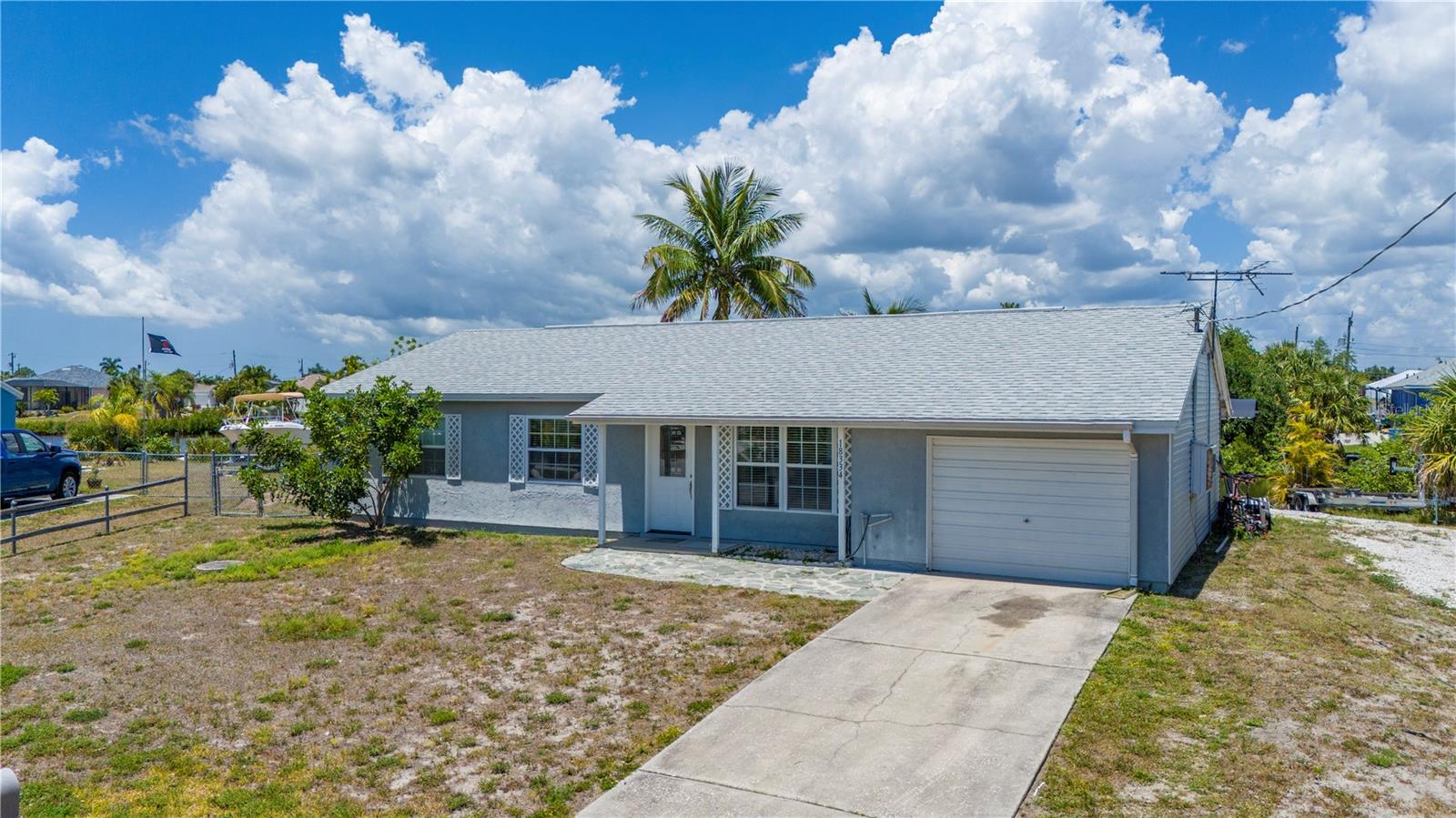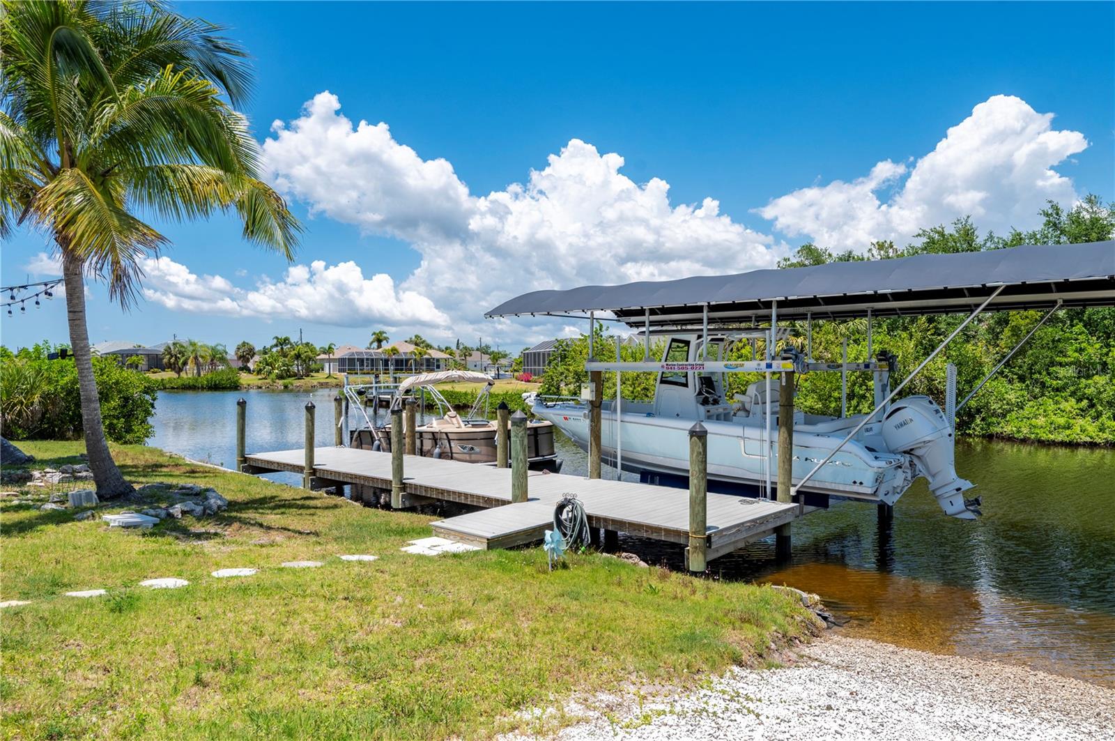 Welcome to your slice of waterfront paradise in Port Charlotte! This charming home boasts 118 feet of waterfront bliss, complete with a 40-foot composite dock and an 10,000-pound boat lift, making it a boater's dream come true. Say goodbye to those fixed bridges as you enjoy easy access to open waters via the saltwater canal right from your backyard. You'll love the peace of mind provided by the new roof installed in 2022. Step inside to discover a spacious interior featuring a delightful mix of tile and laminate flooring throughout. Need a space to work or unwind? The bonus room is perfect for a den or home office set up. The kitchen is a chef's delight with tile countertops, custom wood cabinets, and crown molding adding a touch of elegance. The primary bathroom boasts a walk-in shower for a touch of convenience. Outside, enjoy your own private boat ramp and riprap along with an oversized lot offering plenty of room for outdoor activities. This home comes furnished Turn key, so you can start off right away. Located just minutes from local amenities and downtown Punta Gorda, this property offers the best of both worlds – a serene retreat with easy access to the vibrant coastal lifestyle. Whether you're into fishing, boating, or simply soaking up the sun, this is the ultimate haven for your waterfront dreams.
