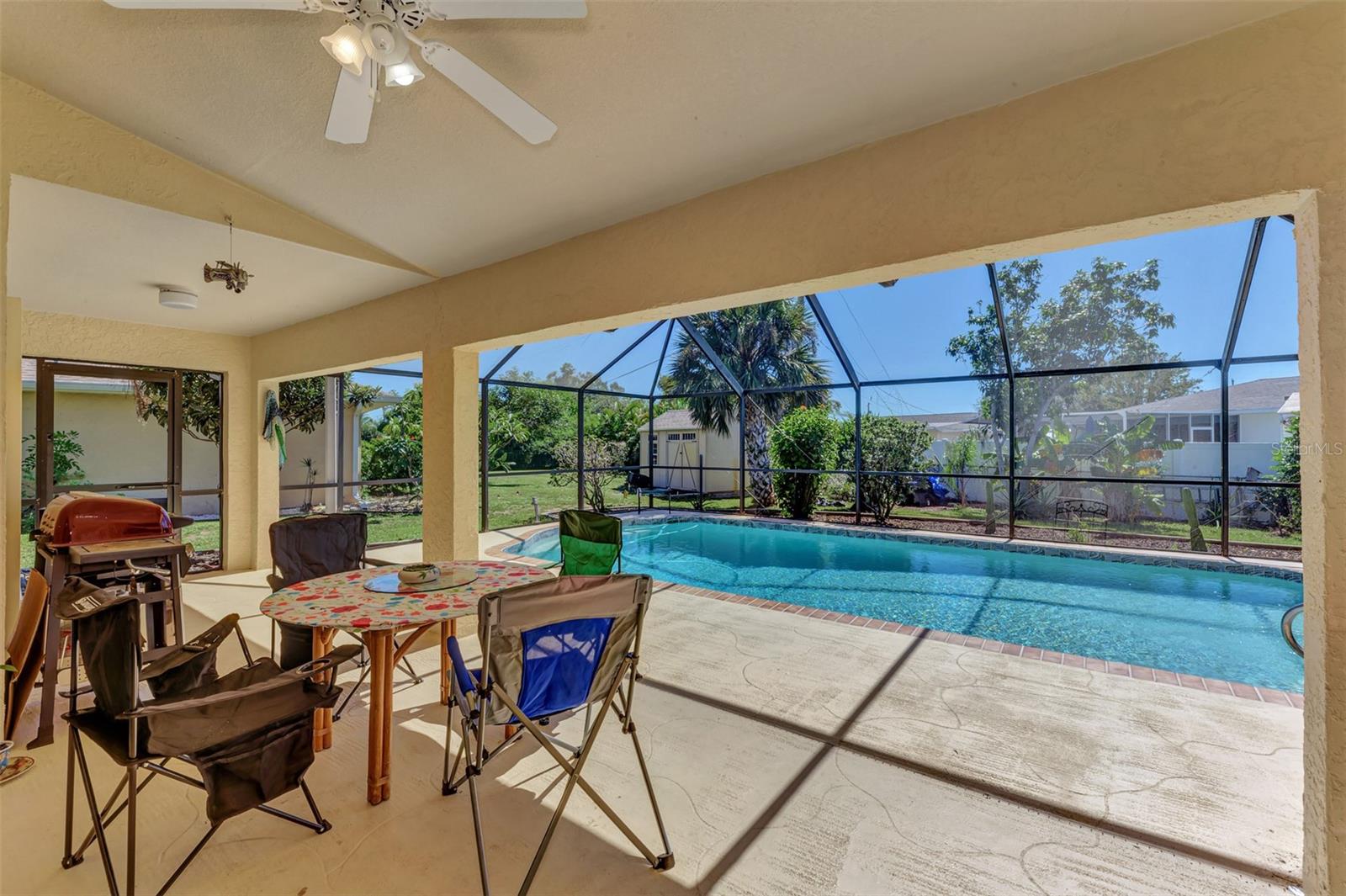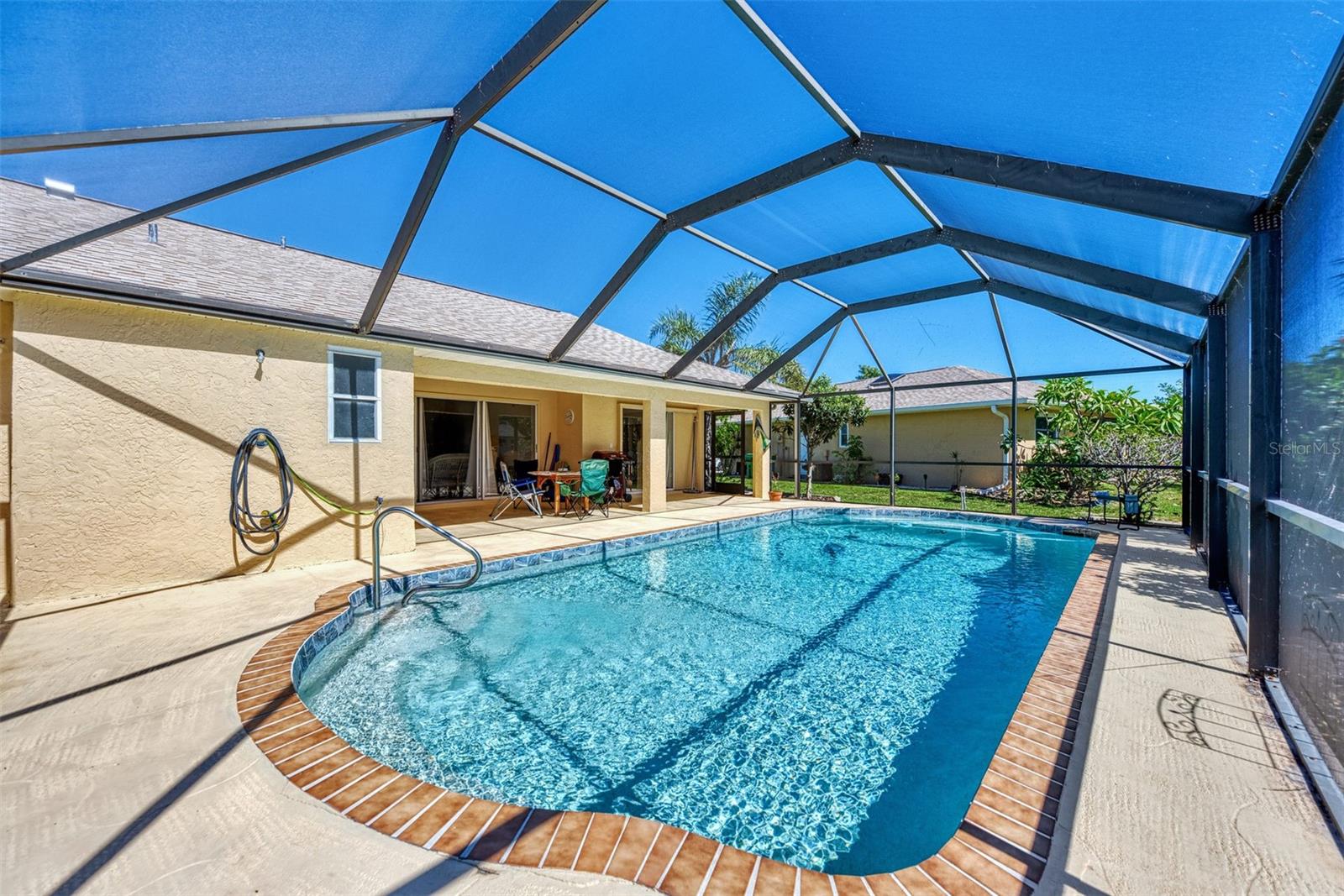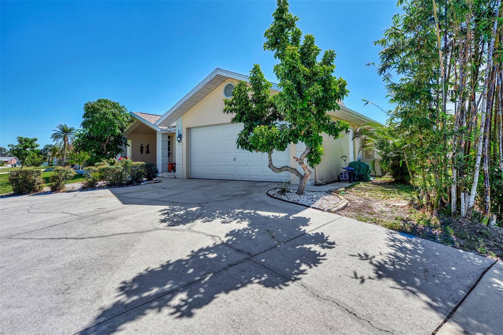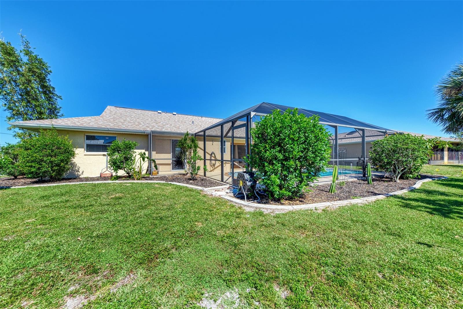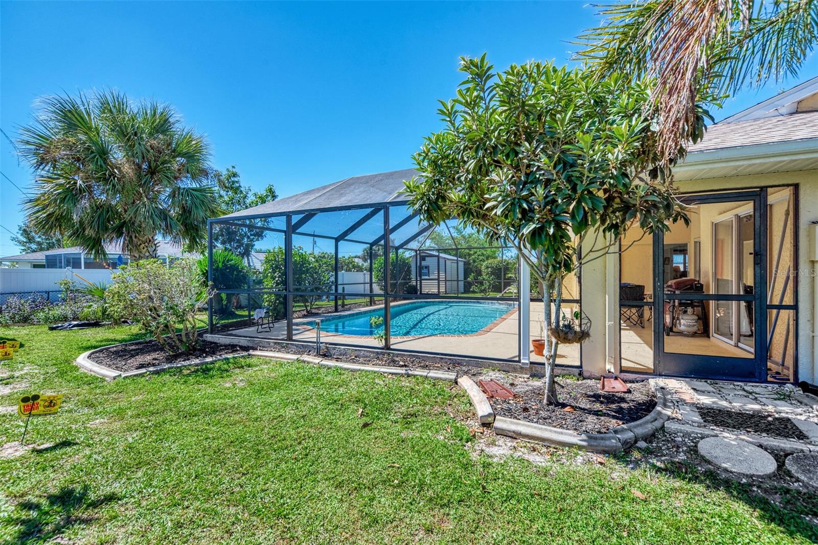 Convenient, yet very quiet Port Charlotte location! How about a 3-bedroom, 2-bathroom home with a new roof on a spacious corner lot to consider for your perfect Florida oasis! A circular driveway adds convenience, while the open floor plan with vaulted ceilings and skylights creates a bright and inviting atmosphere for everyday life, or relaxing with family and friends. The kitchen is open to the dining room and pool area, and features quartz countertops, ample cabinetry, and space for preparing delicious meals. The bedrooms are separated, with the secondary bedrooms having partial views of Spring Lake. The primary bedroom comes complete with a spacious bathroom, dual closets, a large vanity, and access to the lanai. The large lanai area offers a sparkling 15’x30’ pool, which was recently refinished. The landscaping features fruit trees and shade trees to provide comfort and some nice fruit snacks while enjoying the Florida weather! The nearby beaches are just a short drive away, and for boating enthusiasts, the community boat ramp is just minutes from your doorstep. Fruit trees: 4 Mango, 4 Banana, 2 Loquat, 2 Surinam Cherry, and 1 of each of the following: Olive, Avocado, Lychee, Korean Bamboo, Chinese Bamboo, Sugar Apple and Pineapple.