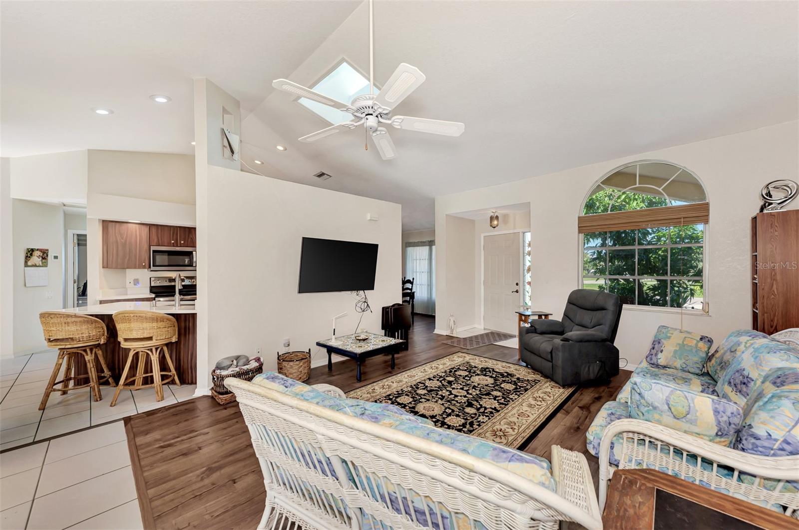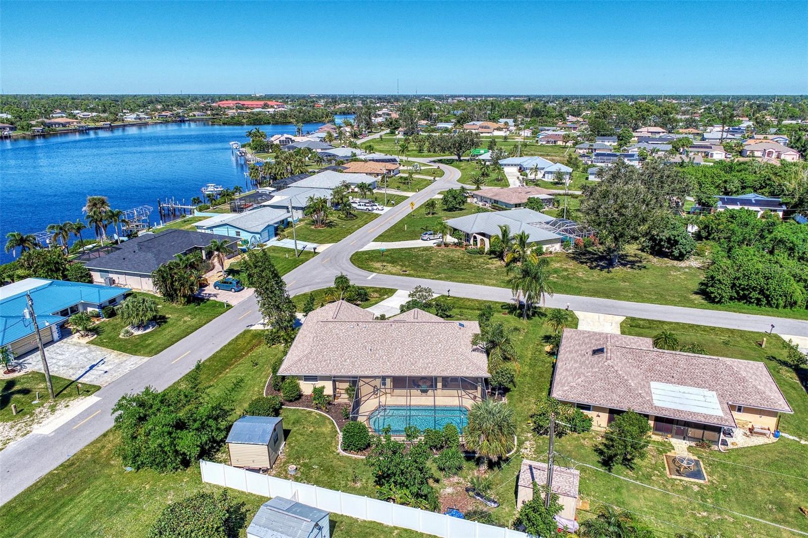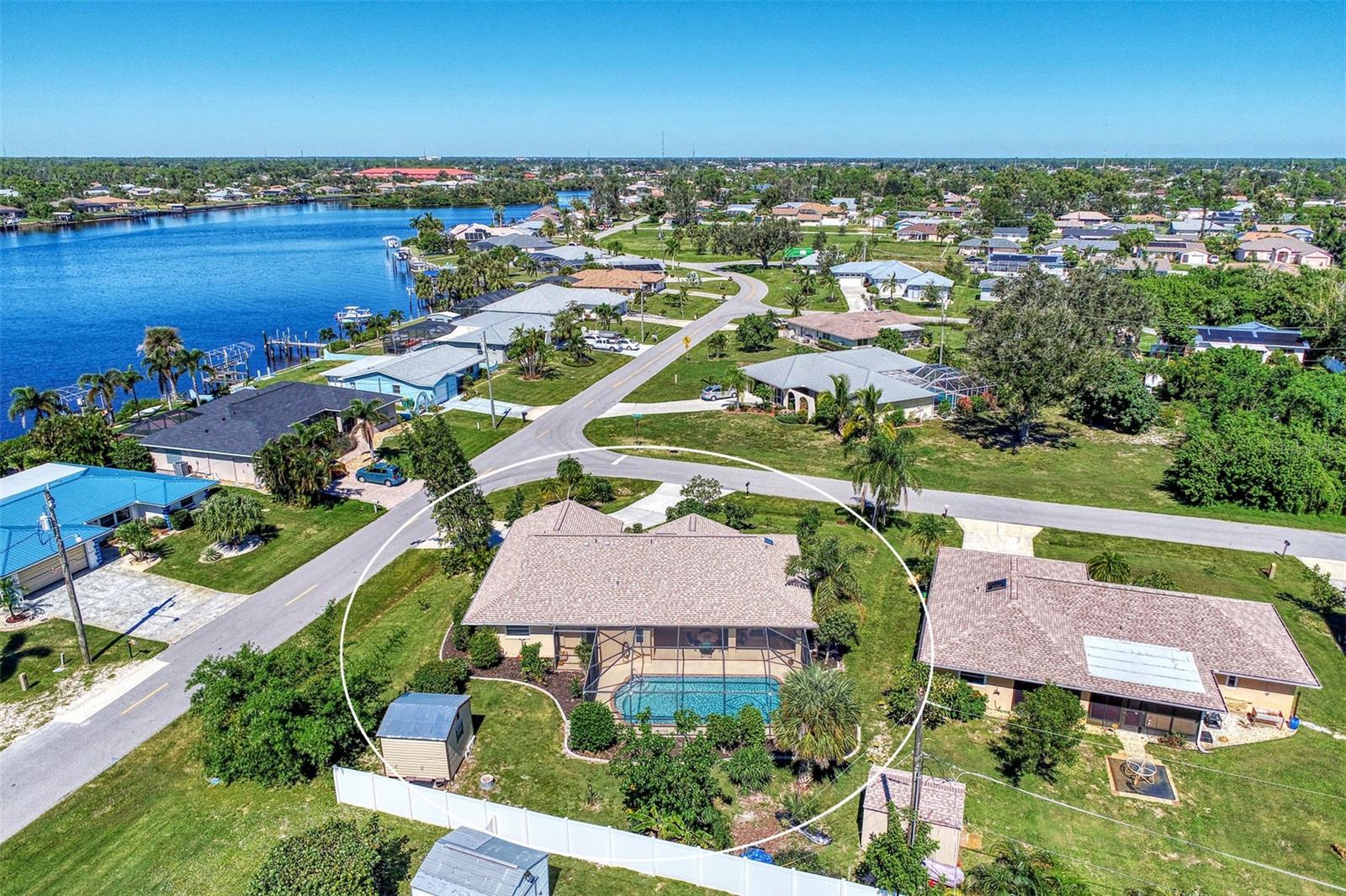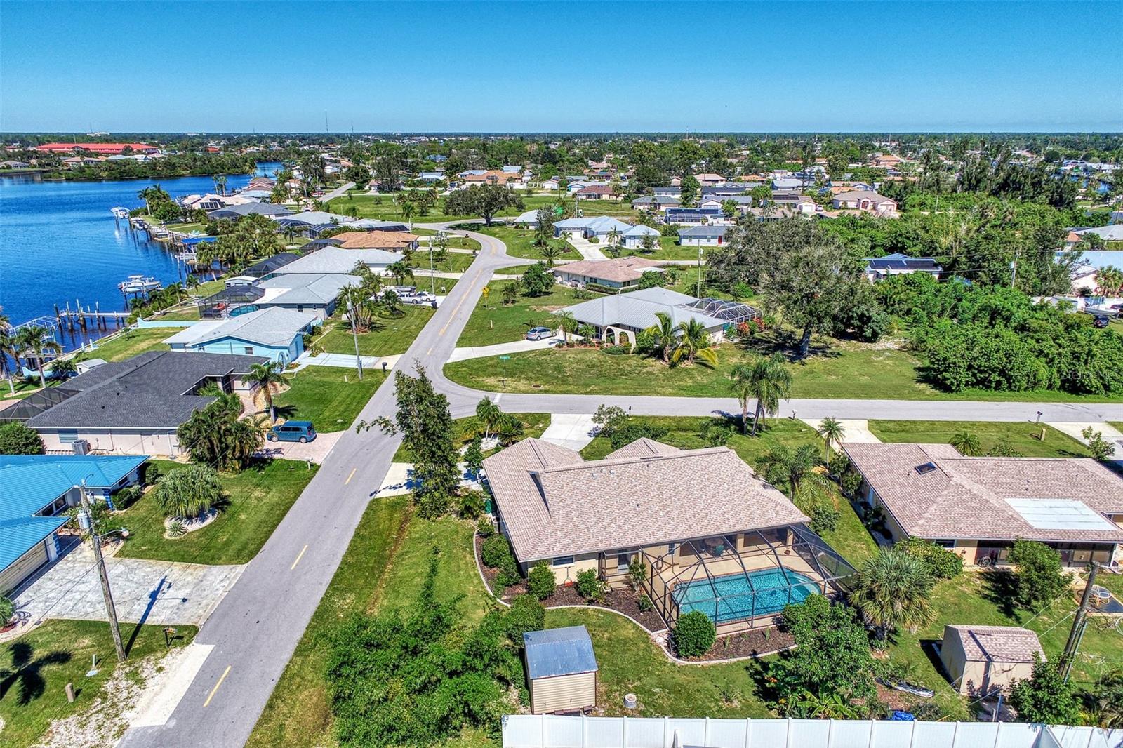Convenient, yet very quiet Port Charlotte location! How about a 3-bedroom, 2-bathroom home with a new roof on a spacious corner lot to consider for your perfect Florida oasis! A circular driveway adds convenience, while the open floor plan with vaulted ceilings and skylights creates a bright and inviting atmosphere for everyday life, or relaxing with family and friends. The kitchen is open to the dining room and pool area, and features quartz countertops, ample cabinetry, and space for preparing delicious meals. The bedrooms are separated, with the secondary bedrooms having partial views of Spring Lake. The primary bedroom comes complete with a spacious bathroom, dual closets, a large vanity, and access to the lanai. The large lanai area offers a sparkling 15’x30’ pool, which was recently refinished. The landscaping features fruit trees and shade trees to provide comfort and some nice fruit snacks while enjoying the Florida weather! The nearby beaches are just a short drive away, and for boating enthusiasts, the community boat ramp is just minutes from your doorstep. Fruit trees: 4 Mango, 4 Banana, 2 Loquat, 2 Surinam Cherry, and 1 of each of the following: Olive, Avocado, Lychee, Korean Bamboo, Chinese Bamboo, Sugar Apple and Pineapple.
