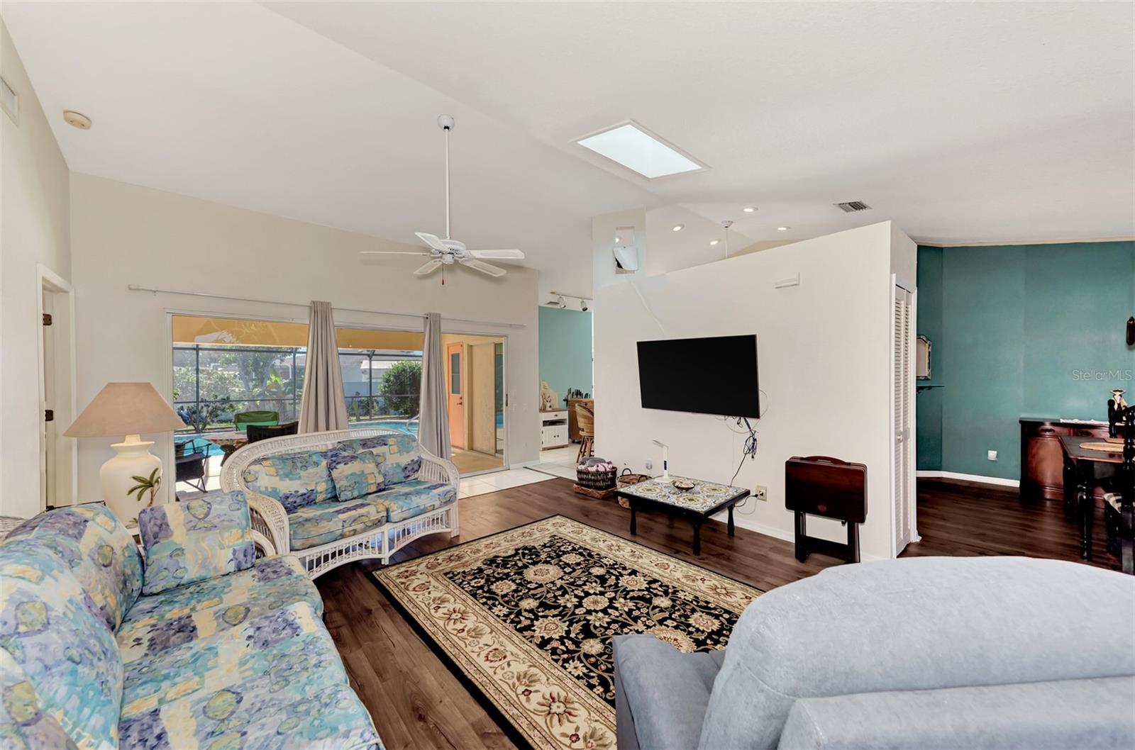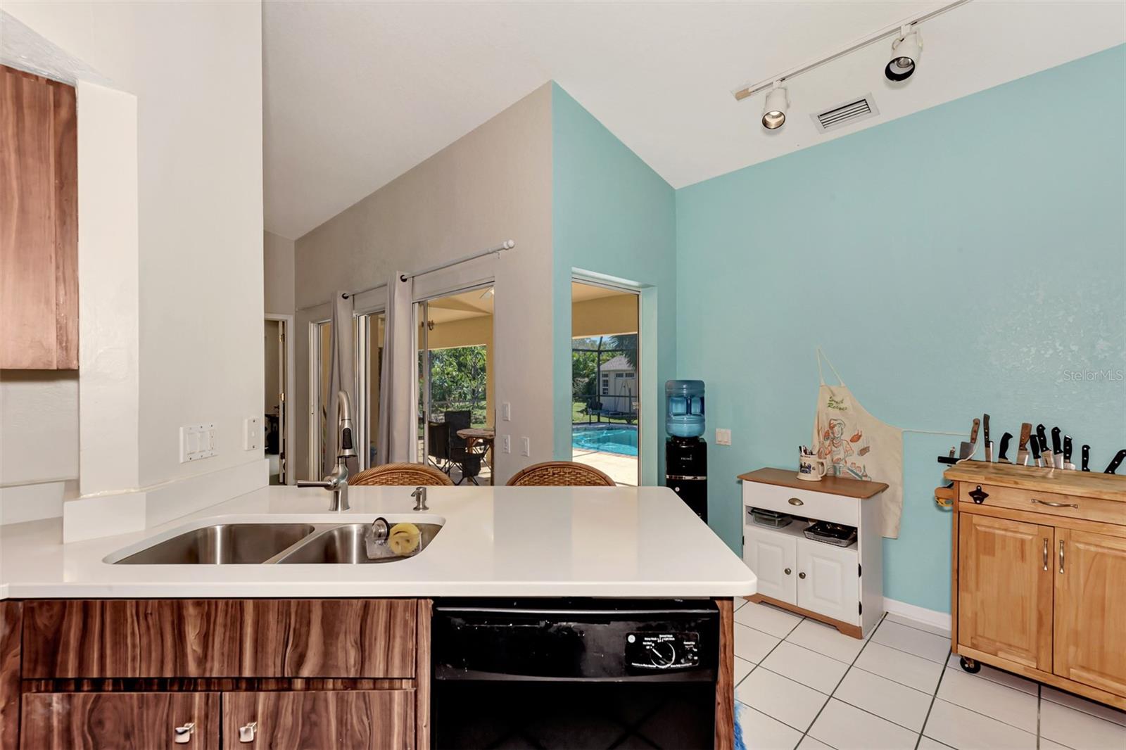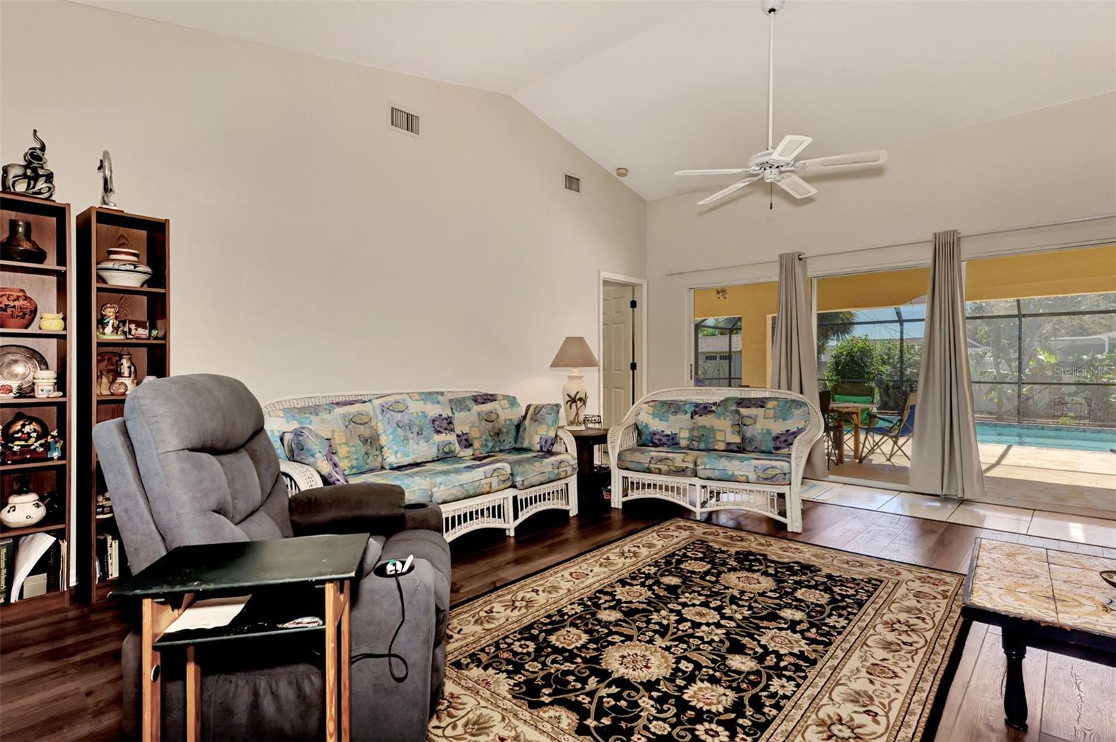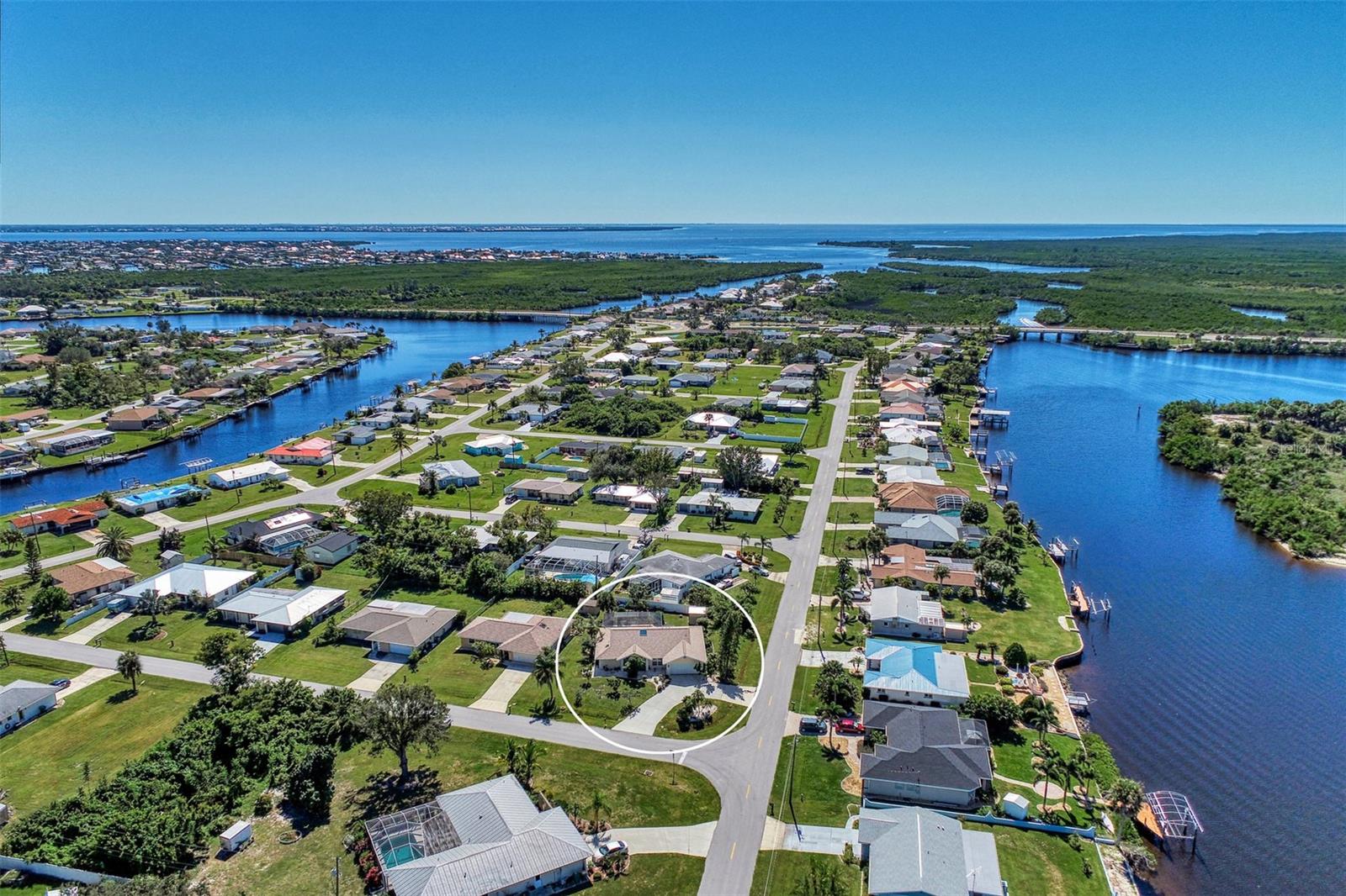 Convenient, yet very quiet Port Charlotte location! How about a 3-bedroom, 2-bathroom home with a new roof on a spacious corner lot to consider for your perfect Florida oasis! A circular driveway adds convenience, while the open floor plan with vaulted ceilings and skylights creates a bright and inviting atmosphere for everyday life, or relaxing with family and friends. The kitchen is open to the dining room and pool area, and features quartz countertops, ample cabinetry, and space for preparing delicious meals. The bedrooms are separated, with the secondary bedrooms having partial views of Spring Lake. The primary bedroom comes complete with a spacious bathroom, dual closets, a large vanity, and access to the lanai. The large lanai area offers a sparkling 15’x30’ pool, which was recently refinished. The landscaping features fruit trees and shade trees to provide comfort and some nice fruit snacks while enjoying the Florida weather! The nearby beaches are just a short drive away, and for boating enthusiasts, the community boat ramp is just minutes from your doorstep. Fruit trees: 4 Mango, 4 Banana, 2 Loquat, 2 Surinam Cherry, and 1 of each of the following: Olive, Avocado, Lychee, Korean Bamboo, Chinese Bamboo, Sugar Apple and Pineapple.