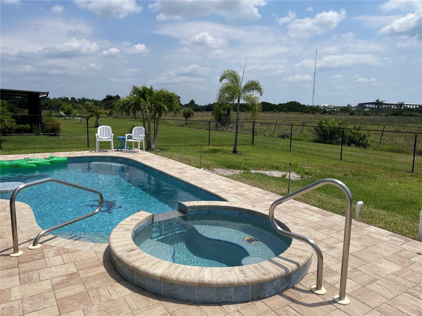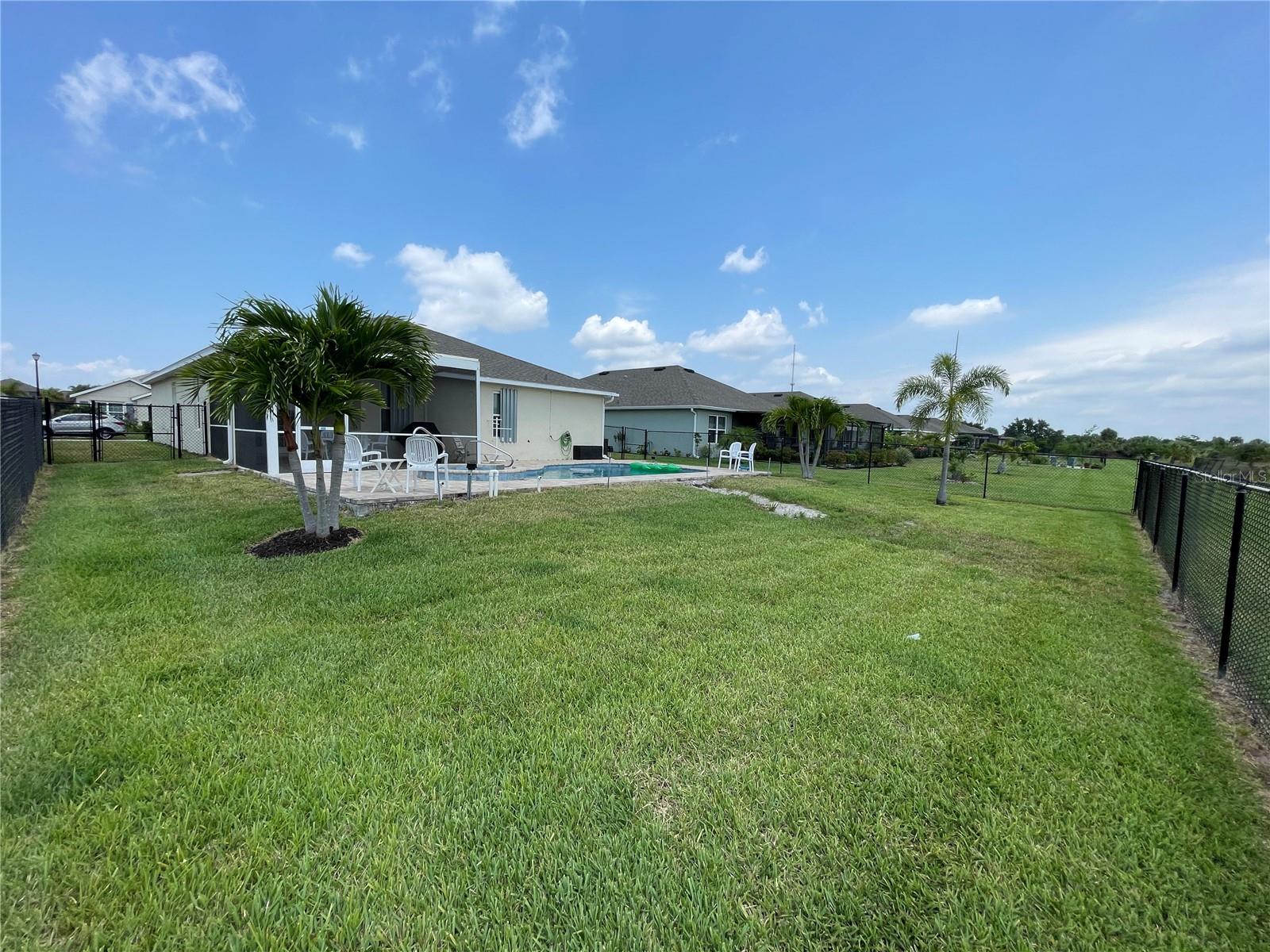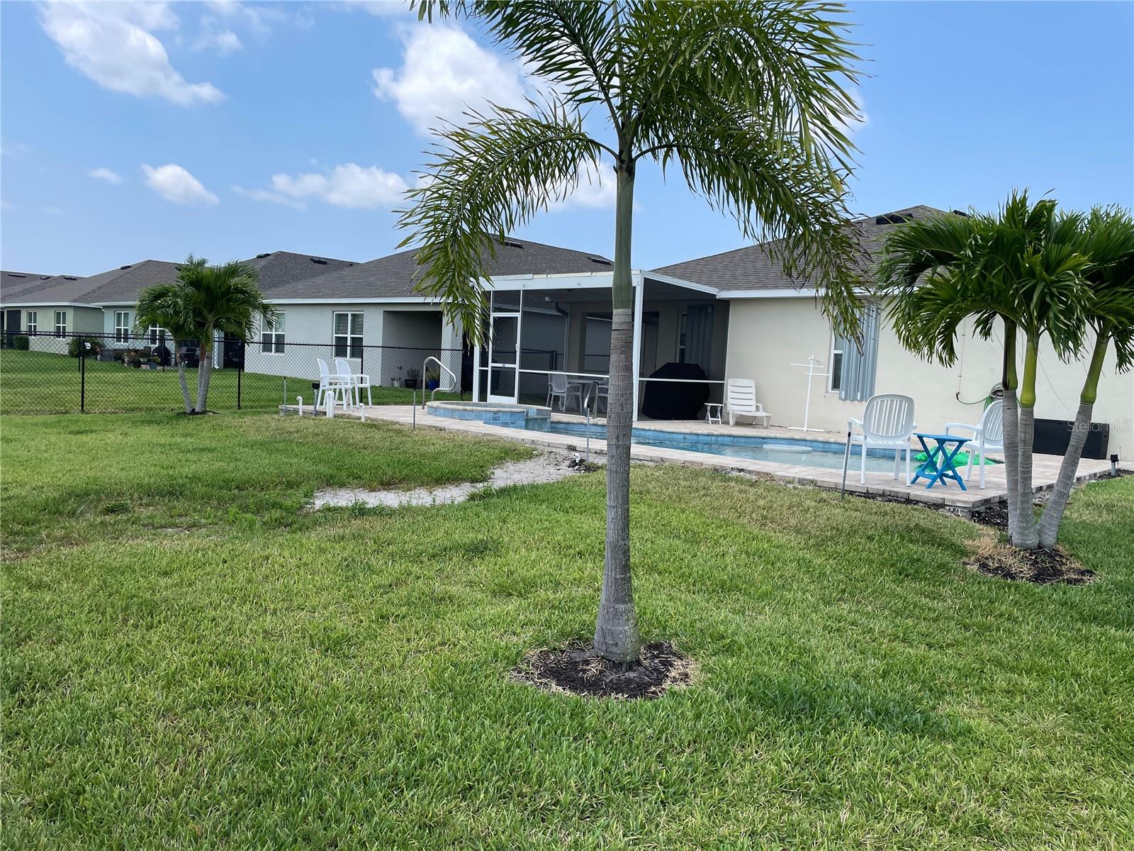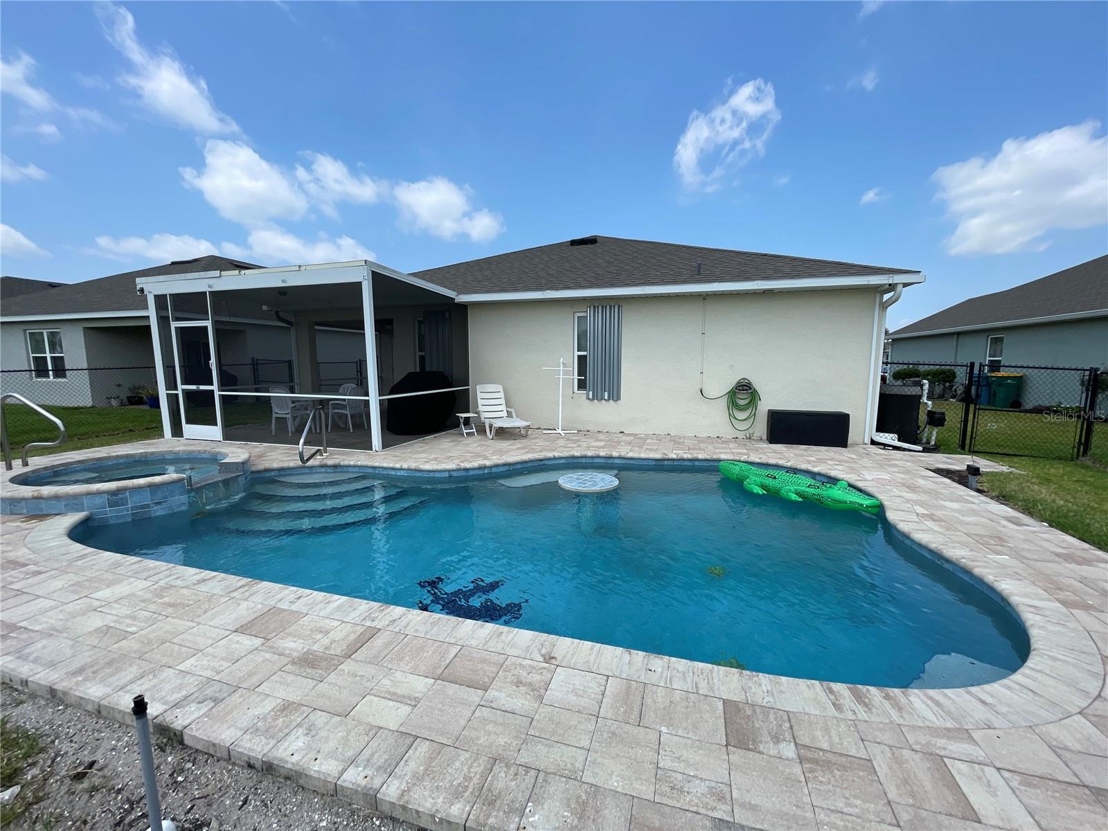 Unique Pool home in a GATED COMMUNITY! This beautiful 2019 built, 1758sf, 3/2/2 home with a private salt water pool and spa is ready for you! Come see this lovely home nestled in the friendly gated community of River Club. Many of the homes in the community have reassigned to an X flood zone (no flood insurance is needed for this home). There is a paver walkway and extra wide. This light bright home offers an open/split floor plan. The large kitchen has white cabinets and appliances, a large cabinet was added for additional storage along with a pantry. The Dinette has a bay window that looks out to the front yard making this space light and bright with natural light. The Great room has space for casual dining near the pass through window from the kitchen. The pass through window creates great flow from one room to the next. The french doors take you to the outdoor living area. The pool is 16x24. The lanai/pool paver deck is 20x40. The covered lanai is screened and the yard is fenced. The backyard view is an open field facing east. What a lovely way to start your day...Sitting on your lanai enjoying a beverage watching the sun rise. The spacious master bedroom is located in the back of the home and has a walk-in closet. The master bathroom has a walk-in shower and a double bowl vanity with a medicine cabinet. The 2nd, 3rd bedroom and guest bathroom are located near the front of the home. The guest bathroom has a tub/shower, medicine cabinet and a linen closet. There is an additional closet in the hall just outside of the bathroom. You access the garage through the inside laundry room. The flooring in the home is tile with the exception of the bedrooms; they have carpet. The twin beds in the guest bedroom convey with the home. The community offers a pool, fitness room, and children's playground. Along with cable TV and internet, the HOA fee's include maintaining the lawns, bushes, and mulch beds throughout the community. You can travel and not worry about the working being done. Centrally located to shopping, restaurants', local activities, I75, main roads taking you neighboring areas that offer everything from antiquing, equestrian, small town life, boating, fishing, beaches, pickleball, golfing, state parks, the list goes on.... Come see this lovely home and see what this community has to offer!