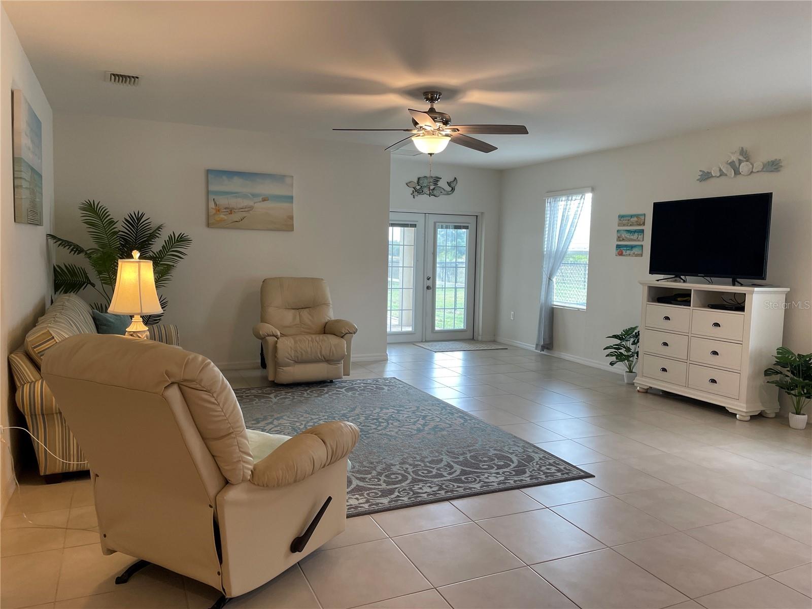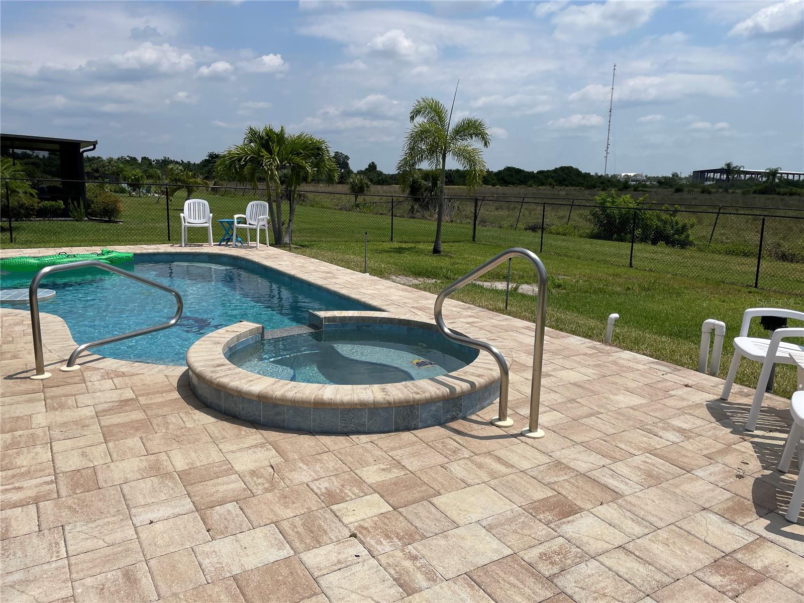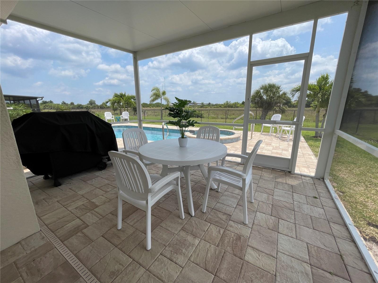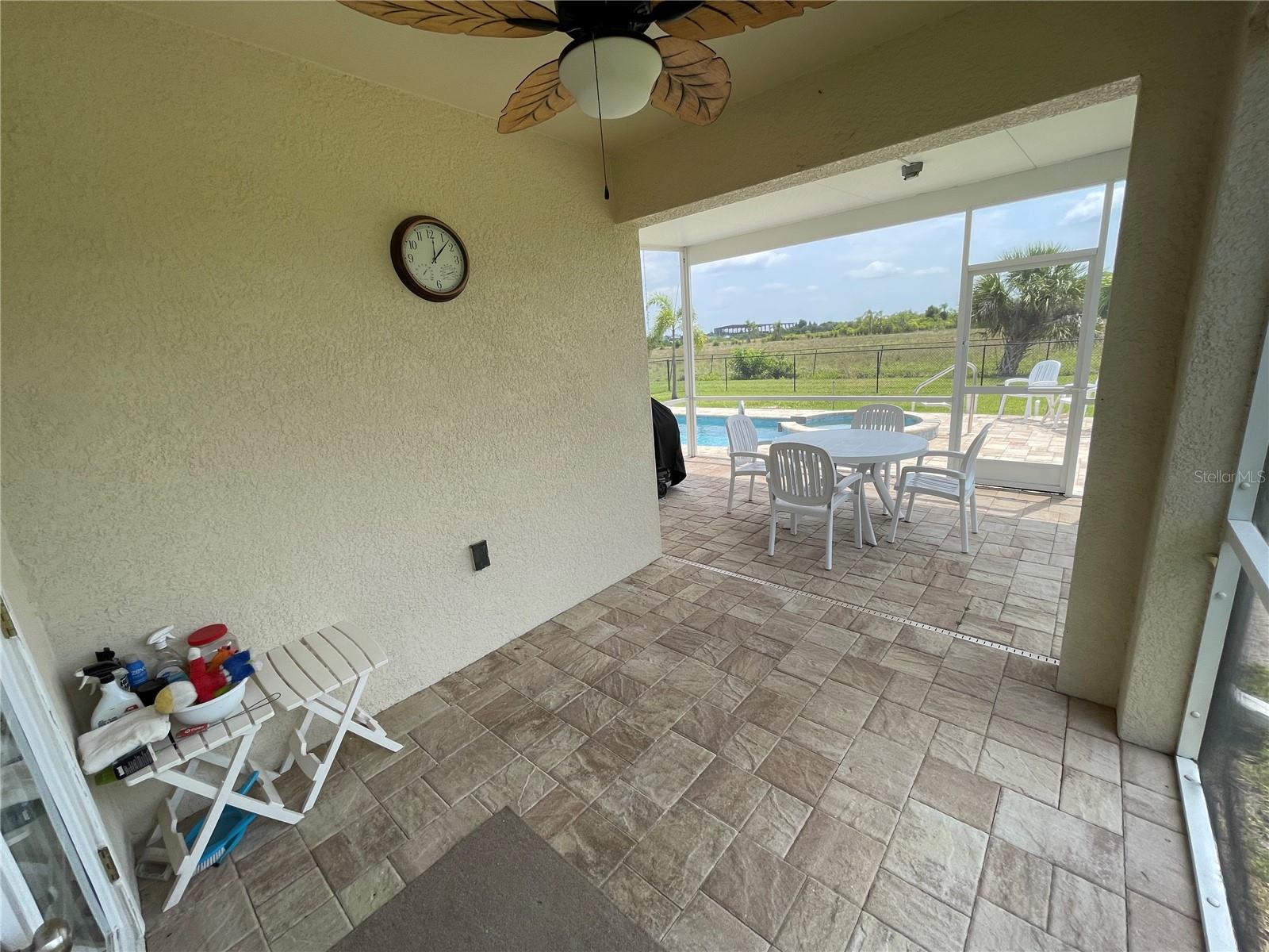 Unique Pool home in a GATED COMMUNITY! This beautiful 2019 built, 1758sf, 3/2/2 home with a private salt water pool and spa is ready for you! Come see this lovely home nestled in the friendly gated community of River Club. Many of the homes in the community have reassigned to an X flood zone (no flood insurance is needed for this home). There is a paver walkway and extra wide. This light bright home offers an open/split floor plan. The large kitchen has white cabinets and appliances, a large cabinet was added for additional storage along with a pantry. The Dinette has a bay window that looks out to the front yard making this space light and bright with natural light. The Great room has space for casual dining near the pass through window from the kitchen. The pass through window creates great flow from one room to the next. The french doors take you to the outdoor living area. The pool is 16x24. The lanai/pool paver deck is 20x40. The covered lanai is screened and the yard is fenced. The backyard view is an open field facing east. What a lovely way to start your day...Sitting on your lanai enjoying a beverage watching the sun rise. The spacious master bedroom is located in the back of the home and has a walk-in closet. The master bathroom has a walk-in shower and a double bowl vanity with a medicine cabinet. The 2nd, 3rd bedroom and guest bathroom are located near the front of the home. The guest bathroom has a tub/shower, medicine cabinet and a linen closet. There is an additional closet in the hall just outside of the bathroom. You access the garage through the inside laundry room. The flooring in the home is tile with the exception of the bedrooms; they have carpet. The twin beds in the guest bedroom convey with the home. The community offers a pool, fitness room, and children's playground. Along with cable TV and internet, the HOA fee's include maintaining the lawns, bushes, and mulch beds throughout the community. You can travel and not worry about the working being done. Centrally located to shopping, restaurants', local activities, I75, main roads taking you neighboring areas that offer everything from antiquing, equestrian, small town life, boating, fishing, beaches, pickleball, golfing, state parks, the list goes on.... Come see this lovely home and see what this community has to offer!
