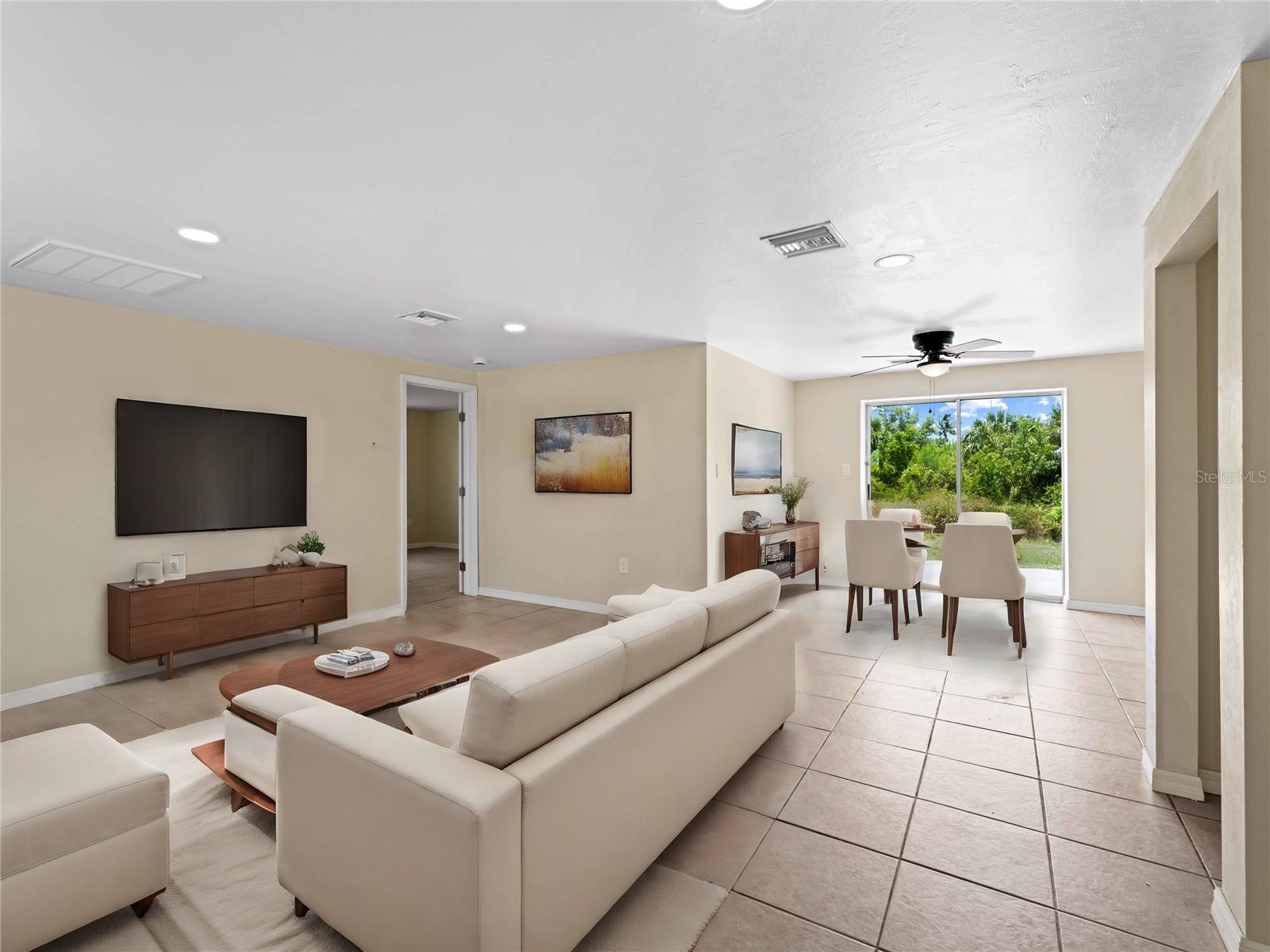 MAJOR PRICE IMPROVEMENT! NEW ROOF 2023, HURRICANE WINDOWS 2024, NEW KITCHEN, AND SO MUCH MORE! Located on an OVERSIZED CORNER LOT, this home has been completely updated with everything you need to move right in. Only 5 mins away from a public boat ramp with access to the GULF in less than 5 mins. This split floorplan home has walk in closets, ample storage, and tons of natural light. The dining room has pocket sliding doors opening up onto a concrete slab that can easily be enclosed making a screened lanai or room to add a pool. This block home has a spacious garage with a new garage door opener and added side parking space with electrical hookups for an RV. Quotes for insurance have been attached. *one or more photos have been digitally staged*