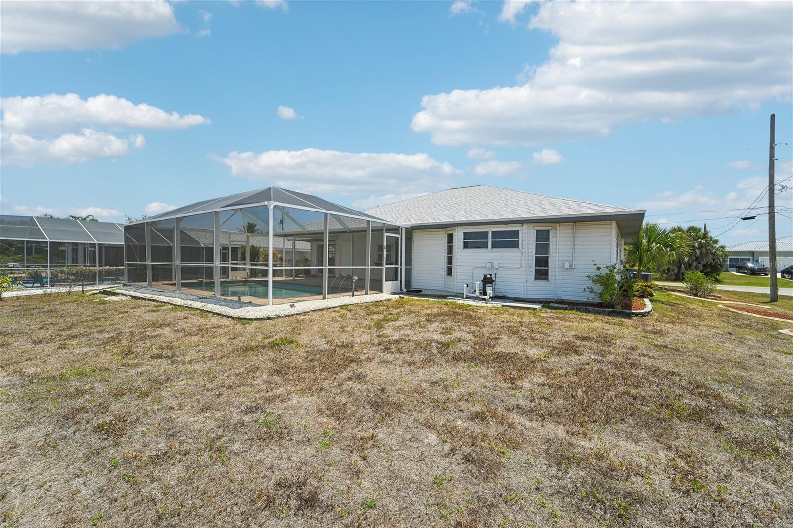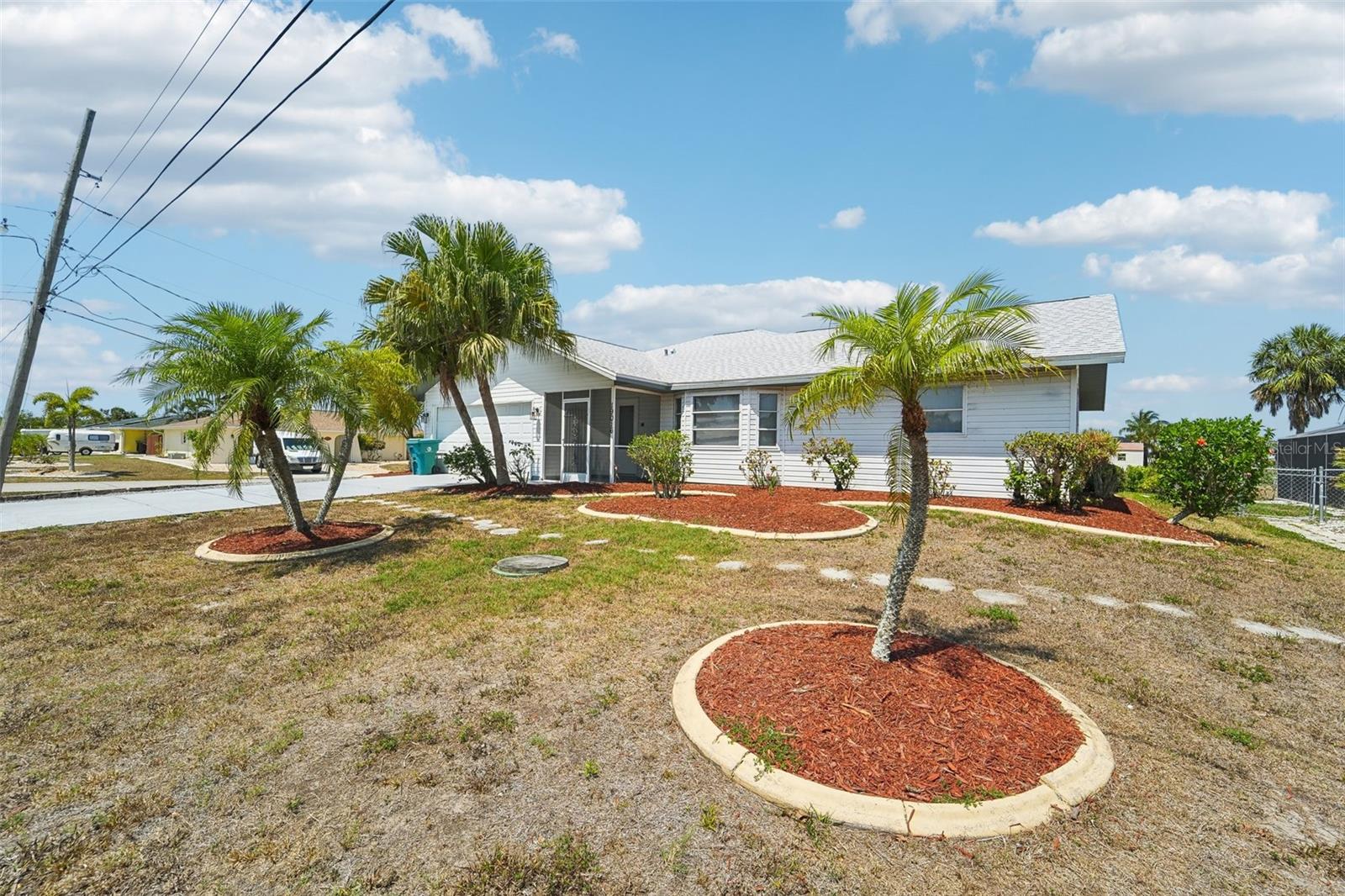 Discover your next home at 19016 Midway Blvd in Port Charlotte, Florida. This beautifully maintained 3-bedroom, 2-bathroom residence, perfect for both primary home buyers and investors, boasts 1,500 square feet of comfortable living space. Built in 1991, this property features a two-year-old roof, a six-year-old HVAC system, and a five-year-old water heater, ensuring reliability and efficiency. Situated on a generous 0.26-acre corner lot in a tranquil cul-de-sac, the home offers a spacious layout ideal for family living, complemented by up-to-date, energy-efficient appliances. Enjoy the luxury of a private screened patio with a pool, perfect for relaxation and entertainment. Located across from the picturesque Manchester Waterway, this home provides a serene setting while being close to all necessary amenities. Don’t miss this exceptional opportunity in Port Charlotte!