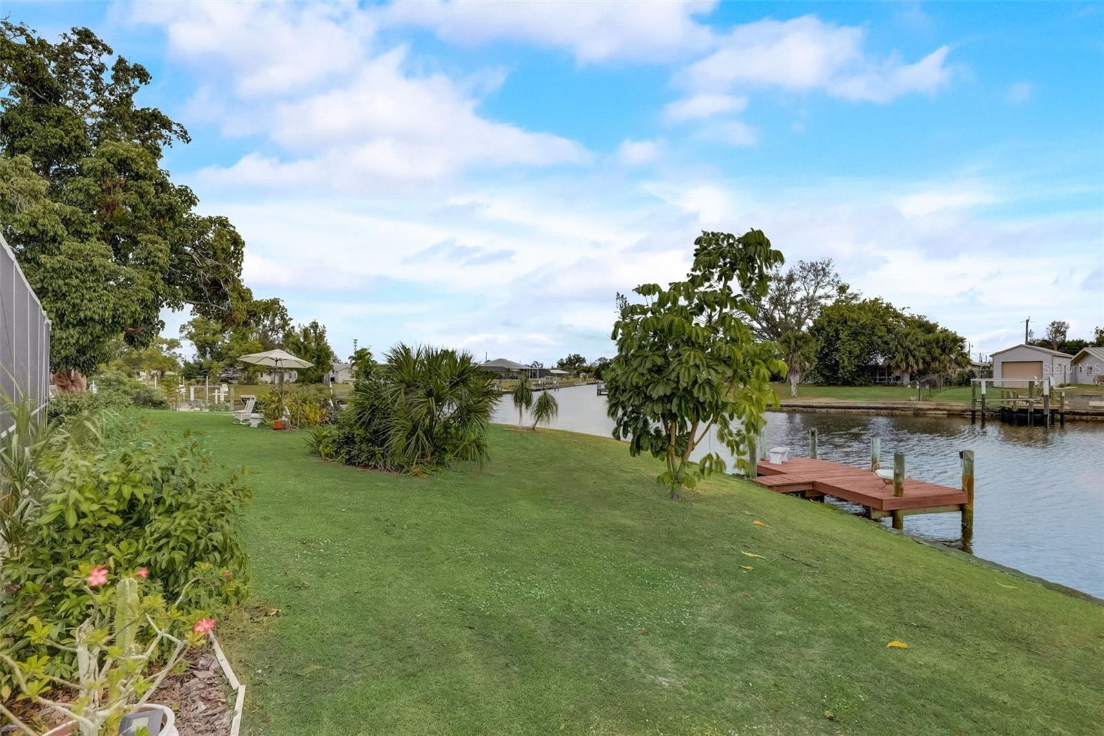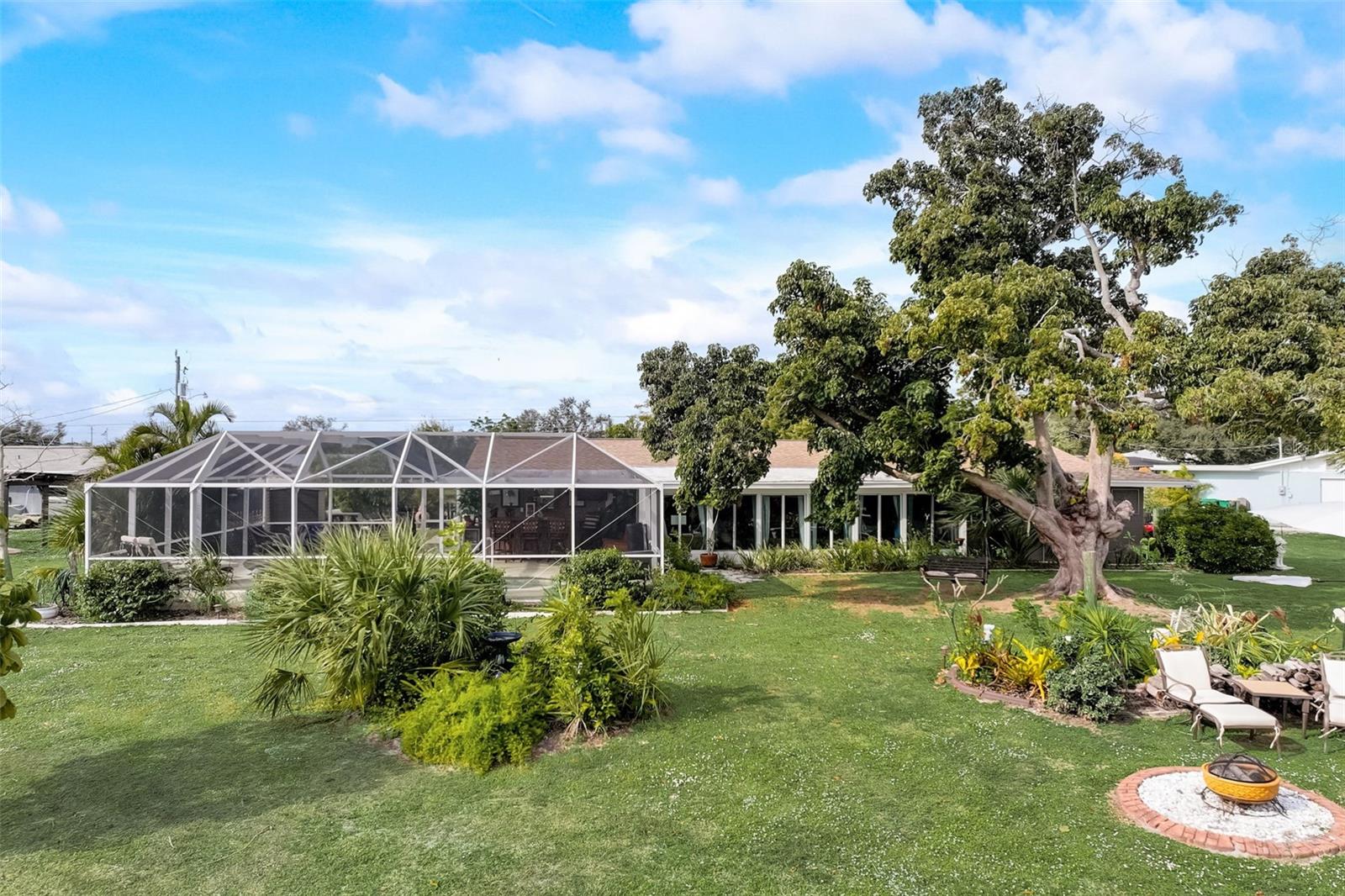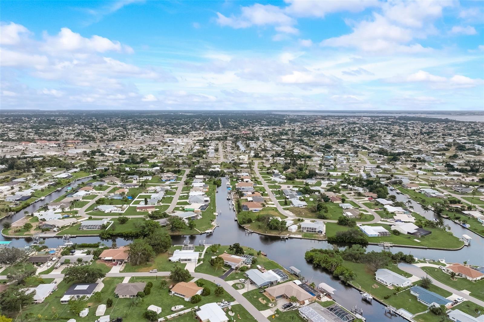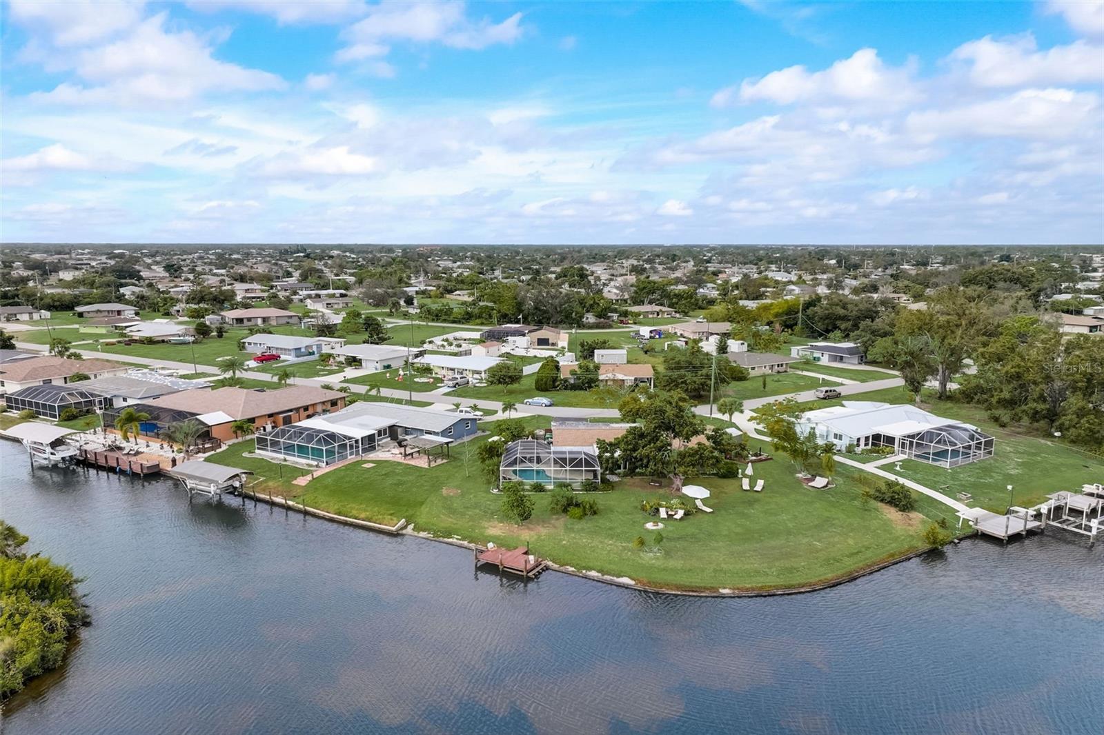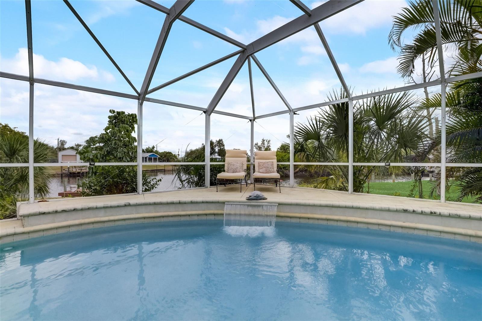 Direct Gulf Access! Experience waterfront living at its finest with this exceptional tip lot property, boasting 185 feet of prime waterfrontage facing the Sunrise over four canal points. fully Renovated/Remodeled to perfection , the home features two master suites with luxurious bathrooms, a custom Hickory Wood accent ceiling, Miami-Dade hurricane-rated windows, hickory wood flooring, and solid core doors throughout. The gourmet kitchen is a chef’s dream with Level 4 quartz countertops throughout the home, high-end appliances, and soft-close wood cabinetry. Outdoor amenities include lush tropical landscaping, a concrete seawall, wood dock, custom pool area with a grilling space, and charming porch swings. Set on nearly half an acre—the largest sought after lot in the neighborhood—this property offers additional expansion potential and includes ample storage and an insulated shed. Located just 1/2 mile by boat to Charlotte Harbor and minutes from I-75, Punta Gorda, and Sunseeker Resort, this property seamlessly combines luxury, comfort, and convenience. A must-see to fully appreciate the craftsmanship and style.