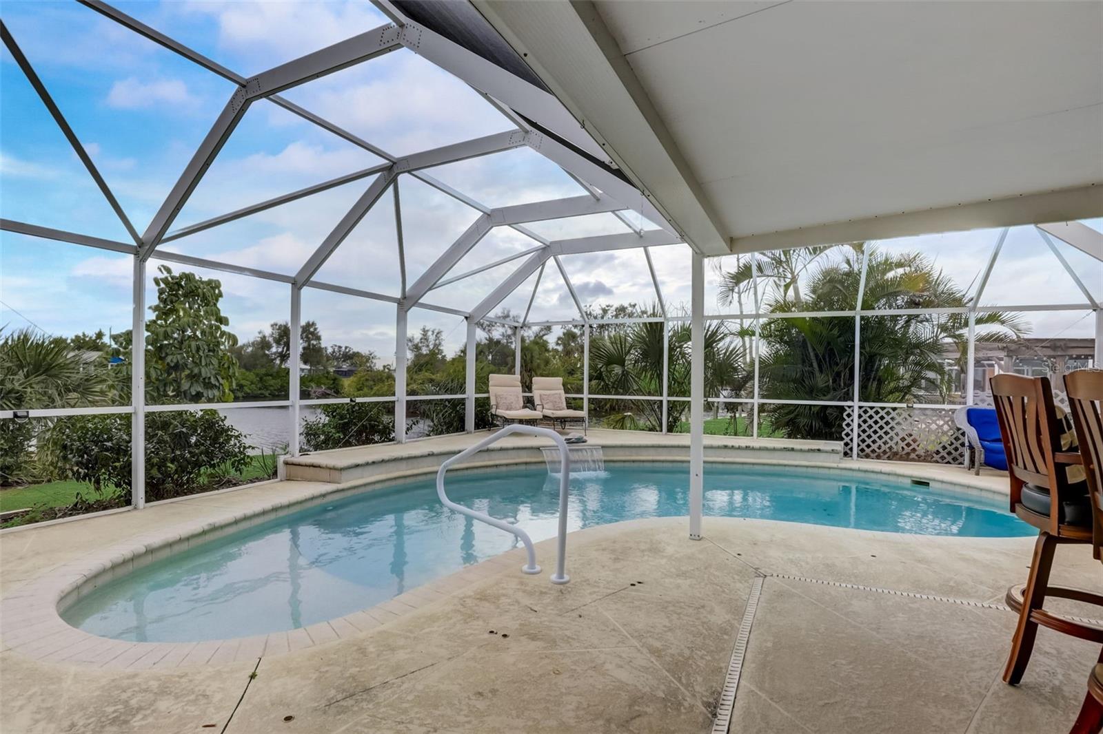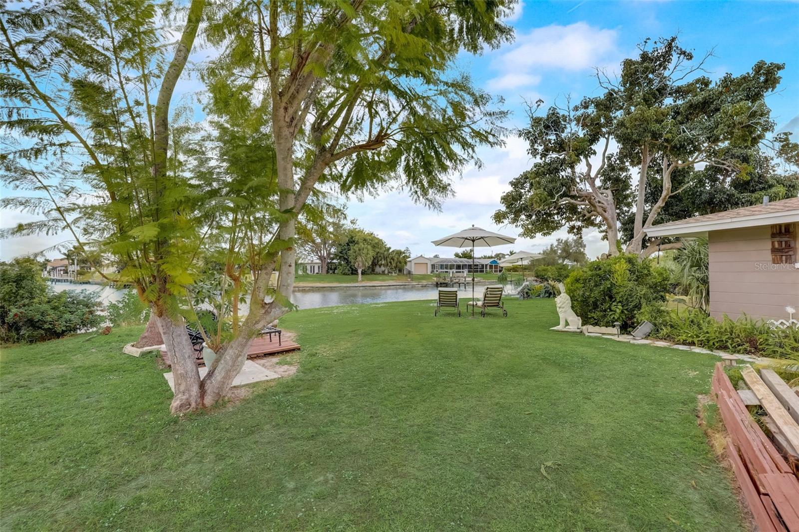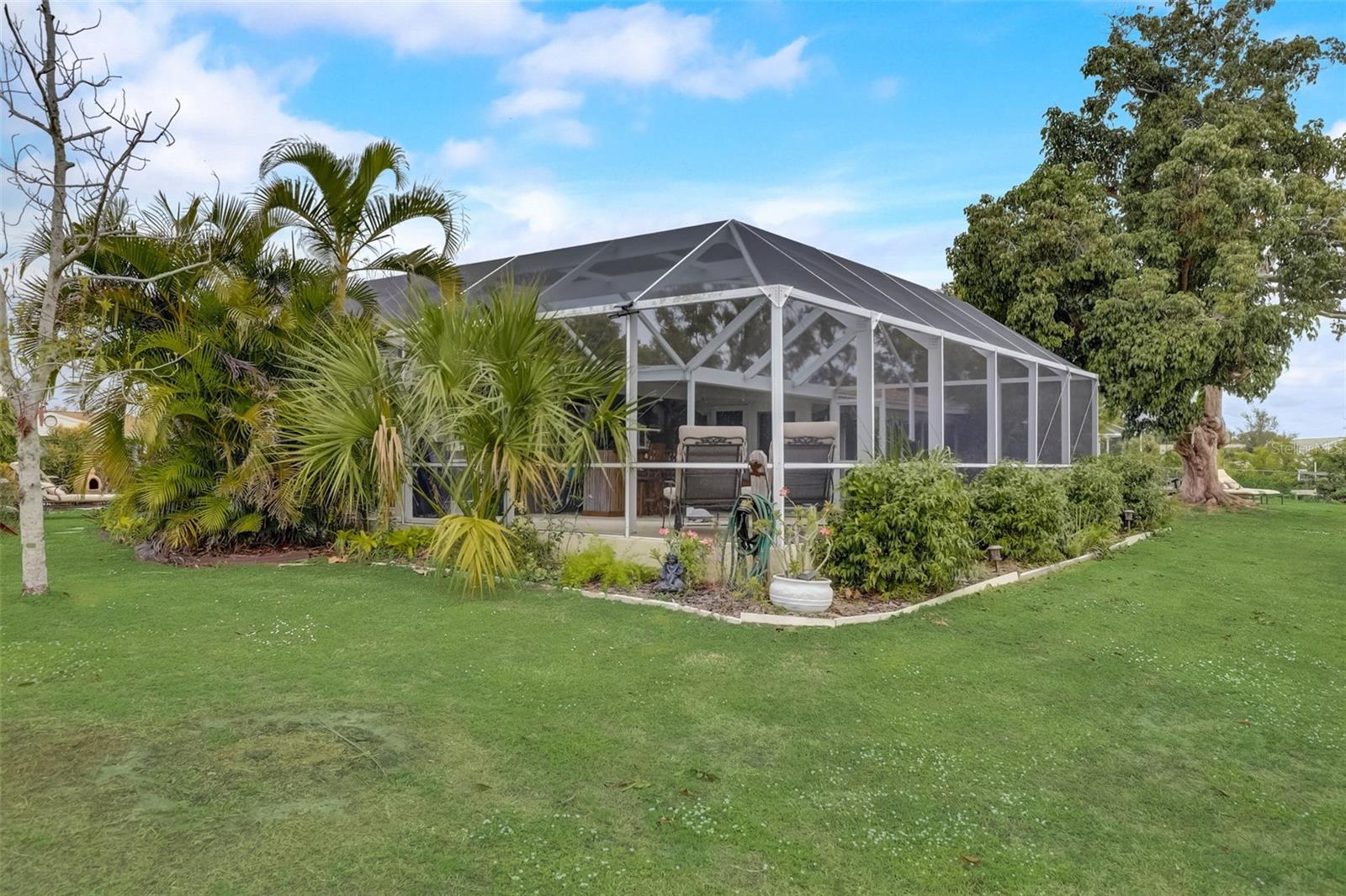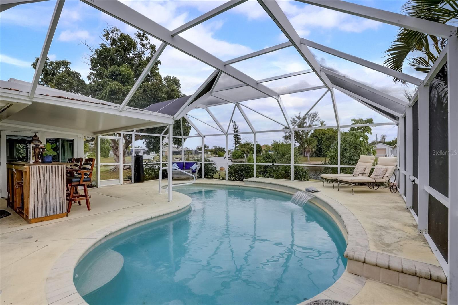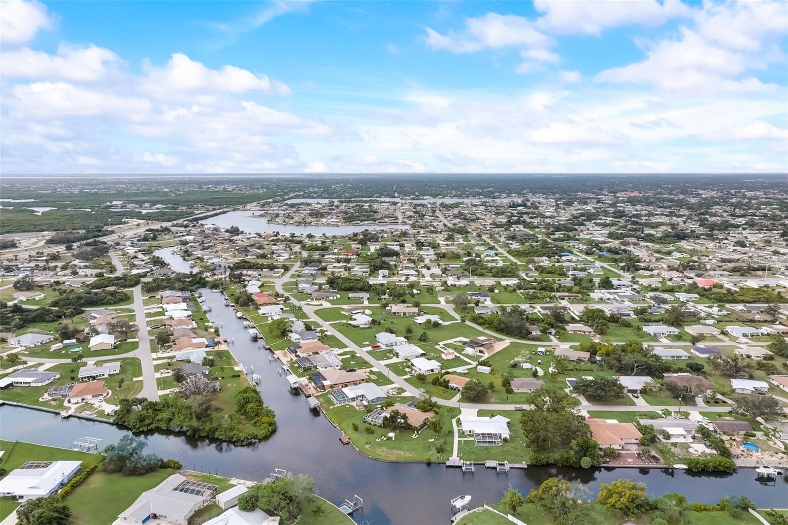Direct Gulf Access! Experience waterfront living at its finest with this exceptional tip lot property, boasting 185 feet of prime waterfrontage facing the Sunrise over four canal points. fully Renovated/Remodeled to perfection , the home features two master suites with luxurious bathrooms, a custom Hickory Wood accent ceiling, Miami-Dade hurricane-rated windows, hickory wood flooring, and solid core doors throughout. The gourmet kitchen is a chef’s dream with Level 4 quartz countertops throughout the home, high-end appliances, and soft-close wood cabinetry. Outdoor amenities include lush tropical landscaping, a concrete seawall, wood dock, custom pool area with a grilling space, and charming porch swings. Set on nearly half an acre—the largest sought after lot in the neighborhood—this property offers additional expansion potential and includes ample storage and an insulated shed. Located just 1/2 mile by boat to Charlotte Harbor and minutes from I-75, Punta Gorda, and Sunseeker Resort, this property seamlessly combines luxury, comfort, and convenience. A must-see to fully appreciate the craftsmanship and style.