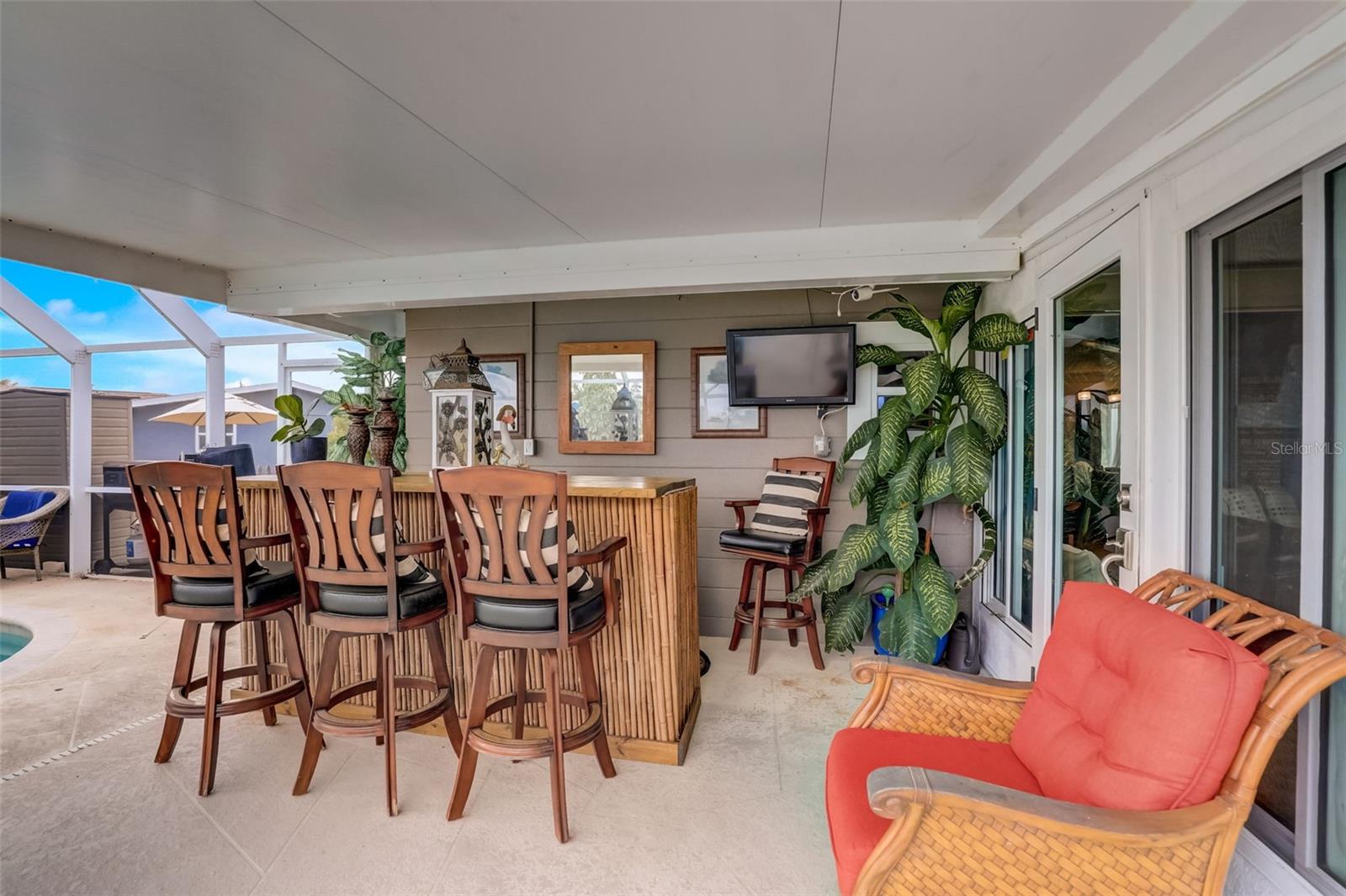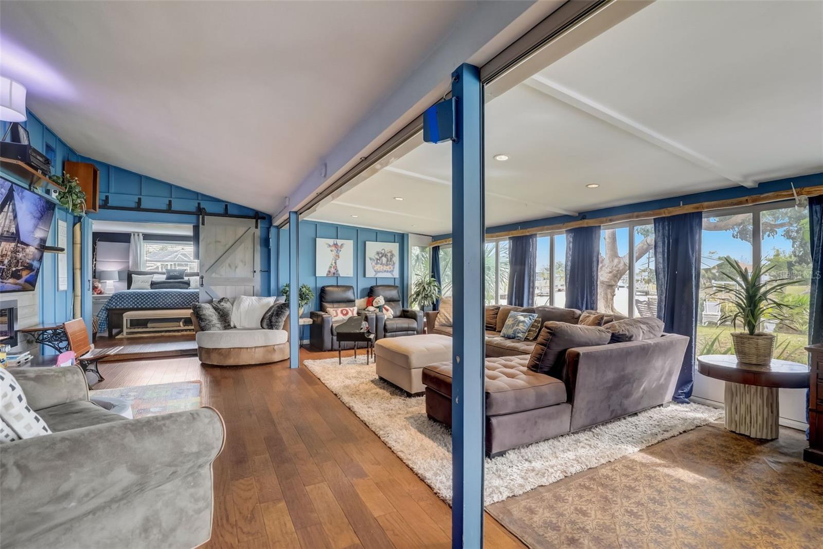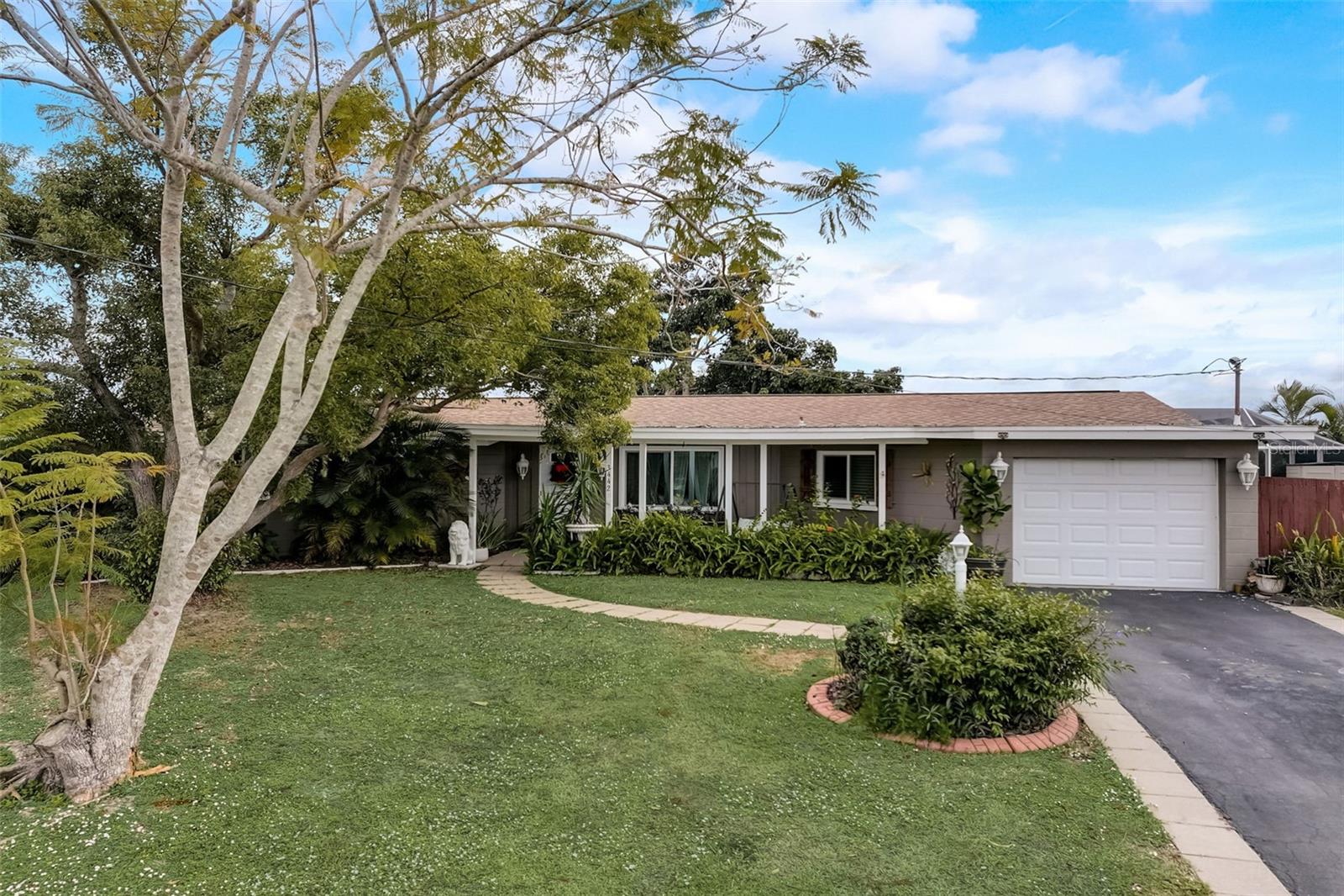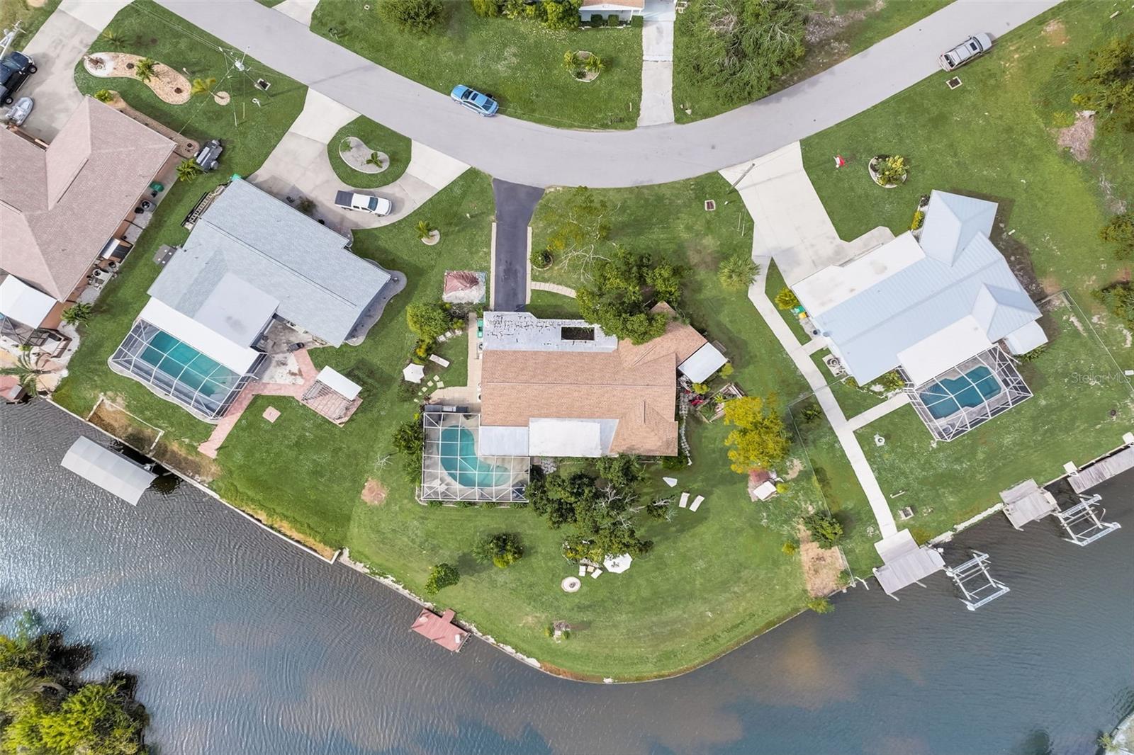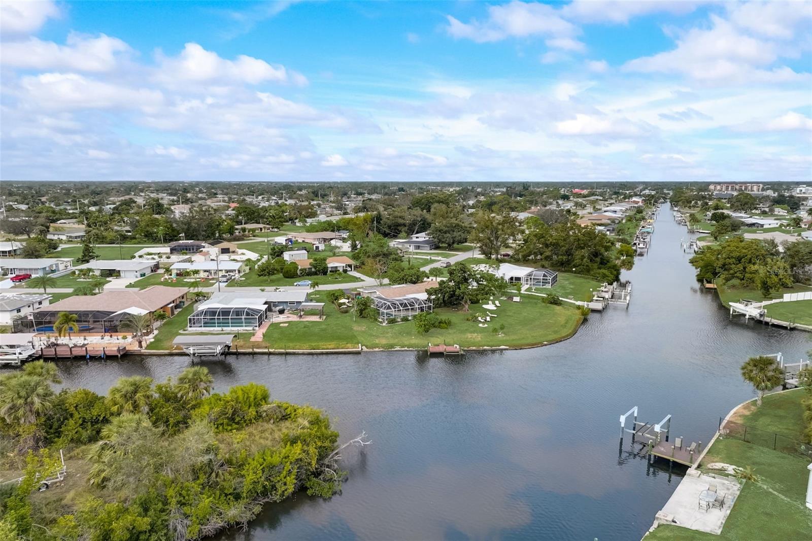 Direct Gulf Access! Experience waterfront living at its finest with this exceptional tip lot property, boasting 185 feet of prime waterfrontage facing the Sunrise over four canal points. fully Renovated/Remodeled to perfection , the home features two master suites with luxurious bathrooms, a custom Hickory Wood accent ceiling, Miami-Dade hurricane-rated windows, hickory wood flooring, and solid core doors throughout. The gourmet kitchen is a chef’s dream with Level 4 quartz countertops throughout the home, high-end appliances, and soft-close wood cabinetry. Outdoor amenities include lush tropical landscaping, a concrete seawall, wood dock, custom pool area with a grilling space, and charming porch swings. Set on nearly half an acre—the largest sought after lot in the neighborhood—this property offers additional expansion potential and includes ample storage and an insulated shed. Located just 1/2 mile by boat to Charlotte Harbor and minutes from I-75, Punta Gorda, and Sunseeker Resort, this property seamlessly combines luxury, comfort, and convenience. A must-see to fully appreciate the craftsmanship and style.