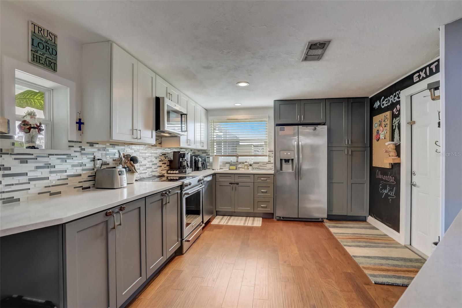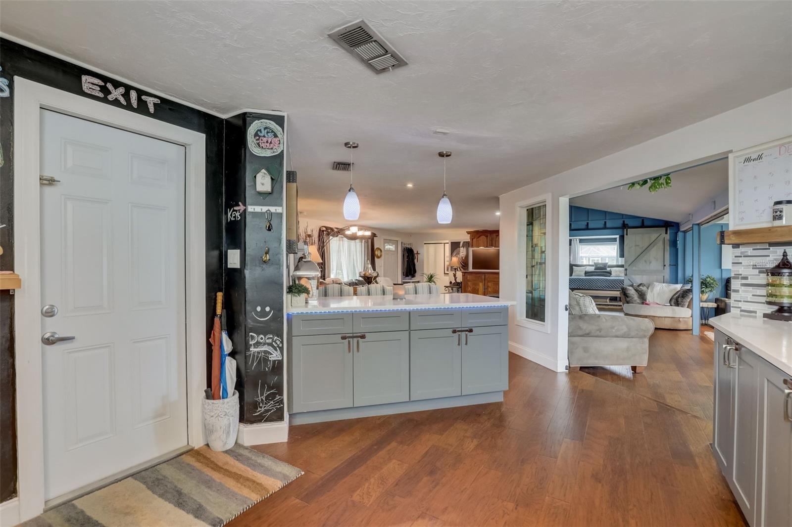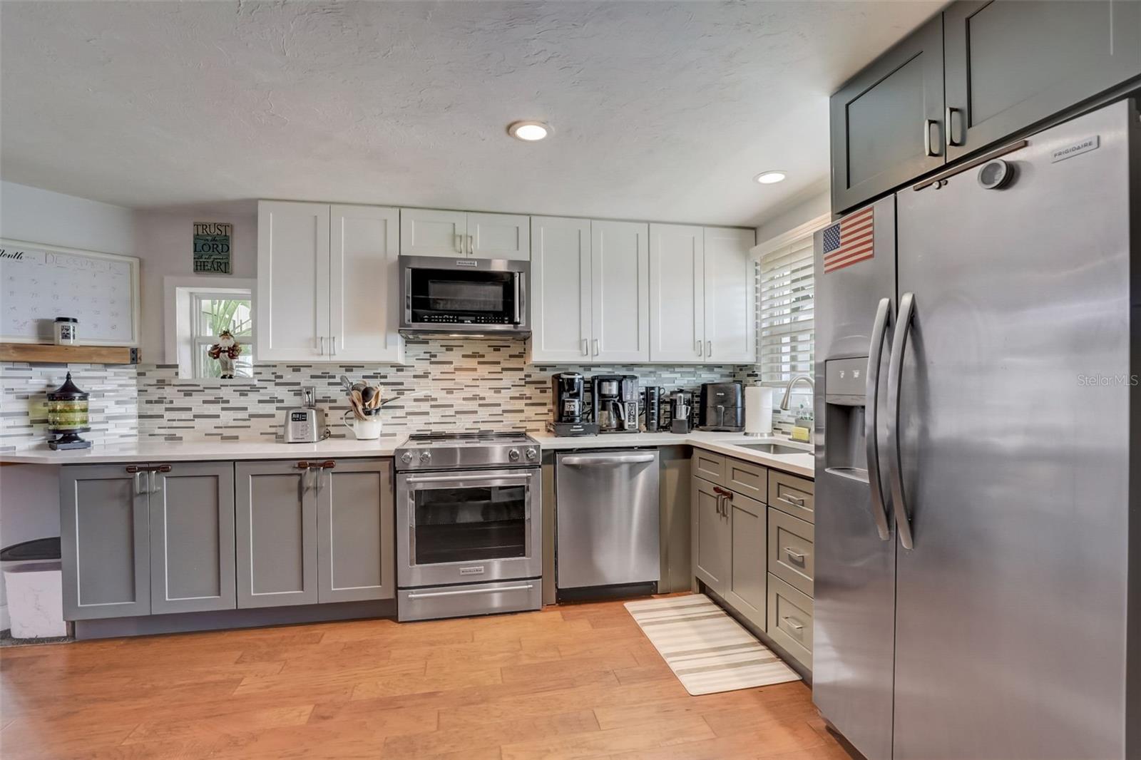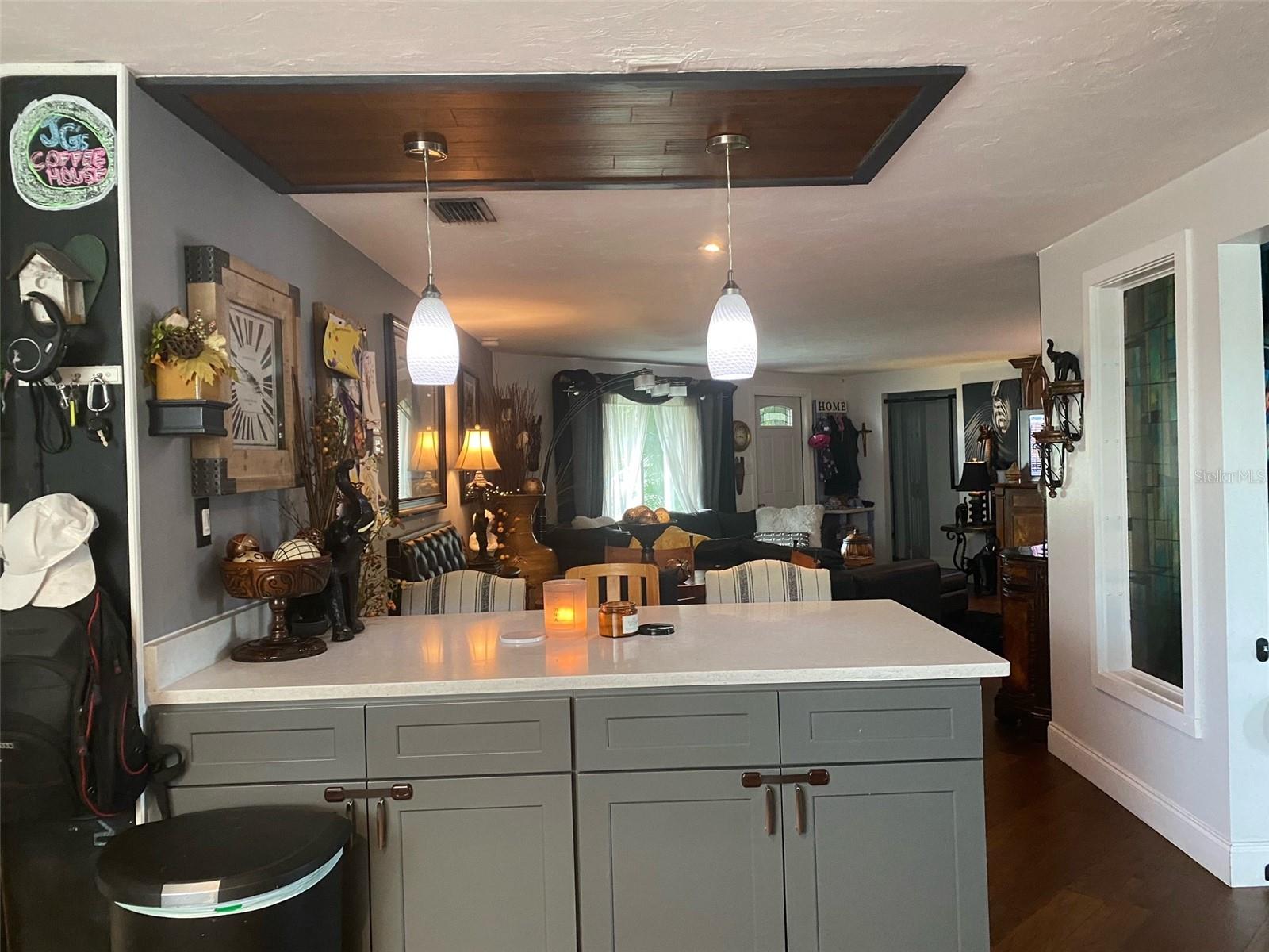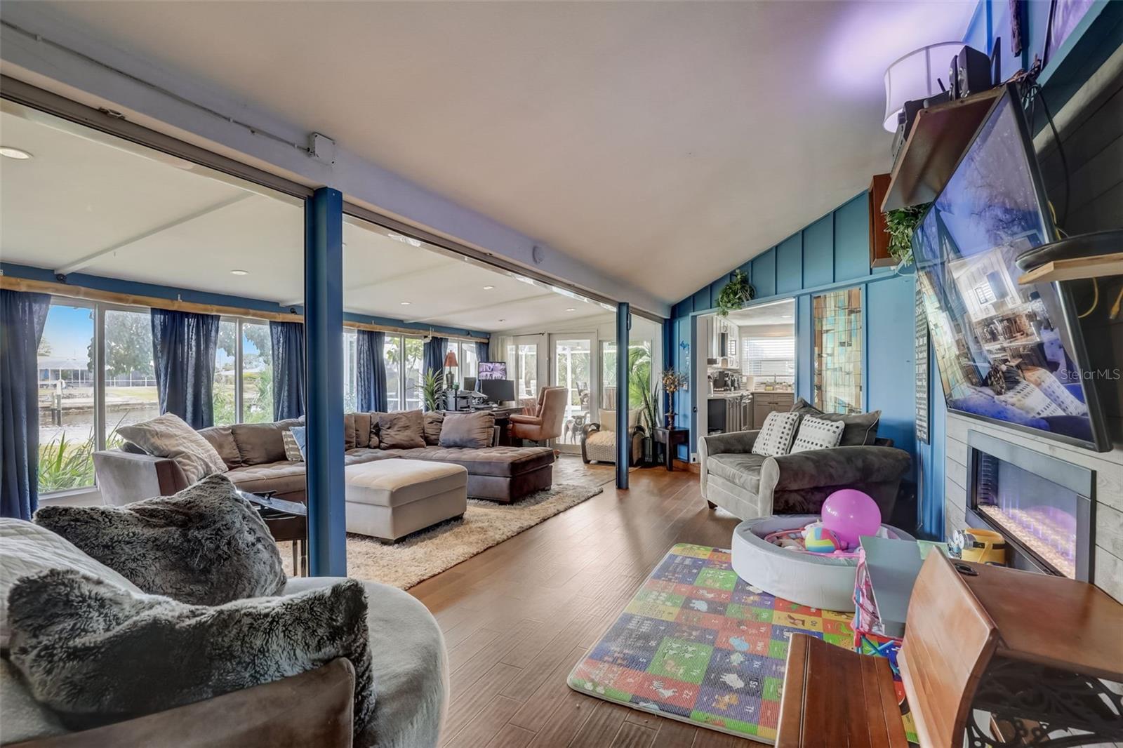 Direct Gulf Access! Experience waterfront living at its finest with this exceptional tip lot property, boasting 185 feet of prime waterfrontage facing the Sunrise over four canal points. fully Renovated/Remodeled to perfection , the home features two master suites with luxurious bathrooms, a custom Hickory Wood accent ceiling, Miami-Dade hurricane-rated windows, hickory wood flooring, and solid core doors throughout. The gourmet kitchen is a chef’s dream with Level 4 quartz countertops throughout the home, high-end appliances, and soft-close wood cabinetry. Outdoor amenities include lush tropical landscaping, a concrete seawall, wood dock, custom pool area with a grilling space, and charming porch swings. Set on nearly half an acre—the largest sought after lot in the neighborhood—this property offers additional expansion potential and includes ample storage and an insulated shed. Located just 1/2 mile by boat to Charlotte Harbor and minutes from I-75, Punta Gorda, and Sunseeker Resort, this property seamlessly combines luxury, comfort, and convenience. A must-see to fully appreciate the craftsmanship and style.
