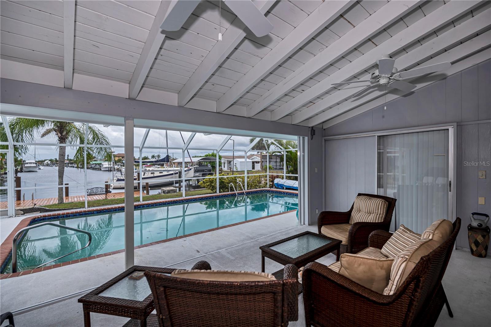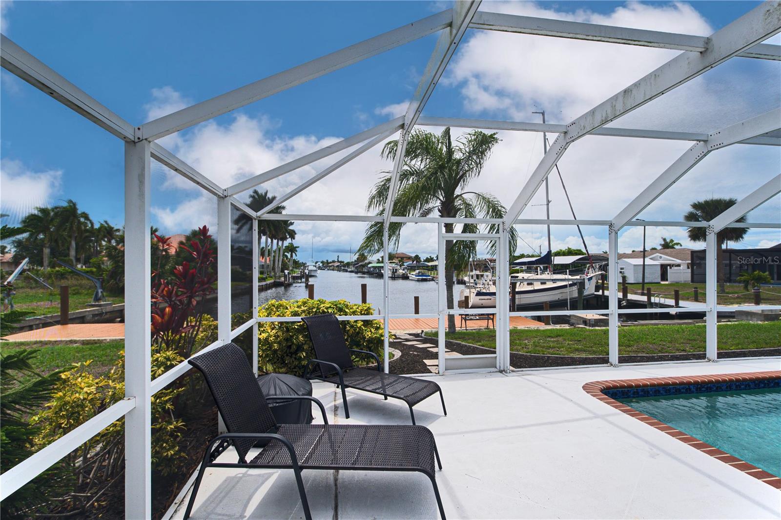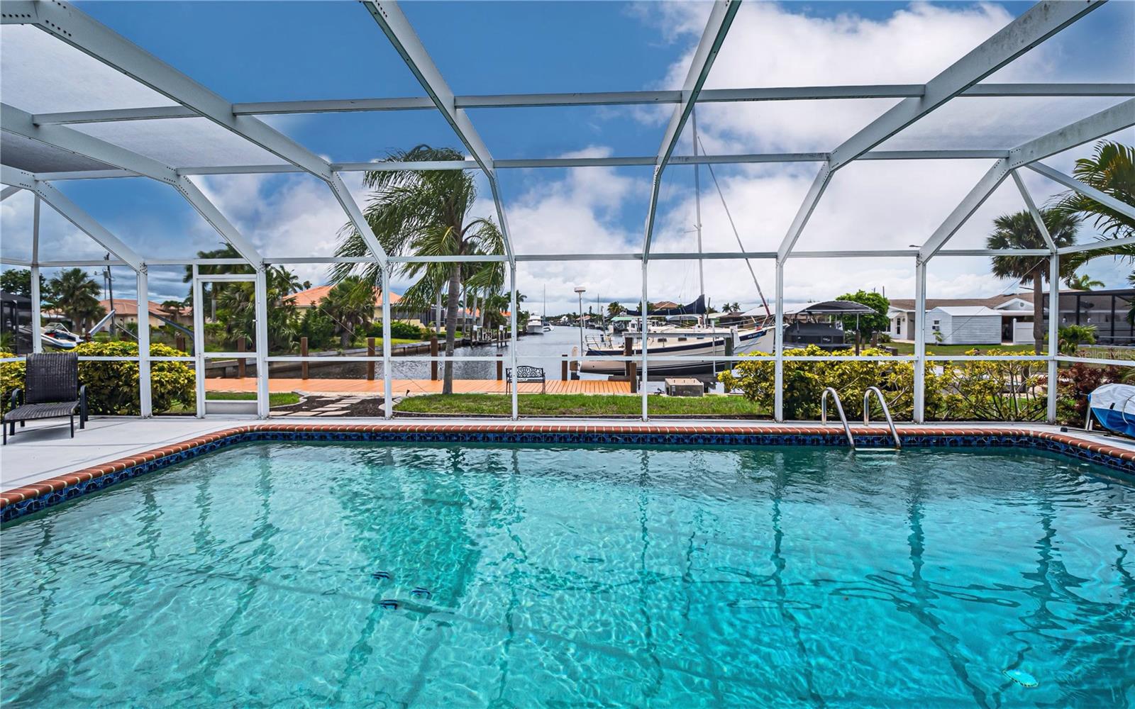 QUICK SAILBOAT ACCESS in highly sought after, distinguished BEACH AREA. This 3/2 POOL HOME on OVERSIZED LOT WITH 115ft WATER FRONTAGE with HUGE DOCK, over 70ft long, and ENDLESS VIEWS straight down the wide saltwater canal! With its convenient circular drive adding extra parking, this coastal style home is nicely updated and with sharp restored terrazzo floors throughout. Only a short walk or bike ride to the beach and all its amenities, this excellent split plan home is welcoming with rich concrete curbing, BRAND NEW ROOF plus insures peace of mind with HURRICANE ACCORDIAN SHUTTERS AND IMPACT WINDOWS THROUGHOUT. Chef worthy kitchen will satisfy all your entertaining needs with rich upgrades, stunning granite countertops with matching backsplash, abundant raised shaker cabinets , sleek black appliances and convenient pass through to the pool. Adjacent to the kitchen, you will find a separate dining room and spacious family room complete with a fireplace, entertainment center built in and lots of natural light ebbing in from one of the 4 pocketing sliders, so easy to simply enjoy the cool breezes off the harbor straight through the home, this certainly is Florida living. The master bedroom is large with nice sized closet and ensuite bathroom, also updated nicely with a retro/coastal feel and has private patio/pool access. Both guest suites will have company very comfortable sharing a spa like bathroom with nice cabinetry and raised designer bowl. With picturesque saltwater views, the sparkling pool will be a favorite to cool off and enjoy with family or friends immersed in the nature close up and personal, BRAND NEW SCREENS, easy accordion shutters and plenty of covered area to relax anytime day or night. BRING YOUR EXTRA BIG SAILBOAT, this 62 foot pressure treated dock is HUGE, plus there is a 10,000 lb lift and a whopping 115 feet of seawall that checked out great this year, a FISHERMANS/BOATERS PARADISE! In the area of quick harbor access homes worth millions more, the Port Charlotte Beach is a favorite biking area, with boat ramp, heated pool, both bocce ball and horseshoe pits, tennis courts, volleyball, playground, boardwalk, fishing pier, pavilions, picnic areas and recreation center, dog friendly and INCREDIBLE SUNSETS! Close to historic downtown Punta Gorda, sunseeeker resort, dining, farmers markets, festivals, PG Airport, shopping and more. Don't let this great SALTWATERFRONT opportunity disappear, a must see so hurry to schedule your showing TODAY!