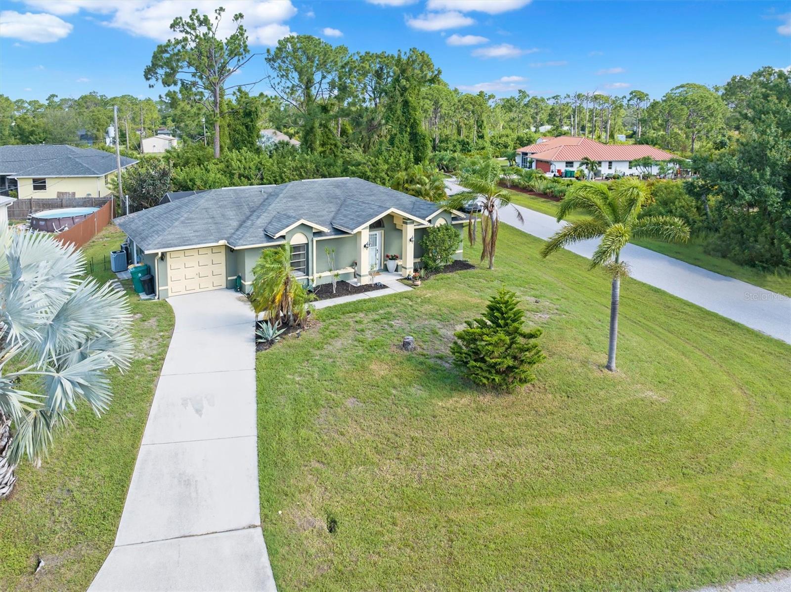 This remarkable home at 5375 Joslyn Ter in Port Charlotte, FL, is your opportunity to settle into a resilient and welcoming community situated on a corner lot in the coveted Gulf Cove neighborhood. The captivating curb appeal, highlighted by the painted trim, garage door, and ornamental window above the front door, will impress your guests from the moment they arrive. Step inside and be greeted by pattern tile flooring and soaring cathedral ceilings that create an inviting atmosphere. The spacious living room is perfect for watching the big game, while the formal dining room offers a beautiful view of the pool and lanai for those special gatherings. For more casual meals, the dining nook on the other side of the kitchen is an ideal spot. The kitchen has been updated with brand new appliances! It is a chef's delight, featuring a closet pantry and ample cabinet space to keep your granite counters clutter-free. Hosting is effortless with the breakfast bar for morning coffee and a pass-through window to serve snacks to guests on the lanai. Enjoy the Florida sunshine on the lanai, play a game of cards, or lounge year-round in the heated pool with your favorite beverage. The large backyard is perfect for games like cornhole or catch, and the fenced-in area provides space for a dream garden or a playground for your pets. When it's time to unwind, the primary suite offers a private retreat with a walk-in closet and an en-suite bathroom featuring a luxurious tile backsplash. Two guest bedrooms and an additional bathroom with tile backsplash ensure your guests are comfortable, or you can transform one of the bedrooms into a home office, craft room, or any space you desire. The bedrooms have been updated with luxury plank flooring and a fresh coat of paint! Located near the scenic Myakka River, Gulf Cove offers an optional HOA for access to the community boat ramp and park with a playground. Enjoy easy access to 776, a variety of dining and shopping options, and a short drive to Englewood and Manasota Beaches, Boca Grande, numerous golf courses, world-class boating and fishing, and two Major League Baseball Spring Training stadiums. Seller recently changed changed out the electrical panel! Don't miss out on this incredible opportunity. Call now to book your showing!
