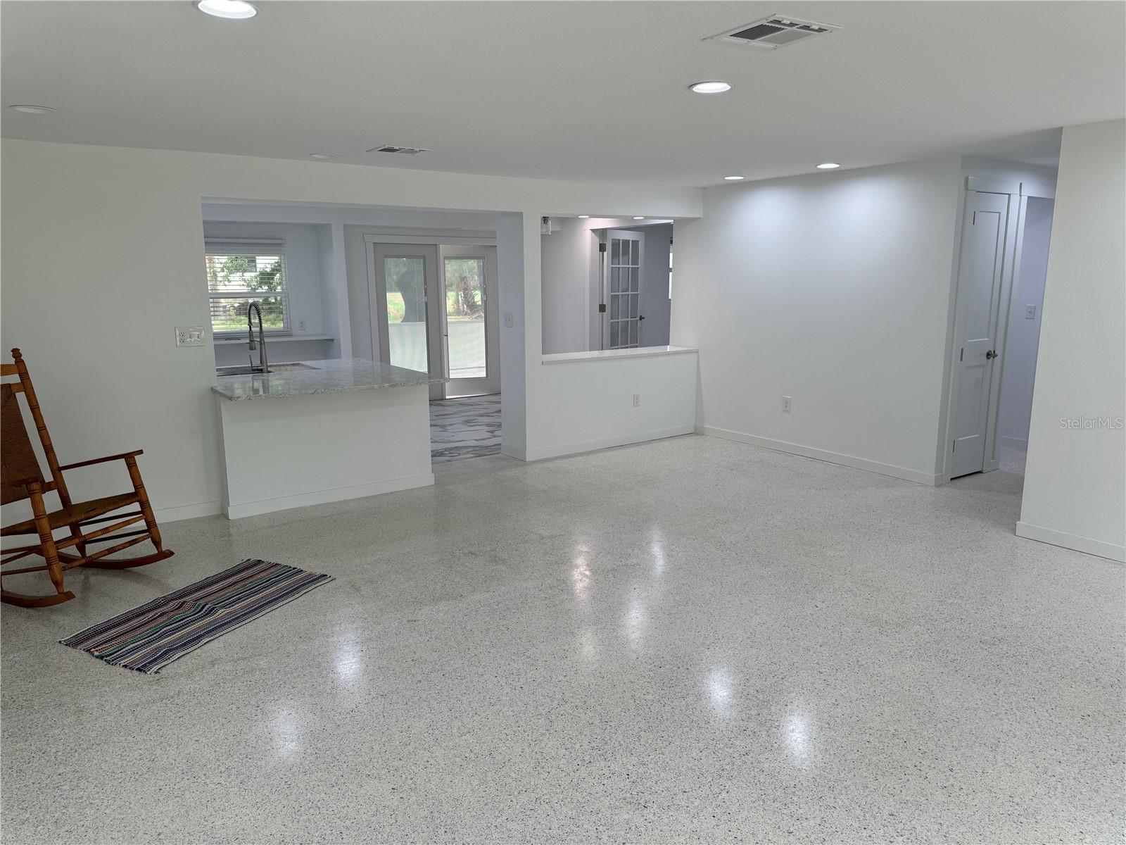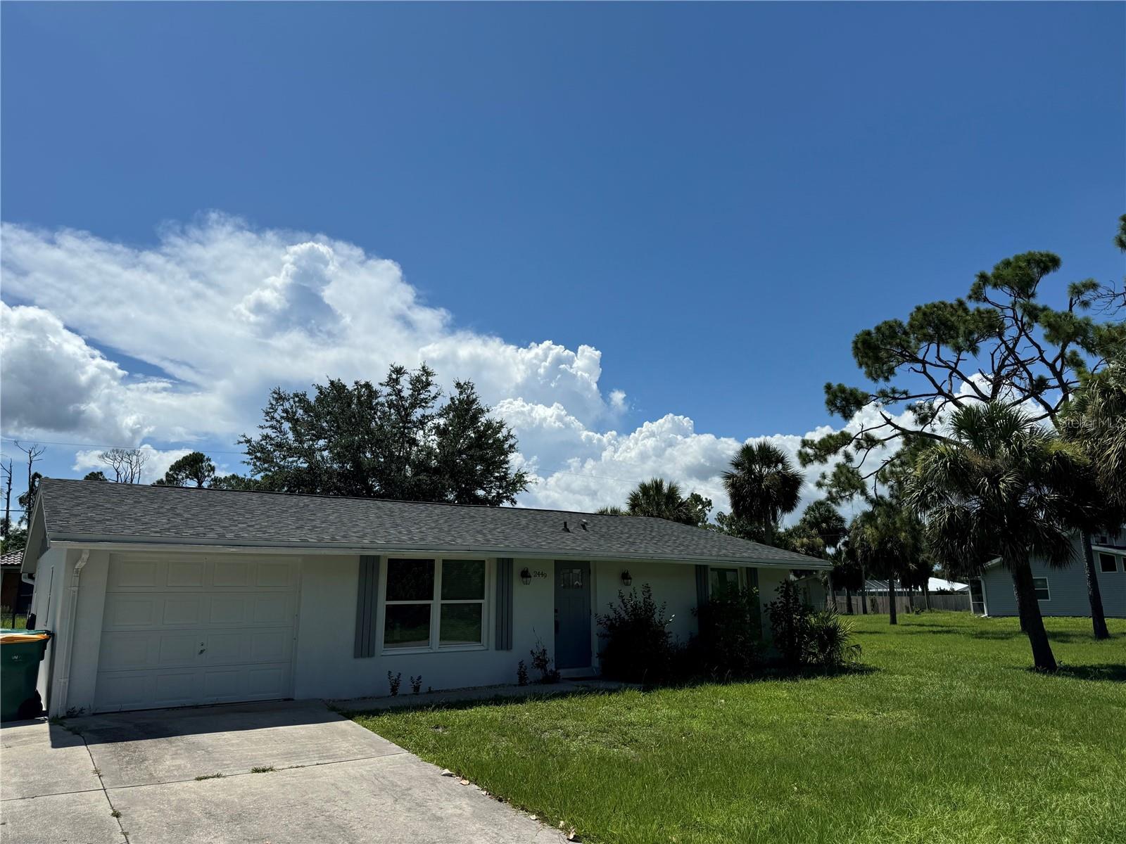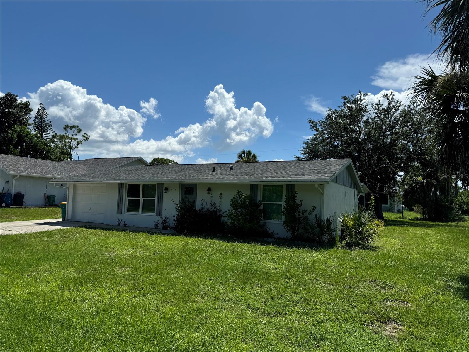 Welcome to your new home! Nestled in a serene neighborhood, this gem is waiting to embrace you with its charm and comfort. As you enter, see the clean slate of sophistication, feast your eyes on the Terrazzo flooring throughout and the gorgeous porcelain tile in the kitchen-dining area. Step into a world of tranquility as you enter this completely remodeled 2-bedroom, 2-bathroom haven. Just move in and decorate! With 1-car garage and outdoor concrete pad for your boat or toys. Discover a spacious living, dining and kitchen area, that creates an open ambiance for entertainment. The heart of this home lies in its stunning state-of-the-art custom kitchen. It’s custom built elegant high gloss cabinet finish, with dovetailed wood drawers and self/soft closing concealed hardware. It is adorned with Quartz countertops, a sleek tile backsplash and all new stainless-steel appliances. Hosting a get together? Utilize the pass-through window with a serving counter that seamlessly connects the kitchen to the screened lanai, making entertaining a breeze. This worry-free concrete block home has been recently painted inside and outside. Has new hurricane Impact rated windows and doors throughout, as well as a new roof with supplemental water barrier and 165MPH architectural shingles including new rated soffits. Complete inside laundry room with new washer/dryer, on demand water heater for continuous hot water, and beautiful cabinetry adding a touch of convenience! When it's time to unwind, retreat to the spacious master bedroom with its own his and her closet. Pamper yourself in the master bath, featuring a walk-in shower that's perfect for washing away the stresses of the day. Your guests will feel right at home in the guest bedroom as well. With its prime location near schools, shopping, and restaurants, convenience is at your fingertips, even a quiet walk at Ollie’s Pond! Outside, enjoy the newly screened in lanai, offering a peaceful oasis for relaxation or play in the yard. Don’t miss your chance to make this dream home yours. Schedule a showing today and start living the life you deserve!