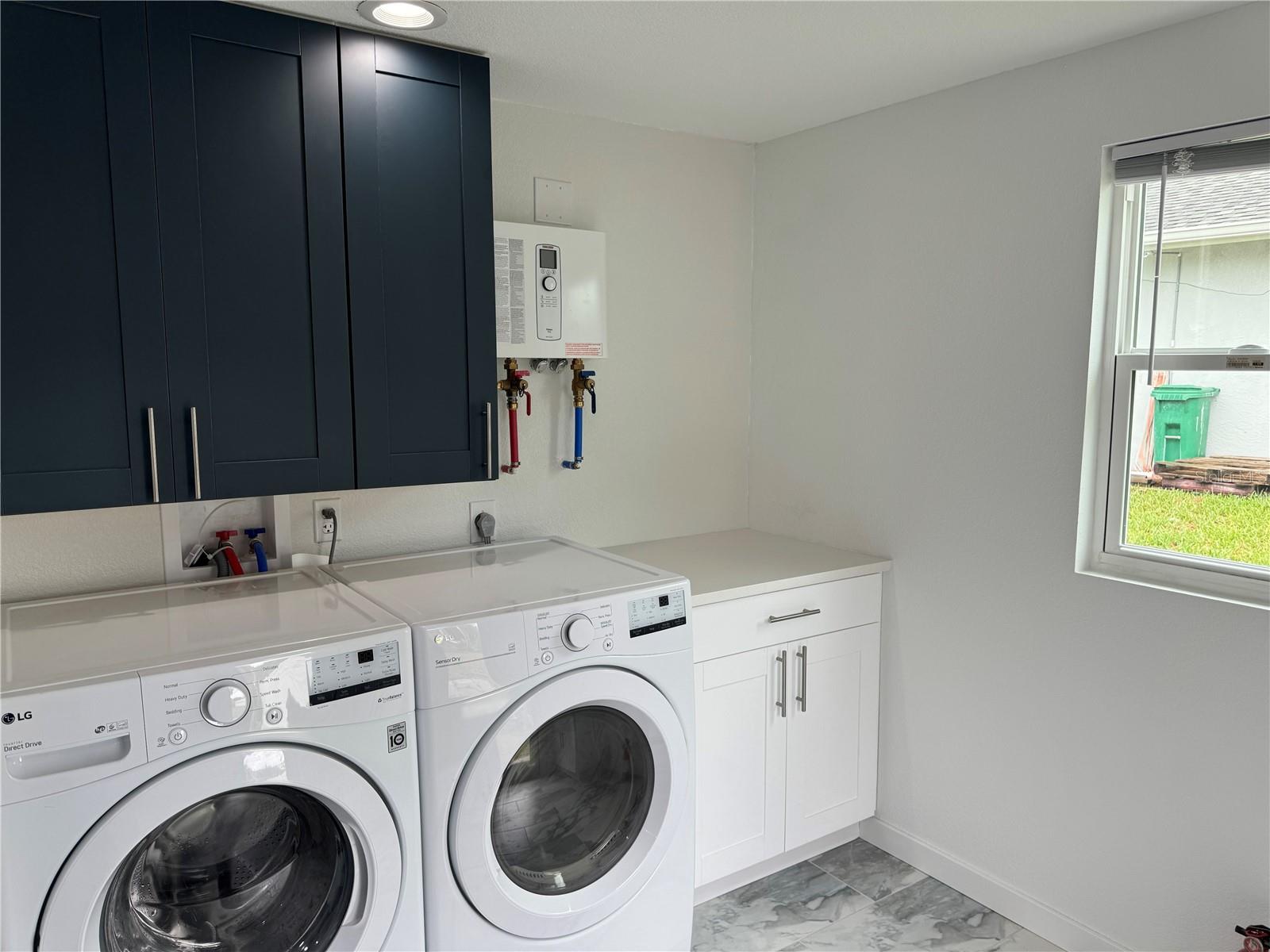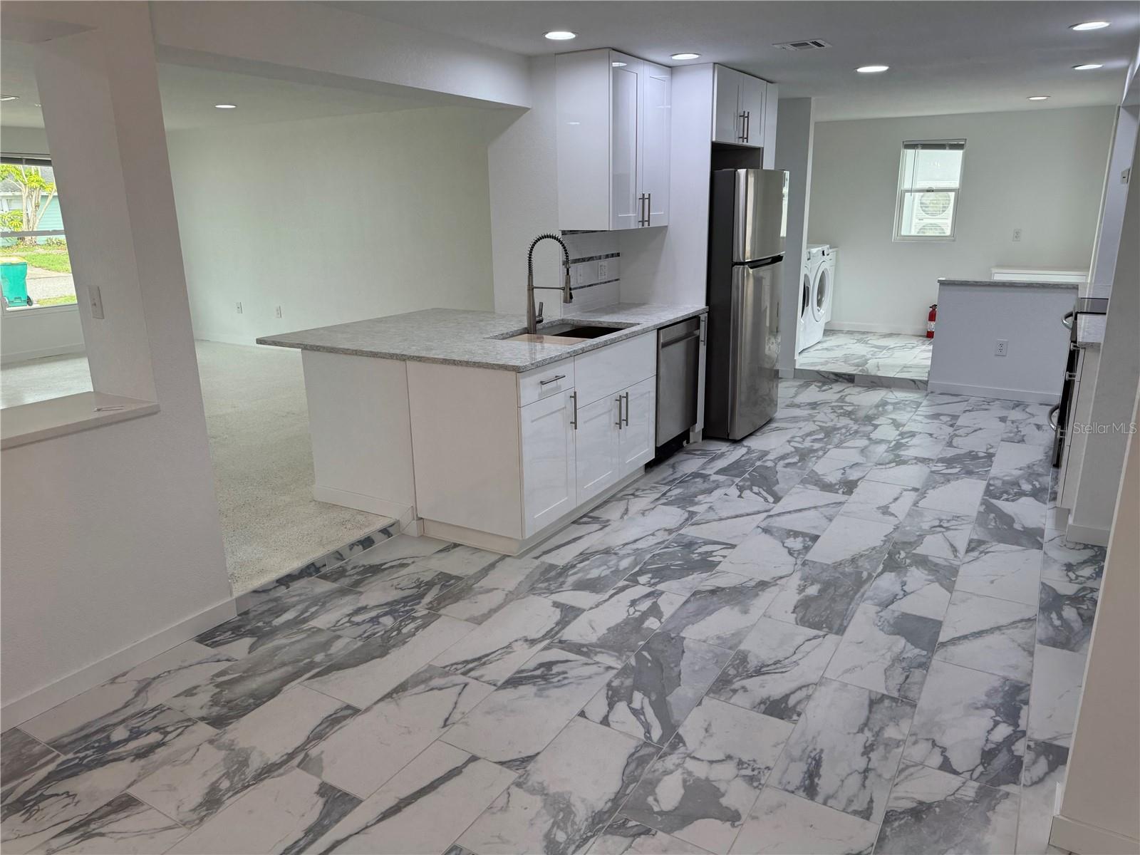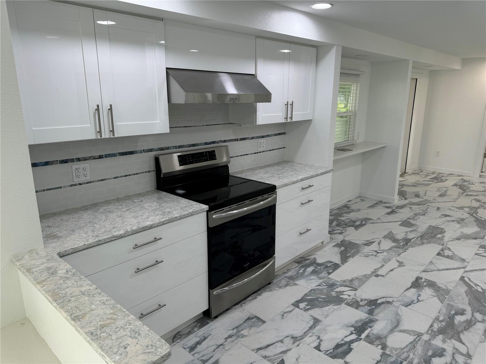 Welcome to your new home! Nestled in a serene neighborhood, this gem is waiting to embrace you with its charm and comfort. As you enter, see the clean slate of sophistication, feast your eyes on the Terrazzo flooring throughout and the gorgeous porcelain tile in the kitchen-dining area. Step into a world of tranquility as you enter this completely remodeled 2-bedroom, 2-bathroom haven. Just move in and decorate! With 1-car garage and outdoor concrete pad for your boat or toys. Discover a spacious living, dining and kitchen area, that creates an open ambiance for entertainment. The heart of this home lies in its stunning state-of-the-art custom kitchen. It’s custom built elegant high gloss cabinet finish, with dovetailed wood drawers and self/soft closing concealed hardware. It is adorned with Quartz countertops, a sleek tile backsplash and all new stainless-steel appliances. Hosting a get together? Utilize the pass-through window with a serving counter that seamlessly connects the kitchen to the screened lanai, making entertaining a breeze. This worry-free concrete block home has been recently painted inside and outside. Has new hurricane Impact rated windows and doors throughout, as well as a new roof with supplemental water barrier and 165MPH architectural shingles including new rated soffits. Complete inside laundry room with new washer/dryer, on demand water heater for continuous hot water, and beautiful cabinetry adding a touch of convenience! When it's time to unwind, retreat to the spacious master bedroom with its own his and her closet. Pamper yourself in the master bath, featuring a walk-in shower that's perfect for washing away the stresses of the day. Your guests will feel right at home in the guest bedroom as well. With its prime location near schools, shopping, and restaurants, convenience is at your fingertips, even a quiet walk at Ollie’s Pond! Outside, enjoy the newly screened in lanai, offering a peaceful oasis for relaxation or play in the yard. Don’t miss your chance to make this dream home yours. Schedule a showing today and start living the life you deserve!
