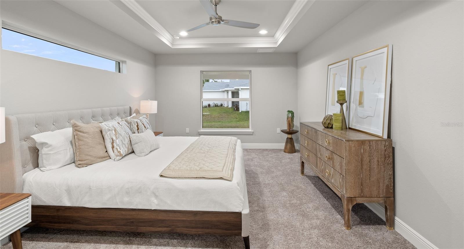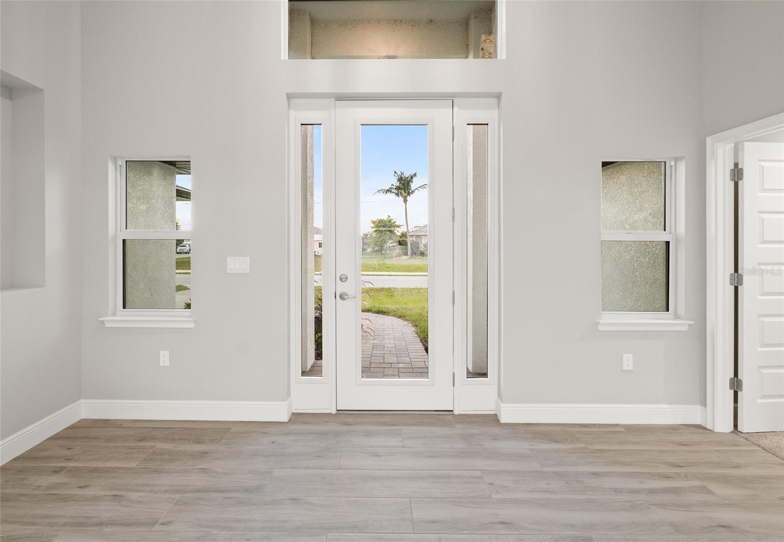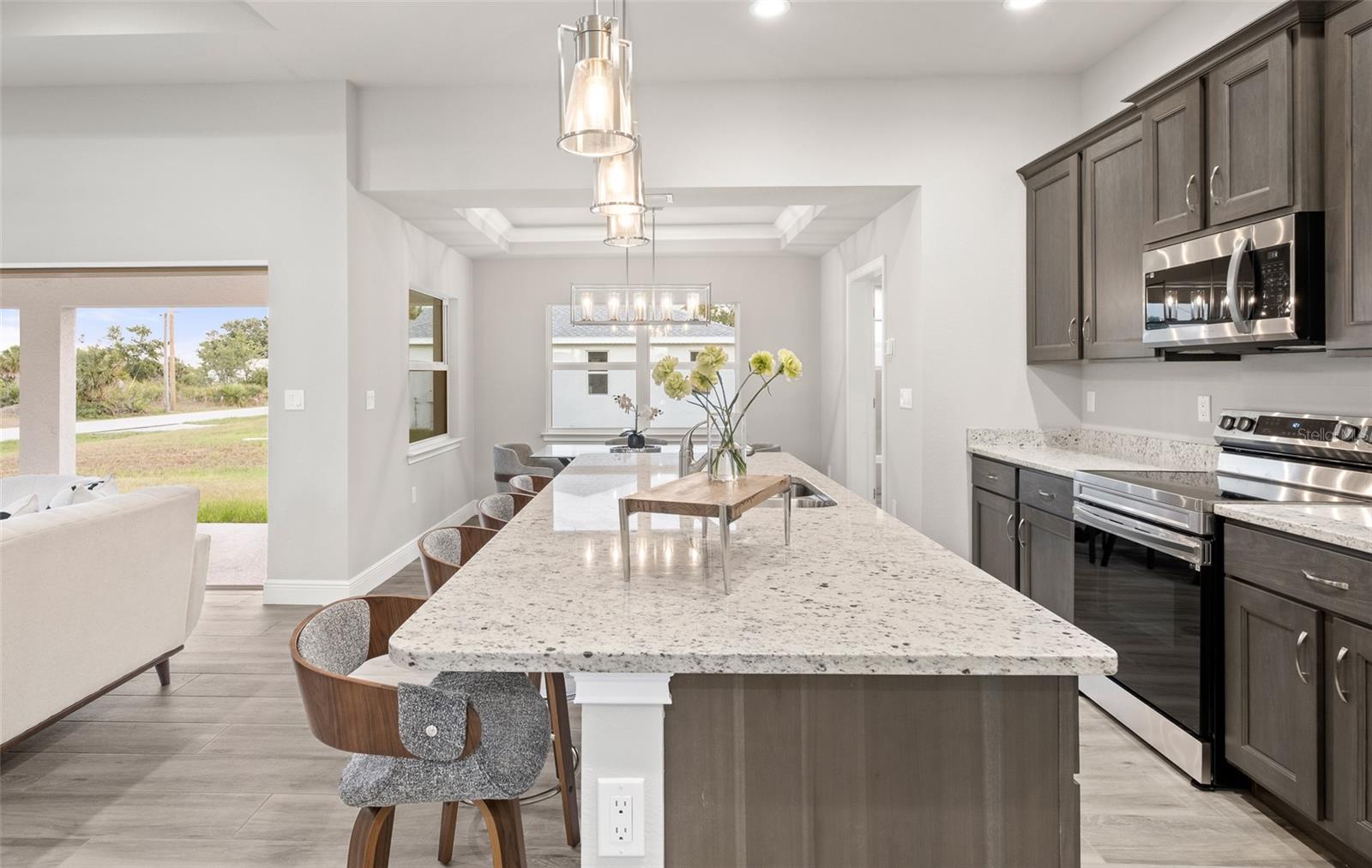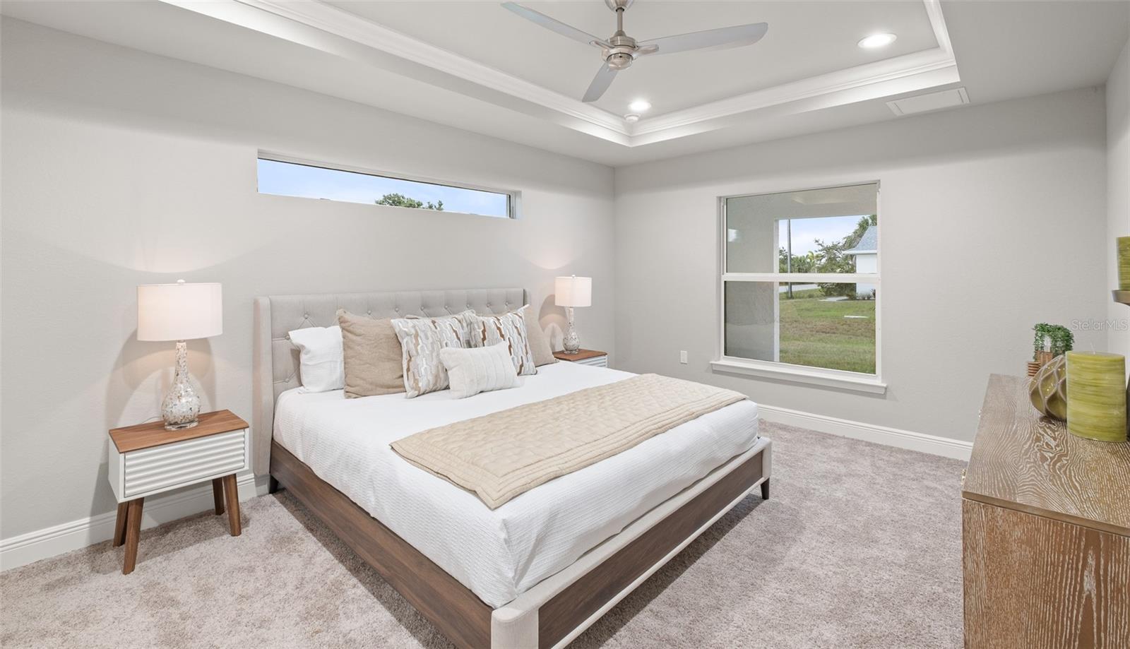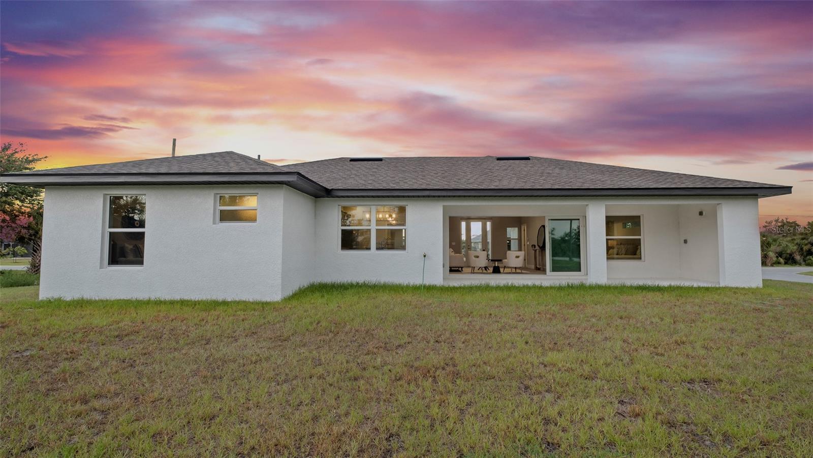 BRAND NEW, COMPLETED, MOVE-IN READY, NO WAITING. PLEASE SEE THE VIDEO TOUR!! . This is the Turnberry model from Harbor Home Builders. Three-bedroom, two-bathroom, two car garage home on a corner lot in South Gulf Cove. 12-foot Entry opens to living room with art niche, coffered ceilings, 20" porcelain tile and glass sliding doors opening to Lanai. Impact windows throughout. The Kitchen features a 9-foot granite island with double stainless sink, designer drop lighting, granite countertops and solid wood cabinetry with soft close doors and drawers. Master bedroom features trayed ceiling with can lighting and designer fan, transom window, walk-in closet plus second closet. Master bathroom with walk-in tiled shower with waterfall glass backsplash, twin vanities with solid wood soft close cabinets and granite counters, water closet and linen closet. 27' x 9' lanai features entertainment wall with rough-in plumbing for future outdoor kitchen, electrical outlets and cable outlet. Brick Pavered driveway with pavered walk to front door.
