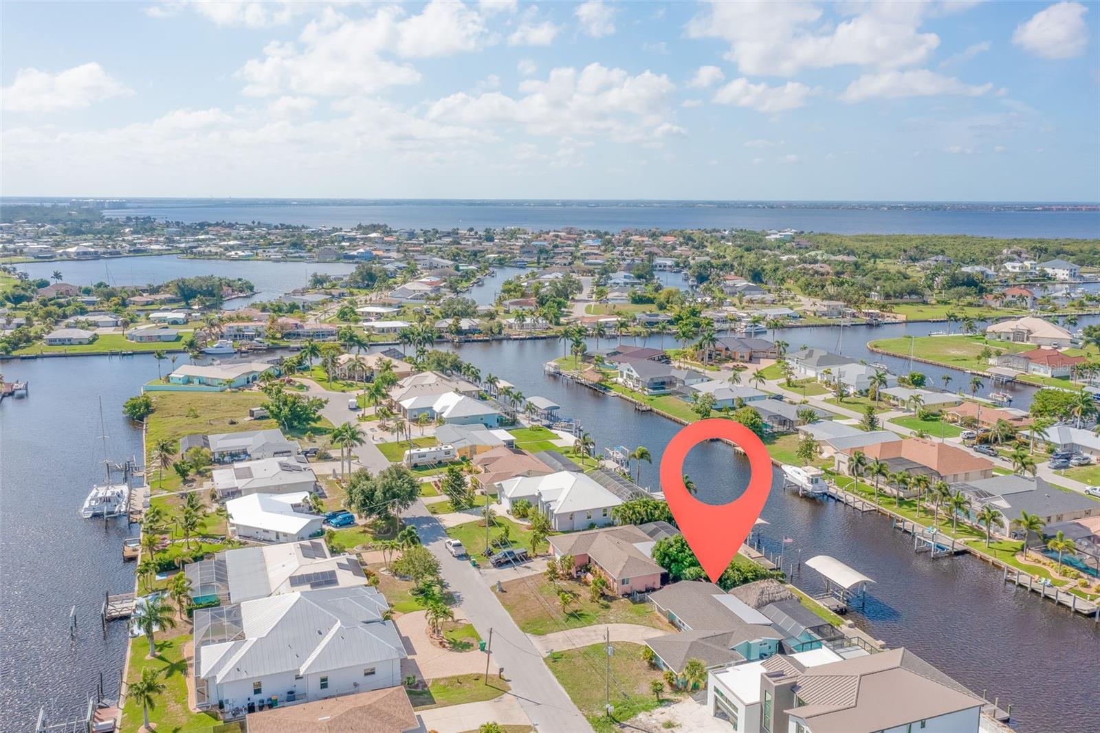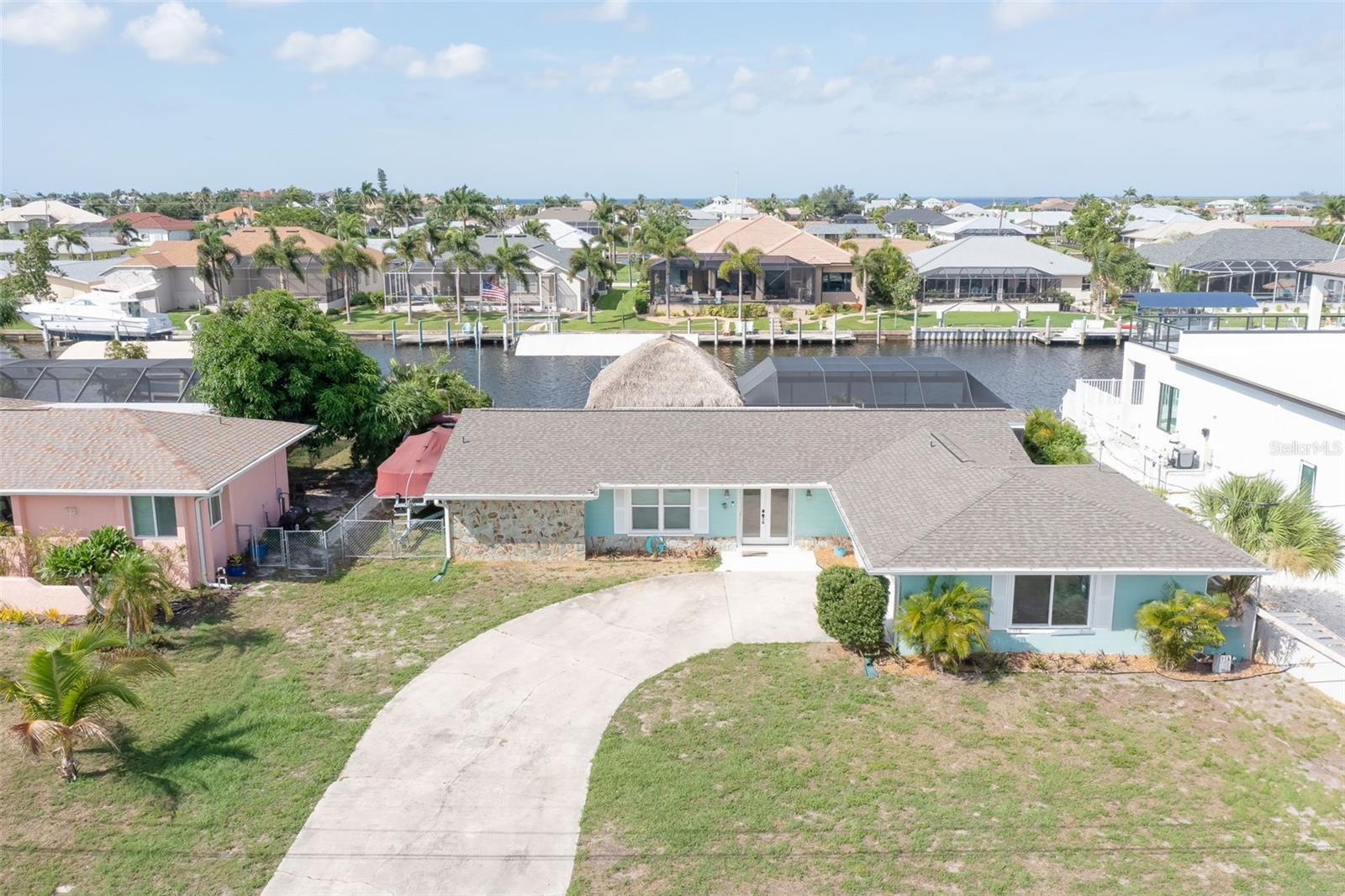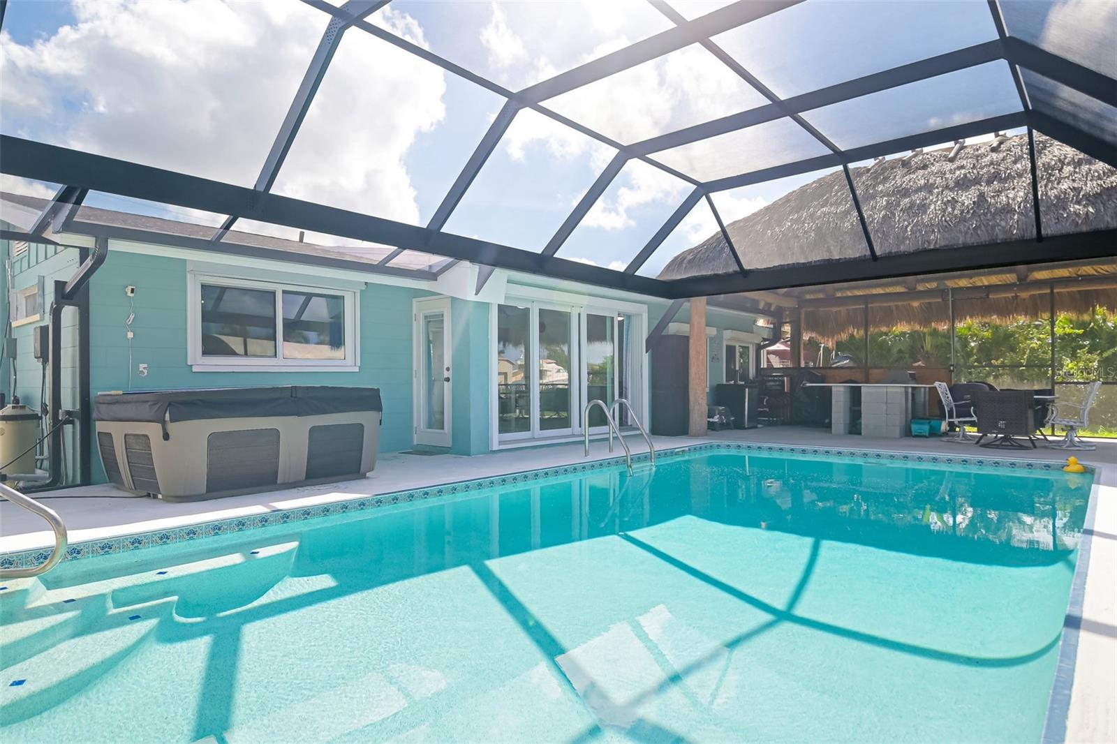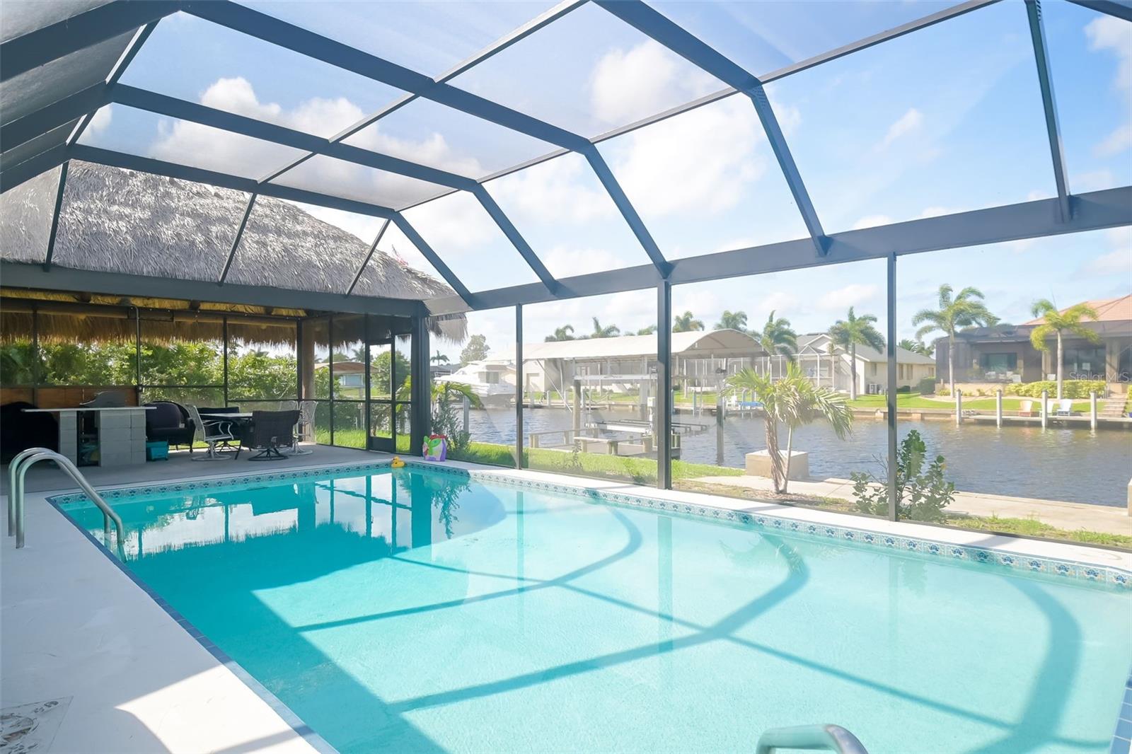 Welcome to this beautiful 3 bed - 2 bath - pool home in Port Charlotte, FL. - New Roof, New AC, New Premium Pool cage, Hurricane Impact Windows with roll down shutters! Prepare your favorite beverage at the dry bar, and spend your time relaxing on the deck of your new saltwater pool, soaking in the hot tub, or relaxing under the 17 x 23 Tiki Hut. Enjoy this direct gulf access, deep sailboat canal (situated off of Alligator Bay)-searching for your favorite aquatic life, sailing, fishing, or sunbathing. Return from your boating trips to your trex-dock with 10,000-pound boat lift , water, and electricity making it easy to clean your boat, your fish, or your beach toys! This split floor plan is perfect for your family and friends to share the meaning of Florida living with the primary bedroom set apart from the guest rooms. Enjoy family time, cooking, or playing games around the large island in the newly updated kitchen while overlooking the pool and beautiful outdoor living space. Centrally located, this home is ideally positioned near ShorePoint Hospital (5 min), local restaurants, hotels, downtown Punta Gorda, Fisherman's Village and Charlotte Harbor (10-15 min by boat or car!!), beautiful beaches ( 30-45 min,) and Rays and Braves Spring Training Stadiums. Don’t miss the opportunity to make this tropical waterfront dream home your own! - Schedule your showing to make this home and its complete outdoor oasis ready for your daily get-aways, pool parties, and or family gatherings!