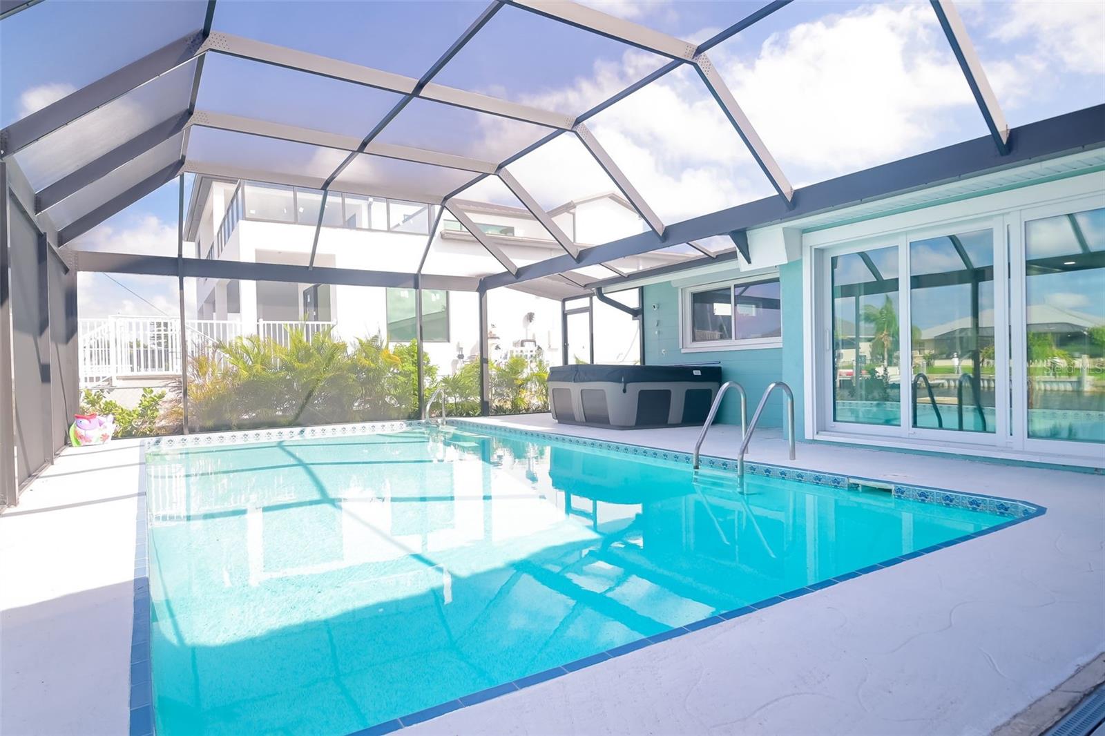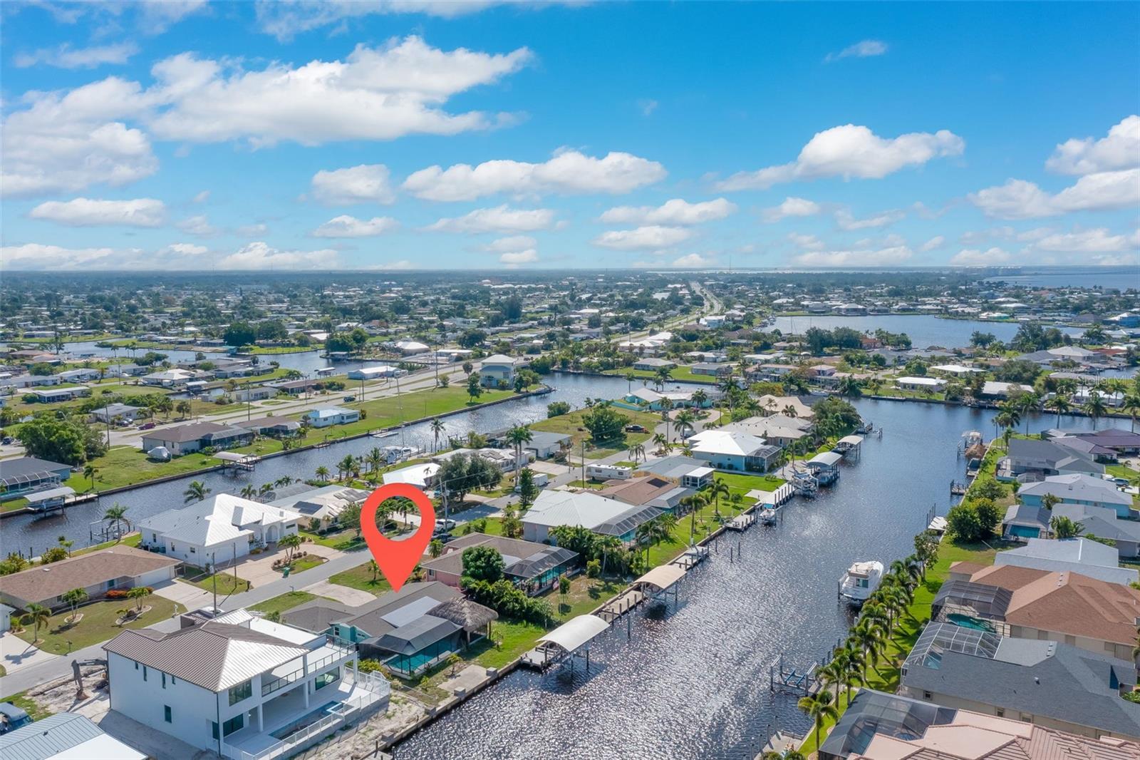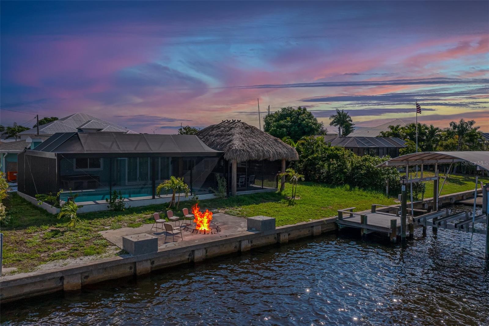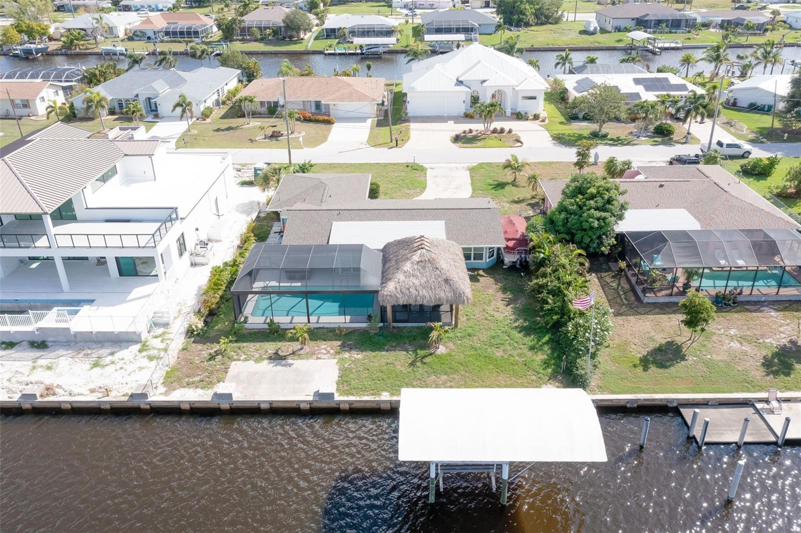 Welcome to this beautiful 3 bed - 2 bath - pool home in Port Charlotte, FL. - New Roof, New AC, New Premium Pool cage, Hurricane Impact Windows with roll down shutters! Prepare your favorite beverage at the dry bar, and spend your time relaxing on the deck of your new saltwater pool, soaking in the hot tub, or relaxing under the 17 x 23 Tiki Hut. Enjoy this direct gulf access, deep sailboat canal (situated off of Alligator Bay)-searching for your favorite aquatic life, sailing, fishing, or sunbathing. Return from your boating trips to your trex-dock with 10,000-pound boat lift , water, and electricity making it easy to clean your boat, your fish, or your beach toys! This split floor plan is perfect for your family and friends to share the meaning of Florida living with the primary bedroom set apart from the guest rooms. Enjoy family time, cooking, or playing games around the large island in the newly updated kitchen while overlooking the pool and beautiful outdoor living space. Centrally located, this home is ideally positioned near ShorePoint Hospital (5 min), local restaurants, hotels, downtown Punta Gorda, Fisherman's Village and Charlotte Harbor (10-15 min by boat or car!!), beautiful beaches ( 30-45 min,) and Rays and Braves Spring Training Stadiums. Don’t miss the opportunity to make this tropical waterfront dream home your own! - Schedule your showing to make this home and its complete outdoor oasis ready for your daily get-aways, pool parties, and or family gatherings!