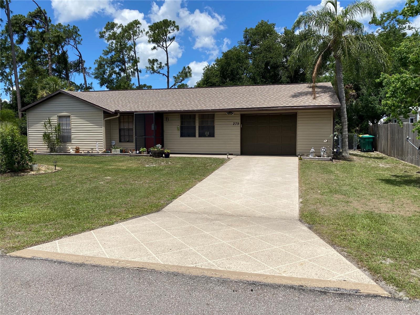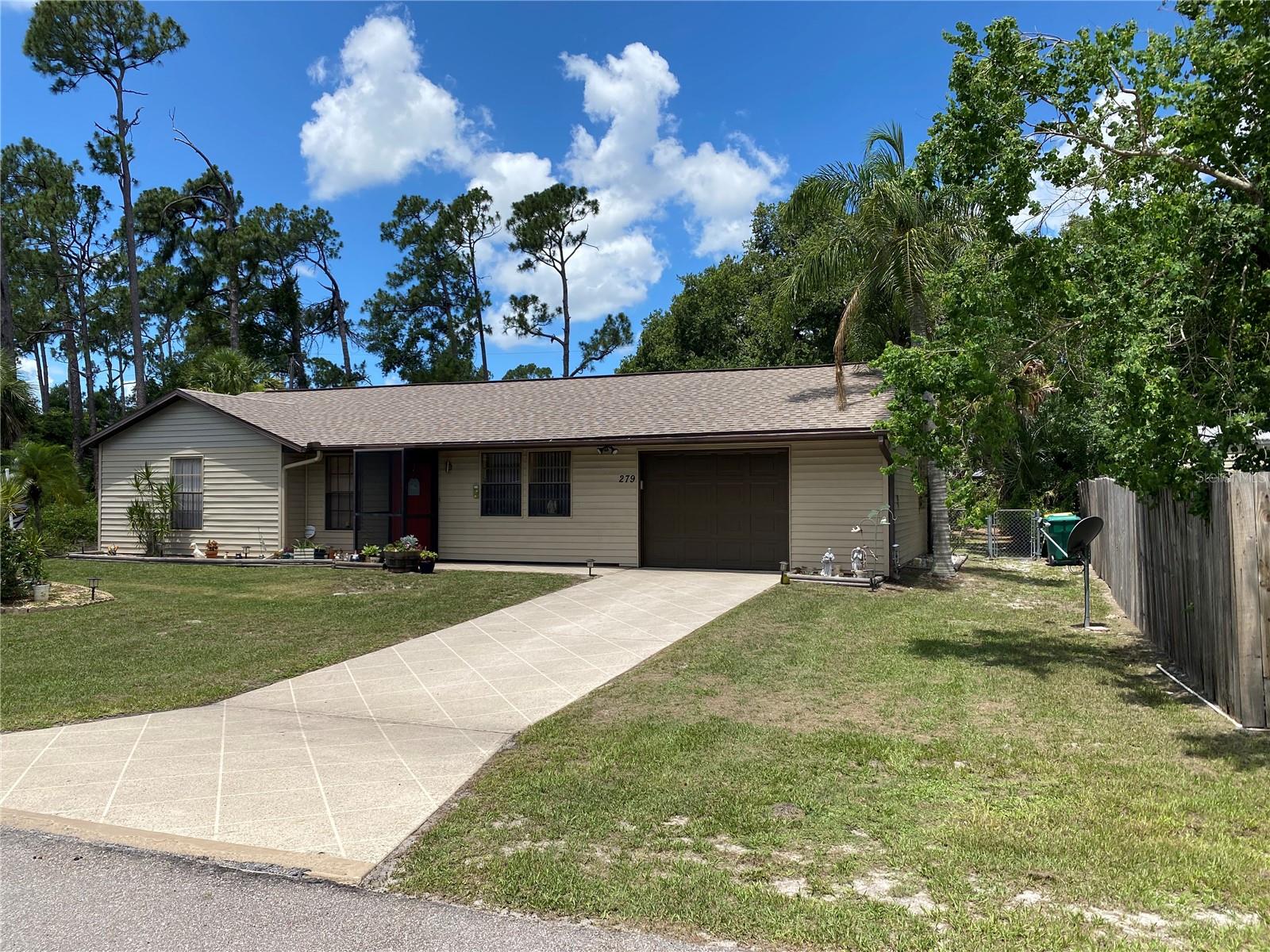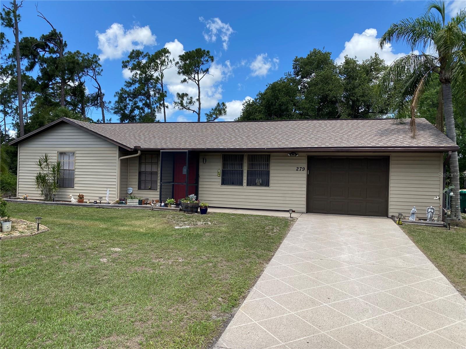 Discover Your Perfect Home in Central Port Charlotte! Welcome to this charming 3-bedroom, 1-bath haven with a HUMONGOUS GARAGE that offers ample storage and parking space. Located in a tranquil, slow-traffic area of central Port Charlotte, this home provides the ultimate blend of peace and convenience. Enjoy the benefits of Public Water and the added peace of mind with no HOA, no CDD, and no high-risk flood zone. Nestled in flood zone X, the most desirable classification, this property does not require flood insurance. Step inside and be greeted by soaring cathedral ceilings and an expansive open area, creating a bright and airy ambiance that invites you to relax and unwind. The heart of the home, the kitchen, boasts sleek stone countertops and a deep sink, making it a modern and functional space perfect for all your culinary adventures. Sliding glass doors lead to a serene lanai, ideal for enjoying your morning coffee or unwinding with evening sunsets. The fenced backyard provides a private oasis for outdoor activities, while an outside storage closet adds extra convenience for all your storage needs. Some of the updates include hurricane panels, a brand-new roof, a newer HVAC system, and a complete repiping. Two new swing doors have been installed, enhancing both functionality and style. In less than 5 minutes, you can reach the vibrant heart of Port Charlotte, where you’ll find a plethora of shopping, dining, and entertainment options. Nearby hospitals and essential services ensure that everything you need is within easy reach. This home is more than just a place to live; it's a gateway to an enhanced lifestyle. Whether you're a first-time buyer, a snowbird seeking a seasonal retreat, or an investor looking for a prime rental opportunity, this property offers everything you need and more. Schedule your showing today and imagine the endless possibilities of making this delightful home yours!