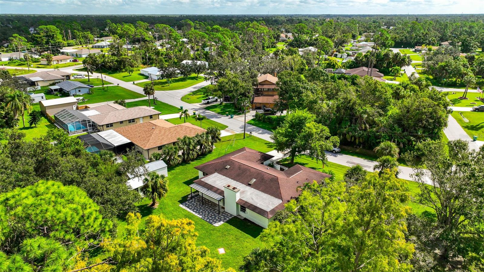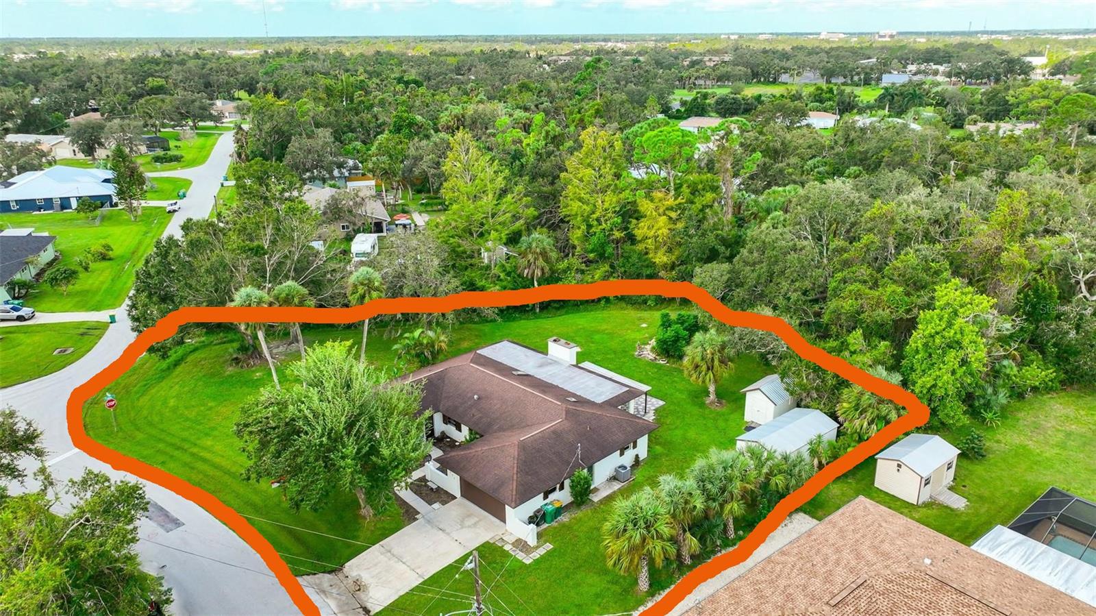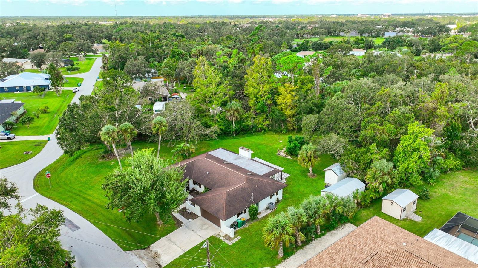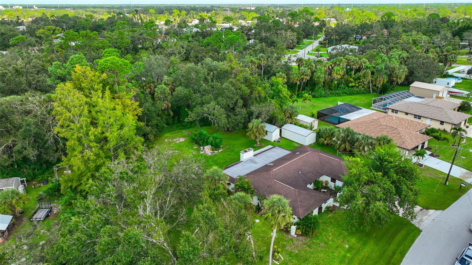 This impeccably built, secure Southwest Florida-style residence in Port Charlotte has remained undamaged through hurricanes Ian, Helene, and Milton. Featuring 2,285 sq. ft. of living space (3,000 total sq. ft.), this three-bedroom, three-bathroom home boasts modern upgrades, including a high-end kitchen, spacious closets, and luxurious bathrooms. Situated on a half-acre lot with an additional city easement of 1/2 acre, the property includes a two-car garage, a custom stone waterfall KOI pond, and two insulated storage sheds with metal roofs. Recently refreshed with new paint inside and out, tile and carpet flooring, updated outlets, fixtures, and a 2023 metal roof on the older storage shed, this home is move-in ready. Schedule a viewing today to experience this unique property!