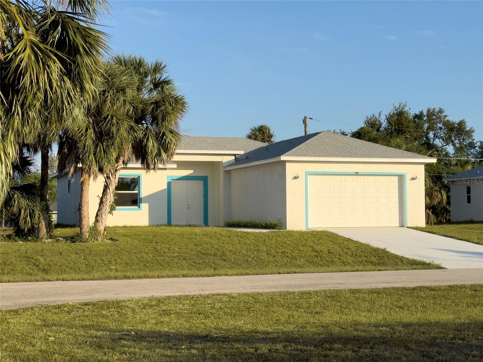 NEW CONSTRUCTION – PERFECTLY SIZED 3 BED, 2 BATH, 2-CAR GARAGE HOME IN PORT CHARLOTTE on the Corner LOT** This beautifully designed home is ideal for families who appreciate the Florida lifestyle. The spacious open floor plan features a cathedral ceiling, recessed lighting, decorative fixtures, and ceiling fans, creating a welcoming atmosphere. The open kitchen, complete with an island, overlooks a cozy living room, making it perfect for entertaining and gathering with loved ones. Sliding doors lead to the Back porch- a perfect for relaxing and entertaining, featuring two ceiling fans, that ensure constant, refreshing breeze. Whether you are enjoying a morning coffee or an evening gathering, the porch provides a peaceful and enjoyable settings to savor the natural surroundings. The kitchen is equipped with energy-efficient appliances, including an electric stove, built-in microwave, refrigerator, and dishwasher. It also features a granite countertop and a pantry for extra storage. The entire house boasts stylish tile flooring, with subway tiles in the bathrooms for a clean and modern look. The interior is painted in soothing pastel tones, and the bedrooms have 10-foot high ceilings, with the living room ceiling reaching up to 14 feet. The master suite with Vaulted ceiling offers a large walk-in closet, dual sinks, and a walk-in shower, providing a luxurious retreat. The split floor plan ensures privacy for guests, who have their own wing and separate full bath. Exterior features include Double door entry, impact windows with a low-E radiant barrier, sliding impact glass doors, shingle roof, and an 18-foot wide concrete driveway. The home is connected to public water and sewer services. Located close to US-41, I-75, and Punta Gorda Airport, this home offers easy access to shopping, restaurants, schools, parks, golf courses, and is just minutes from Port Charlotte Town Center and downtown historic Punta Gorda. Enjoy community events, entertainment, world-class fishing, and boating in this vibrant area. Don't miss this fantastic opportunity to own a beautiful home in a great location! All measurements are estimated, CO received in June 2024 ( included in attachments) Property tax is low for 2024 as its was treated as a vacant lot. Please expect increase of property tax for the following years.