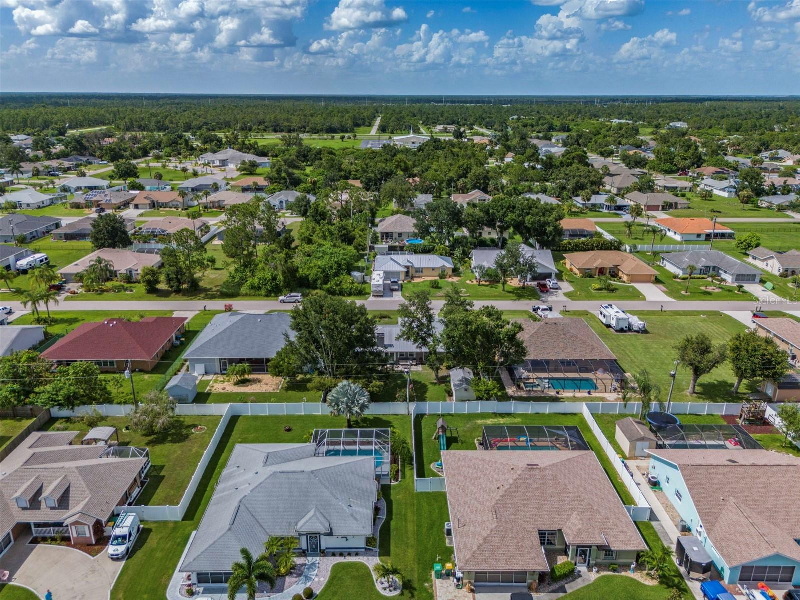 Welcome to your new home! This charming property is ready for its new owners. As you step through the front door, you’ll be greeted by a spacious living and dining area with soaring cathedral ceilings, creating an open and airy feel. The well-appointed kitchen boasts ample cabinetry, a large island, and a breakfast bar, perfect for both cooking and casual dining. The cozy family room features a working fireplace, wooden floors, and custom cabinetry, making it an inviting space for relaxation and entertainment. The backyard is an oasis for outdoor enjoyment, with a generous fenced area and a beautiful tree providing afternoon shade. Additionally, the large shed, equipped with electricity, offers great storage or workshop potential. UPDATE: NO FLOODING AND NO STORM DAMAGE! This home features a desirable split floorplan. The master suite has been updated, offering a private retreat, while the guest bathroom has also been renovated. For your peace of mind, hurricane shutters are included, ensuring security during stormy weather. Section 15 offers the convenience of water and sewer services, eliminating the need for septic systems, and the property is not located in a flood zone, providing added peace of mind. Enjoy the Southwest Florida lifestyle with easy access to stunning Gulf beaches, golf courses, and parks. Boating and fishing on the Peace River and Charlotte Harbor is another favorite activity. The area boasts excellent schools, shopping, and dining options. With a warm climate year-round, it’s a paradise for outdoor enthusiasts. Don’t miss the opportunity to make this delightful home your own. Experience the best of Port Charlotte living in a home that combines comfort, style, and a fantastic location. Schedule a viewing today!