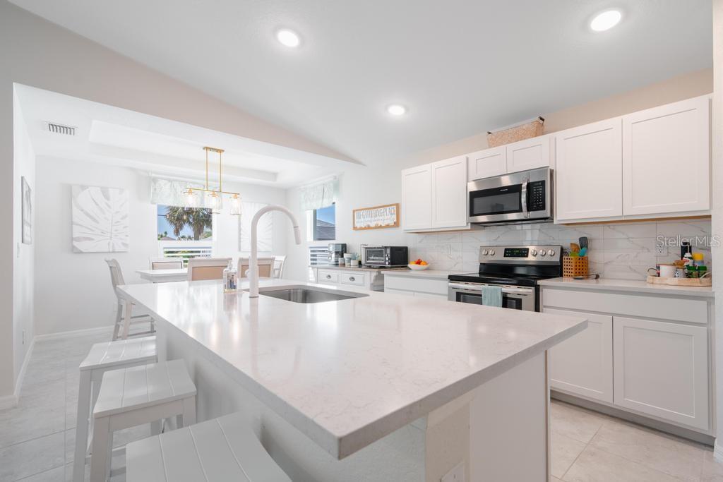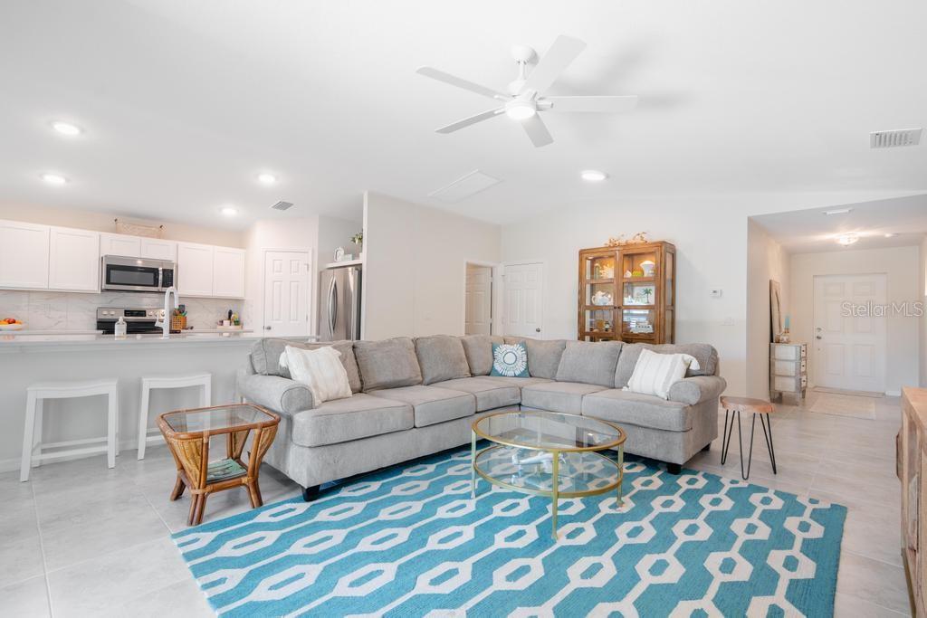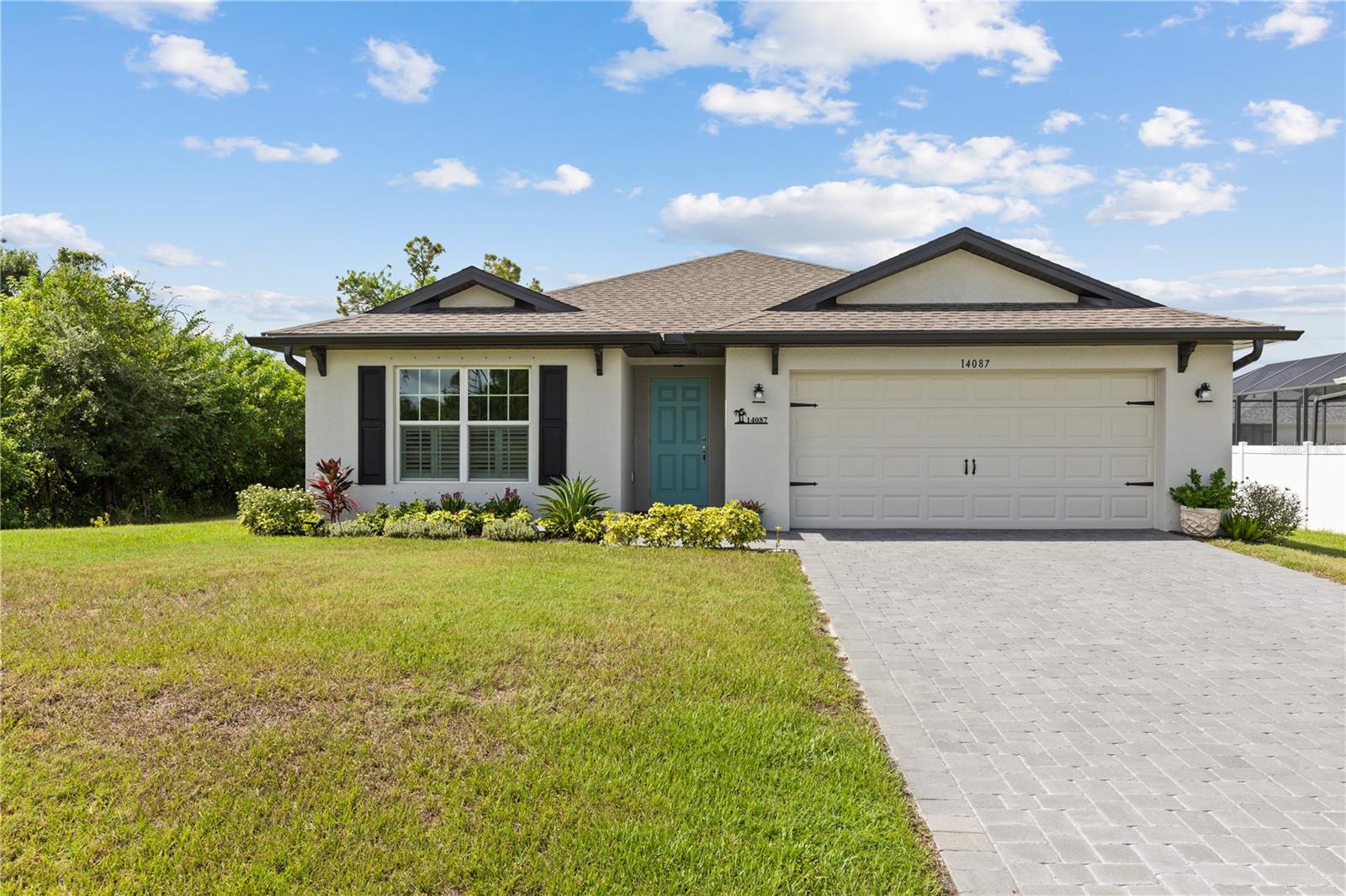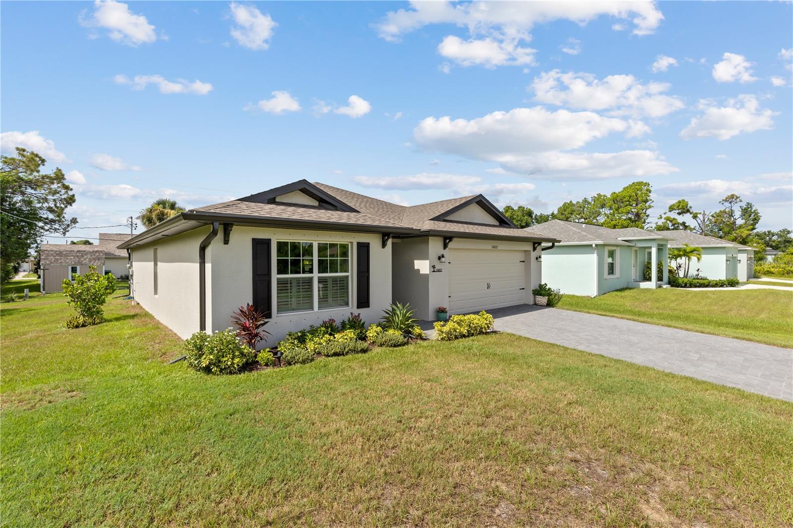 Just 2 years old, NO HOA, NO CDD -and just blocks away from a private Community Park with Boat Ramp onto the Myakka River ~one bridge and out to Charlotte Harbor & the Gulf for an optional $150 YEAR! Bright modern Open Floor Plan with vaulted ceiling, 3 Bedrooms, 2 Baths ~with plenty of sunlight and and lots of upgrades; Tile Floors throughout (no carpeting), Quartz Island and Countertops and a large Pantry. Appliances are 2 years old and are included in the sale! Outside you find a Large 18' x 12' Paver Patio surrounded by privacy hedges for relaxing or entertaining. The yard offers plenty of room for a fire pit or a future pool. A Lawn Irrigation System is in place and a Paver Driveway welcomes you home. Located on a nice quiet street -yet only 15 minutes to Boca Grande ~or about 20 minutes to Englewood Beach, both with swimming, boating, fishing, parasailing and great restaurants with live music. For the sports enthusiast Tampa Bay Rays spring training facility is literally 5 miles away, with several other spring trainings in nearby towns. There's a brand new Freedom Boat Club is 5 minutes away. Gulf Cove offers a variety of community gatherings, and there are Farmers Markets and other local events to explore nearby. Grocery Stores, Banks, Restaurants and Shopping are all just minutes away for your convenience. Fiber optic internet now available! Every room in this home has been freshly painted. Come discover easy Florida living at its best! Seller is related to Listing Agent.