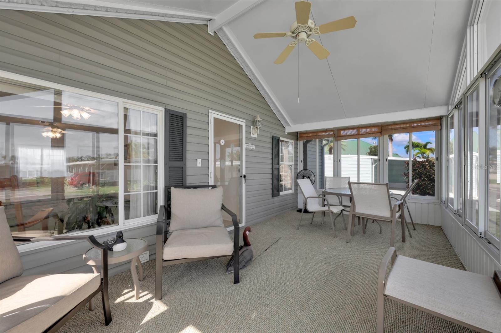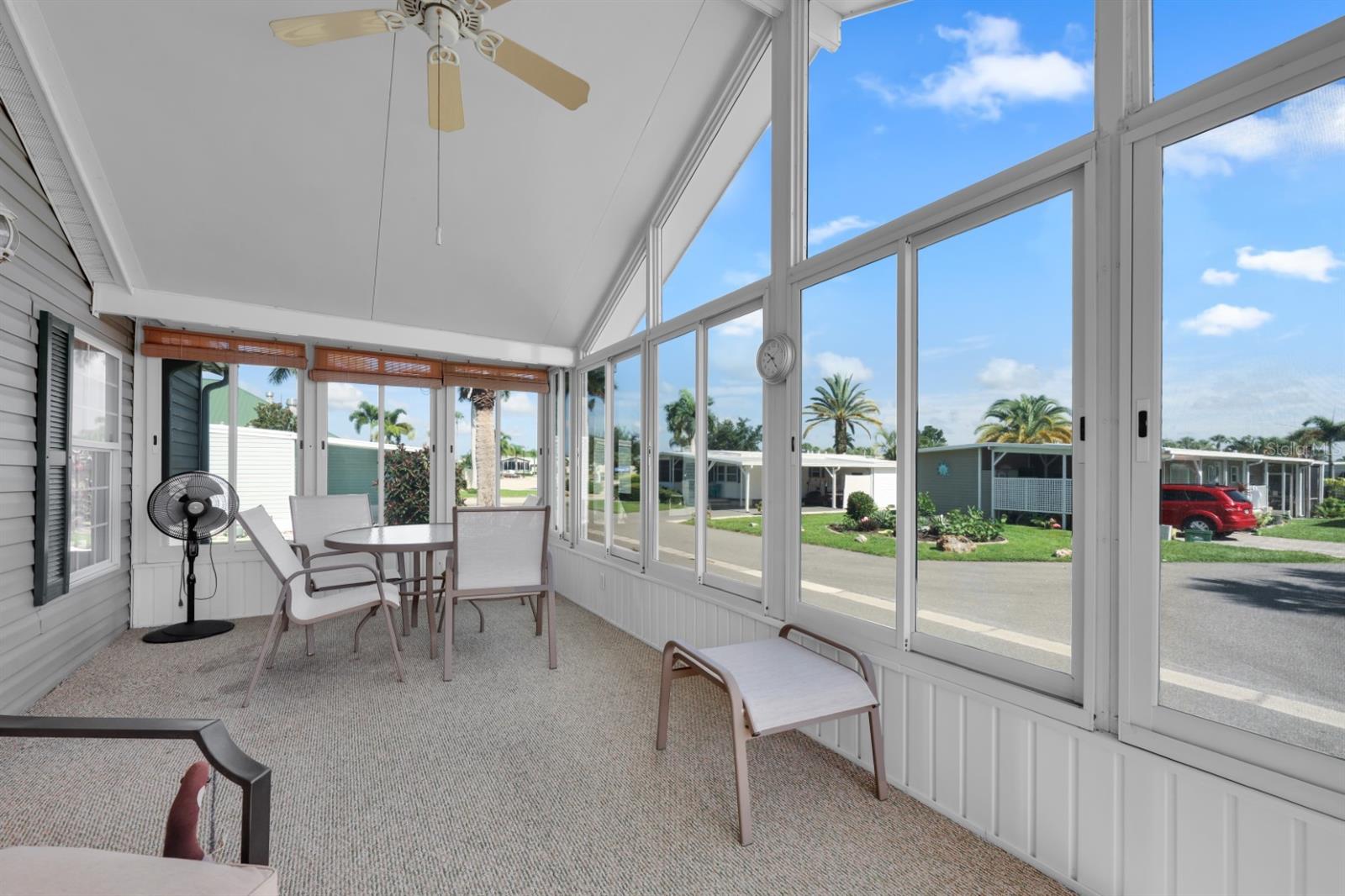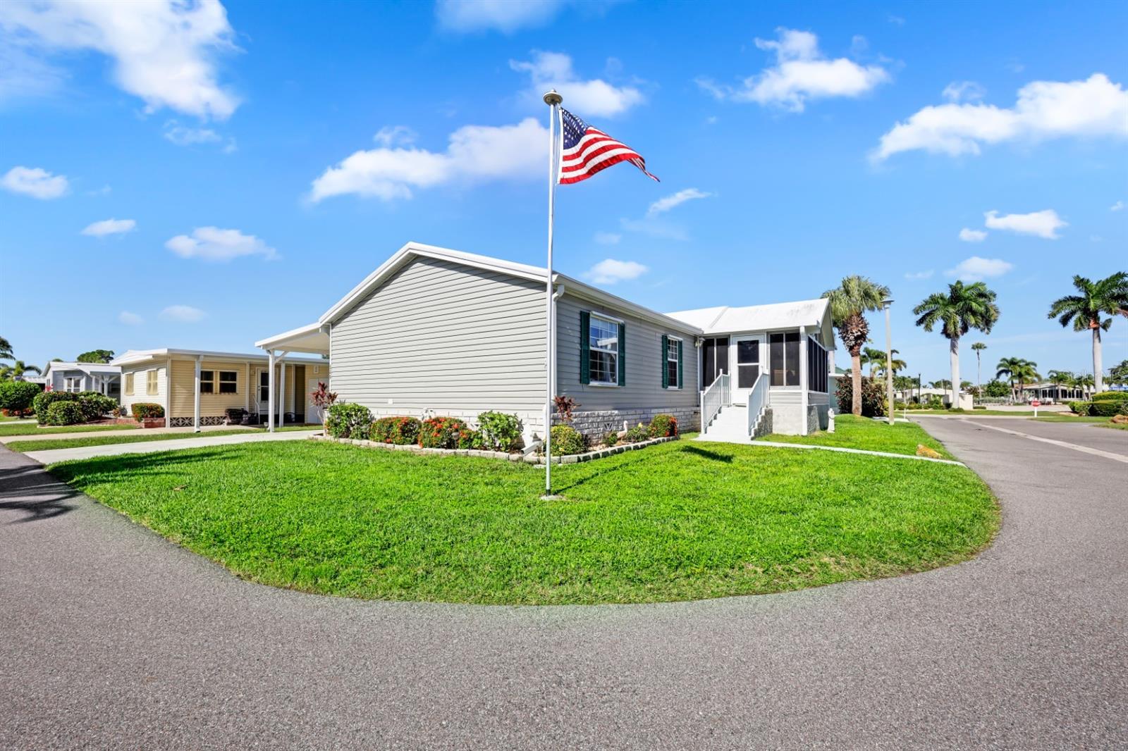 Welcome to your slice of paradise in the heart of Maple Leaf Golf & Country Club, a premier golfing community! This charming 2005 manufactured home, situated on a spacious corner lot, offers the perfect blend of comfort and leisure. With a 3 bedroom split plan and 2 baths, including a master suite for serene relaxation, this home is ideal for both year round and seasonal residents alike. This home is a short distance to several of the amenities such as one of the four pools, a hot tub, shuffleboard court, Bocce ball and the large clubhouse. Step inside to discover a bright and airy living space, complemented by a gorgeous large front lanai where you can unwind and soak in the Florida sun. The kitchen features ample counter space and storage, making meal preparation a breeze. The large living room provides loads of space whether you are relaxing or entertaining. The guest bath is complete with a tub/shower combination and the primary en-suite bath is complete with a walk in shower PLUS linen closet. You'll love having the laundry inside for a super easy laundry day. The roof is an AMS metal Weather-Lok roof installed in 2014. Home is sold mostly furnished with some exclusions. Sorry no dogs at this location, one indoor cat only. In Maple Leaf you'll enjoy a social community with over 75+ clubs and activities, golf course, 4 pickleball courts, 5 tennis courts, 4 swimming pools, 2 shuffleboard court centers, mini golf, horseshoe pits, 2 hot tubs, clubhouses, 2 restaurants, tiki bar and the list just goes on and on. If you want to hit the interstate and head out to other destinations for a day trip interstate 75 is just a short drive away. There's plenty of restaurants and shopping all within a short drive. If staying local is your thing head down Kings Highway to the Sunseeker resort for many types of dining or to Punta Gorda where downtown always has something to offer. Don't miss out on this opportunity to live in a thriving community where every day feels like a vacation. It's all about the lifestyle in Maple Leaf!