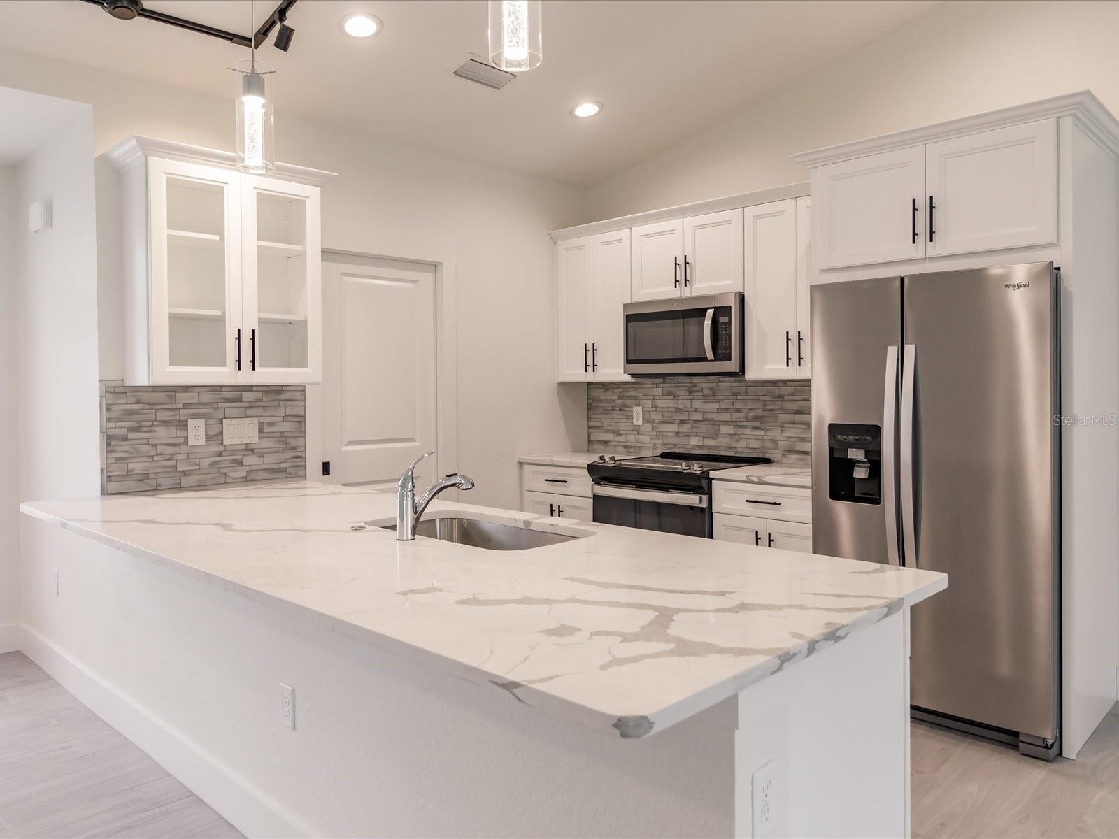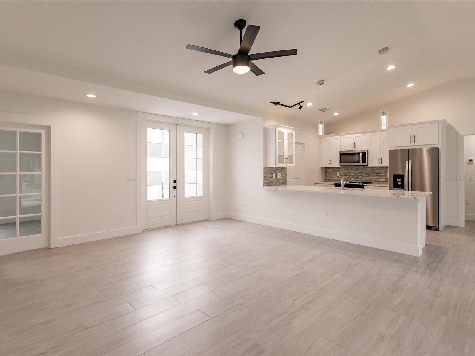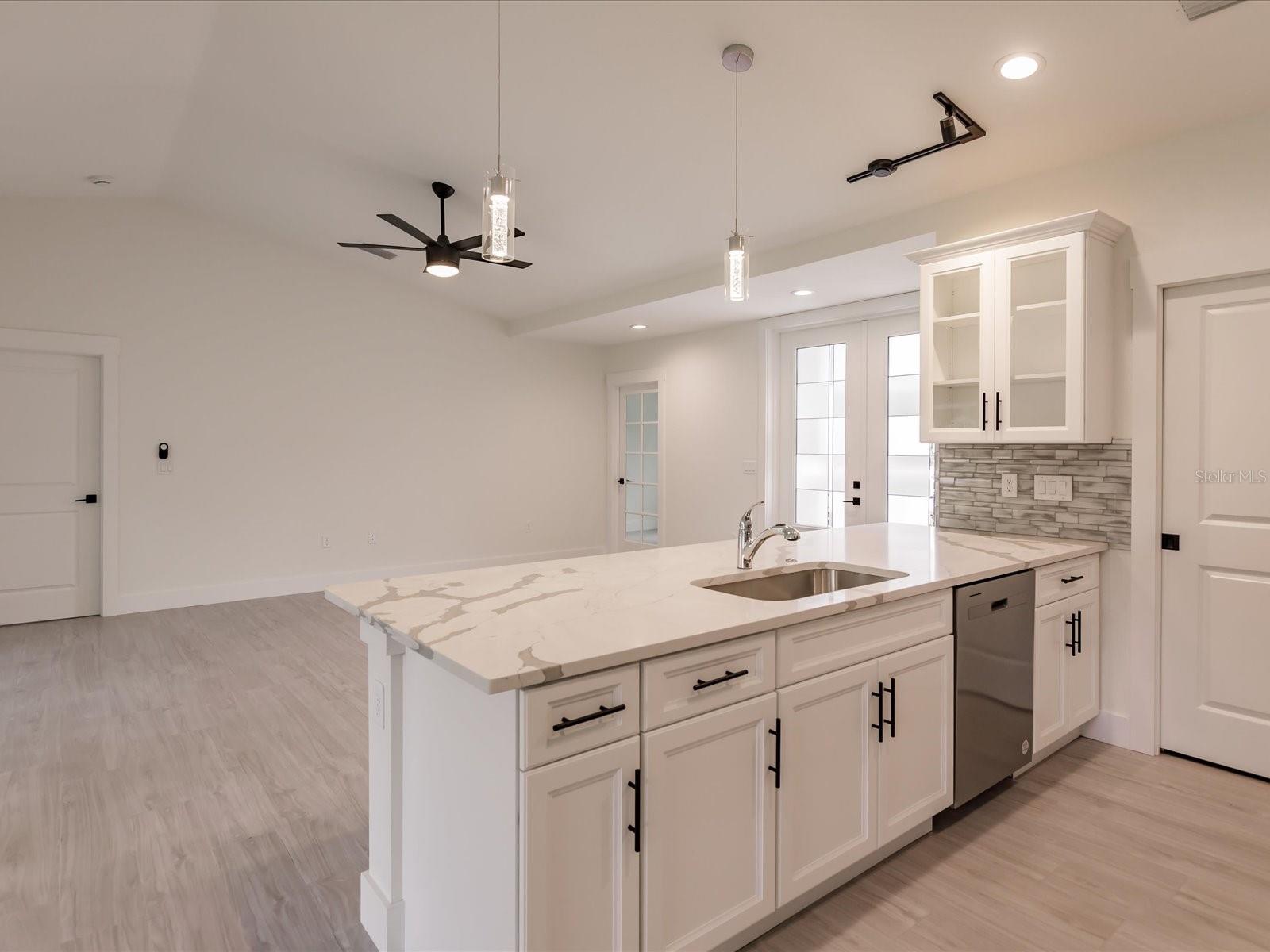 BRAND NEW HOME! On an Oversized Corner Lot with Public Water. Not in a Flood Zone. BEAUTIFUL BRIGHT OPEN FLOOR PLAN So many WONDERFUL features starting with 3 bedrooms, 2 bathrooms along with an office/den. The oversized 2 car garage with a paver driveway is just the beginning. Step through the glassed double front doors. Upon entering, you will find beautiful plank tile throughout the ENTIRE home including the bedrooms. The split plan offers an en suite off the master bedroom with dual sinks and a walk-in closet. The SPECTACULAR kitchen features custom cabinets with soft close drawers, GORGEOUS quartz countertops, a kitchen island with sink and stainless steel appliances. The spacious living room showcases french doors leading out to your large screened-in lanai with pavers. A dedicated home office/den is also located off the living room area. To make it even better, you will enjoy the inside laundry room that's adjacent to the kitchen along with a nice size dining room that's just perfect for those family gatherings. There is plenty of space for entertaining in this home! For your landscaping convenience, an irrigation system has also been installed for the plant area only. In addition, 12 foot Areca Palm Trees have been installed in the backyard giving you that added privacy. Convenient location that's close to major restaurants, grocery stores, retail and medical facilities. You are 18.5 miles to Englewood Beach and only 5.4 miles to North Port. This Cozy Modern Home could be yours. Schedule a showing today! LEASE PURCHASE OPTION AVAILABLE FOR THIS PROPERTY