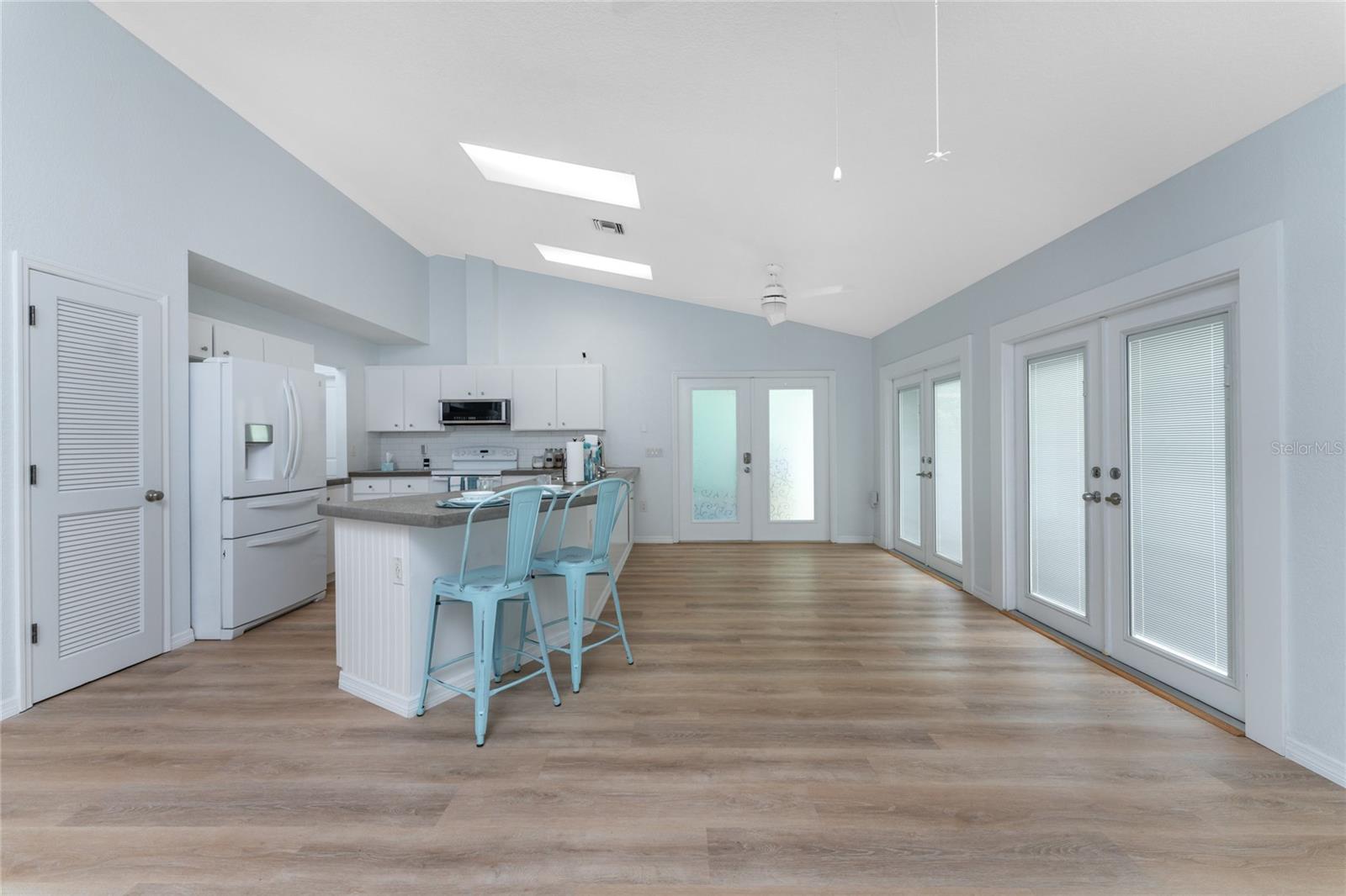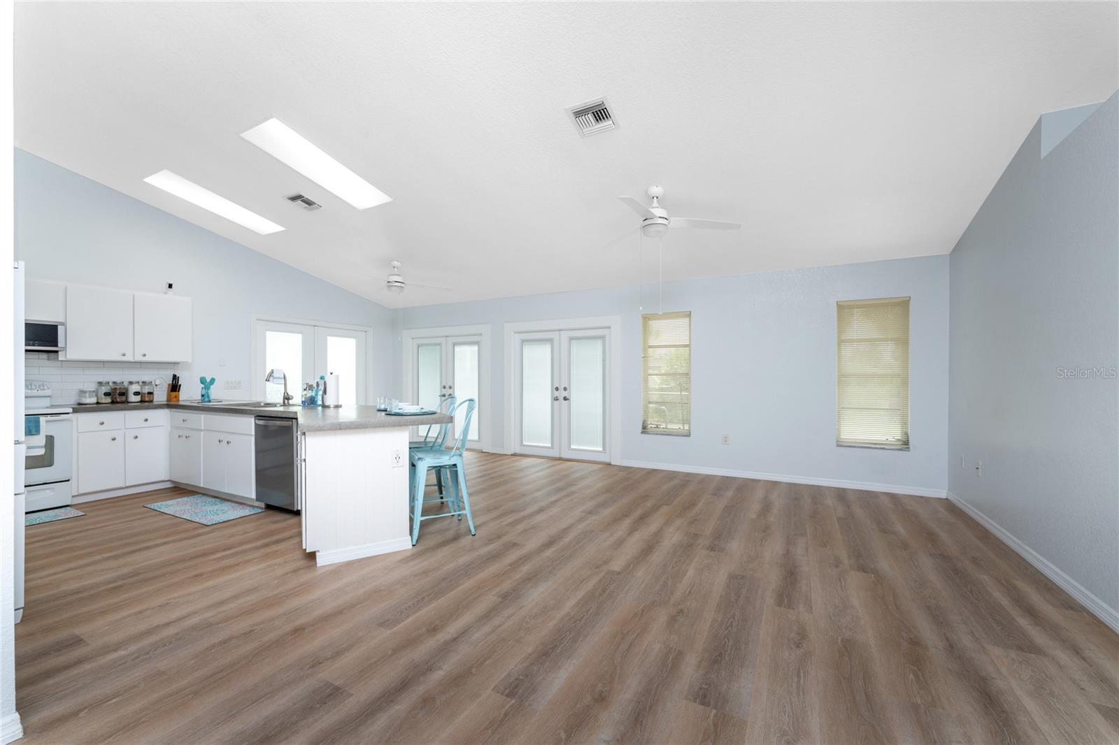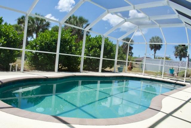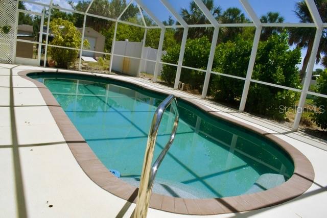 Welcome to your future oasis! NESTLED ON NEARLY AN ACRE, with access from 3 streets, this IMPRESSIVE 3-BEDROOM, 3-BATH, POOL HOME offers the perfect blend of spacious living, modern convenience, and tranquil outdoor retreats. This home is open with high ceilings and a SPLIT FLOOR PLAN. The kitchen offers a breakfast bar, RECENTLY UPDATED STAINLESS STEEL APPLIANCES, pantry closet. The master suite provides a walk in closet and ensuite bathroom and FRENCH DOORS TO THE LANAI AND POOL. In the main living area you’ll also find easy access to your expansive outdoor area through one of 3 sets of French doors where you can dive into the LUXURIOUS POOL or just relax with your morning coffee or afternoon cocktail — your personal backyard paradise awaits. The screened in lanai and pool area is perfect for hosting gatherings, barbecues, or simply soaking up the Florida sunshine. The home features a two-car garage and two sheds providing ample space for projects and storage. This home is ready for your personal touch, it boasts great bones and SIGNIFICAN RECENT UPGRADES. The ROOF was replaced in 2023 and has a transferrable warranty. the AC system was replaced in 2017. The interior has been recently repainted, new windows in the guest bedrooms, luxury vinyl in the living areas and vinyl plank in the primary bedroom. ADDITIONAL FEATURES include 30 AMP CAMPER/RV PLUG, WIFI controlled IRRIGATION and a CAMERA SYSTEM around the home. Bluetooth speaker, fan, light, combo, in master/primary bathroom. This unique property offers the perfect balance of privacy and convenience with a combined 3 LOTS and 3 ACCESS GATES. Enjoy quick and easy access to shopping, dining, beaches and golf courses. And with no HOA and a triple-sized lot you'll find plenty of privacy along with room for your boat, RV, and other toys. NOT IN A FLOOD ZONE. This is a rare opportunity to own a spacious property.