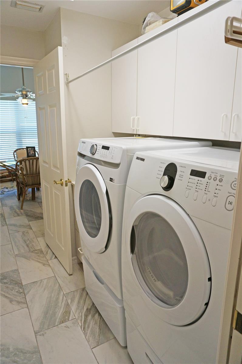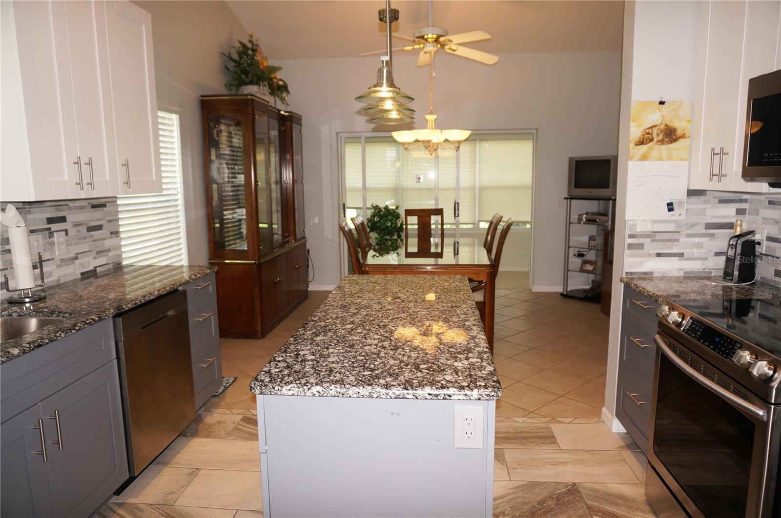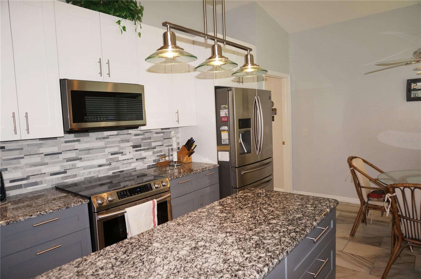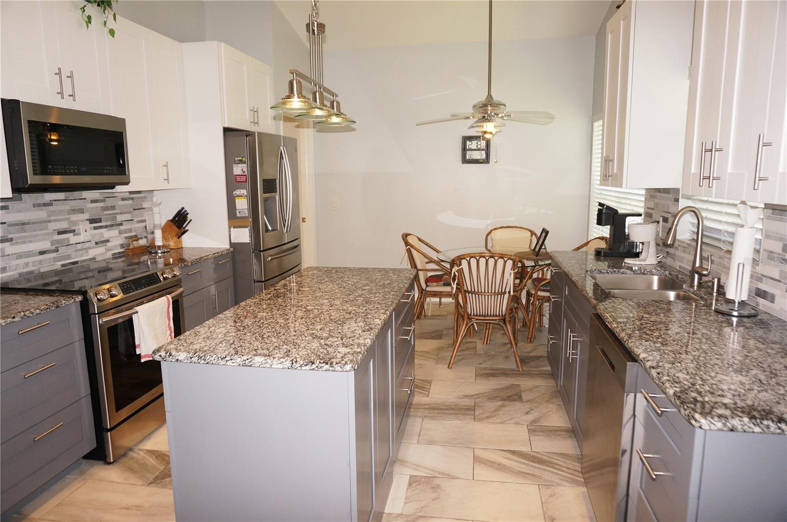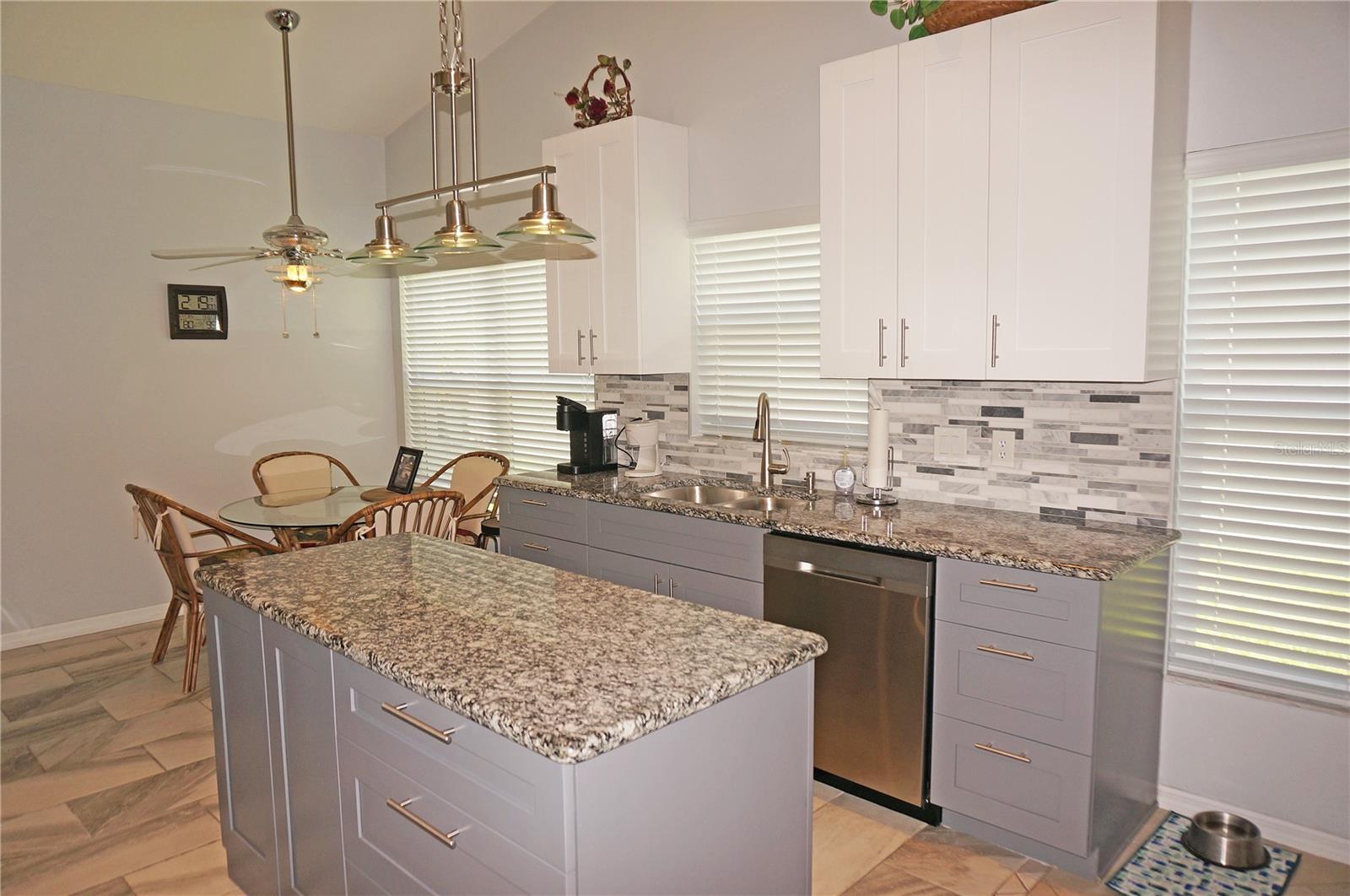 Impressive 3 Bedroom, 2 Bathroom home with attached 2 Car Garage has been beautifully remodeled. *Original Owner* Kensington model located in the desirable 55+ gated resort style community of KINGS GATE. EXPANSIVE VIEWS of the GOLF COURSE and LAKE directly behind the house. This home is being sold TURNKEY FURNISHED. This light and bright home offers a Great Room, well appointed Kitchen, Dining Room, 30x8 enclosed Lanai, Inside Laundry with cabinets and front loading washer and dryer. The Great Room features Golf Course and Lake view, diagonal lay tile floor, cathedral ceiling, plant shelves and sliding glass doors to the enclosed Lanai. The Dining Room offers diagonaly lay tile floor and sliding glass doors to the enclosed Lanai. The beautifully remodeled Kitchen features granite counters, two tone cabinets, tile backsplash, large island and dining area. The appliances are stainless and include an oven/range, microwave, french door refrigerator and dishwasher. The spacious Master Bedroom suite offers stunning Brazilian wood floors, two walk in closets, lanai access, vaulted ceiling, plant shelves and private bathroom with dual sinks/vanity space, walk in shower and garden tub. There are two additional generous sized bedrooms with double closets and the guest bathroom has a walk in shower. The 30x8 enclosed lanai with double pane windows has an expansive view of the golf course and lake. There is also a patio beyond the lanai where you can enjoy your morning coffee in the fantastic Florida weather. Utilities are public water and sewer and this home is NOT in a designated flood zone. Other features include screened sliding doors at the garage entrance, screened front entry, rain gutters. ** GOLF CART is negotiable** ** NEW ROOF 2019 **......House painted 2020....Extra insulation added over the living area, garage and lanai.....All windows have plastic film.....Lanai windows are double pane.....Guest Bath remodeled in 2017.....Kitchen remodeled in 2018 including all appliances....Washer replaced in 2023, Whole house re-piped 2023....New Hot Water Heater May 2024.....A/C is serviced every six months and is in good working order. * KINGS GATE *is a gated Golf community that offers numerous amenities including a large beautiful clubhouse, restaurant, 18 hole executive golf course, fitness center, computer center, tennis courts, shuffleboard, bocce ball courts, lawn bowling, community pool and numerous social activities. Minutes from shopping, dining, I-75, entertainment and short drive to waterfront parks, boat ramps, fishing piers. This home is perfect for year rounders, seasonal use or rental property. Don't miss this special home in a great community!
