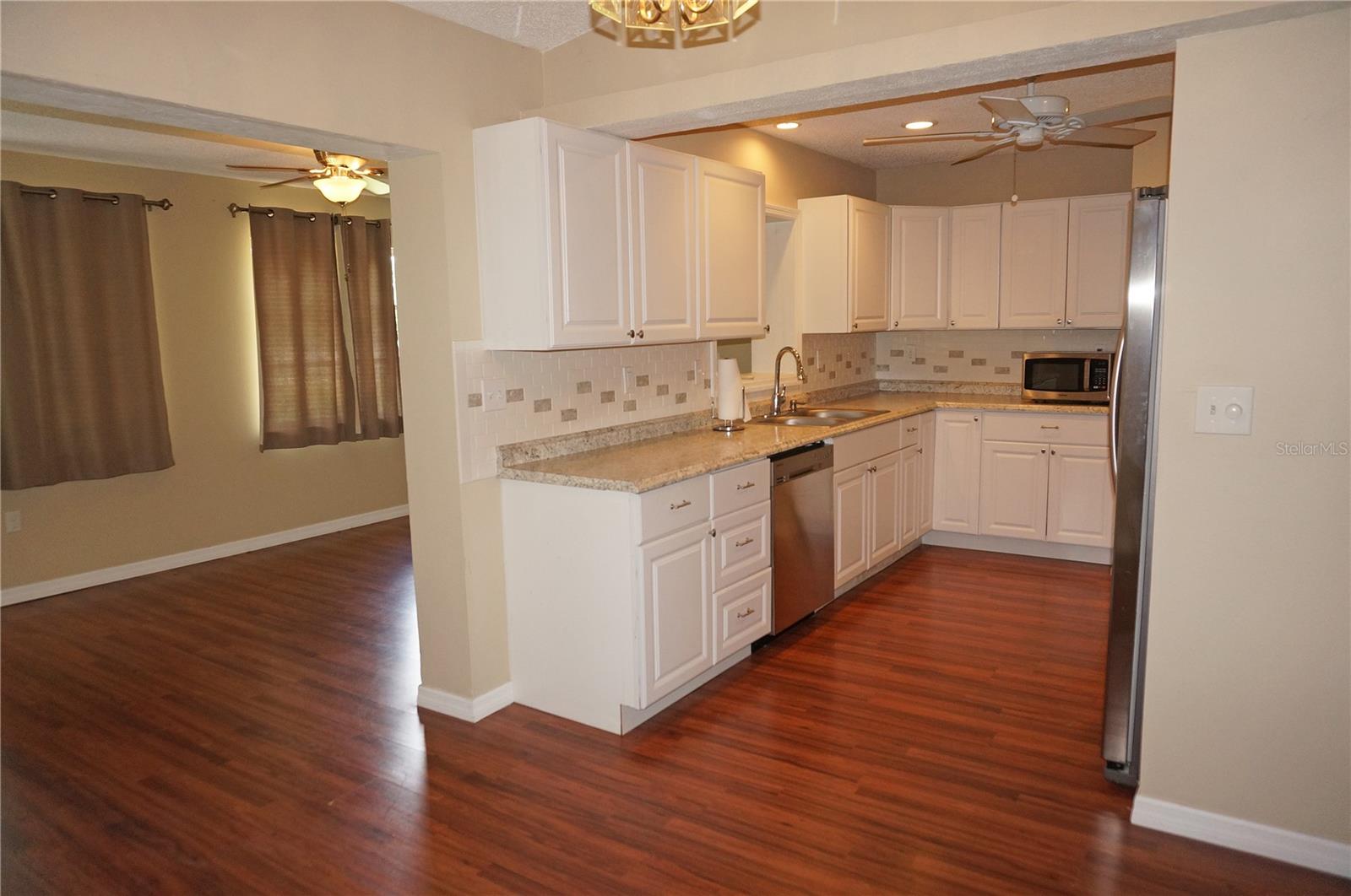 Delightful 2 Bedroom,2 Bathroom home with attached one car garage located in the heart of Port Charlotte. This light and bright remodeled home offers a spacious floor plan with Great Room, well equipped Kitchen, Family Room. The Great Room with cathedral ceiling, coat closet and ceiling fan is located at the front of the house. The 23x10 Family Room is located at the rear of the house. The Family Room has built in cabinets, pass thru from the Kitchen, lots of natural light from numerous windows, french doors and an additional door to the back yard. The Kitchen features white cabinetry, dining area, stainless dishwasher, double door refrigerator, oven/range, exhaust fan, double sink, tile backsplash and counter microwave. Both bedrooms are generous sized. The Master Bedroom has a walk in closet and private bathroom with walk in shower. The second bedroom has a double built in closet and the guest bathroom has a tub/shower combo. Your living space extends from the Family Room through french doors to the patio and good sized back yard with mature lush tropical landscaping. Other features include laminate flooring throughou the home except tile in the bathrooms, ceiling fans and attached Garage with epoxy floor, side door, laundry with washer and dryer. NO HOA. NOT in a designated flood zone. Immediate access to shopping, dining, entertainment. 11 minutes to Port Charlotte Beach Complex with swimming pool, boat ramp and more, 12 minutes to Charlotte Sports Park, spring training home to the Tampa Bay Rays. This is a great year round home, winter home or rental property.