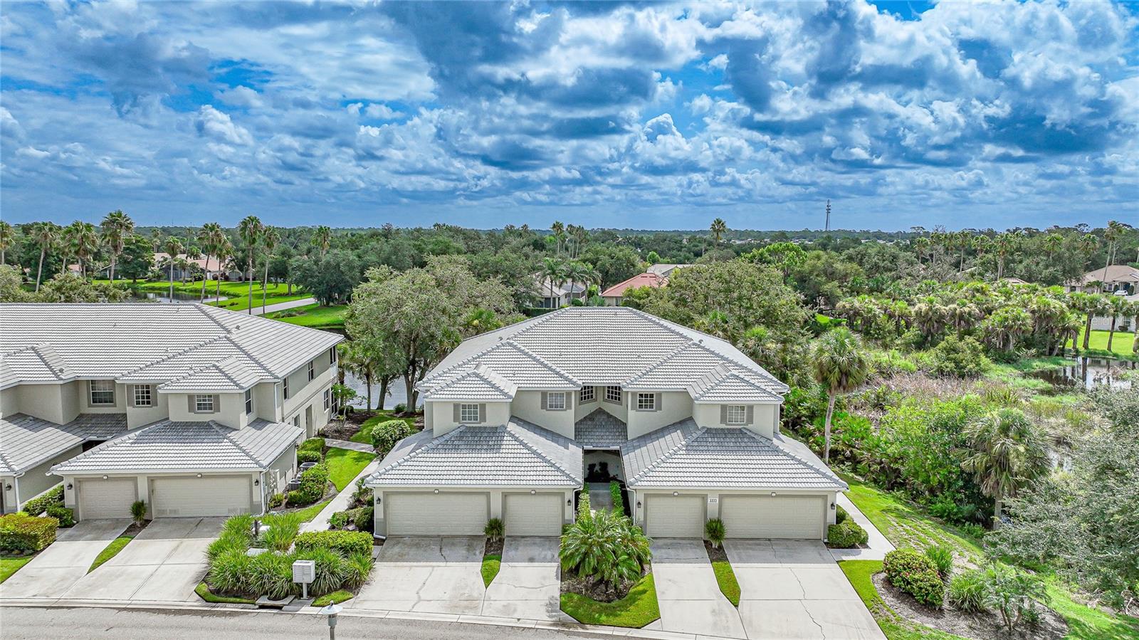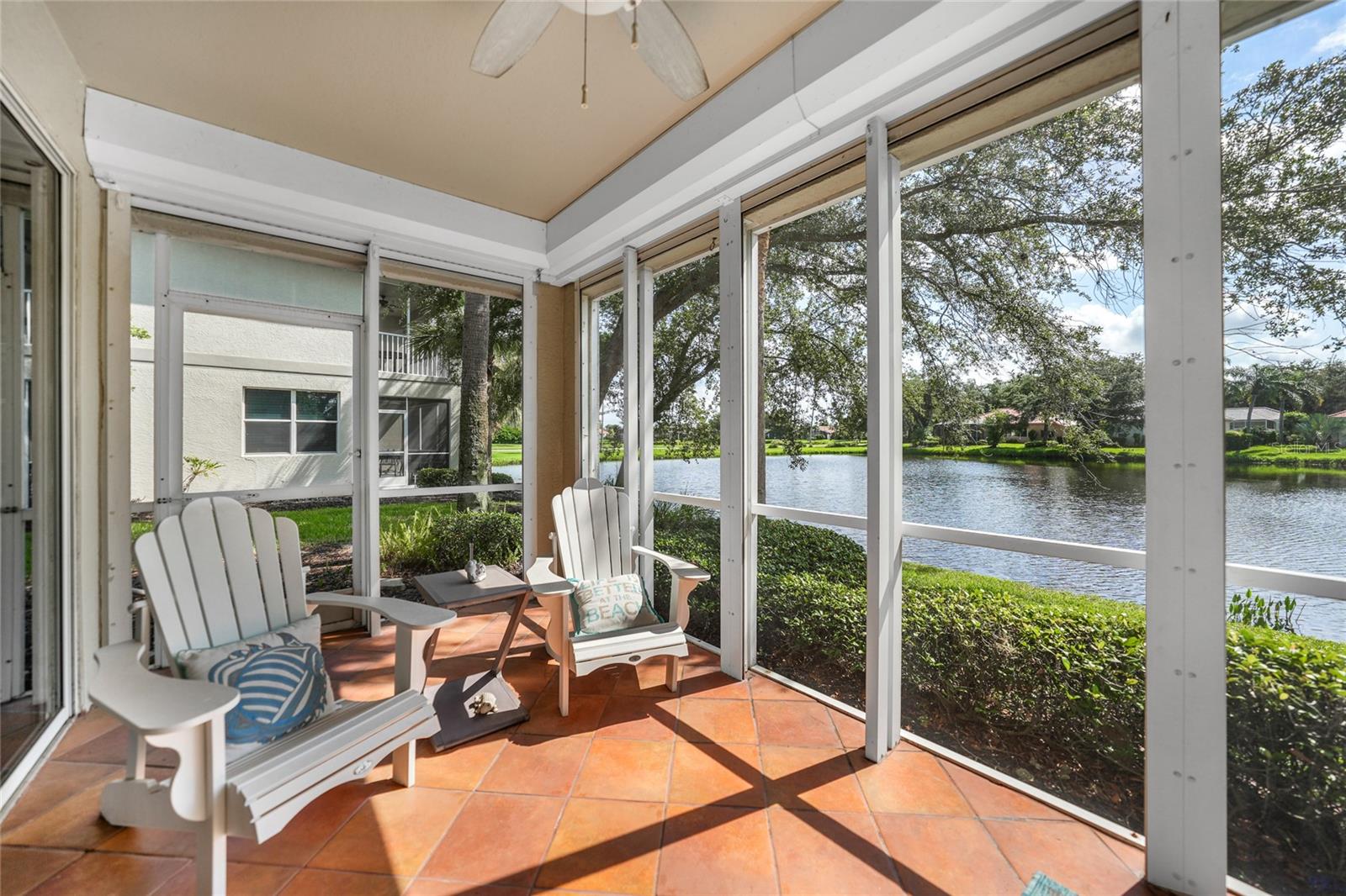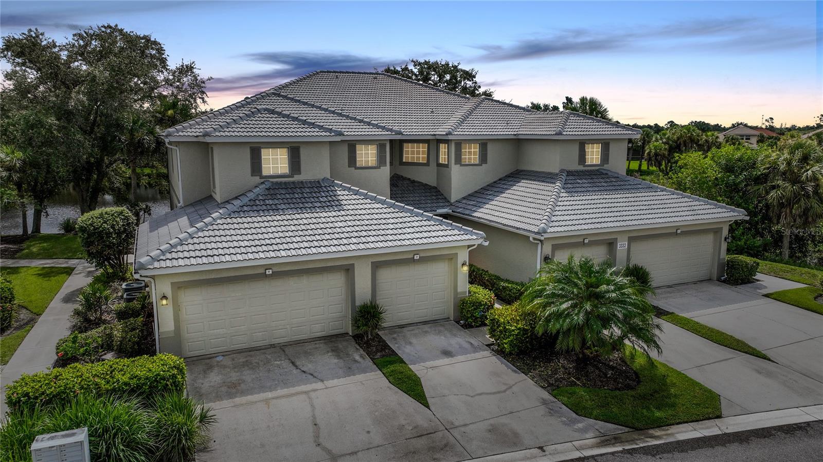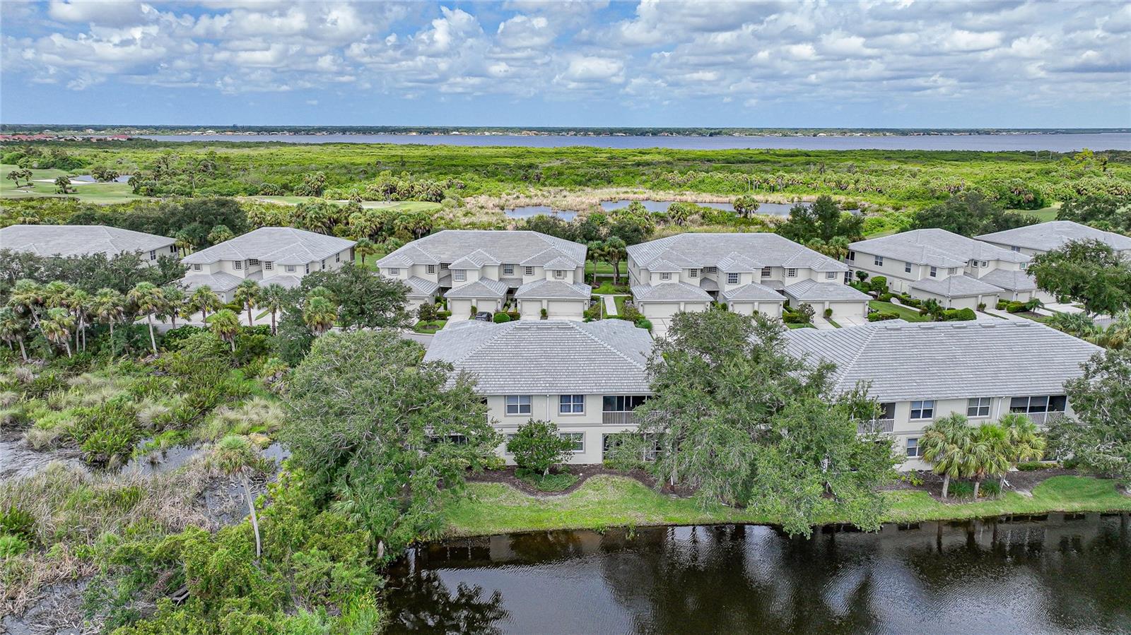 AMENITIES GALORE! SOLD FURNISHED! Welcome to the highly sought after community of Grand Vista at Riverwood. This quaint 2-bedroom 2-bathroom END UNIT boasts a breath-taking SUNRISE LAKE-VIEW right from your back porch and plenty of natural light and has an extra bonus room that could be used as a 3rd BEDROOM, DEN or OFFICE. FIRST FLOOR UNIT WITH A SPACIOUS 2 CAR GARAGE and a MASTER CLOSET THAT WILL BE SURE TO MAKE YOU SAY WOW! The property has been FULLY UPDATED from top to bottom in 2020 with not a penny spared and is MOVE IN READY. The kitchen has been updated with HIGH-QUALITY MARBLE COUNTERTOPS with a MATCHING TILE BACKSPLASH, NEW STAINLESS-STEEL APPLIANCES and SOFT CLOSE CABINETS. The home has been outfitted with 2020 VINYL FLOORING, 2020 FANS, 2020 LIGHT FIXTURES AND 2020 PLANTATION SHUTTERS. NEW 2024 ROOF HAS RECENTLY BEEN INSTALLED WHICH WAS COVERED BY THE ASSOCIATION ASSESSMENT FREE FOR THIS UNIT. NEW 2023 GARAGE DOOR. The Primary Bedroom features plenty of space for a king size bed. The primary bathroom features an updated GRANITE double-sink vanity, walk-in shower AND tub and an ABSOLOUTLY ENORMOUS CLOSET. The property features a split floorplan with a 2nd bedroom on the other side of the home beside the bonus room/den/office that could easily be converted into a 3rd bedroom as well as an interior laundry room with extra cabinet space off of the 2 CAR GARAGE. The back porch features a very cute swing to enjoy the LAKE VIEW and has ELECTRIC HURRICANE SHUTTERS installed for extra protection. TOTAL MONTHLY FEE INCLUDES MAINTENANCE OF THE BUILDING'S EXTERIOR AND REPAIRS, INSURANCE THAT INCLUDES LIABLITY AND FLOOD COVERAGE, LAWN CARE & LANDSCAPING, PEST CONTROL, IRRIGATION, WATER, TRASH, SEWER, GATED SECURITY, COMMUNITY POOL AND MORE. GRAND VISTA at Riverwood features a clubhouse, TWO community pools, tennis & pickleball courts, bocce ball, a croquet field as well as a fitness center, library, arts and crafts room and all types of scheduled EVENTS and activities. Riverwood itself features 48 lakes and 71 natural preserves. ASK ABOUT BECOMING A MEMBER OF RIVERWOOD GOLF CLUB & RIVERWOOD BEACH CLUB. Riverwood is just a short drive to Boca Grande & Manasota Key Beach and is right up the road from grocery stores, shopping, medical offices, and MUCH MORE. Schedule a showing today to see how RESORT STYLE LIVING feels.