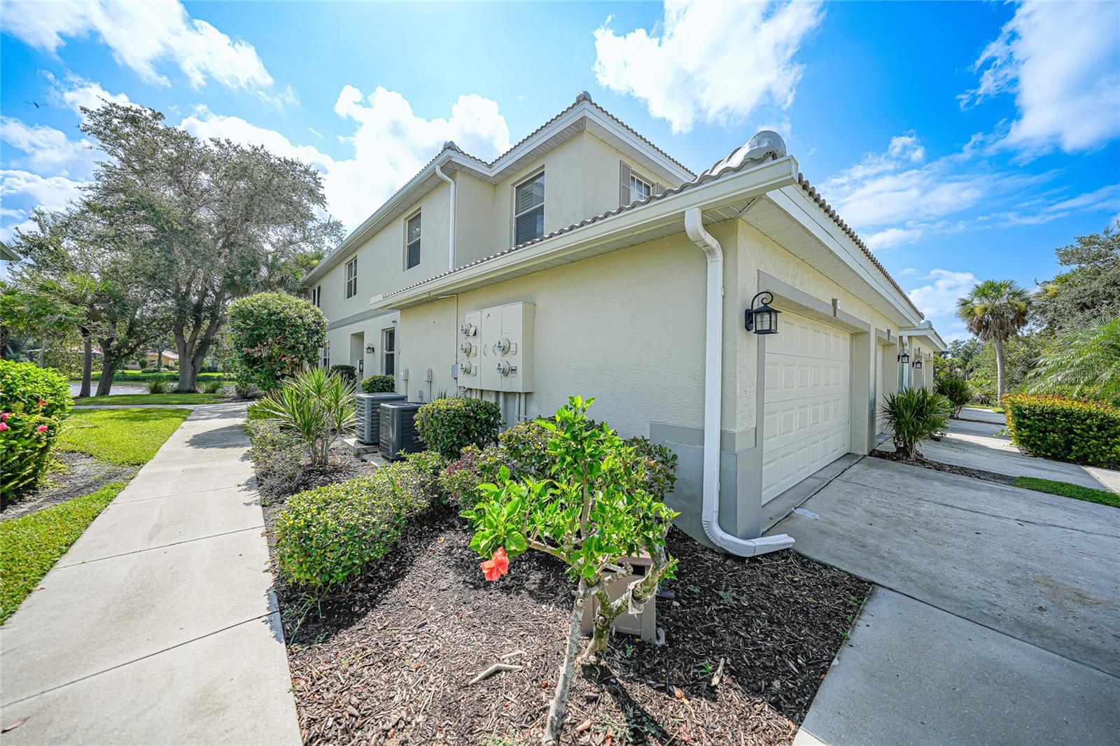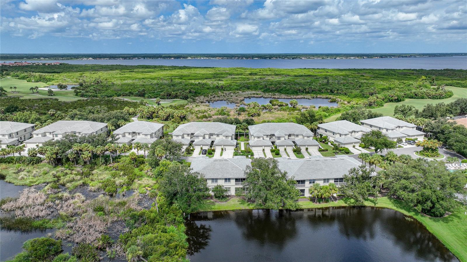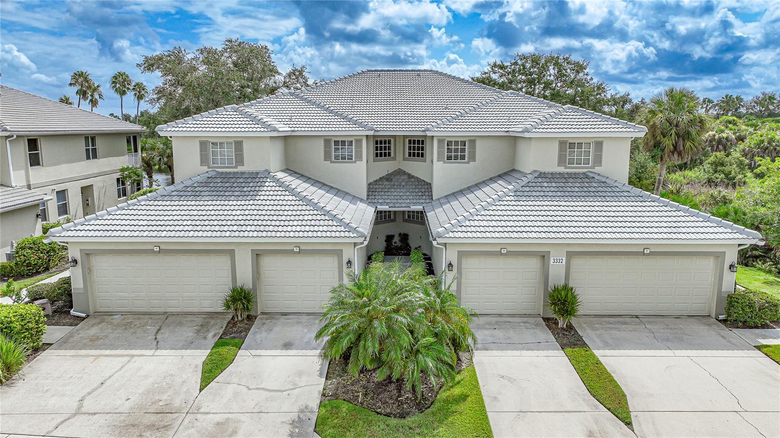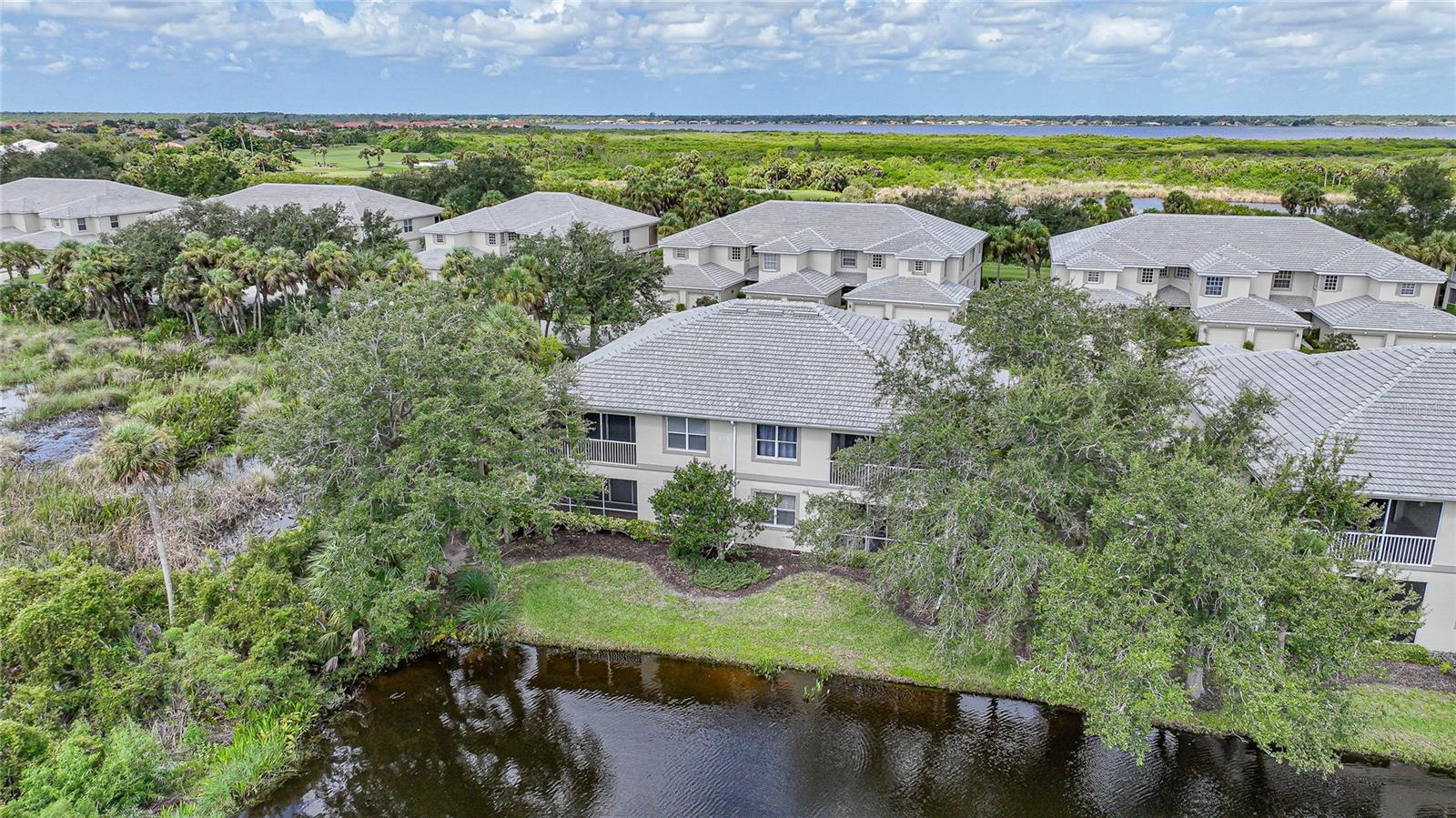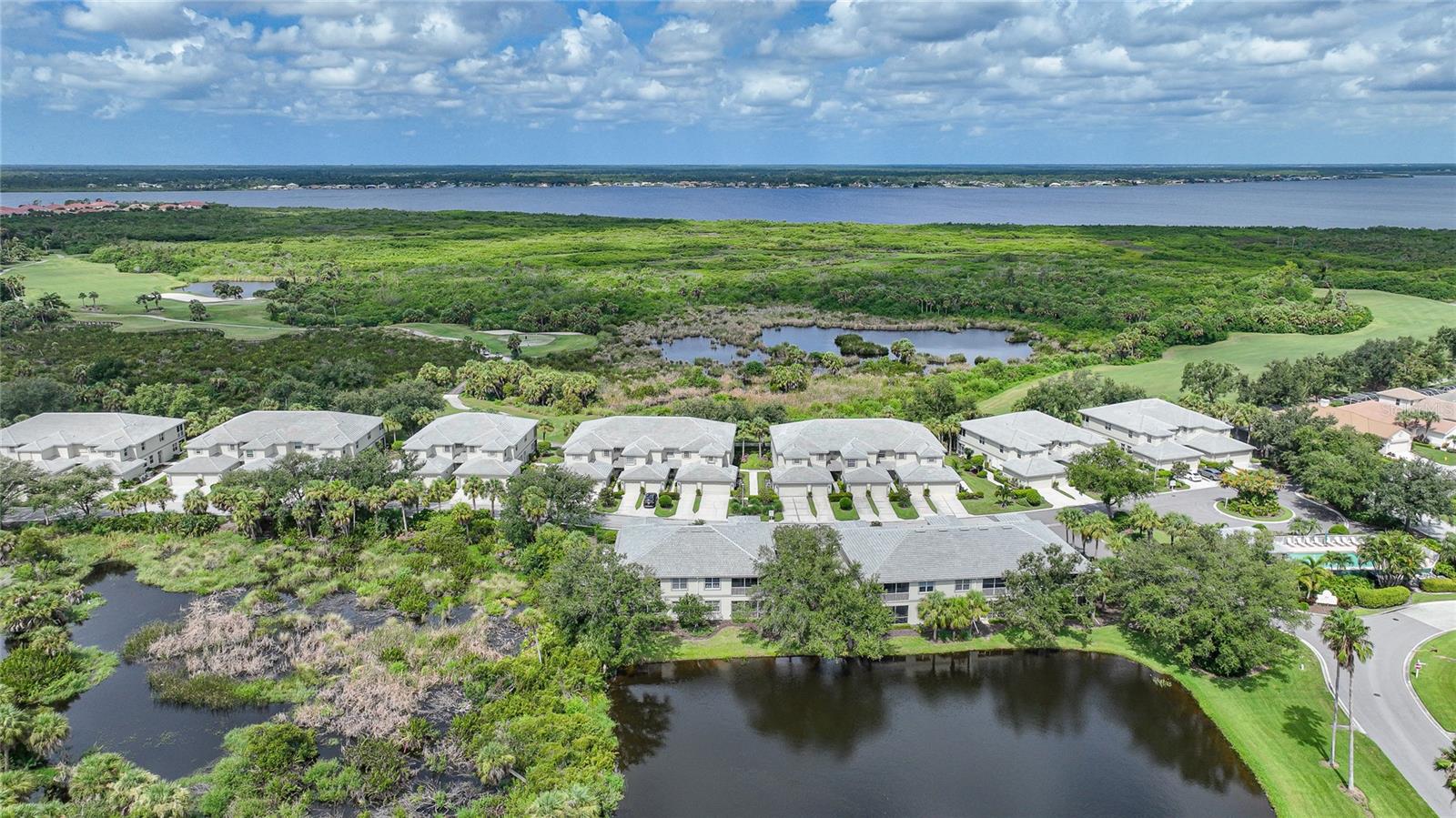 AMENITIES GALORE! SOLD FURNISHED! Welcome to the highly sought after community of Grand Vista at Riverwood. This quaint 2-bedroom 2-bathroom END UNIT boasts a breath-taking SUNRISE LAKE-VIEW right from your back porch and plenty of natural light and has an extra bonus room that could be used as a 3rd BEDROOM, DEN or OFFICE. FIRST FLOOR UNIT WITH A SPACIOUS 2 CAR GARAGE and a MASTER CLOSET THAT WILL BE SURE TO MAKE YOU SAY WOW! The property has been FULLY UPDATED from top to bottom in 2020 with not a penny spared and is MOVE IN READY. The kitchen has been updated with HIGH-QUALITY MARBLE COUNTERTOPS with a MATCHING TILE BACKSPLASH, NEW STAINLESS-STEEL APPLIANCES and SOFT CLOSE CABINETS. The home has been outfitted with 2020 VINYL FLOORING, 2020 FANS, 2020 LIGHT FIXTURES AND 2020 PLANTATION SHUTTERS. NEW 2024 ROOF HAS RECENTLY BEEN INSTALLED WHICH WAS COVERED BY THE ASSOCIATION ASSESSMENT FREE FOR THIS UNIT. NEW 2023 GARAGE DOOR. The Primary Bedroom features plenty of space for a king size bed. The primary bathroom features an updated GRANITE double-sink vanity, walk-in shower AND tub and an ABSOLOUTLY ENORMOUS CLOSET. The property features a split floorplan with a 2nd bedroom on the other side of the home beside the bonus room/den/office that could easily be converted into a 3rd bedroom as well as an interior laundry room with extra cabinet space off of the 2 CAR GARAGE. The back porch features a very cute swing to enjoy the LAKE VIEW and has ELECTRIC HURRICANE SHUTTERS installed for extra protection. TOTAL MONTHLY FEE INCLUDES MAINTENANCE OF THE BUILDING'S EXTERIOR AND REPAIRS, INSURANCE THAT INCLUDES LIABLITY AND FLOOD COVERAGE, LAWN CARE & LANDSCAPING, PEST CONTROL, IRRIGATION, WATER, TRASH, SEWER, GATED SECURITY, COMMUNITY POOL AND MORE. GRAND VISTA at Riverwood features a clubhouse, TWO community pools, tennis & pickleball courts, bocce ball, a croquet field as well as a fitness center, library, arts and crafts room and all types of scheduled EVENTS and activities. Riverwood itself features 48 lakes and 71 natural preserves. ASK ABOUT BECOMING A MEMBER OF RIVERWOOD GOLF CLUB & RIVERWOOD BEACH CLUB. Riverwood is just a short drive to Boca Grande & Manasota Key Beach and is right up the road from grocery stores, shopping, medical offices, and MUCH MORE. Schedule a showing today to see how RESORT STYLE LIVING feels.