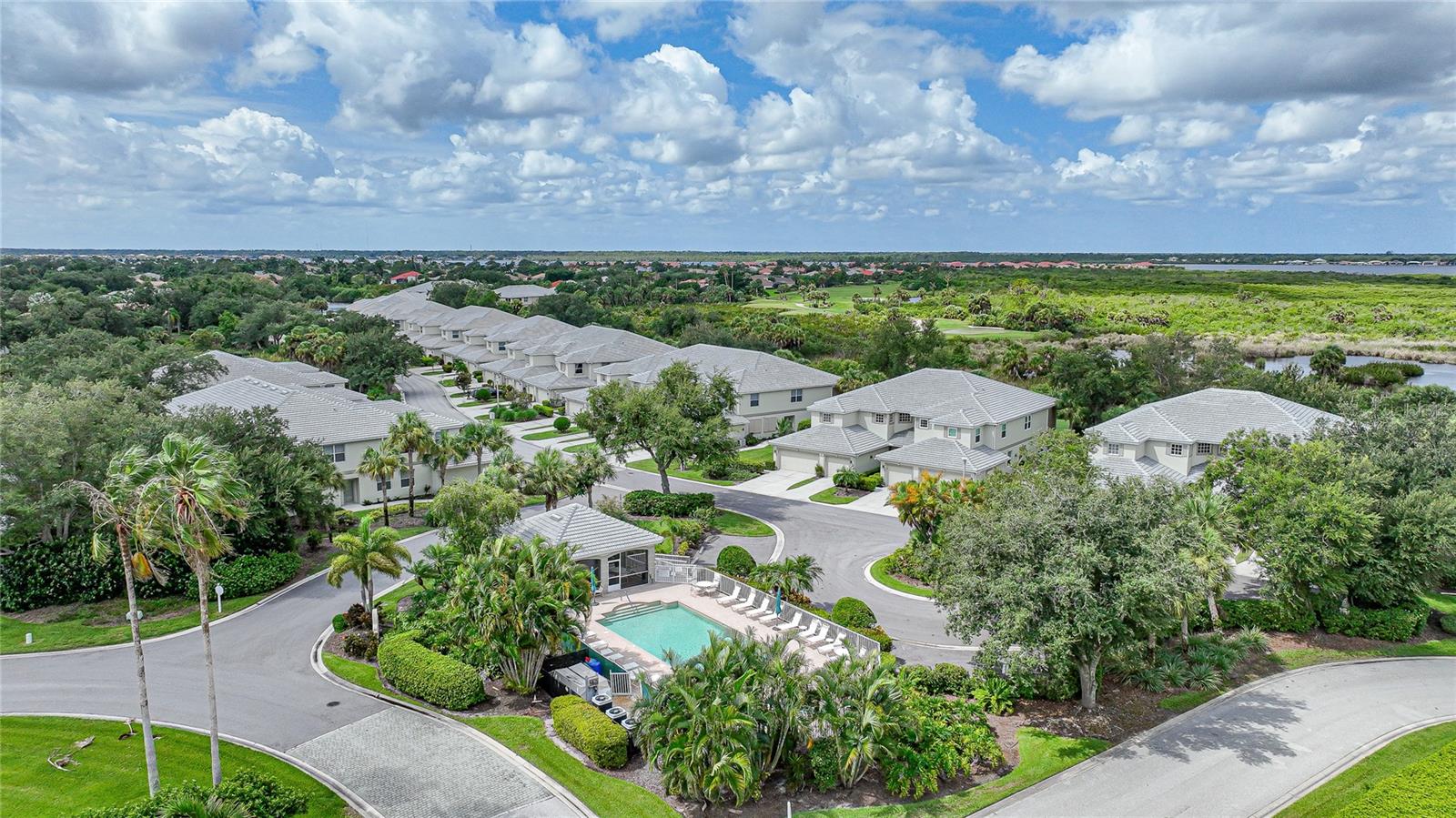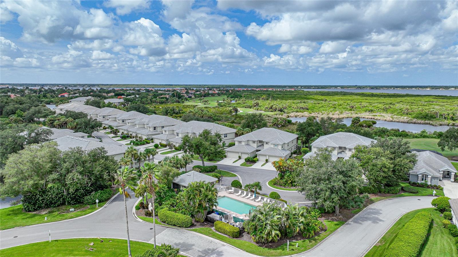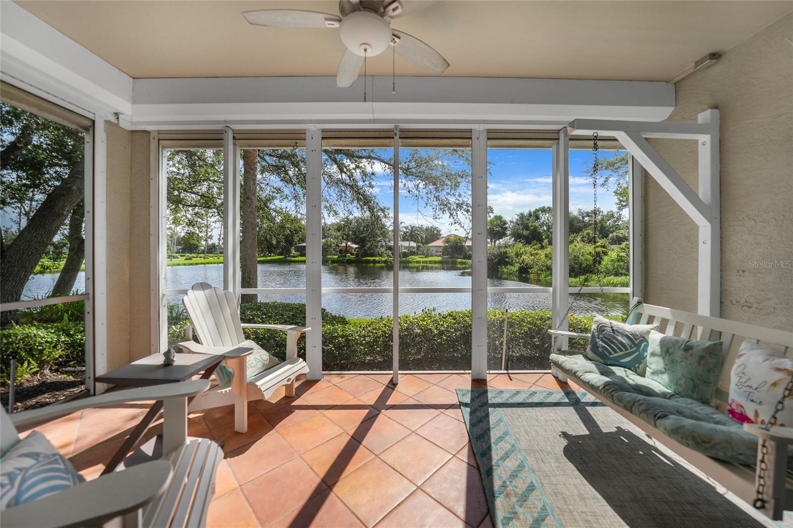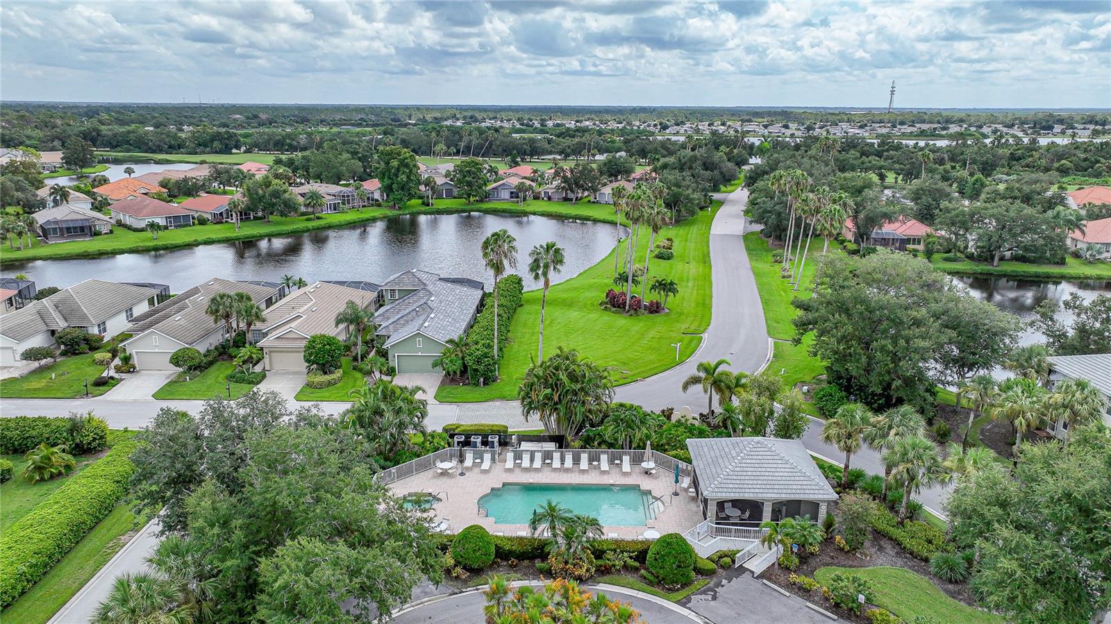 AMENITIES GALORE! SOLD FURNISHED! Welcome to the highly sought after community of Grand Vista at Riverwood. This quaint 2-bedroom 2-bathroom END UNIT boasts a breath-taking SUNRISE LAKE-VIEW right from your back porch and plenty of natural light and has an extra bonus room that could be used as a 3rd BEDROOM, DEN or OFFICE. FIRST FLOOR UNIT WITH A SPACIOUS 2 CAR GARAGE and a MASTER CLOSET THAT WILL BE SURE TO MAKE YOU SAY WOW! The property has been FULLY UPDATED from top to bottom in 2020 with not a penny spared and is MOVE IN READY. The kitchen has been updated with HIGH-QUALITY MARBLE COUNTERTOPS with a MATCHING TILE BACKSPLASH, NEW STAINLESS-STEEL APPLIANCES and SOFT CLOSE CABINETS. The home has been outfitted with 2020 VINYL FLOORING, 2020 FANS, 2020 LIGHT FIXTURES AND 2020 PLANTATION SHUTTERS. NEW 2024 ROOF HAS RECENTLY BEEN INSTALLED WHICH WAS COVERED BY THE ASSOCIATION ASSESSMENT FREE FOR THIS UNIT. NEW 2023 GARAGE DOOR. The Primary Bedroom features plenty of space for a king size bed. The primary bathroom features an updated GRANITE double-sink vanity, walk-in shower AND tub and an ABSOLOUTLY ENORMOUS CLOSET. The property features a split floorplan with a 2nd bedroom on the other side of the home beside the bonus room/den/office that could easily be converted into a 3rd bedroom as well as an interior laundry room with extra cabinet space off of the 2 CAR GARAGE. The back porch features a very cute swing to enjoy the LAKE VIEW and has ELECTRIC HURRICANE SHUTTERS installed for extra protection. TOTAL MONTHLY FEE INCLUDES MAINTENANCE OF THE BUILDING'S EXTERIOR AND REPAIRS, INSURANCE THAT INCLUDES LIABLITY AND FLOOD COVERAGE, LAWN CARE & LANDSCAPING, PEST CONTROL, IRRIGATION, WATER, TRASH, SEWER, GATED SECURITY, COMMUNITY POOL AND MORE. GRAND VISTA at Riverwood features a clubhouse, TWO community pools, tennis & pickleball courts, bocce ball, a croquet field as well as a fitness center, library, arts and crafts room and all types of scheduled EVENTS and activities. Riverwood itself features 48 lakes and 71 natural preserves. ASK ABOUT BECOMING A MEMBER OF RIVERWOOD GOLF CLUB & RIVERWOOD BEACH CLUB. Riverwood is just a short drive to Boca Grande & Manasota Key Beach and is right up the road from grocery stores, shopping, medical offices, and MUCH MORE. Schedule a showing today to see how RESORT STYLE LIVING feels.