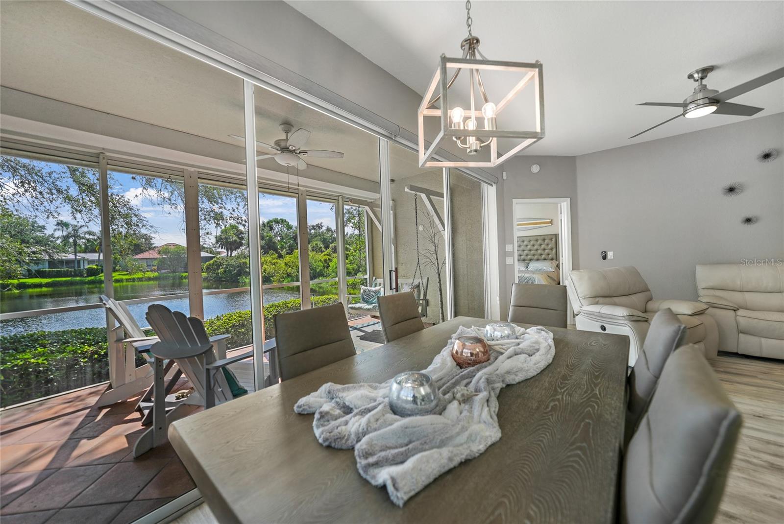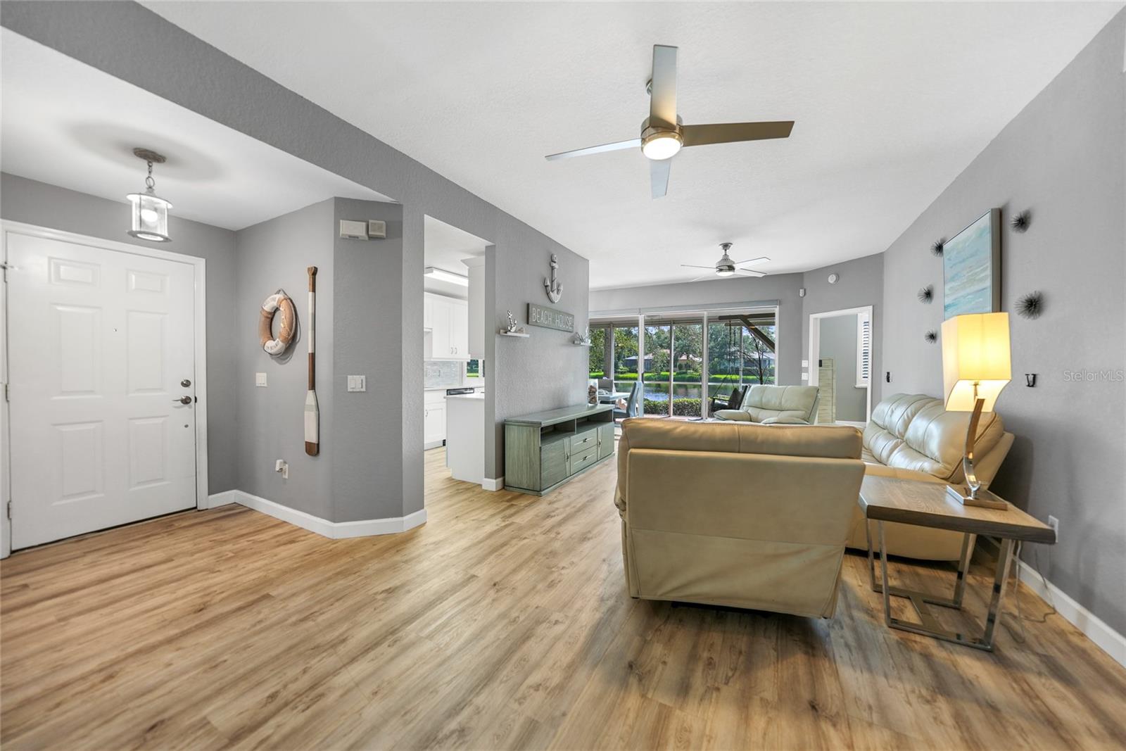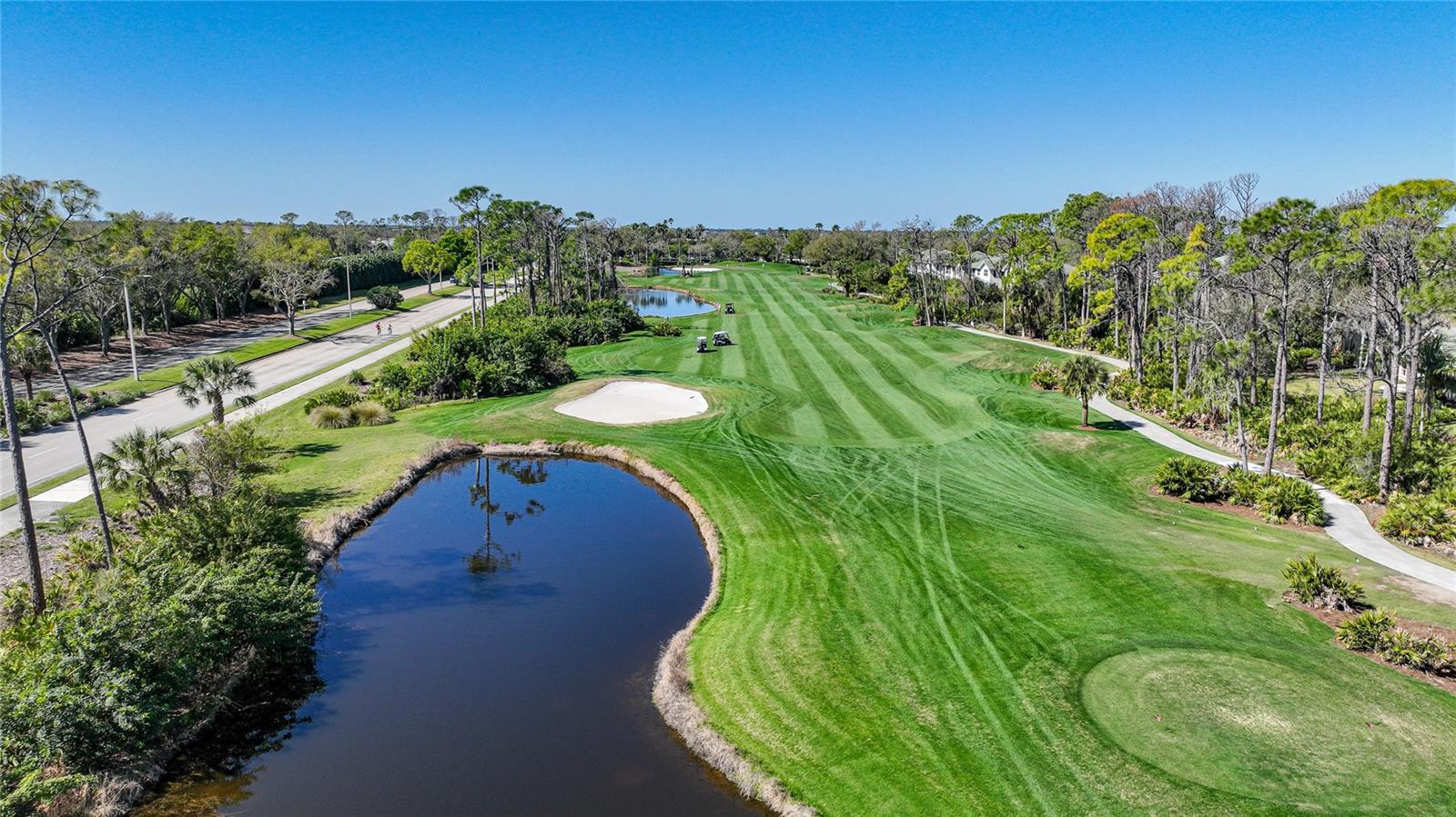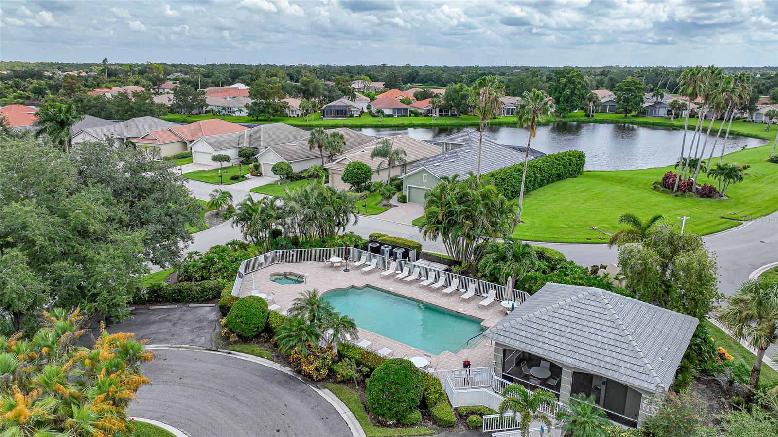 AMENITIES GALORE! SOLD FURNISHED! Welcome to the highly sought after community of Grand Vista at Riverwood. This quaint 2-bedroom 2-bathroom END UNIT boasts a breath-taking SUNRISE LAKE-VIEW right from your back porch and plenty of natural light and has an extra bonus room that could be used as a 3rd BEDROOM, DEN or OFFICE. FIRST FLOOR UNIT WITH A SPACIOUS 2 CAR GARAGE and a MASTER CLOSET THAT WILL BE SURE TO MAKE YOU SAY WOW! The property has been FULLY UPDATED from top to bottom in 2020 with not a penny spared and is MOVE IN READY. The kitchen has been updated with HIGH-QUALITY MARBLE COUNTERTOPS with a MATCHING TILE BACKSPLASH, NEW STAINLESS-STEEL APPLIANCES and SOFT CLOSE CABINETS. The home has been outfitted with 2020 VINYL FLOORING, 2020 FANS, 2020 LIGHT FIXTURES AND 2020 PLANTATION SHUTTERS. NEW 2024 ROOF HAS RECENTLY BEEN INSTALLED WHICH WAS COVERED BY THE ASSOCIATION ASSESSMENT FREE FOR THIS UNIT. NEW 2023 GARAGE DOOR. The Primary Bedroom features plenty of space for a king size bed. The primary bathroom features an updated GRANITE double-sink vanity, walk-in shower AND tub and an ABSOLOUTLY ENORMOUS CLOSET. The property features a split floorplan with a 2nd bedroom on the other side of the home beside the bonus room/den/office that could easily be converted into a 3rd bedroom as well as an interior laundry room with extra cabinet space off of the 2 CAR GARAGE. The back porch features a very cute swing to enjoy the LAKE VIEW and has ELECTRIC HURRICANE SHUTTERS installed for extra protection. TOTAL MONTHLY FEE INCLUDES MAINTENANCE OF THE BUILDING'S EXTERIOR AND REPAIRS, INSURANCE THAT INCLUDES LIABLITY AND FLOOD COVERAGE, LAWN CARE & LANDSCAPING, PEST CONTROL, IRRIGATION, WATER, TRASH, SEWER, GATED SECURITY, COMMUNITY POOL AND MORE. GRAND VISTA at Riverwood features a clubhouse, TWO community pools, tennis & pickleball courts, bocce ball, a croquet field as well as a fitness center, library, arts and crafts room and all types of scheduled EVENTS and activities. Riverwood itself features 48 lakes and 71 natural preserves. ASK ABOUT BECOMING A MEMBER OF RIVERWOOD GOLF CLUB & RIVERWOOD BEACH CLUB. Riverwood is just a short drive to Boca Grande & Manasota Key Beach and is right up the road from grocery stores, shopping, medical offices, and MUCH MORE. Schedule a showing today to see how RESORT STYLE LIVING feels.