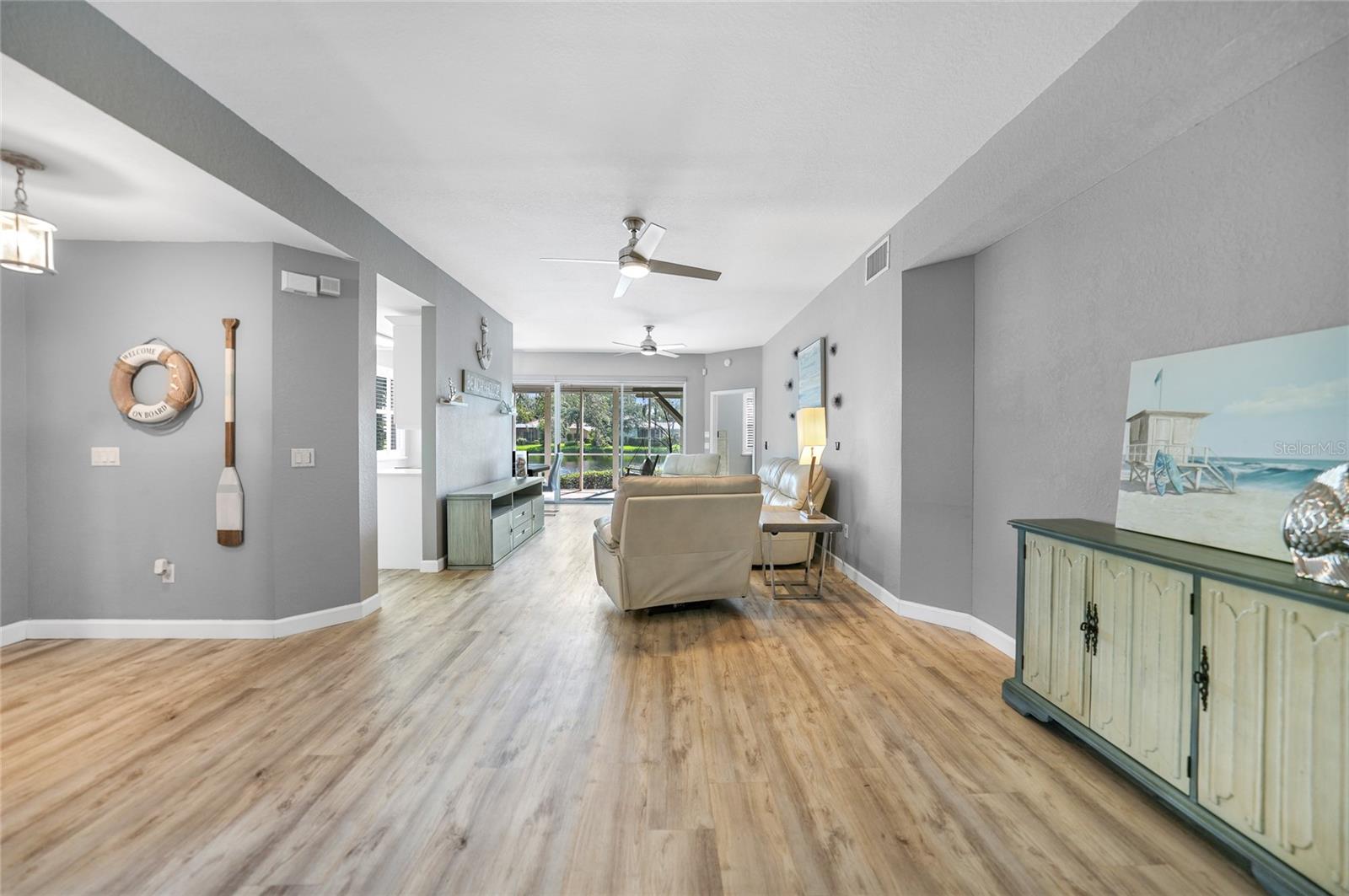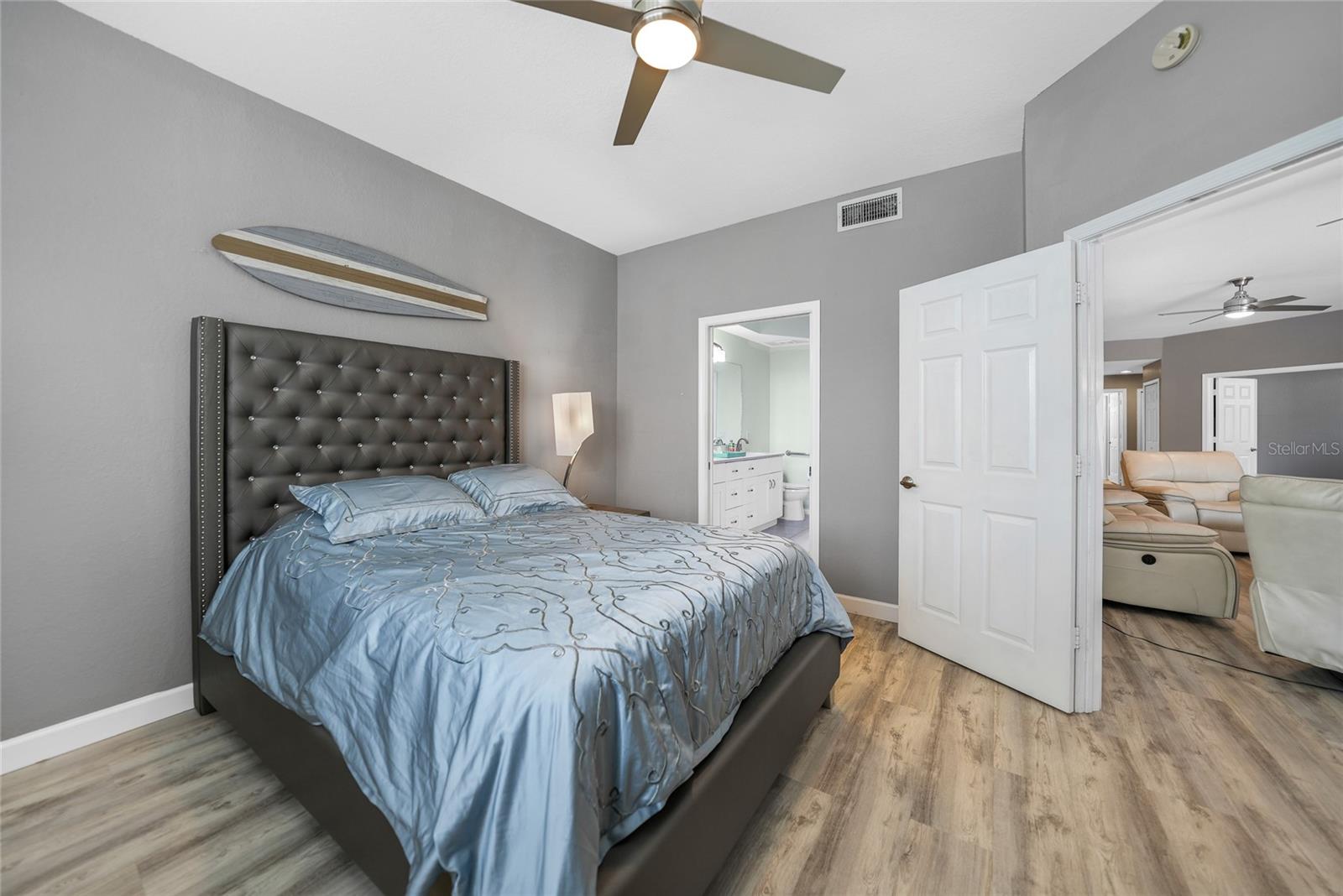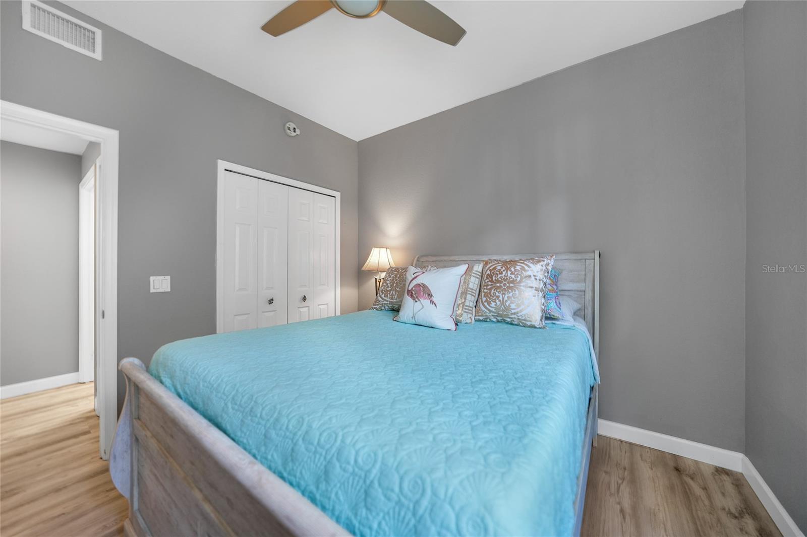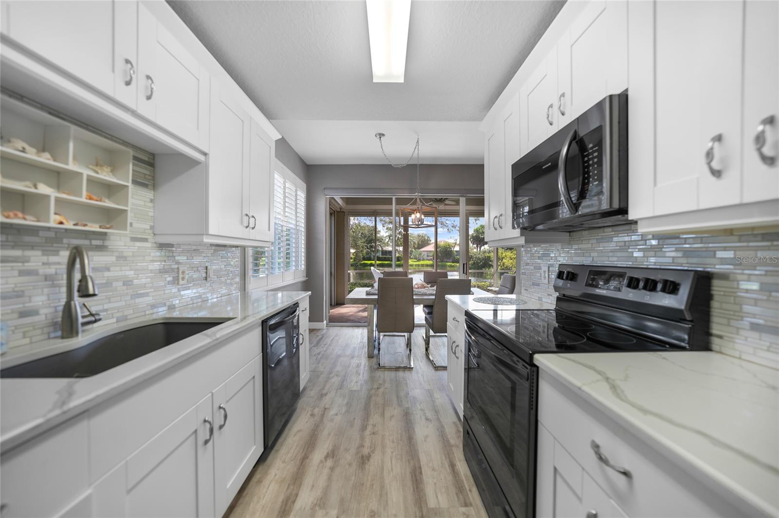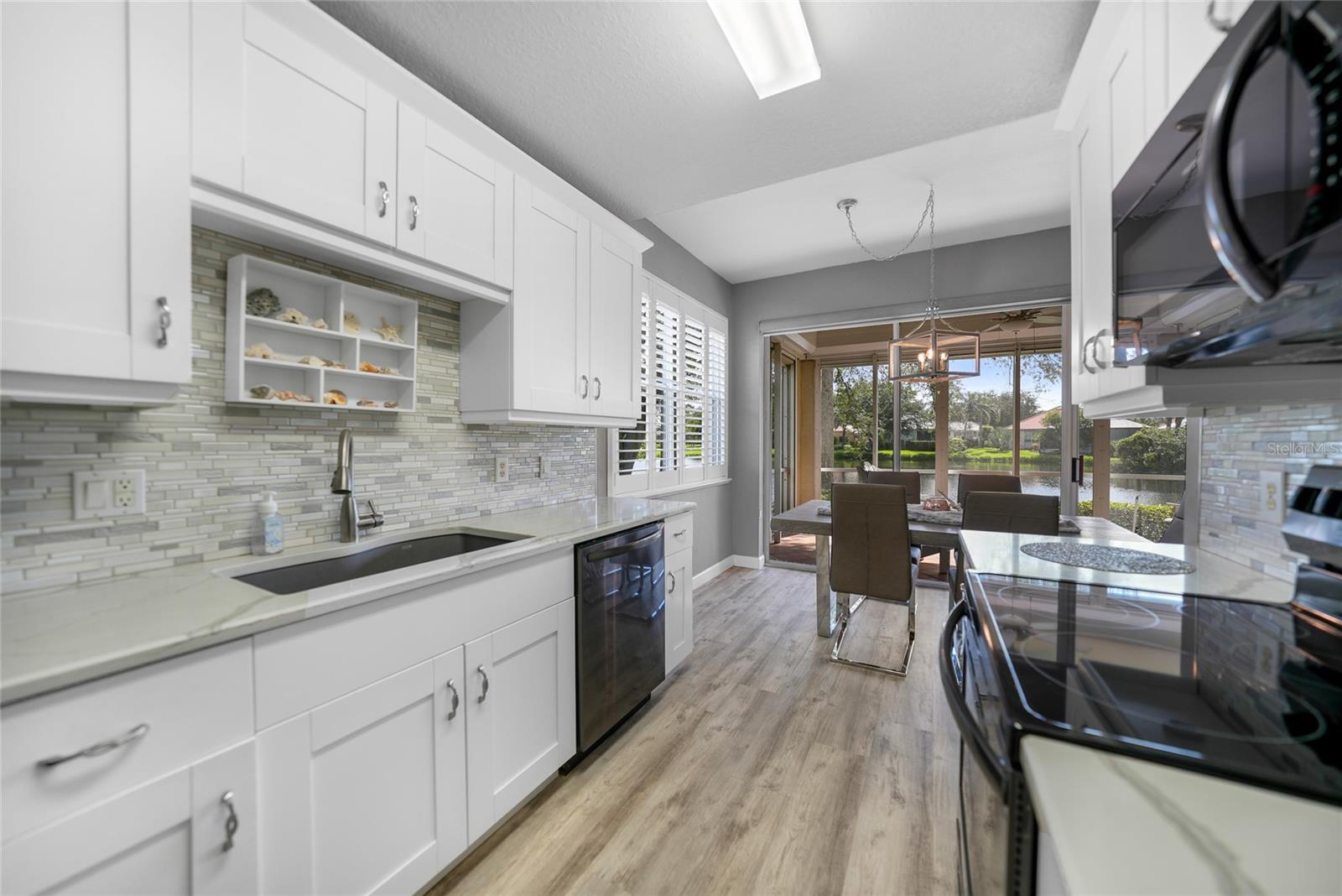 AMENITIES GALORE! SOLD FURNISHED! Welcome to the highly sought after community of Grand Vista at Riverwood. This quaint 2-bedroom 2-bathroom END UNIT boasts a breath-taking SUNRISE LAKE-VIEW right from your back porch and plenty of natural light and has an extra bonus room that could be used as a 3rd BEDROOM, DEN or OFFICE. FIRST FLOOR UNIT WITH A SPACIOUS 2 CAR GARAGE and a MASTER CLOSET THAT WILL BE SURE TO MAKE YOU SAY WOW! The property has been FULLY UPDATED from top to bottom in 2020 with not a penny spared and is MOVE IN READY. The kitchen has been updated with HIGH-QUALITY MARBLE COUNTERTOPS with a MATCHING TILE BACKSPLASH, NEW STAINLESS-STEEL APPLIANCES and SOFT CLOSE CABINETS. The home has been outfitted with 2020 VINYL FLOORING, 2020 FANS, 2020 LIGHT FIXTURES AND 2020 PLANTATION SHUTTERS. NEW 2024 ROOF HAS RECENTLY BEEN INSTALLED WHICH WAS COVERED BY THE ASSOCIATION ASSESSMENT FREE FOR THIS UNIT. NEW 2023 GARAGE DOOR. The Primary Bedroom features plenty of space for a king size bed. The primary bathroom features an updated GRANITE double-sink vanity, walk-in shower AND tub and an ABSOLOUTLY ENORMOUS CLOSET. The property features a split floorplan with a 2nd bedroom on the other side of the home beside the bonus room/den/office that could easily be converted into a 3rd bedroom as well as an interior laundry room with extra cabinet space off of the 2 CAR GARAGE. The back porch features a very cute swing to enjoy the LAKE VIEW and has ELECTRIC HURRICANE SHUTTERS installed for extra protection. TOTAL MONTHLY FEE INCLUDES MAINTENANCE OF THE BUILDING'S EXTERIOR AND REPAIRS, INSURANCE THAT INCLUDES LIABLITY AND FLOOD COVERAGE, LAWN CARE & LANDSCAPING, PEST CONTROL, IRRIGATION, WATER, TRASH, SEWER, GATED SECURITY, COMMUNITY POOL AND MORE. GRAND VISTA at Riverwood features a clubhouse, TWO community pools, tennis & pickleball courts, bocce ball, a croquet field as well as a fitness center, library, arts and crafts room and all types of scheduled EVENTS and activities. Riverwood itself features 48 lakes and 71 natural preserves. ASK ABOUT BECOMING A MEMBER OF RIVERWOOD GOLF CLUB & RIVERWOOD BEACH CLUB. Riverwood is just a short drive to Boca Grande & Manasota Key Beach and is right up the road from grocery stores, shopping, medical offices, and MUCH MORE. Schedule a showing today to see how RESORT STYLE LIVING feels.