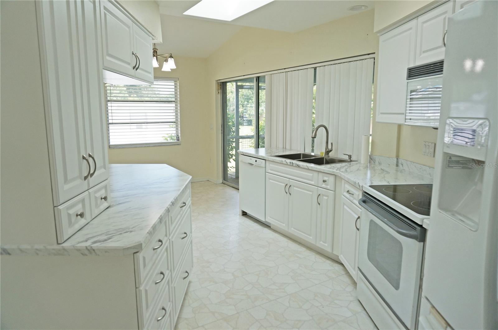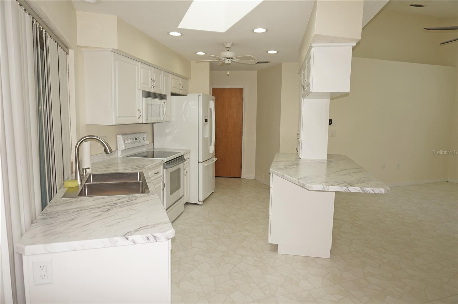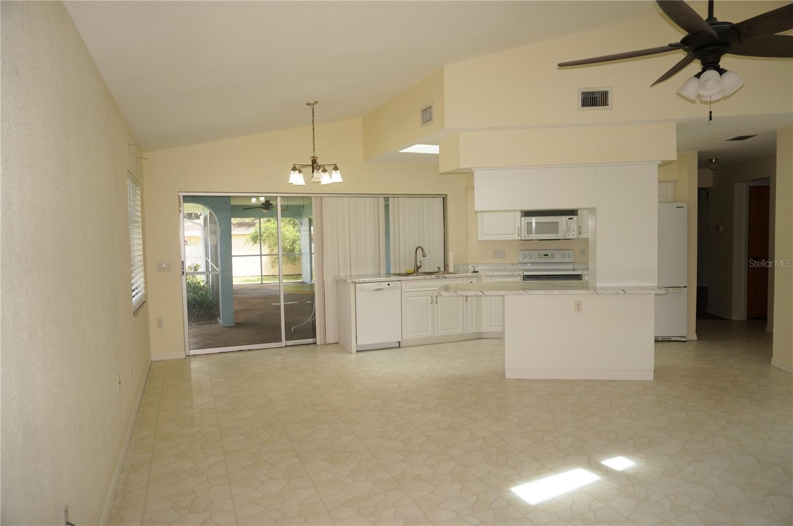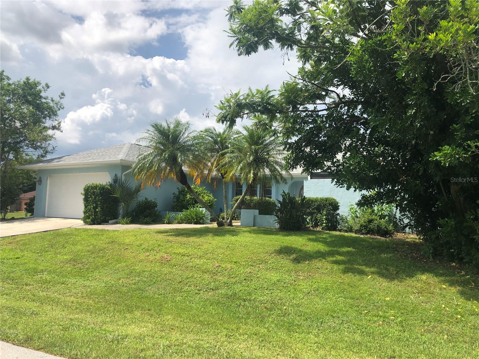 Spacious 3 Bedroom, 2 Bathroom home with attached 2 Car Garage located on an oversized corner lot in the heart of Port Charlotte. NO HOA and NOT in a designated flood zone. This light and bright home offers an open and split bedroom floor plan with Great Room, separate Dining Room, Family Room, eat in Kitchen, Inside Laundry Room with washer, dryer, laundry tub and cabinets and screened Lanai. The Great Room offers high ceilings, sliding glass doors to the Lanai and luxury plank flooring. The Kitchen features white wood cabinets, beautiful new countertops, breakfast bar, dining area, skylight, double sink, lanai access via sliding glass doors. The Kitchen opens to the large Family Room with high ceilings, vaulted ceiling, plant shelves, skylight and tile floor. Appliances include a french door refrigerator, dishwasher, oven/range, built in microwave. There is a spacious separate Dining Room with vaulted ceiling and luxury vinyl plank flooring. The Master Bedroom suite features luxury vinyl plank flooring, lanai access, very large walk in closet and private bathroom with tub/shower combo, separate walk in shower, and PRIVATE COURTYARD which is wired for an above ground spa. There are two additional generous sized bedrooms with double closets (each closet has two entries) and the guest bathroom has a quartz counter, large walk in shower and has access to the Lanai. Your living space extends via pocket sliding glass doors to the 34 x 14 covered screened lanai and on to the backyard with 8 x 10 shed. The side yard (approximately 55 x 25 feet is perfect to store an RV or boat on a trailer. Other features: ** NEW ROOF FEB 2023 ** Double Door entry, NEW exterior and interior paint 2023, underground utilities, rain gutters, skylights. This home is 5 minutes from shopping, dining, entertainment, I-75, medical care.