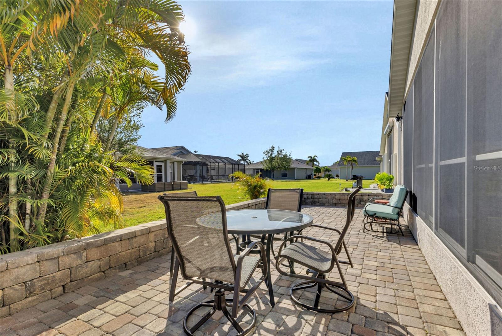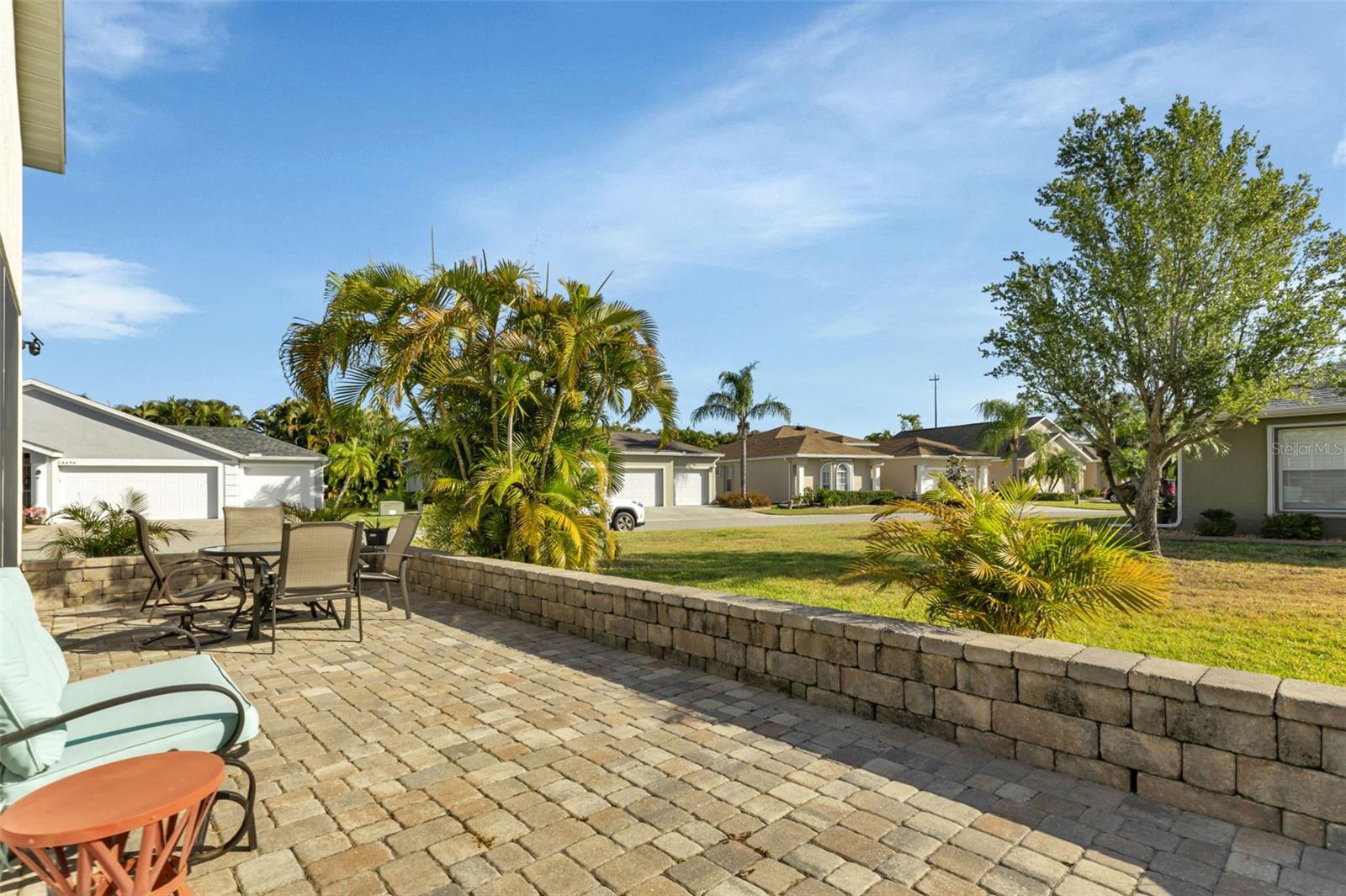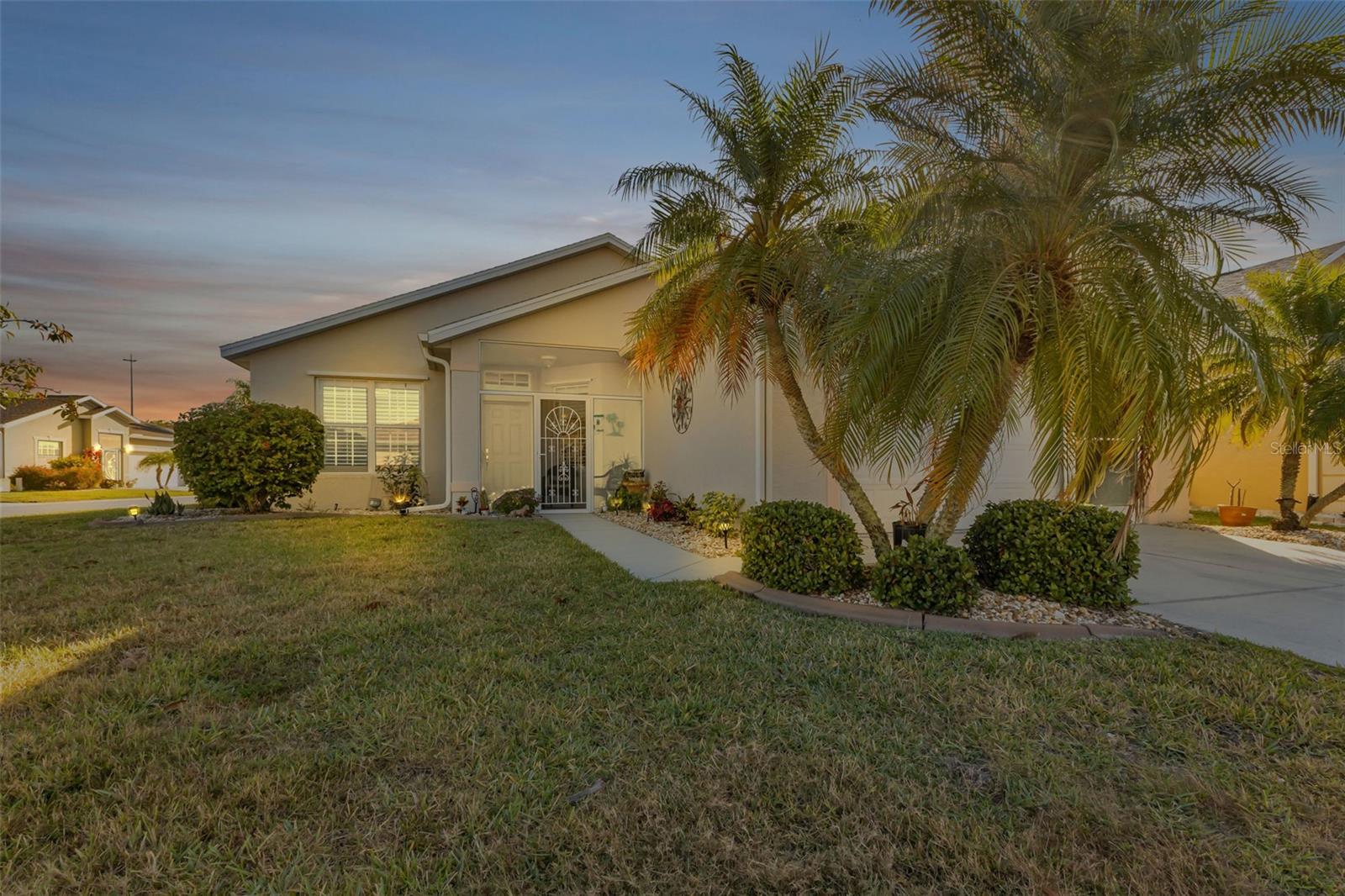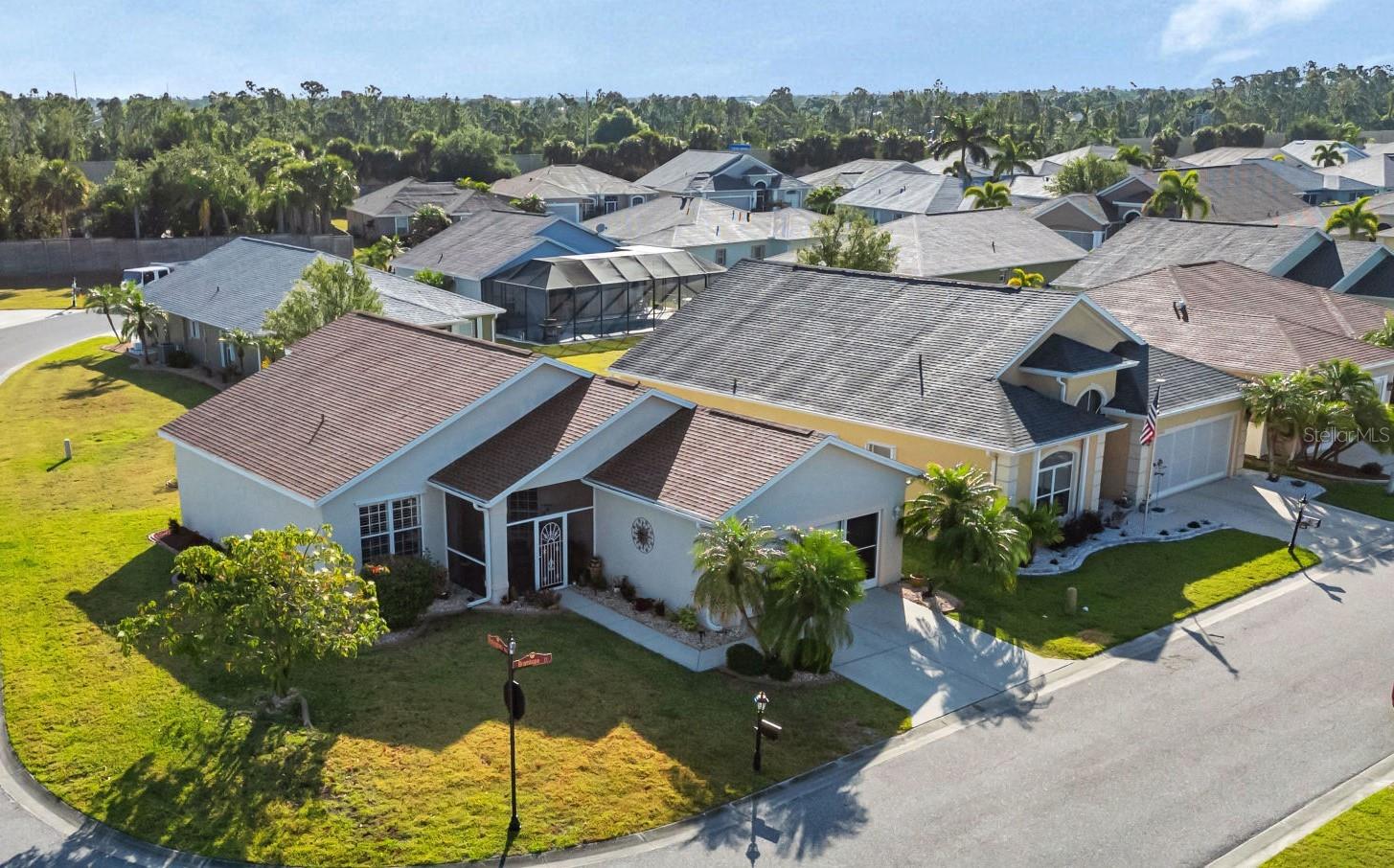 One or more photo(s) has been virtually staged. AMAZING corner lot home with TREMENDOUS curb appeal in front and large paver patio in back in this well maintained home in the gated golf course/active resort of highly desirable Kings Gate, a 55+ community (evacuation zone D - have not been under any evacuation order, more than 20 feet above sea level - storm surge has not been an issue, not in a flood zone - no flood insurance required). Nicely updated home with 2022 ROOF, 2018 AC, PORCELAIN TILE throughout the home, kitchen with GRANITE & SS APPLIANCES, add in some plantation shutters, closet organizer, large lanai & paver patio, and hanging down storage in garage and you have the recipe for the Florida dream lifestyle. As you approach this house you'll notice the cute screened in entry way - step inside the home and you're going to smile at the porcelain tile all throughout the home providing a seamless look and feel. The kitchen to the right provides plenty of counter and cabinet space with ample room for a table - the flex room to the left can be used as a dining room, study/den, 3rd bedroom - whatever fits your needs. The split floor plan has the guest bedroom/bath to the left with the master to the right and the large living room in between. The VERY LARGE lanai (enclosed with acrylic windows) has an equally LARGE paver patio providing plenty of options for entertainment/relaxation. And if you haven't been to Kings Gate before - you're going to love the options for activity (Olympic size heated swimming pool and spa, tennis courts, pickle ball, lawn bowling, shuffle board, bocce, horseshoes, gym, billiards, library, euchre, bingo, bridge, Texas hold em, poker, mahjong and more). The onsite Lions Den restaurant and bar is super convenient and also offers Tuesday night Karaoke and monthly trivia contests. Many residents love the fact that they are just a golf cart ride away from the Winn Dixie shopping plaza that provides you access to grocery store, drug store, bank, restaurants and shopping. Want to explore outside of Kings Gate - your minutes away from the restaurants and shops of downtown Punta Gorda and Fisherman's village. And if you want to explore more of Florida's fun spots you’re near I75 to quickly head north or south. An AMAZING home with tremendous lot/curb appeal providing TREMENDOUS VALUE in a highly desirable gated community needs to be seen in person. Call today for a private showing and a golf cart tour of the community/amenities.