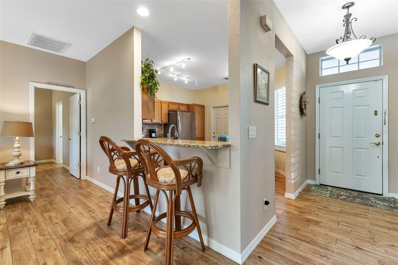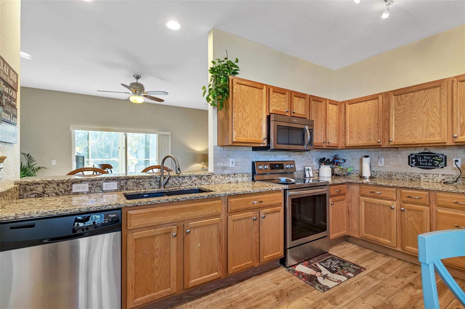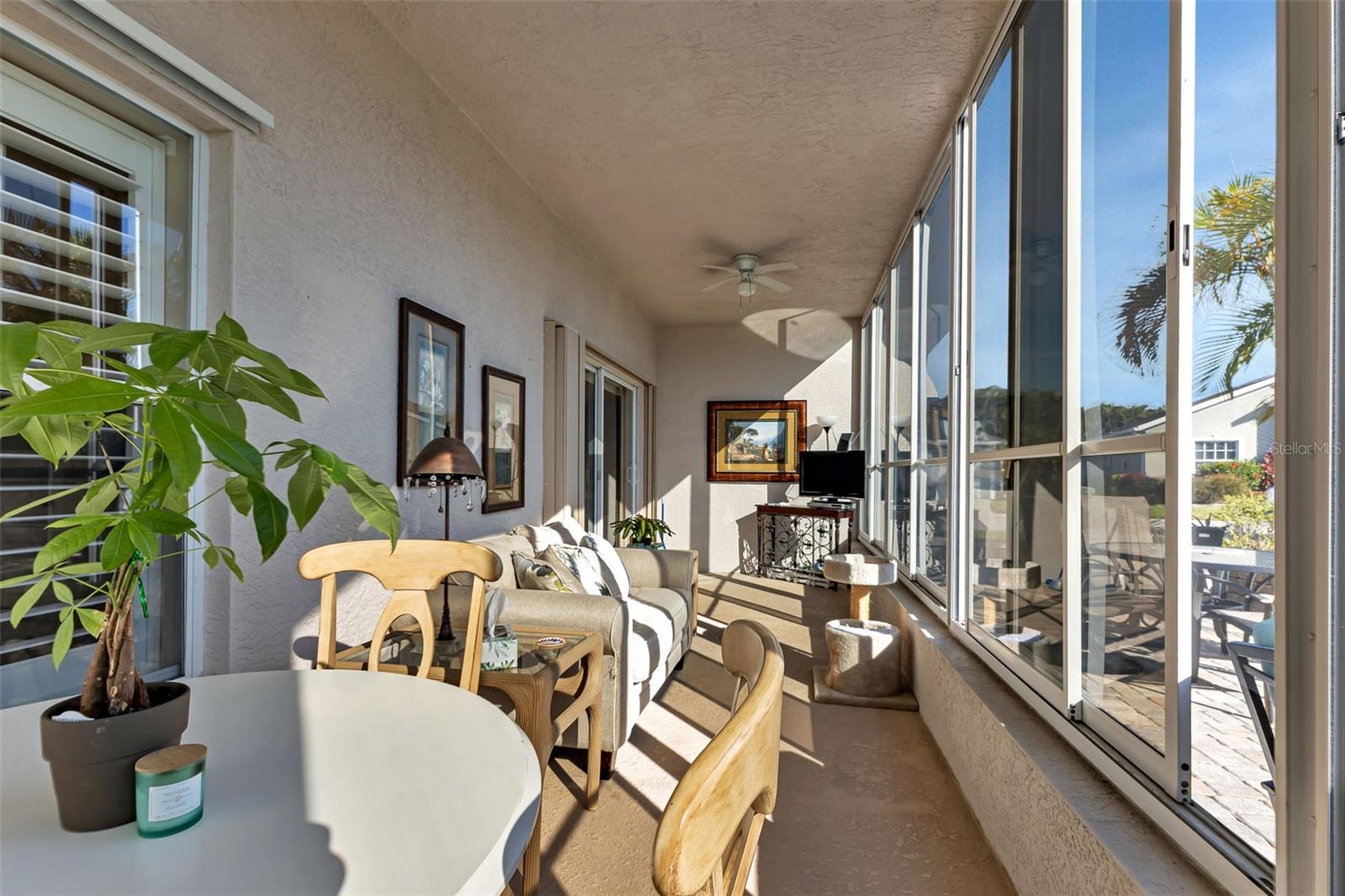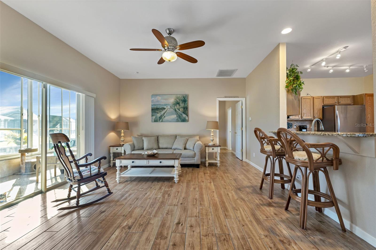One or more photo(s) has been virtually staged. AMAZING corner lot home with TREMENDOUS curb appeal in front and large paver patio in back in this well maintained home in the gated golf course/active resort of highly desirable Kings Gate, a 55+ community (evacuation zone D - have not been under any evacuation order, more than 20 feet above sea level - storm surge has not been an issue, not in a flood zone - no flood insurance required). Nicely updated home with 2022 ROOF, 2018 AC, PORCELAIN TILE throughout the home, kitchen with GRANITE & SS APPLIANCES, add in some plantation shutters, closet organizer, large lanai & paver patio, and hanging down storage in garage and you have the recipe for the Florida dream lifestyle. As you approach this house you'll notice the cute screened in entry way - step inside the home and you're going to smile at the porcelain tile all throughout the home providing a seamless look and feel. The kitchen to the right provides plenty of counter and cabinet space with ample room for a table - the flex room to the left can be used as a dining room, study/den, 3rd bedroom - whatever fits your needs. The split floor plan has the guest bedroom/bath to the left with the master to the right and the large living room in between. The VERY LARGE lanai (enclosed with acrylic windows) has an equally LARGE paver patio providing plenty of options for entertainment/relaxation. And if you haven't been to Kings Gate before - you're going to love the options for activity (Olympic size heated swimming pool and spa, tennis courts, pickle ball, lawn bowling, shuffle board, bocce, horseshoes, gym, billiards, library, euchre, bingo, bridge, Texas hold em, poker, mahjong and more). The onsite Lions Den restaurant and bar is super convenient and also offers Tuesday night Karaoke and monthly trivia contests. Many residents love the fact that they are just a golf cart ride away from the Winn Dixie shopping plaza that provides you access to grocery store, drug store, bank, restaurants and shopping. Want to explore outside of Kings Gate - your minutes away from the restaurants and shops of downtown Punta Gorda and Fisherman's village. And if you want to explore more of Florida's fun spots you’re near I75 to quickly head north or south. An AMAZING home with tremendous lot/curb appeal providing TREMENDOUS VALUE in a highly desirable gated community needs to be seen in person. Call today for a private showing and a golf cart tour of the community/amenities.