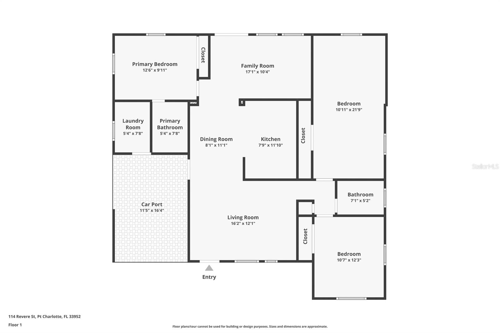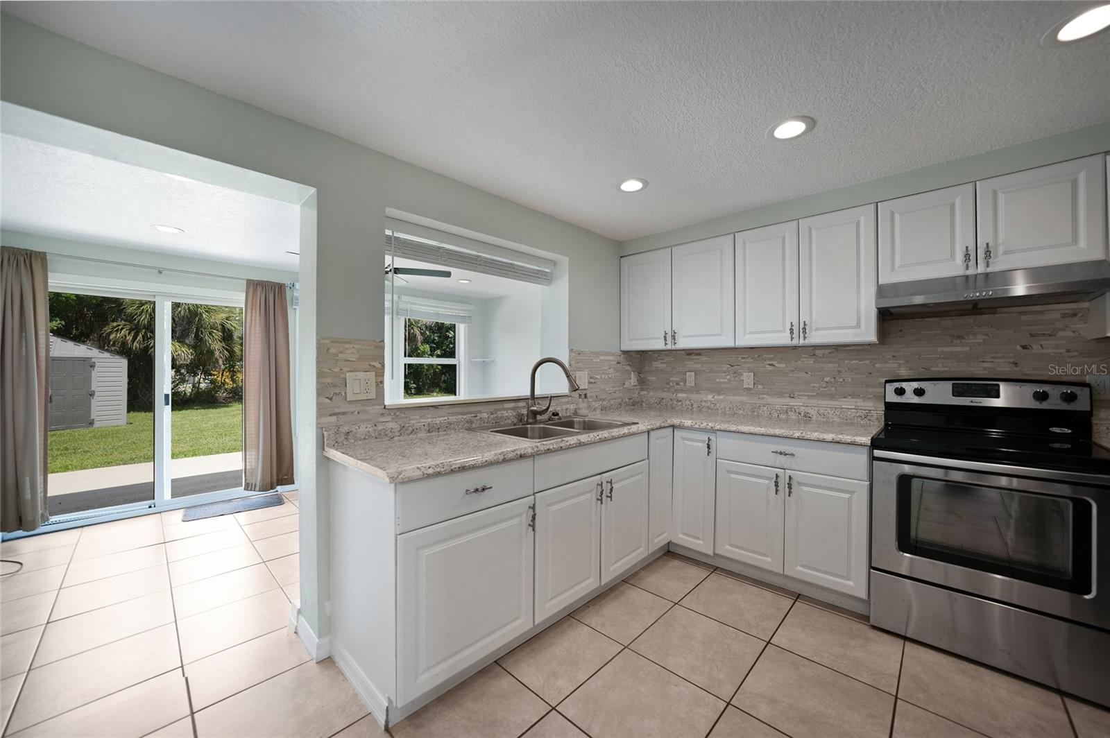 Welcome to this beautifully updated and meticulously maintained 1,278 square foot home, ideally situated in the heart of Port Charlotte. Perfectly suited as a starter home, a savvy investment, or your cozy winter retreat, this inviting residence offers a blend of modern upgrades and classic comfort. Step inside to discover an open living and dining area adorned with sleek tiled flooring throughout. The spacious, updated kitchen features new countertops, raised-panel soft-close cabinets, a stylish tile backsplash, and brand-new stainless steel appliances, including a range, vent, and refrigerator. This kitchen is as functional as it is beautiful, flowing seamlessly into the family room, which boasts sliders leading out to the back patio—a versatile space that can also serve as a large dining area. The primary bedroom is a tranquil retreat with a generous closet, and an updated en-suite bath complete with a vanity and a large walk-in shower. Two additional guest bedrooms provide ample space and closet storage, supported by a full guest bathroom. Recent enhancements include a 2023 roof, drywall and insulation, a new front window, and a newly installed wood fence for added privacy. The home also features a concrete driveway, a covered carport, and a convenient laundry room off the carport. The large backyard is home to a nice sized shed, perfect for storing lawn tools and equipment. Freshly painted inside and out, this home also benefits from re-plumbing, re-wiring, new ceiling fans, and public water and sewer services. Enjoy the convenience of being close to major roads, shopping centers, entertainment venues, healthcare facilities, and beautiful beaches. Embrace the true Florida lifestyle with opportunities for hiking, biking, boating, fishing, and more. Don’t miss the chance to make this delightful property your own personal sanctuary. Schedule a visit today and experience all that this charming home has to offer!