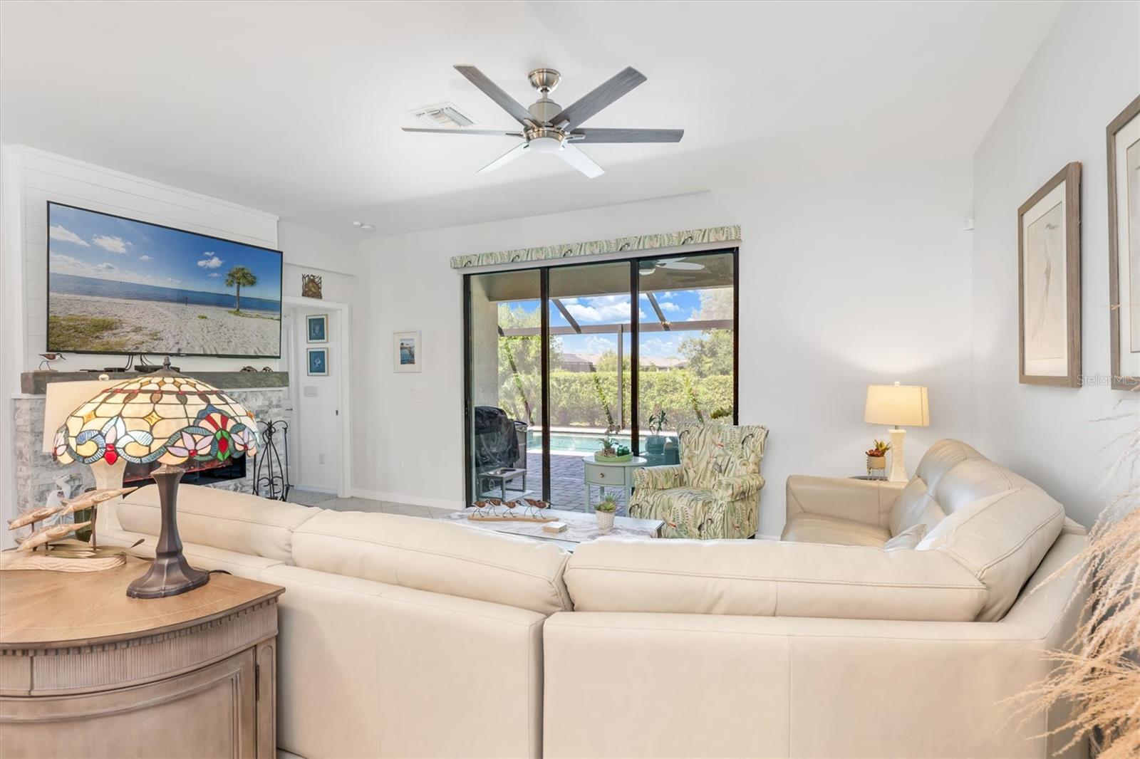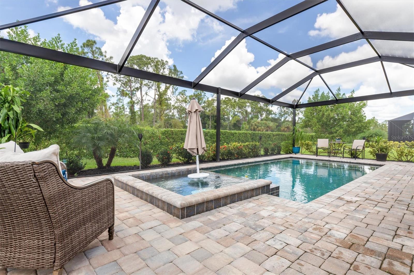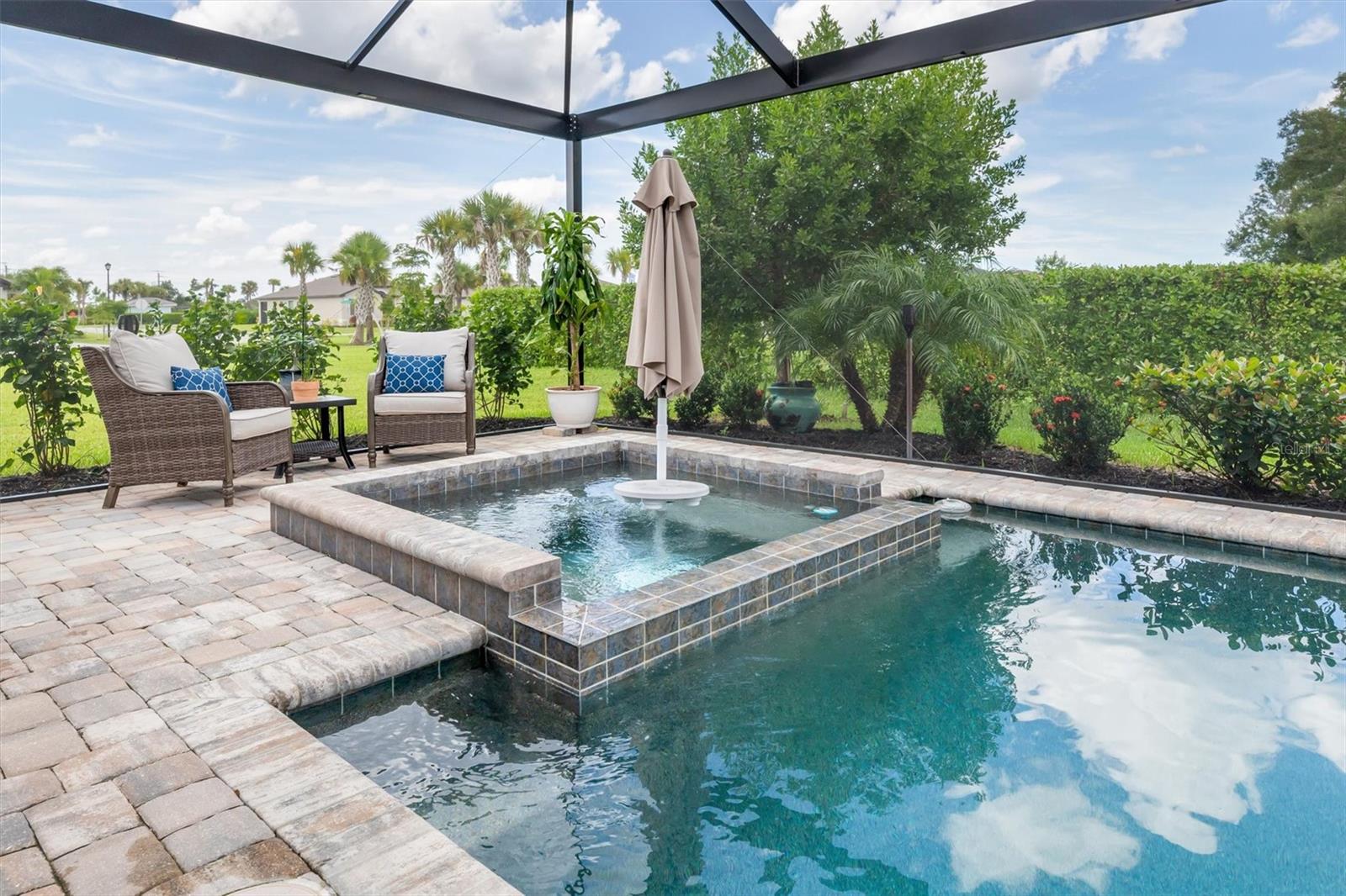 Take advantage of this Unique opportunity now! • Location - Location - Location • This 2032 Sq Ft 4 BR & 3 Full bath single family Home has So So many Upgrades • Just some of which you will enjoy are • Oversized Pebble Tech floor heated POOL and Lanai • built in 6 X 6 Heated spa with many jets for your relaxation • Roof top solar heating system heats the Pool & the Spa adding nothing to your electric bill • Custom Picture Frame Cage Screen for beautiful untirupted views • Custom built Fireplace including Mosaic Granite & remote control • Fireplace also offers 1500 watt thermostatically controlled heat with blower • Plantation shutters on all windows & even the front door • the Triple Slider to the Lanai offers a power remote controlled roll down blind • In addition another roll down blind for shade is out on the Lanai • New in 2024, a Remo Halo whole house Air Filtration sysytem • Kitchen offers many upgrades - Subway tile backslpsh - Shiplap accent around the island - Under cabinet lighting remote controlled - Lots of extra shelving in the walk in pantry & More • Master Suite offers Ensuite bathroom with huge walk in shower - 2 walk in closets - Dual sinks • BR # 2 boasts Shiplap accent wall AND a Full Bathroom • 3rd Full bath has custom decrotive tile • Plenty of room for guests, an office, a hobby room - all your choice, with bedroom #3 & #4 • Laundry room has extra overhead storage cabinets • 2 car attcahed garage offers lots of storage up above & pull down steps • Seller upgraded to have seamless gutters around the entire perimeter of the home • Seller upgraed & had all the interior walls painted • Golf Carts are welcomed • There are No neighbors behind you, nor to the left of you and none can ever be built there • Note * This is the "original" TREVI model offers more kichen cabinets and more kitchen space than the revised one • Irrigation of grass and plants are included in the HOA fee • Another Big Plus NO NEED FOR FLOOD INSURANCE !!