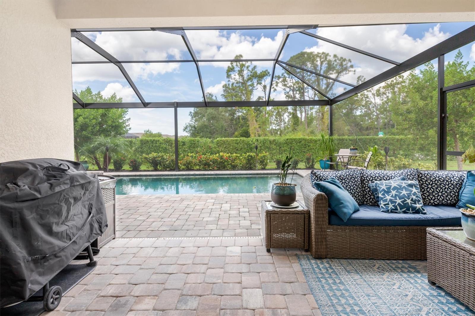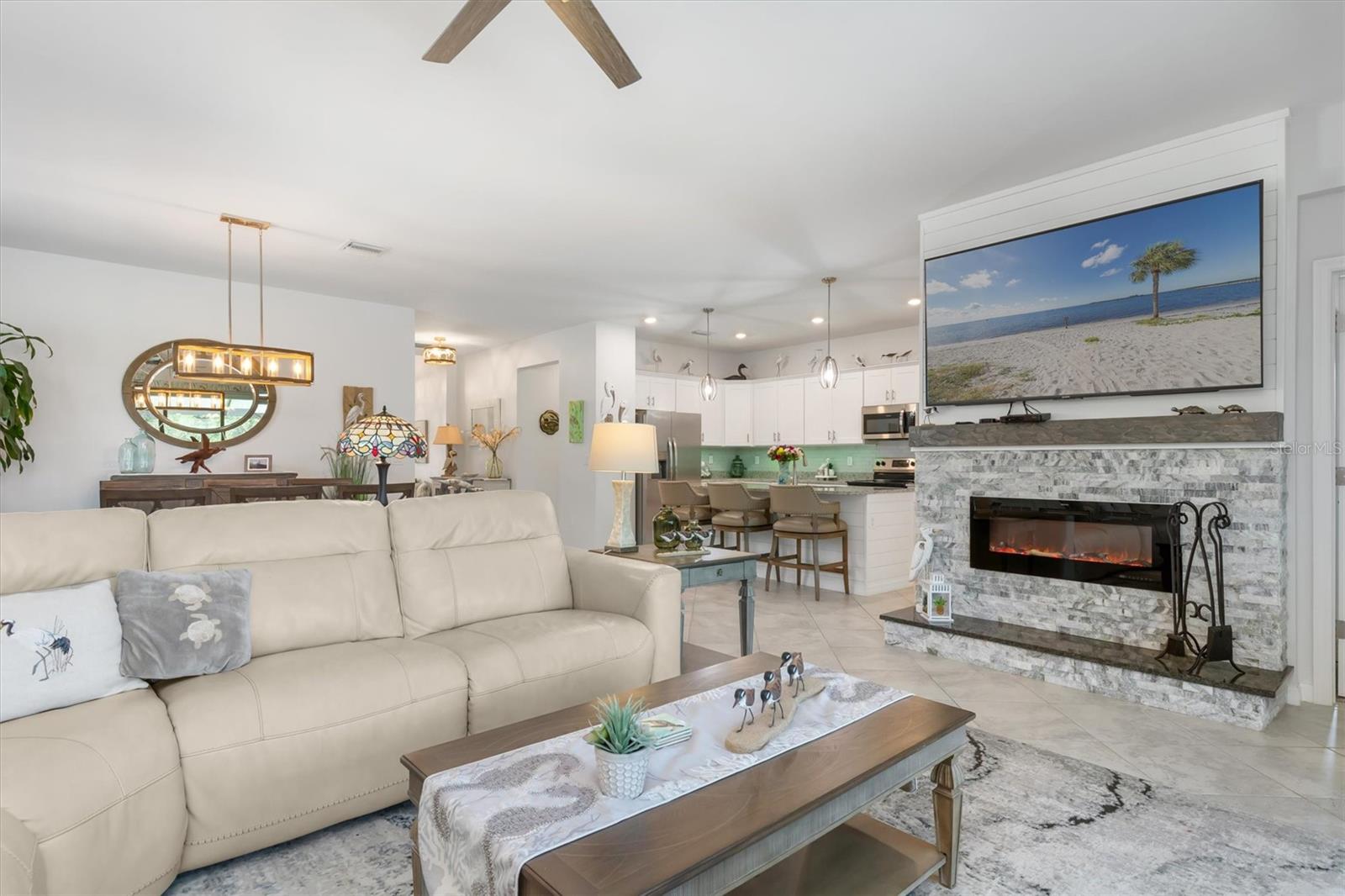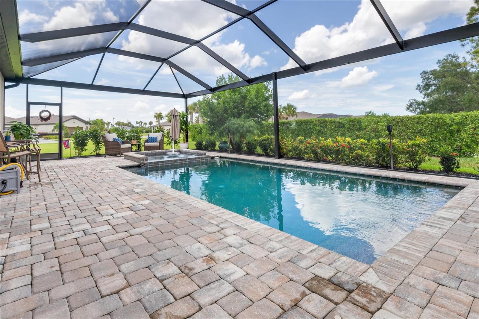 Take advantage of this Unique opportunity now! • Location - Location - Location • This 2032 Sq Ft 4 BR & 3 Full bath single family Home has So So many Upgrades • Just some of which you will enjoy are • Oversized Pebble Tech floor heated POOL and Lanai • built in 6 X 6 Heated spa with many jets for your relaxation • Roof top solar heating system heats the Pool & the Spa adding nothing to your electric bill • Custom Picture Frame Cage Screen for beautiful untirupted views • Custom built Fireplace including Mosaic Granite & remote control • Fireplace also offers 1500 watt thermostatically controlled heat with blower • Plantation shutters on all windows & even the front door • the Triple Slider to the Lanai offers a power remote controlled roll down blind • In addition another roll down blind for shade is out on the Lanai • New in 2024, a Remo Halo whole house Air Filtration sysytem • Kitchen offers many upgrades - Subway tile backslpsh - Shiplap accent around the island - Under cabinet lighting remote controlled - Lots of extra shelving in the walk in pantry & More • Master Suite offers Ensuite bathroom with huge walk in shower - 2 walk in closets - Dual sinks • BR # 2 boasts Shiplap accent wall AND a Full Bathroom • 3rd Full bath has custom decrotive tile • Plenty of room for guests, an office, a hobby room - all your choice, with bedroom #3 & #4 • Laundry room has extra overhead storage cabinets • 2 car attcahed garage offers lots of storage up above & pull down steps • Seller upgraded to have seamless gutters around the entire perimeter of the home • Seller upgraed & had all the interior walls painted • Golf Carts are welcomed • There are No neighbors behind you, nor to the left of you and none can ever be built there • Note * This is the "original" TREVI model offers more kichen cabinets and more kitchen space than the revised one • Irrigation of grass and plants are included in the HOA fee • Another Big Plus NO NEED FOR FLOOD INSURANCE !!