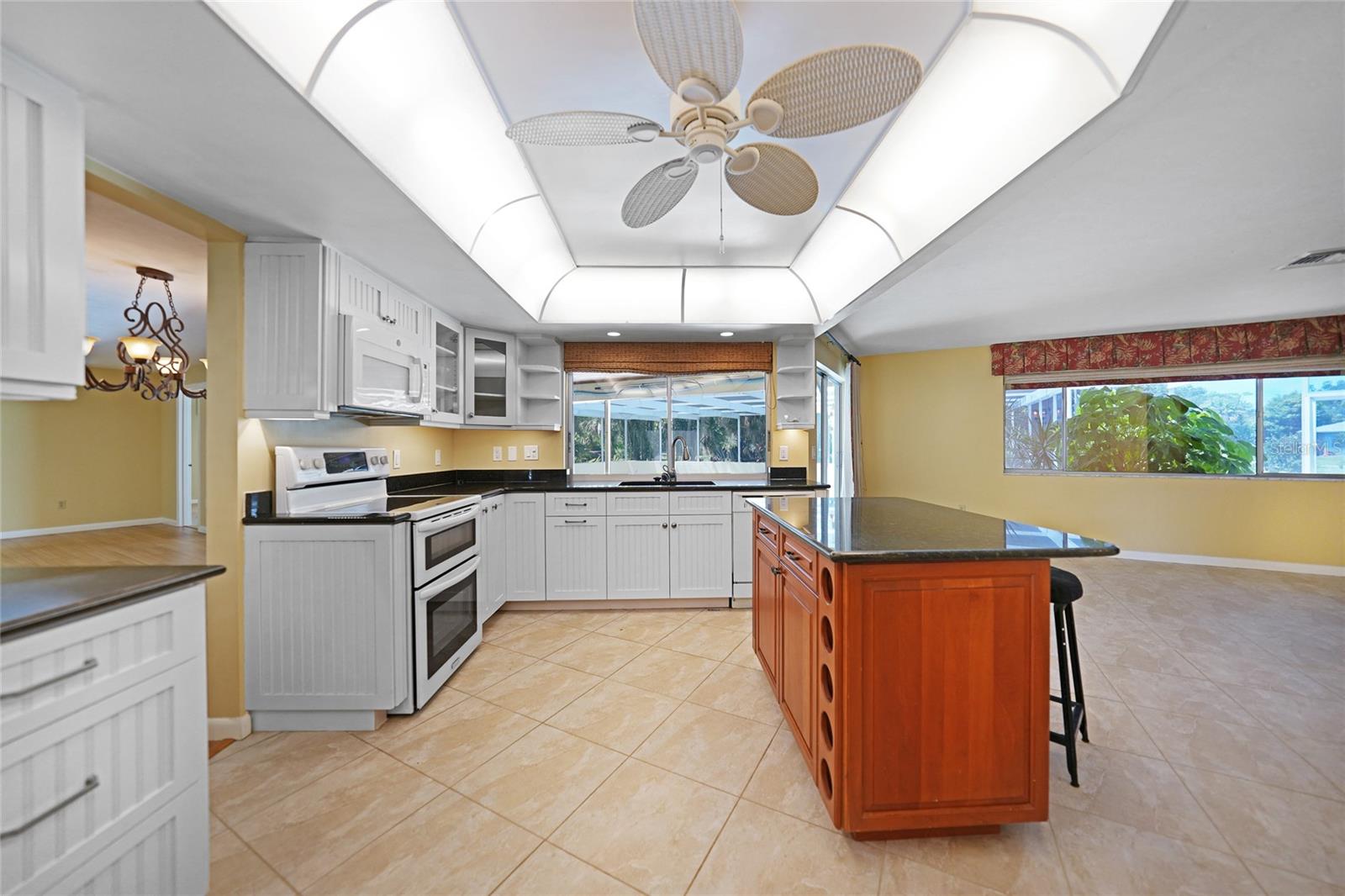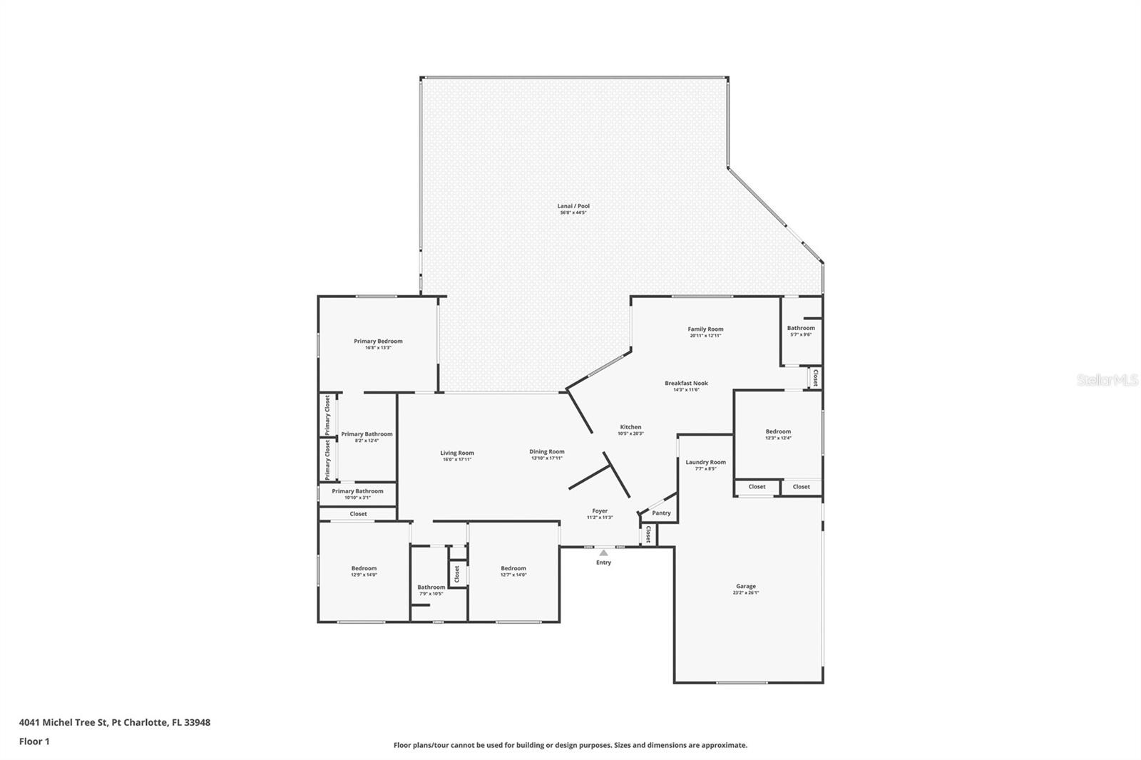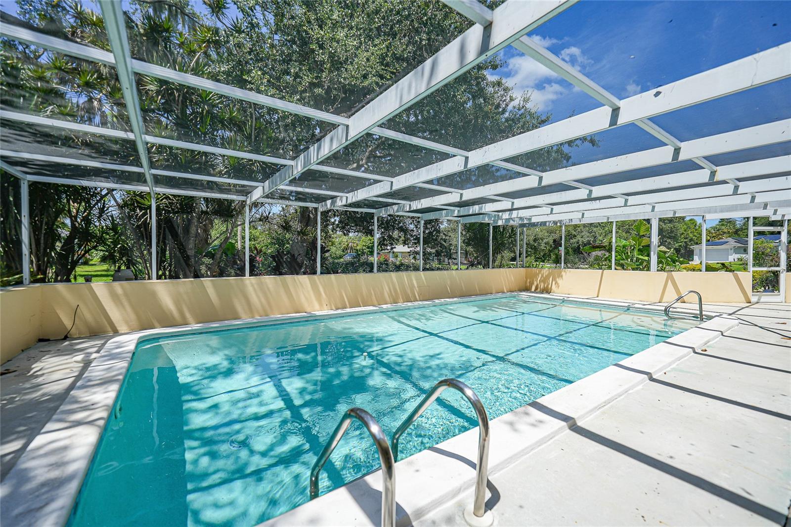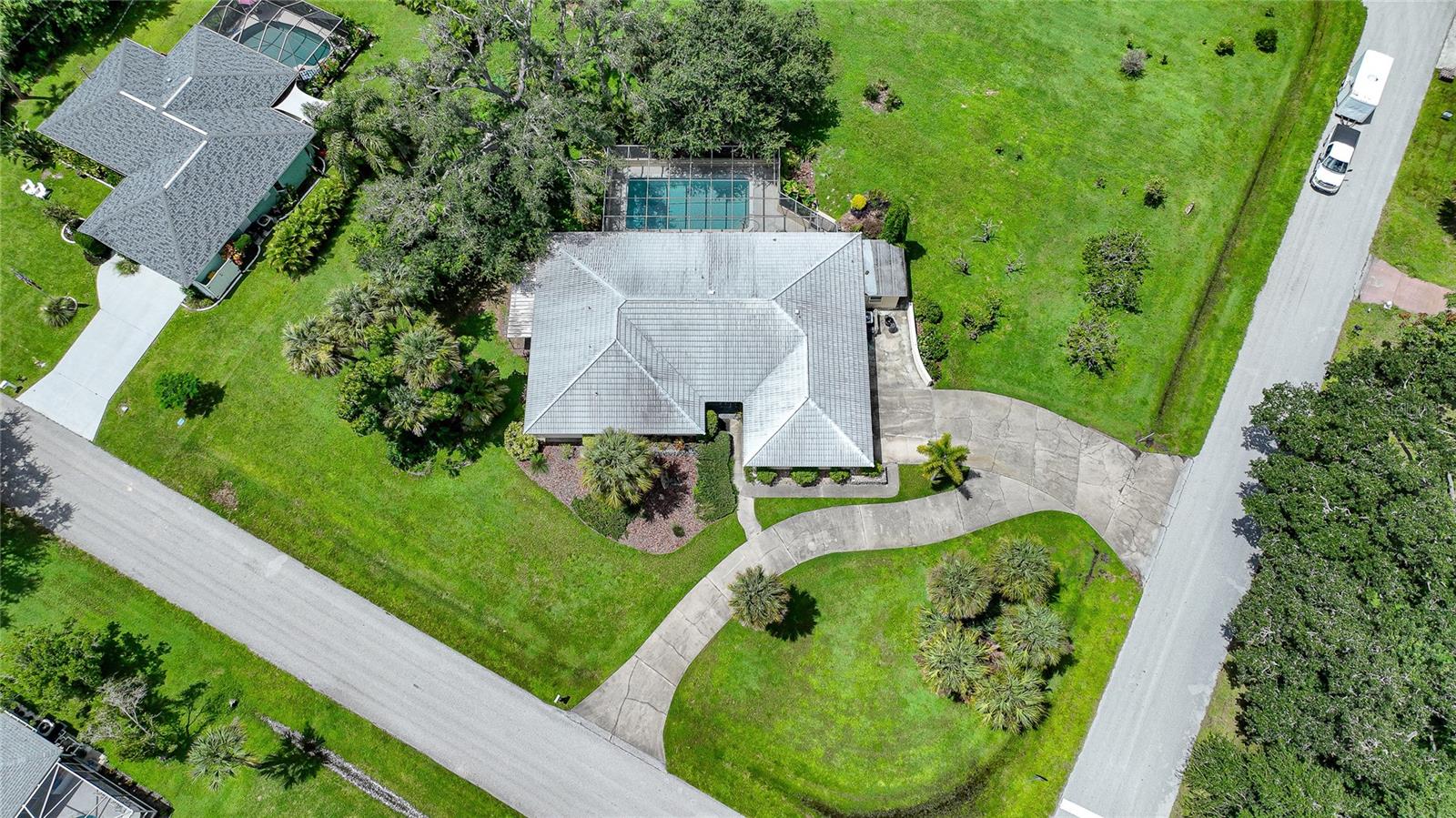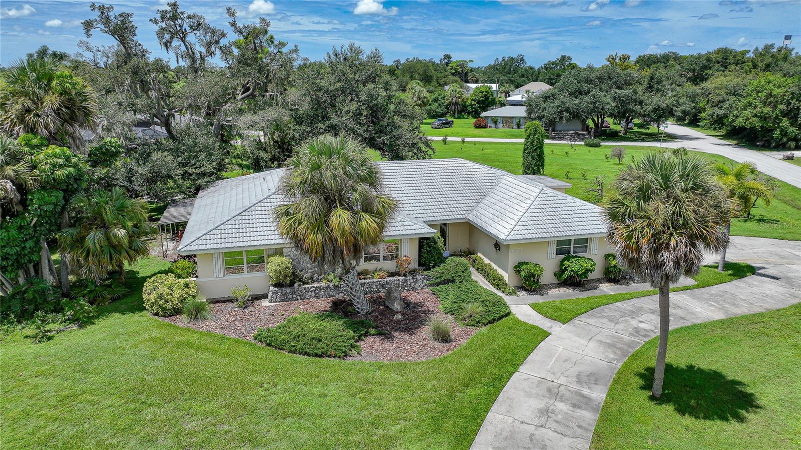 " HUGE PRICE IMPROVEMENT" Discover the perfect blend of comfort, luxury, and convenience with this stunning 4-bedroom, 3-bathroom residence, nestled on over an acre of lush, beautifully landscaped grounds. This property epitomizes functionality, providing a serene retreat in the heart of Port Charlotte. Step inside to a split floor plan drenched in natural light, showcasing high functionality and thoughtful design. The heart of the home, a fully-equipped kitchen, features striking two-tone cabinets, gleaming granite countertops, a custom-built hutch, an island with seating, and a cozy breakfast nook. This space seamlessly flows into the family room, complete with a custom entertainment area and a picturesque view of the pool and lanai. Retreat to the luxurious master suite, offering ample wall closets and a spa-like en-suite bathroom. Enjoy dual sinks, a large vanity, and a separate shower for the ultimate in relaxation. Step outside to your oversized, private, heated pool—perfect for year-round enjoyment. The expansive patio area invites sunbathing, dining, and soaking in Florida’s beautiful weather. Mature landscaping, including multiple fruit trees and a majestic oak enhances the tranquility of the property. Three additional spacious bedrooms offer flexibility for family, guests, or a home office. Two well-appointed bathrooms, including the third doubling as a pool bath, ensure comfort and convenience for all. This rock-solid home features all plaster walls, a large side-entry two-car garage with ample parking for ten vehicles, and numerous modern upgrades including LED lighting, a dehumidifier in the attic, and recently resurfaced pool. With two water heaters ensuring endless hot water, this home is as practical as it is luxurious. The expansive lot provides ample space for additional projects—consider building your dream garage, a guest house, or even a spec home to capitalize on the prime location. Enjoy the perfect balance of privacy and accessibility, with shopping, dining, schools, and parks all within close reach. The Edgewater corridor provides easy access to the beaches and the charming city of Punta Gorda. This exceptional Port Charlotte property is a rare find. Don’t miss the chance to own this beautiful home and experience the ultimate in luxury, space, and convenience. Schedule your showing today and make this dream home your reality!