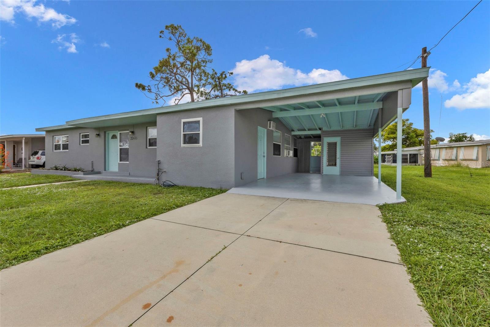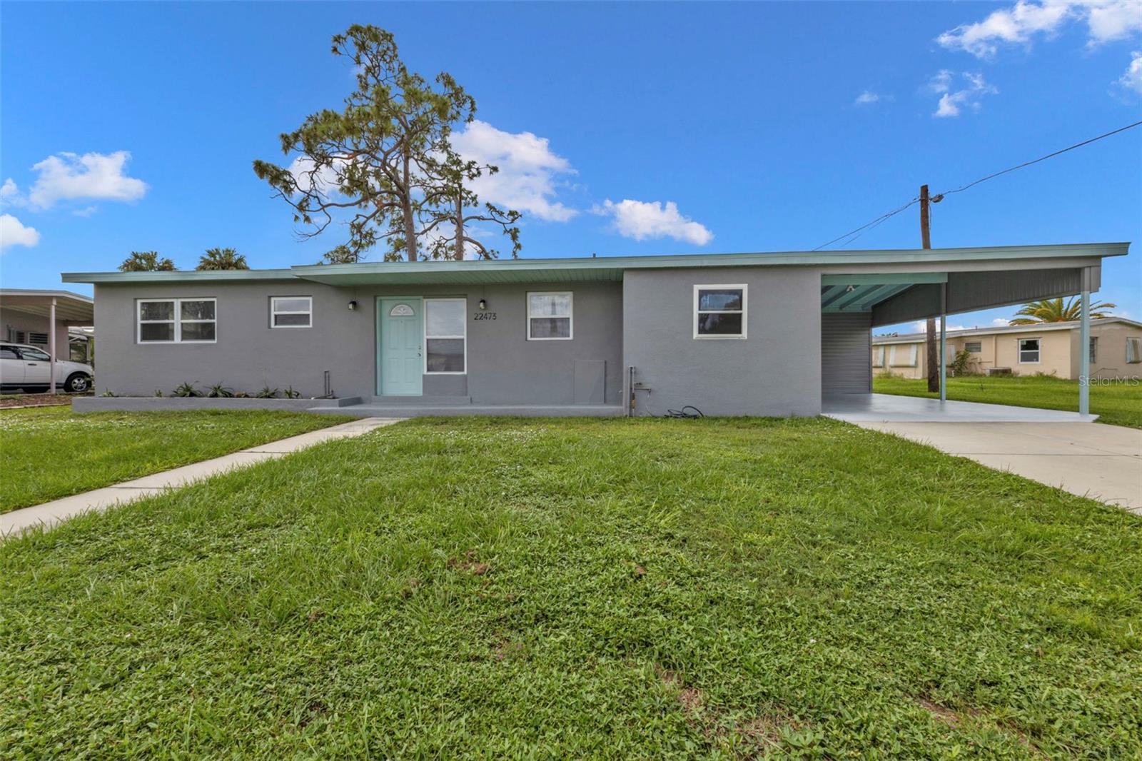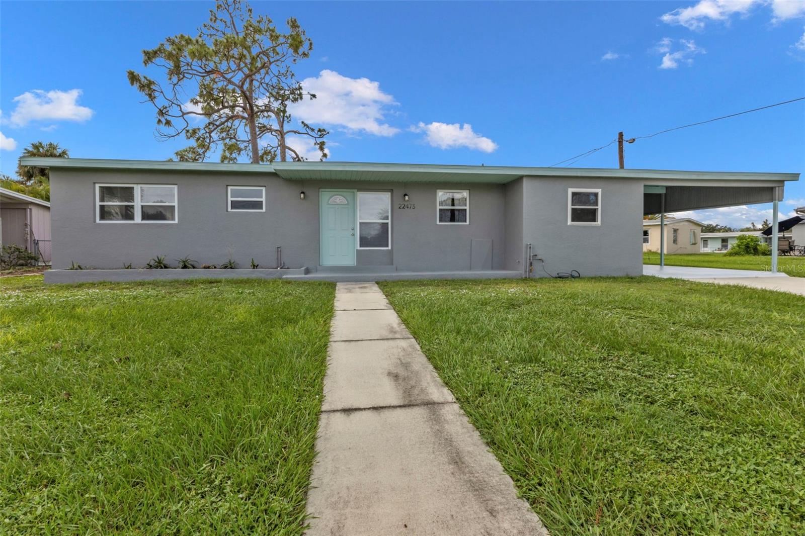 Beautifully updated 3 bedroom block home in flood zone x (no flood insurance required) with NEW Roof 2023, NEW A/C 2022 (has annual maintenance with Always Air that can be transferable), NEW flooring and trim 9/23, fresh exterior stucco and paint 11/23, inside freshly painted, carport freshly painted 9/24, NEW inside plumbing 11/22, NEW blinds, NEW luxury vinyl plank flooring and trim, updated windows, and more! From the outside, enjoy great curb appeal and a modern, coastal feel. Inside, find an open floor plan with the large living room connected to the open kitchen with breakfast bar. On one, side find 2 bedrooms and an updated bathroom, and off the other end, a spacious 3rd bedroom or office. Off the kitchen, enjoy the inside utility room and connection to the oversized carport with extra storage room. BE SURE TO CLICK THE FULL VIRTUAL TOUR LINKS FOR DETAILS and schedule your showing today!