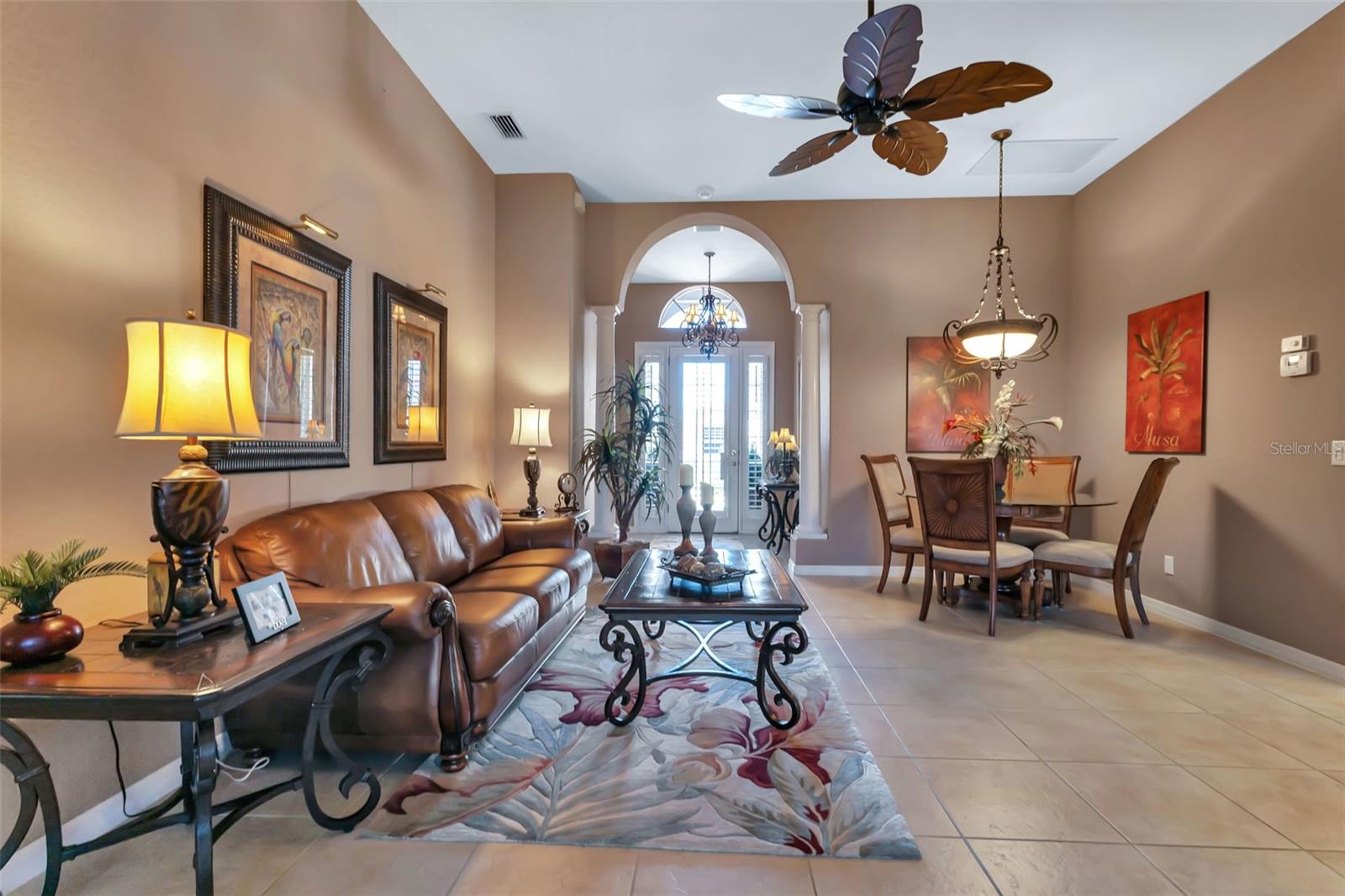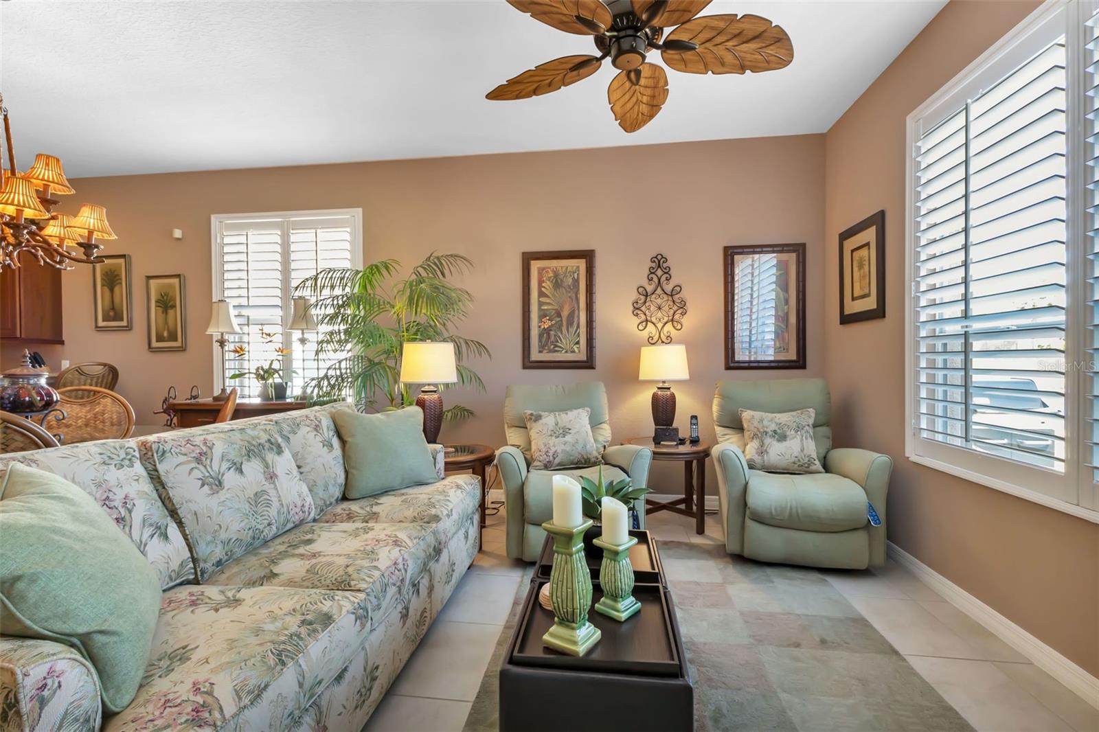 WOW!!!! You're going to fall in LOVE with this SPACIOUS EATON floor plan with GORGEOUS VIEW of water/golf in the gated golf course/active resort of highly desirable Kings Gate, a 55+ community (evacuation zone D - have not been under any evacuation order, more than 20 feet above sea level - storm surge has not been an issue, not in a flood zone - no flood insurance required). This FULLY FURNISHED (quality/name brand) home has tons of updates/upgrades - including Travertine tile in the enclosed and UNDER AIR lanai, paver patio, convection stove-granite counters-pull outs to maximize storage-finger print resistant appliances-and under & over counter lighting ALL in kitchen, plantation shutters throughout, tinted windows, hang down storage in garage along with insulated garage door, 2023 ROOF, 2013 AC, 2021 Appliances and Accordion shutters. This home has been meticulously maintained and is MOVE-IN ready. Step inside this beauty and your eyes will gaze skyward to the 11 ft high ceilings before looking beyond the massive great room and into the large lanai with that decorative tile flooring and a serene view of water/golf beyond. The to-die for kitchen features an island with an additional sink/disposal and plenty of counter and cabinet space. The kitchen opens to the family room providing plenty of spaces for entertainment/relaxation. No question - you're going to love having your morning coffee and/or favorite evening beverage in the lanai overlooking the pond and observing the Florida wildlife. The large master bedroom to the back right features his/her WALK-IN closets along with dual vanity and separate tub and shower. Both guest bedrooms located to the front right feature WALK-IN closets as well. And if you haven't been to Kings Gate before - you're going to love the options for activity (Olympic size heated swimming pool and spa, tennis courts, pickle ball, lawn bowling, shuffle board, bocce, horseshoes, gym, billiards, library, euchre, bingo, bridge, Texas hold em, poker, mahjong and more). The onsite and NEWLY REMODELED Lions Den restaurant and bar is super convenient and also offers Tuesday night Karaoke and monthly trivia contests. Many residents love the fact that they are just a golf cart ride away from the Winn Dixie shopping plaza that provides you access to grocery store, drug store, bank, ice-cream shop, restaurants and shopping. Want to explore outside of Kings Gate - your minutes away from the restaurants and shops of downtown Punta Gorda and Fisherman's village. And if you want to explore more of Florida's fun spots you’re near I75 to quickly head north or south. An AWESOME home with all those updates/upgrades with a great view in a PREMIER gated community must be seen. Call today for a private showing and a golf cart tour of the community/amenities.
