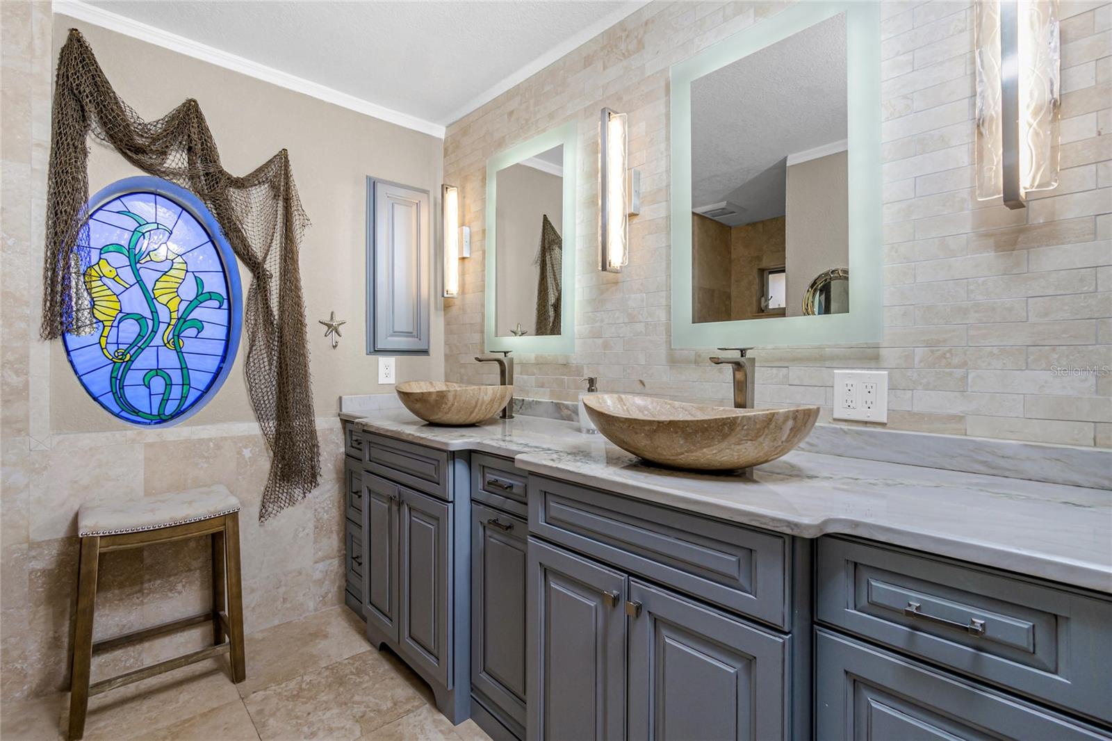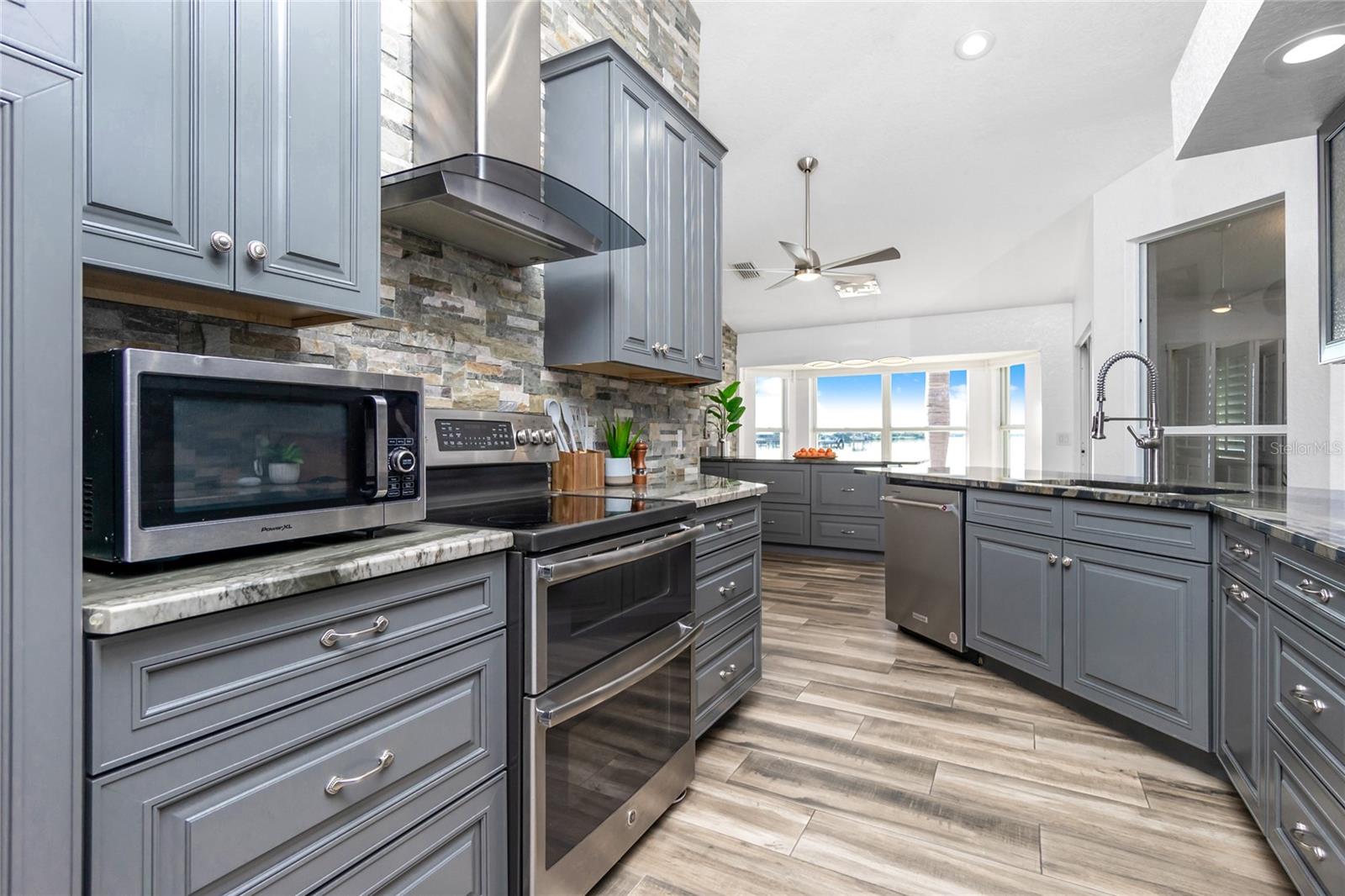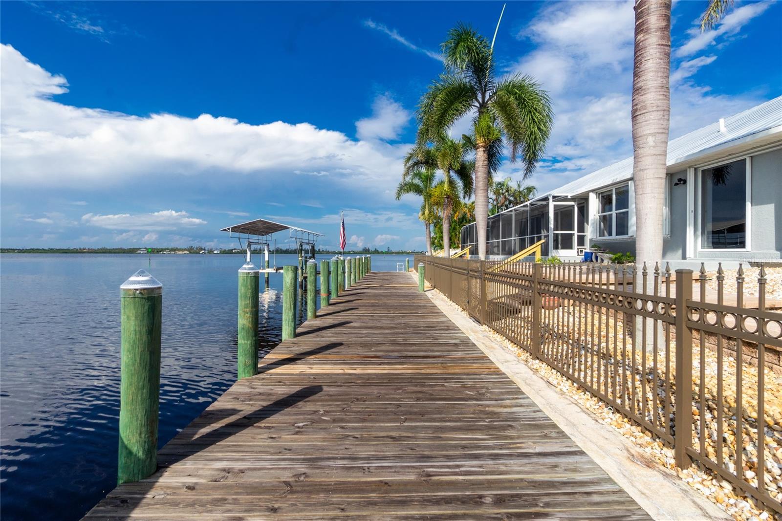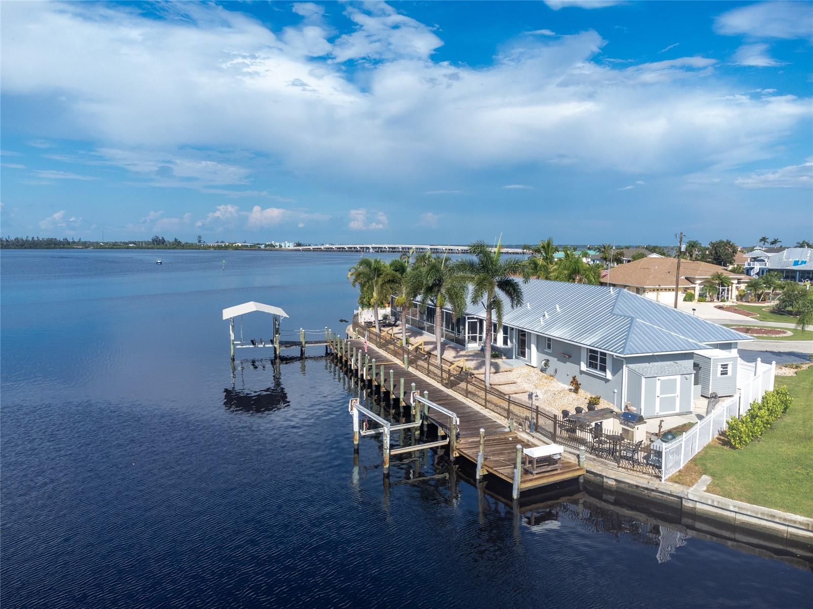 Sunset and Sunrise views! Experience waterfront living at its finest with this stunning 3-bedroom, 2-bath pool home on the picturesque banks of the Myakka River. Designed for modern luxury and elegance, this residence boasts breathtaking river views and impeccable details throughout. Step into the open-concept living area and be greeted by soaring ceilings and abundant natural light. The chef's kitchen is a standout feature, complete with custom cabinetry, state-of-the-art appliances, a butler’s pantry, and a spacious island perfect for casual dining and entertaining. Start your day with a coffee while enjoying serene views from the bay window or take it outside to the inviting patio. The coastal-inspired master suite offers a spacious retreat with a walk-in closet featuring a new custom storage system. Its spa-like en-suite bathroom includes a double vanity and an oversized rain shower with multiple jets. Two additional generously sized bedrooms and a stylishly updated guest bathroom provide ample space for family and friends. Seamlessly blend indoor and outdoor living by stepping through sliding glass doors onto the expansive screened lanai. Here, you’ll find a custom private pool and a stunning outdoor kitchen, all set within a low-maintenance backyard with brick pavers, multiple seating areas, and full fencing. Perfect for fishing, boating, or simply relaxing and enjoying the captivating river vistas. For boating enthusiasts, there are two electric boat lifts with capacities of 6K and 10K pounds. Additional features of this fully renovated home include an oversized two-car garage, plantation shutters, a sparkling pool, a new HVAC system, a 2020 METAL ROOF a 17,500-watt Generac generator, and two outdoor storage sheds. Conveniently located just minutes from local shopping, dining, and world-class golf courses, this immaculate, move-in-ready home offers unparalleled views and a rare opportunity to own a piece of paradise in one of the area’s most sought-after waterfront communities. Schedule your private showing today and get ready to fall in love!