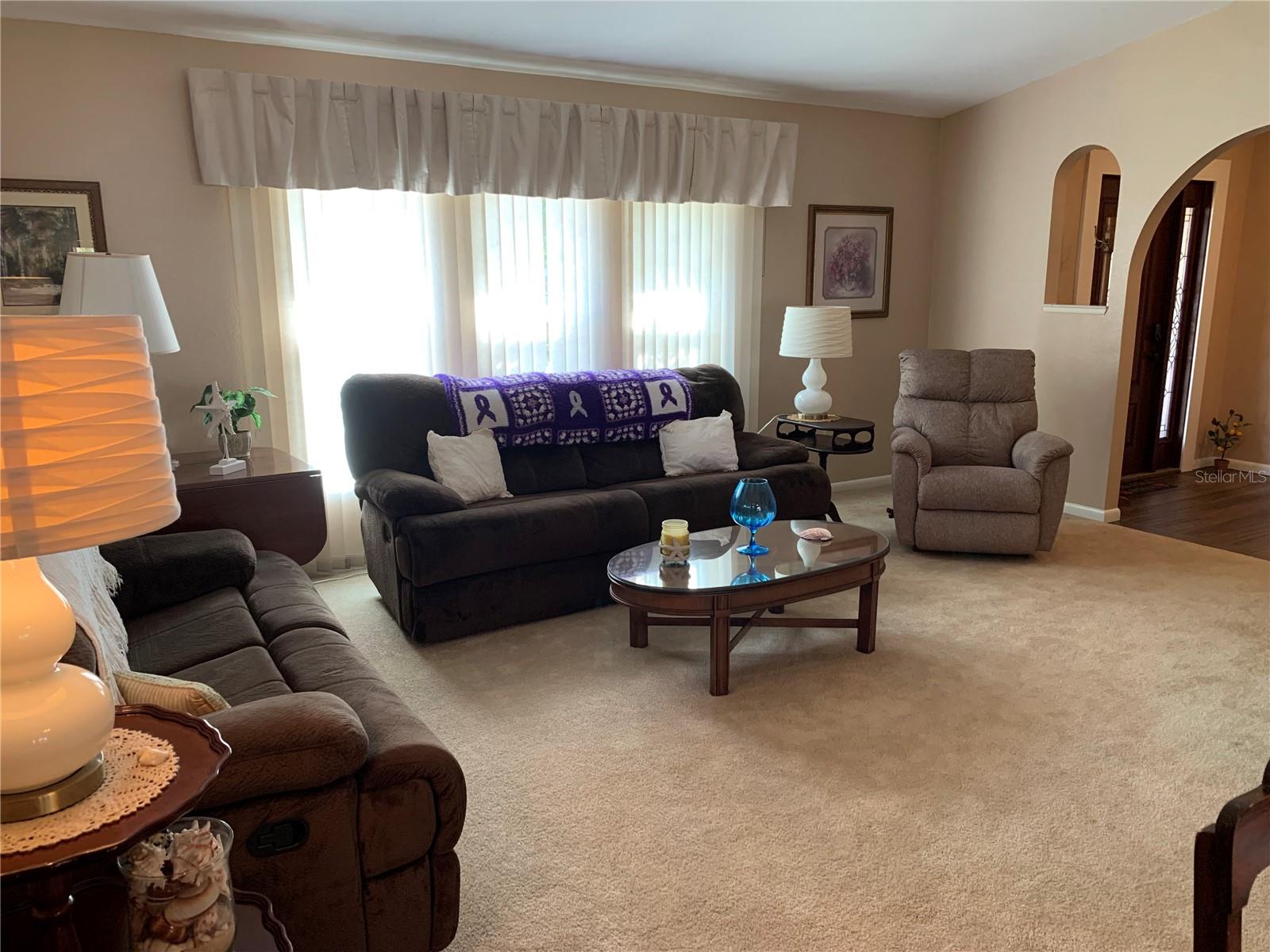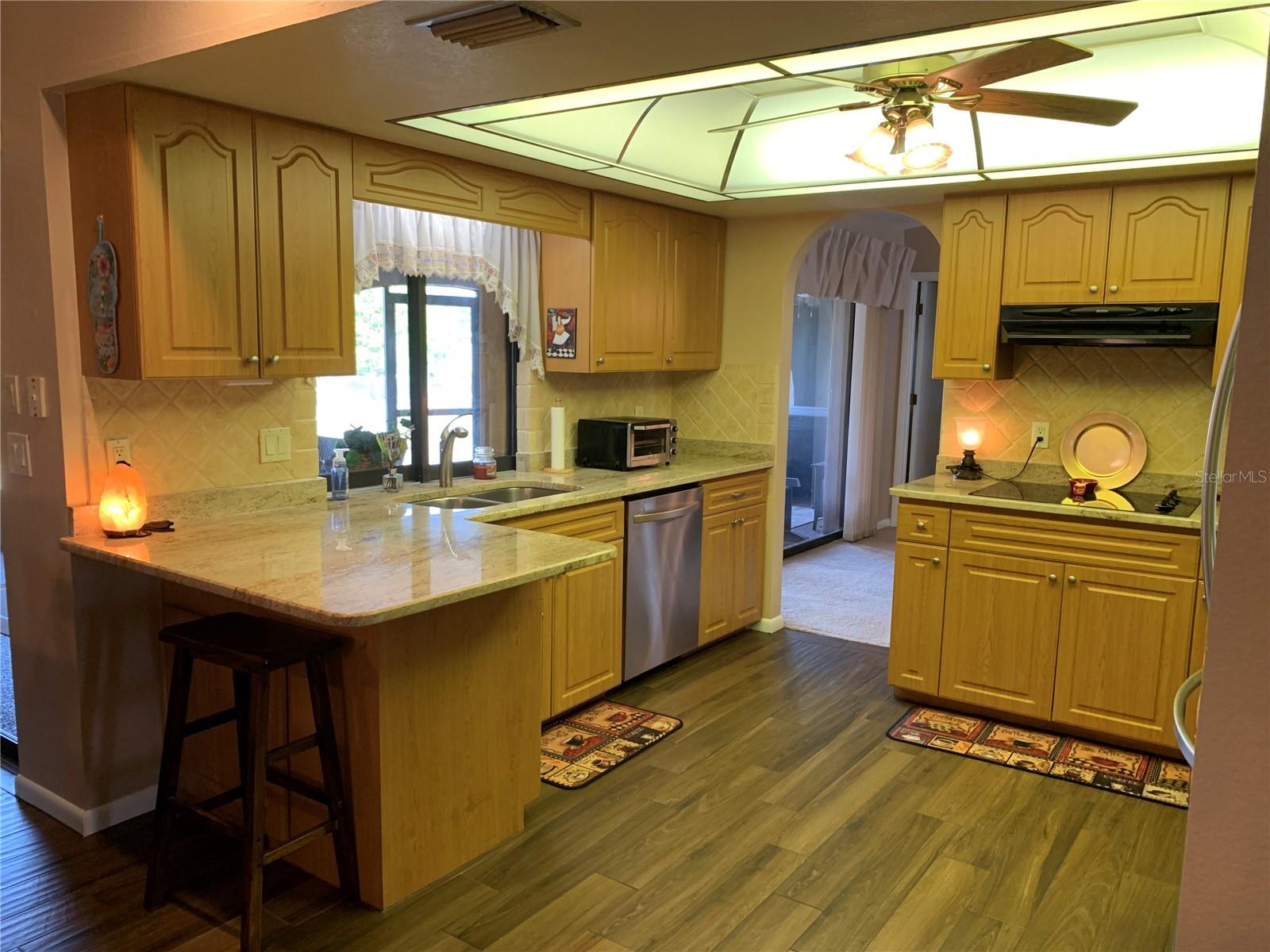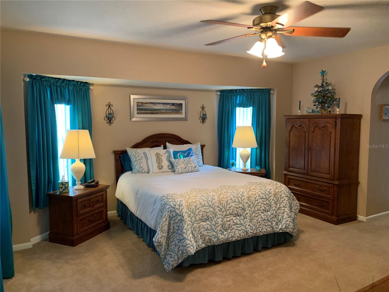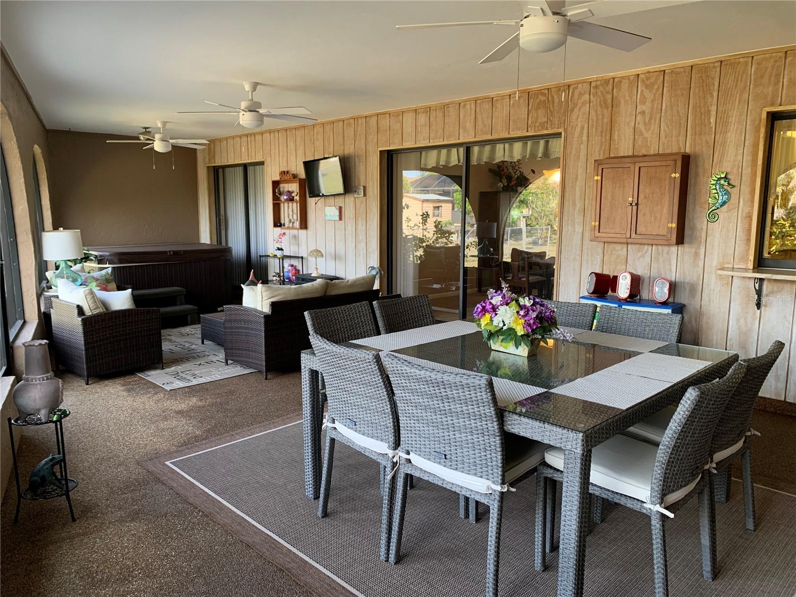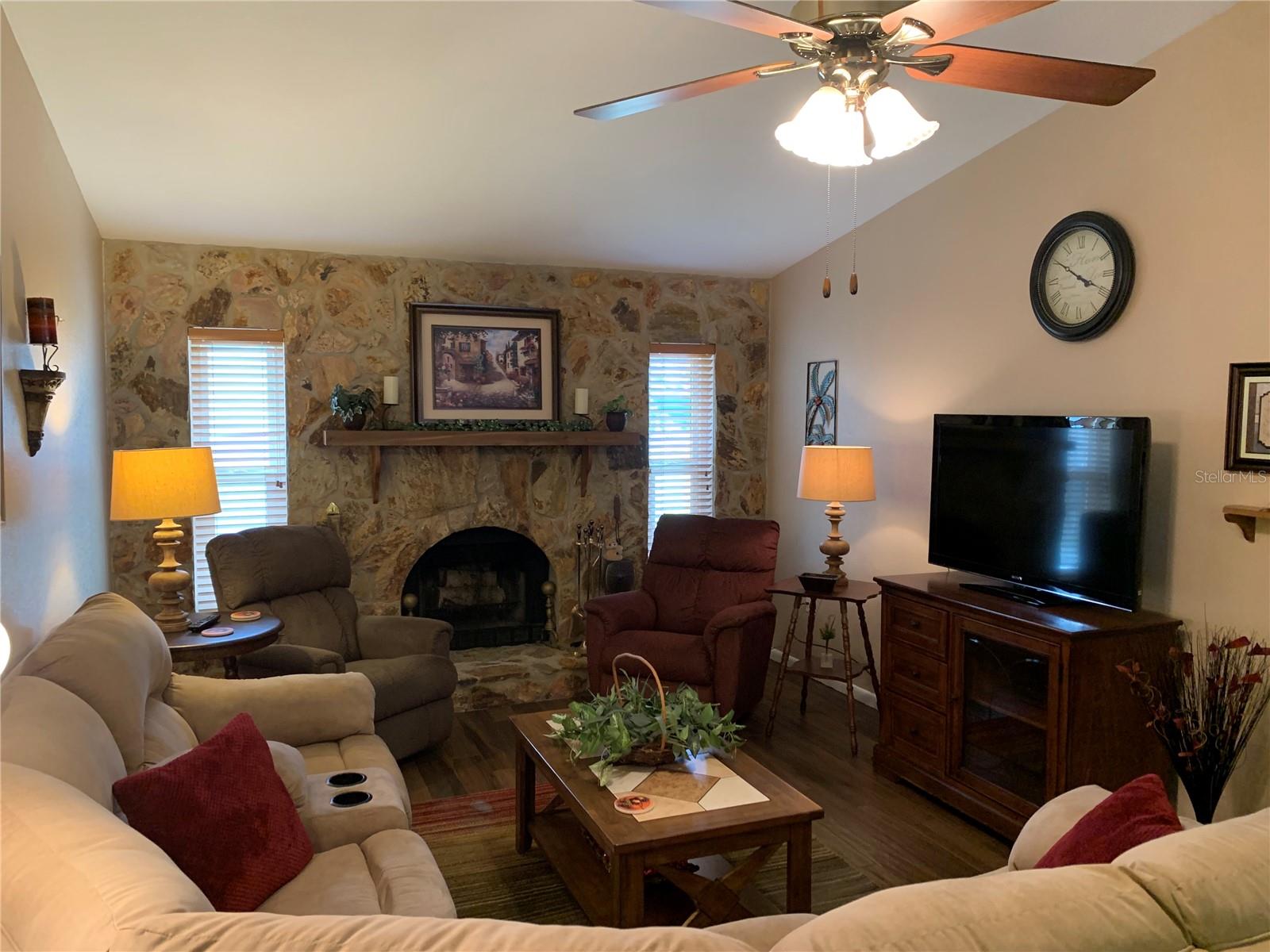 This original Builder’s Parade of Homes Model is a stunning 3-bedroom, 2-bathroom, 2,000+ SF residence with a 2-car garage and is being sold FULLY FURNISHED AND TURNKEY, right down to linens, dishes and decor! This home also features a charming stone wall, wood-burning fireplace and a beamed vaulted ceiling in the family room that adds warmth and character to the space. The large master bedroom boasts 2 walk in closets with modern wood shelving, as well as two separate vanities, two showers and a tub in the master bath. The second and third bedroom also feature walk in closets. The guest bath functions as a pool bath, with a door to the lanai. The NEARLY 500 SQUARE FOOT LANAI is finished with T111 siding and features a granite counter pass through from the kitchen. The sliding doors all pocket behind the finished walls and there’s plenty of room for a dining area, a sitting area and the bubbling hot tub. This home has been meticulously maintained and updated to provide peace of mind and comfort. Updates and upgrades include BRAND NEW HURRICANE IMPACT WINDOWS, A NEW FRONT DOOR, NEW GARAGE DOOR, NEW SIDE ENTRY GARAGE DOOR, NEW RUBBER ROOF OVER THE LANAI, NEW GUTTERS, FRESH EXTERIOR PAINT, FRESHLY PAINTED INTERIOR DOORS AND TRIM, NEW HVAC (2023), NEW ELECTRICAL PANEL (2022), NEWER HOT WATER TANK (2021), METAL ROOF (2018), UPDATED KITCHEN with GRANITE COUNTERS, STAINLESS STEEL APPLIANCES and a TUMBLED MARBLE BACKSPLASH, UPDATED BATHROOMS AND PLANK TILE IN HALF OF THE HOUSE. For extra storage, there is also a large storage shed in the backyard. OWNER FINANCING AVAILABLE FOR OWNER OCCUPANTS! And for Peace of Mind, the seller is also offering a One Year Home Warranty. There is nothing to do here but bring your toothbrush and move in. Make your offer today and be living your Florida Dream in no time.