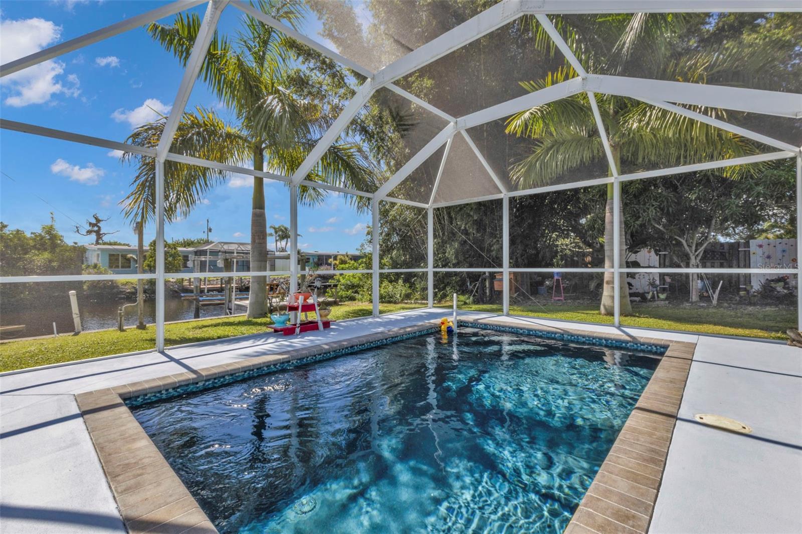 Have you been searching for your perfect waterfront Gulf access pool home just minutes to beaches and downtown Punta Gorda? Look no further - you’ve found your private oasis with your own private dock and boatlift here at 131 Buckeye Ave NW, Port Charlotte FL. This city water/sewer home was made for the person who appreciates charm, special details, peace, and character. Walking into your front living room you’ll immediately see out through the triple slider out to your BRAND NEW GUNITE POOL and out to the saltwater canal. With unique features throughout the house such as reclaimed pecky cypress doors, black hardware, vinyl plank flooring, and a coastal retreat experience, you’ll feel right at home. The remodeled bathrooms with modern fixtures and backsplash along with the beautifully updated kitchen with butcher block countertops, NEW appliances, and custom hardware has given a Florida charm you don’t see anymore. And don’t worry about the hurricanes breaking through your windows, you have custom shutters attached to the home that can be closed up in minutes. Did I mention this home is solar powered? The solar panels are fully PAID OFF. This makes warming your NEW pool with the electric water heater cheaper than ever. Boaters will love the 10 minute boat ride out to the Charlotte Harbor and 10,000 lb boat lift (a well as working davits!) along with a NEW Trex dock extending from an 90-foot concrete seawall, perfect for fishing and soaking in the Florida weather with extra privacy from the bamboo separating you from your neighbor. Located in a quiet cul-de-sac, the peace and quiet is everything- yet you are as central as you can get when it comes to the conveniences to downtown, the hospitals, beaches, shopping, walking along the Peace River watching the sunset - everything. Extra features include UV lights in the A/C, a LARGE indoor storage room outside by the garage, inside laundry room, the most convenient pantry/butler’s pantry with custom pull out drawers for all your food and cookware, NEW water softening system, NEWER roof, and NEW water heater. You’ll get to watch dolphins and manatees out while you’re fishing or watching the sun rise on your dock with your favorite coffee. Whether you are looking to live here full time, as a snow bird, or purchase as an investment property, you can’t go wrong with buying this exceptionally maintained property.