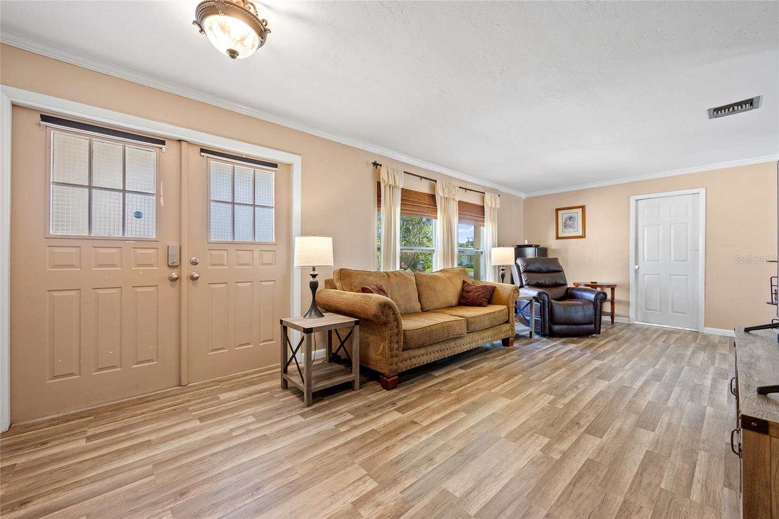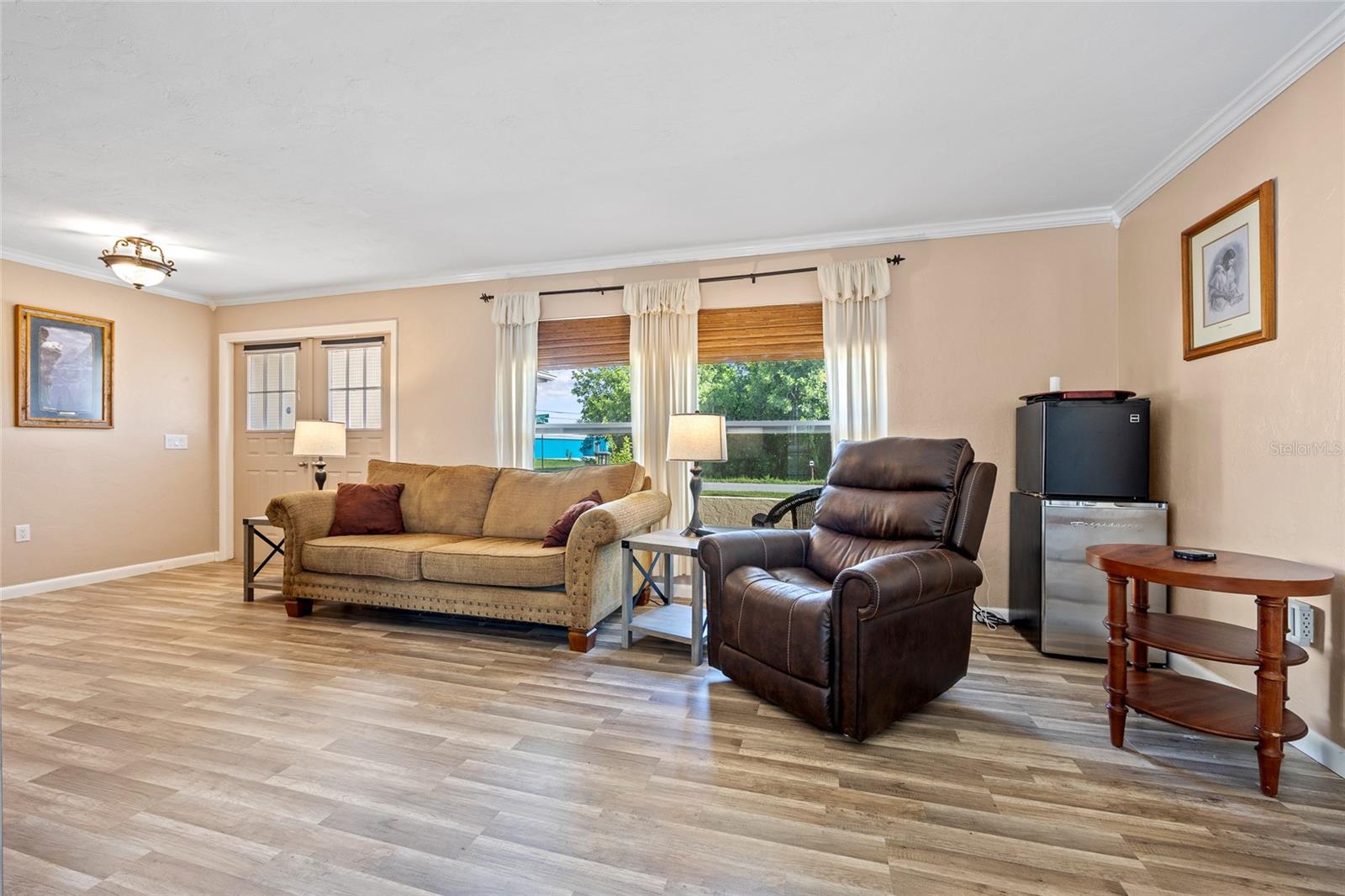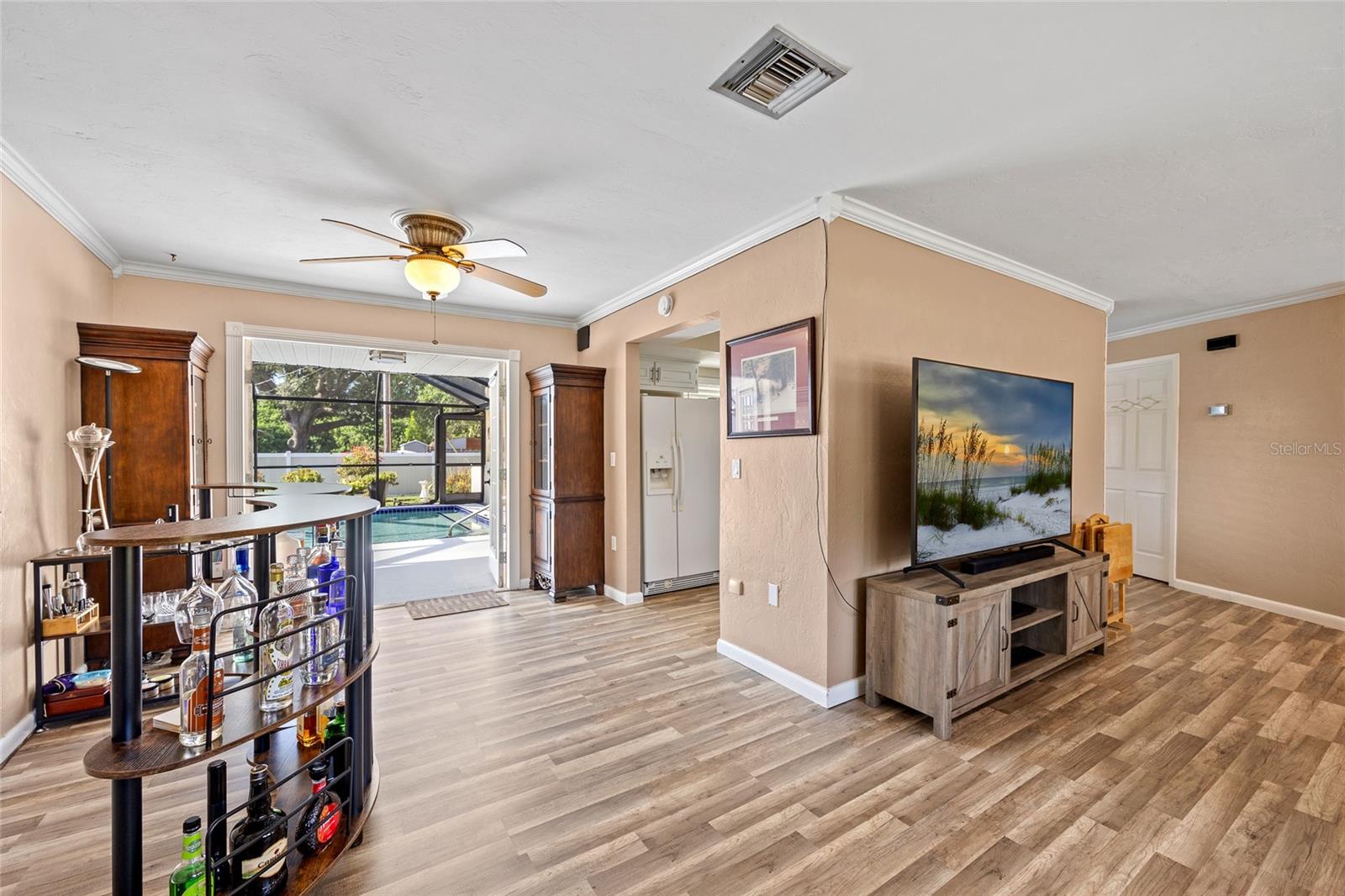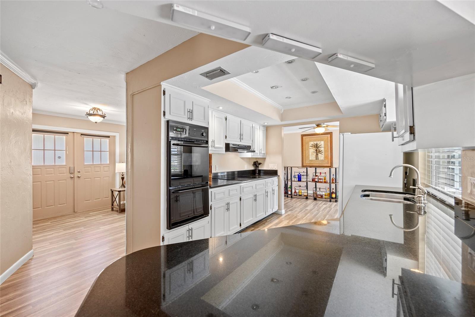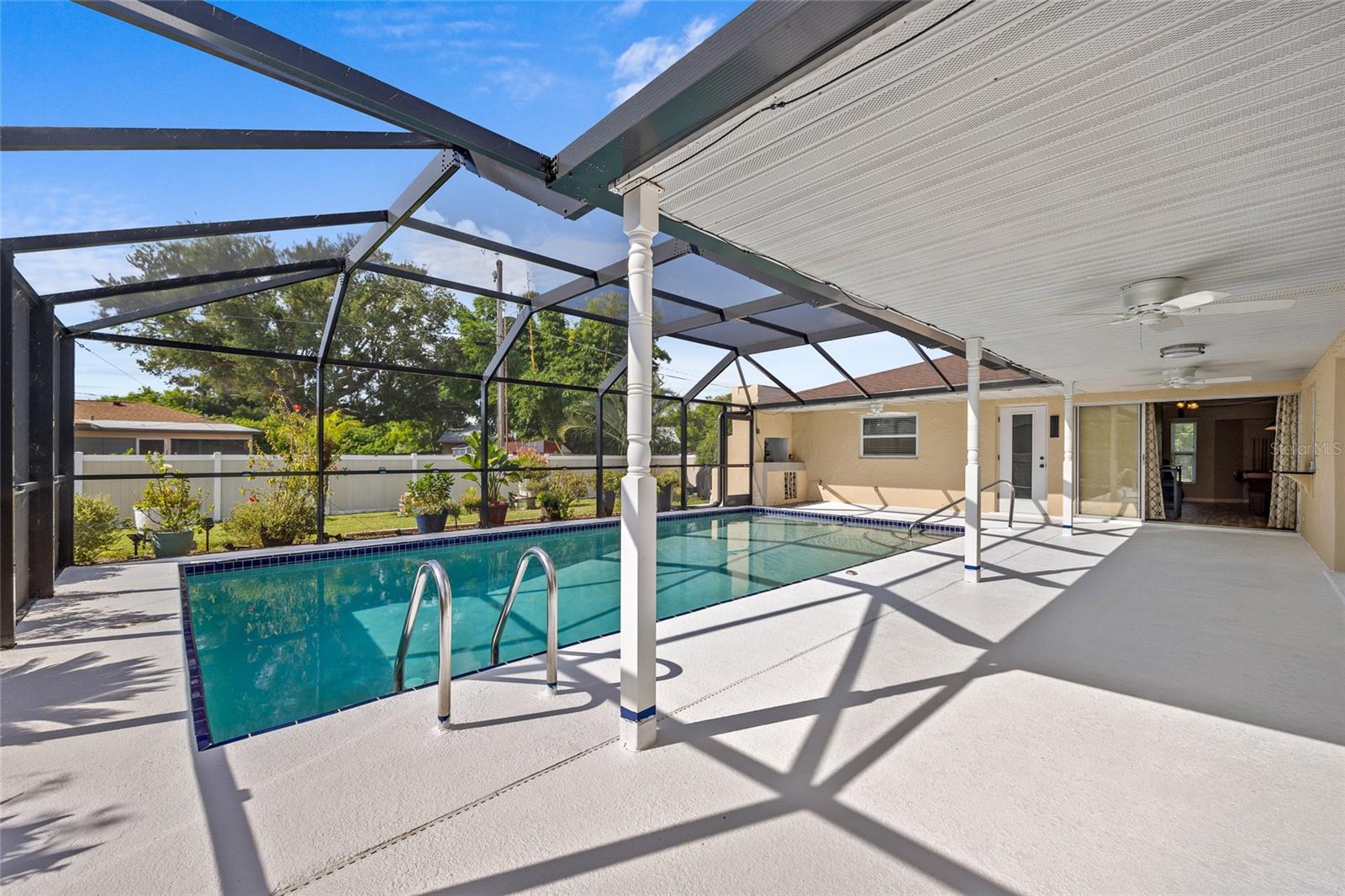 Beautifully updated 3-bedroom, 2-bath, 2-car garage pool home located on an oversized corner lot, offering the perfect blend of comfort and style in central Port Charlotte! As you step through the double entry doors, you'll be greeted by crown molding, neutral decor and a mix of tile and laminate flooring that flows seamlessly throughout. The kitchen is a chef's dream, featuring granite countertops, a cooktop, double oven, breakfast bar, and a convenient pass-thru window to the lanai. The casual dining area with slider to the lanai makes it easy to enjoy meals indoors or out. The split floor plan ensures privacy, with all bedrooms boasting walk-in closets. The primary bedroom offers a serene retreat with new tile in the shower, while the remodeled guest bath includes a modern shower and bidet. The spacious family room provides ample space for relaxation and entertainment. Step outside to your private oasis where a covered lanai with outside bath access, screened saltwater 9’ deep, 15’x30’ pool with true southern exposure invites guests from the north to enjoy an abundance of Florida sunshine. The privacy-fenced backyard provides a great space for pets to roam. The property also includes a cozy front porch, climate-controlled garage and closets, and 140 square foot bonus room with A/C. Additional features include roof replaced in 2018, A/C in 2017, hot water heater in 2019, hurricane shutters, central vacuum system, security system with cameras, and whole-house repipe in 2023. Located close to US-41, this home offers easy access to a variety of dining, shopping, and recreational options, as well as the new Sunseeker Resort and downtown historic Punta Gorda. Enjoy the best of Florida living with nearby golf, fishing, boating, and SWFL gulf beaches just a short ride away. Don’t miss the opportunity to make this incredible property your new home! Schedule your private showing today!