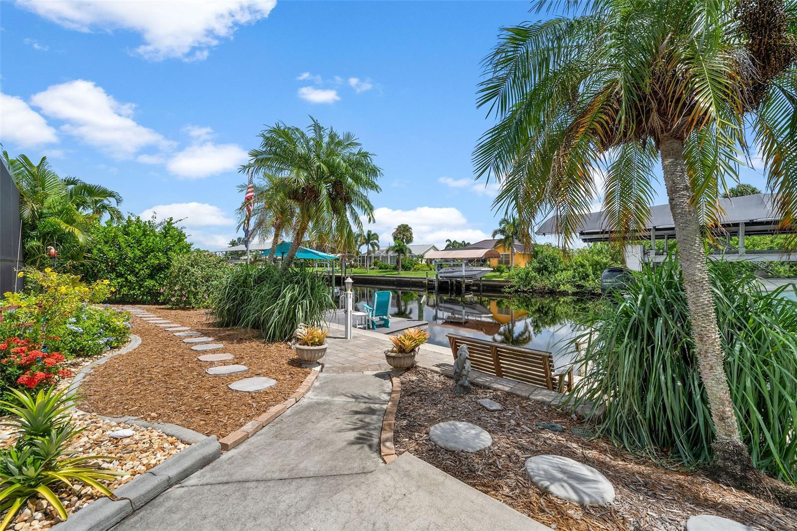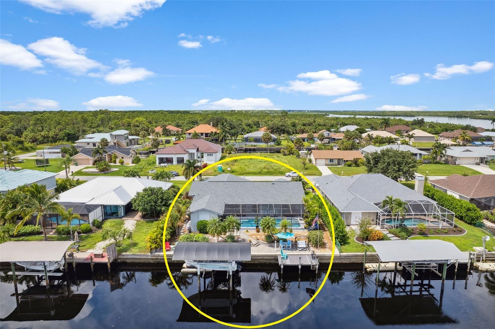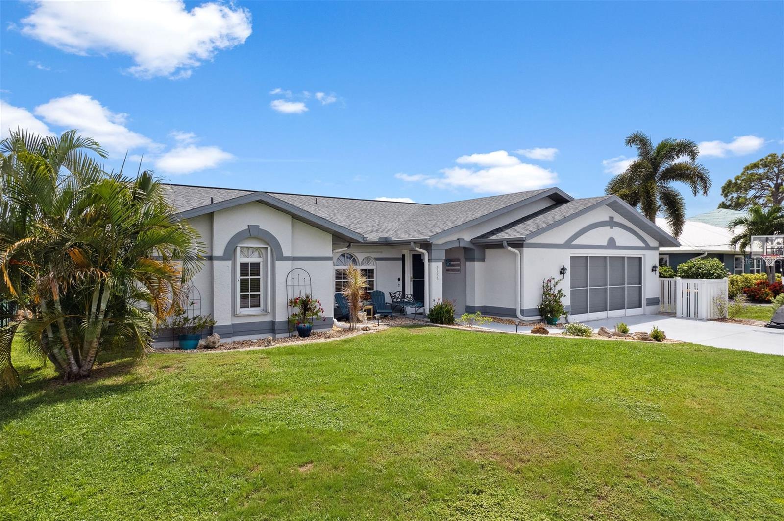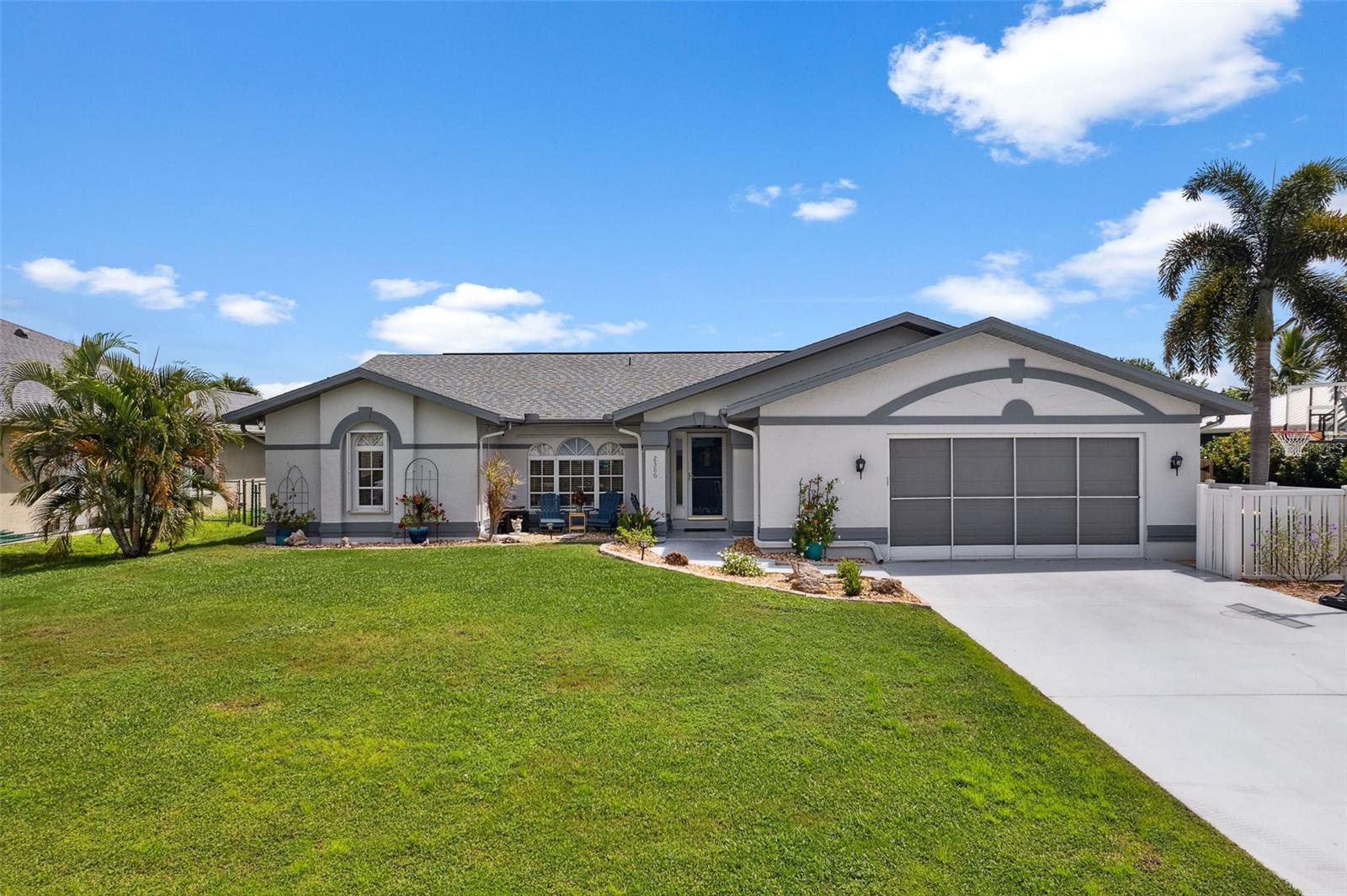 DIRECT SAILBOAT ACCESS 3 Bedroom, 2 Bathroom, 2.5 Car Garage, Pool home with a BONUS Room located in Gulf Cove SECONDS FROM OPEN WATER. CLICK ON THE VIRTUAL TOUR LINK 1 FOR THE VIDEO AND VIRTUAL LINK 2 FOR THE 3D TOUR. Featuring a bright & airy floor plan, tile flooring in the main living areas, vaulted ceilings, plantation shutters, and MUCH MORE! Entertain your friends and family in the living and dining room with large windows for plenty of natural lighting and BEAUTIFUL water views. The kitchen offers ALL stainless-steel appliances, stone countertops, a tiled backsplash, plenty of cabinets for storage, and a dinette with an aquarium window for GORGEOUS water-view dining. Whether you need an office, media room, or formal dining room, the bonus room off the kitchen is perfect for expanding your living or entertaining space. The spacious master bedroom has a glass slider to the lanai, HIS & HERS walk-in closets, and a private en-suite bathroom with a dual sink vanity, walk-in shower, and soaking tub. The guest bedrooms are on a split floor plan, providing plenty of privacy with built-in closets and a shared bathroom nearby. Step out to a private oasis on the lanai, where you can sip your morning coffee or unwind with your favorite evening beverage while taking in SERENE water views. Dip in your private HEATED SALTWATER pool, lounge in the spa, or soak up the sun from the pool deck. A fenced backyard provides plenty of privacy where you can set sail for endless water adventures from the paver deck along the canal with TWO composite docks with water and electricity, a 6,000 lb boat lift, and a floating jet ski dock. 2020 ROOF - NEWER POOL PUMP, HEATER & CARTRIDGE FILTER - WHOLE HOME SURGE PROTECTION - METAL SCREENED GARAGE DOOR- 2023 EXTERIOR PAINTED - 2023 LANAI RESURFACED - INTERIOR PAINTED - SEPTIC PUMPED 2022 - See Feature sheet for additional upgrades and features. Gulf Cove has a voluntary HOA providing the community with year-round events and fundraisers, a family-friendly private waterfront park and playground complete with a pavilion and picnic tables for members, and a private property owner-maintained boat ramp. Schedule your showing TODAY!