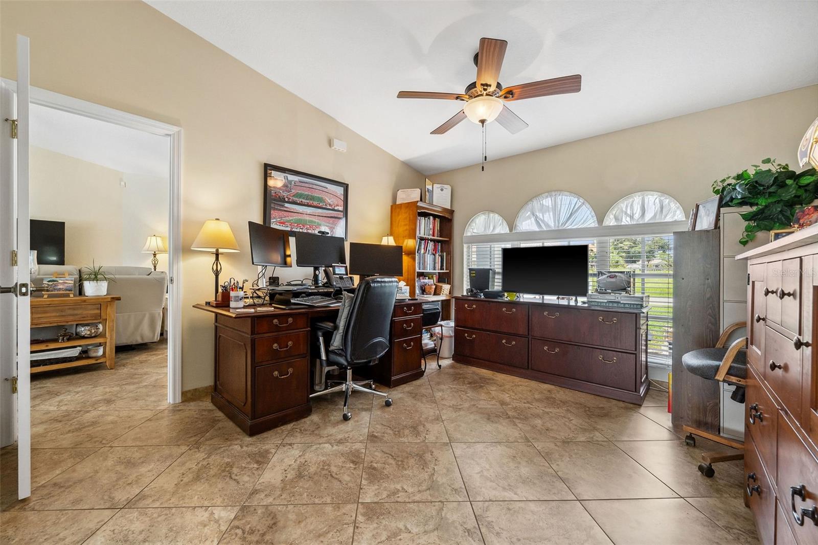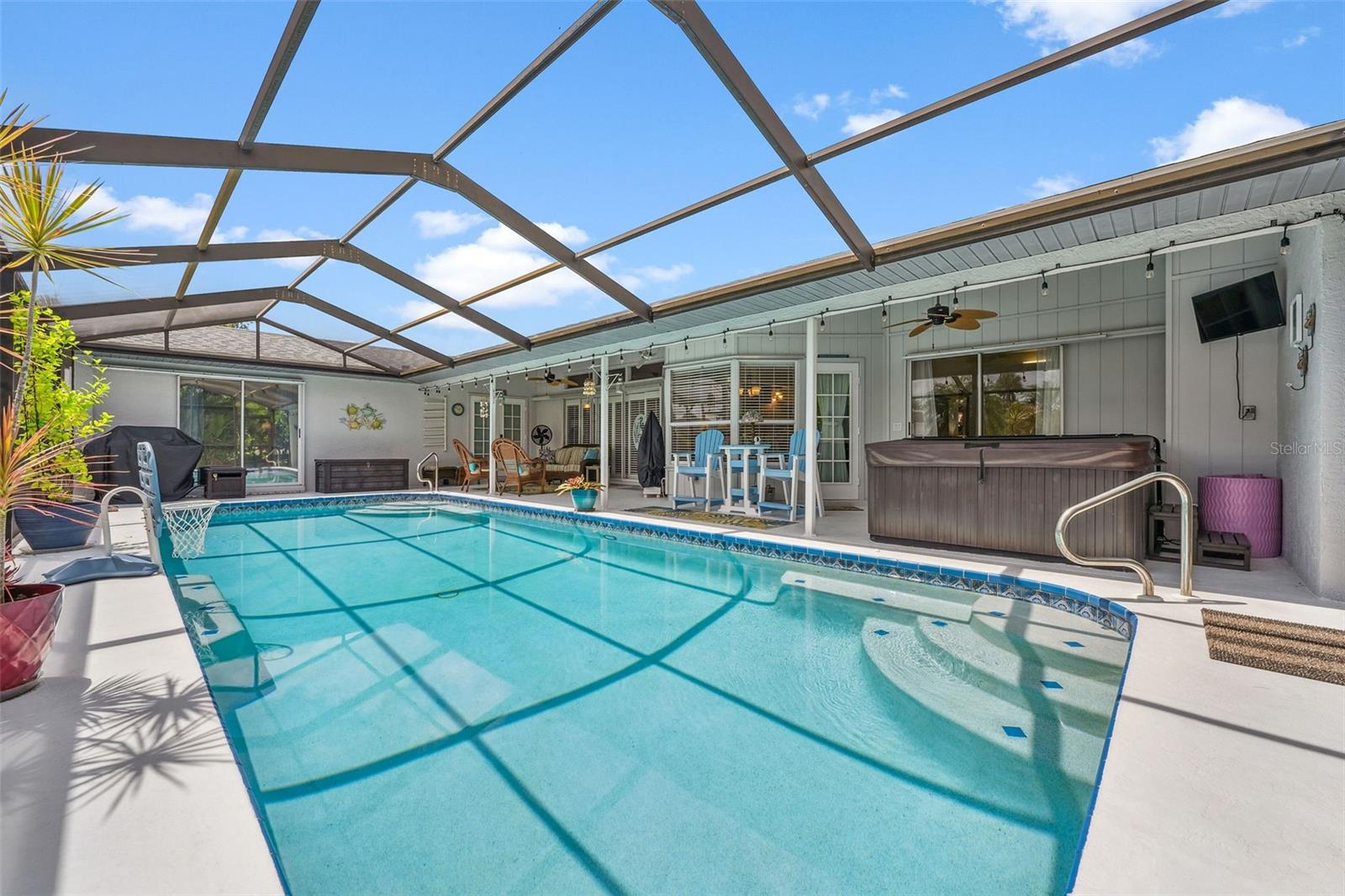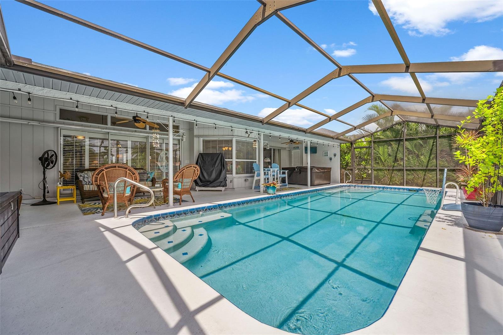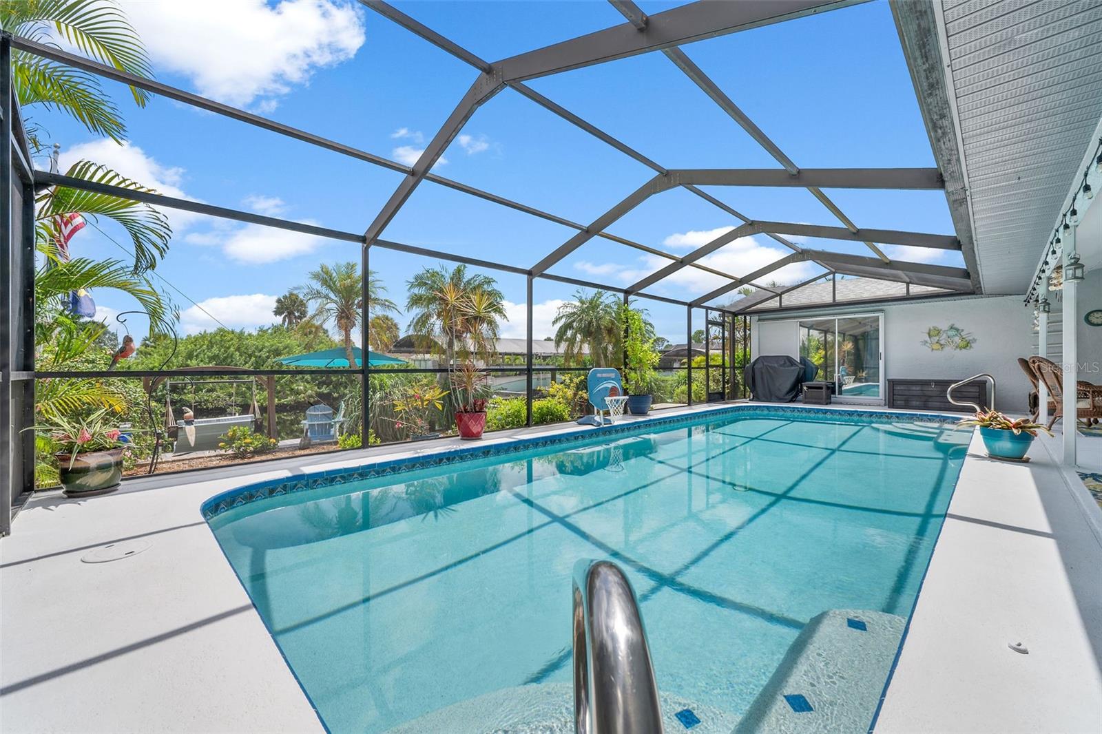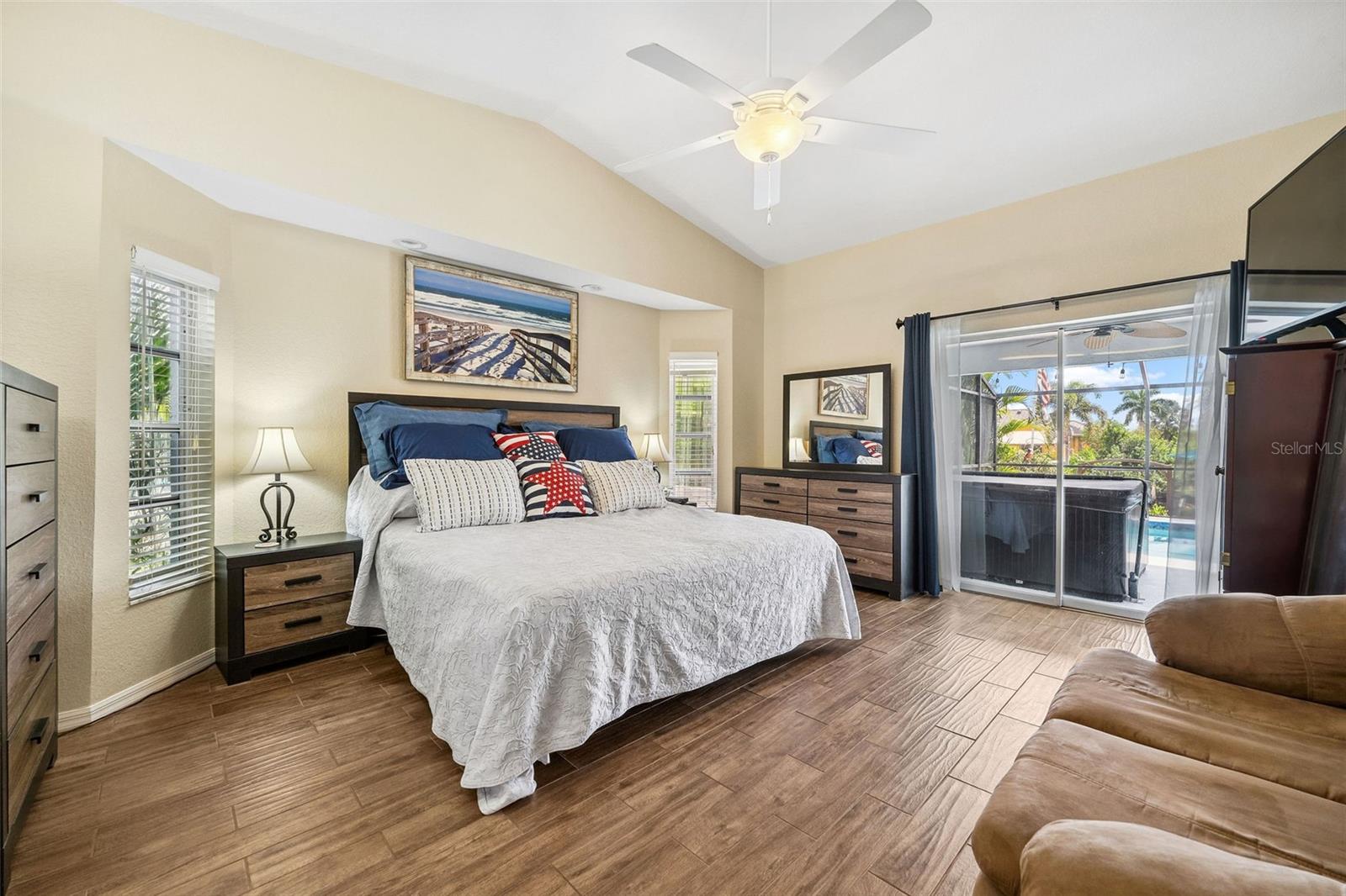 DIRECT SAILBOAT ACCESS 3 Bedroom, 2 Bathroom, 2.5 Car Garage, Pool home with a BONUS Room located in Gulf Cove SECONDS FROM OPEN WATER. CLICK ON THE VIRTUAL TOUR LINK 1 FOR THE VIDEO AND VIRTUAL LINK 2 FOR THE 3D TOUR. Featuring a bright & airy floor plan, tile flooring in the main living areas, vaulted ceilings, plantation shutters, and MUCH MORE! Entertain your friends and family in the living and dining room with large windows for plenty of natural lighting and BEAUTIFUL water views. The kitchen offers ALL stainless-steel appliances, stone countertops, a tiled backsplash, plenty of cabinets for storage, and a dinette with an aquarium window for GORGEOUS water-view dining. Whether you need an office, media room, or formal dining room, the bonus room off the kitchen is perfect for expanding your living or entertaining space. The spacious master bedroom has a glass slider to the lanai, HIS & HERS walk-in closets, and a private en-suite bathroom with a dual sink vanity, walk-in shower, and soaking tub. The guest bedrooms are on a split floor plan, providing plenty of privacy with built-in closets and a shared bathroom nearby. Step out to a private oasis on the lanai, where you can sip your morning coffee or unwind with your favorite evening beverage while taking in SERENE water views. Dip in your private HEATED SALTWATER pool, lounge in the spa, or soak up the sun from the pool deck. A fenced backyard provides plenty of privacy where you can set sail for endless water adventures from the paver deck along the canal with TWO composite docks with water and electricity, a 6,000 lb boat lift, and a floating jet ski dock. 2020 ROOF - NEWER POOL PUMP, HEATER & CARTRIDGE FILTER - WHOLE HOME SURGE PROTECTION - METAL SCREENED GARAGE DOOR- 2023 EXTERIOR PAINTED - 2023 LANAI RESURFACED - INTERIOR PAINTED - SEPTIC PUMPED 2022 - See Feature sheet for additional upgrades and features. Gulf Cove has a voluntary HOA providing the community with year-round events and fundraisers, a family-friendly private waterfront park and playground complete with a pavilion and picnic tables for members, and a private property owner-maintained boat ramp. Schedule your showing TODAY!